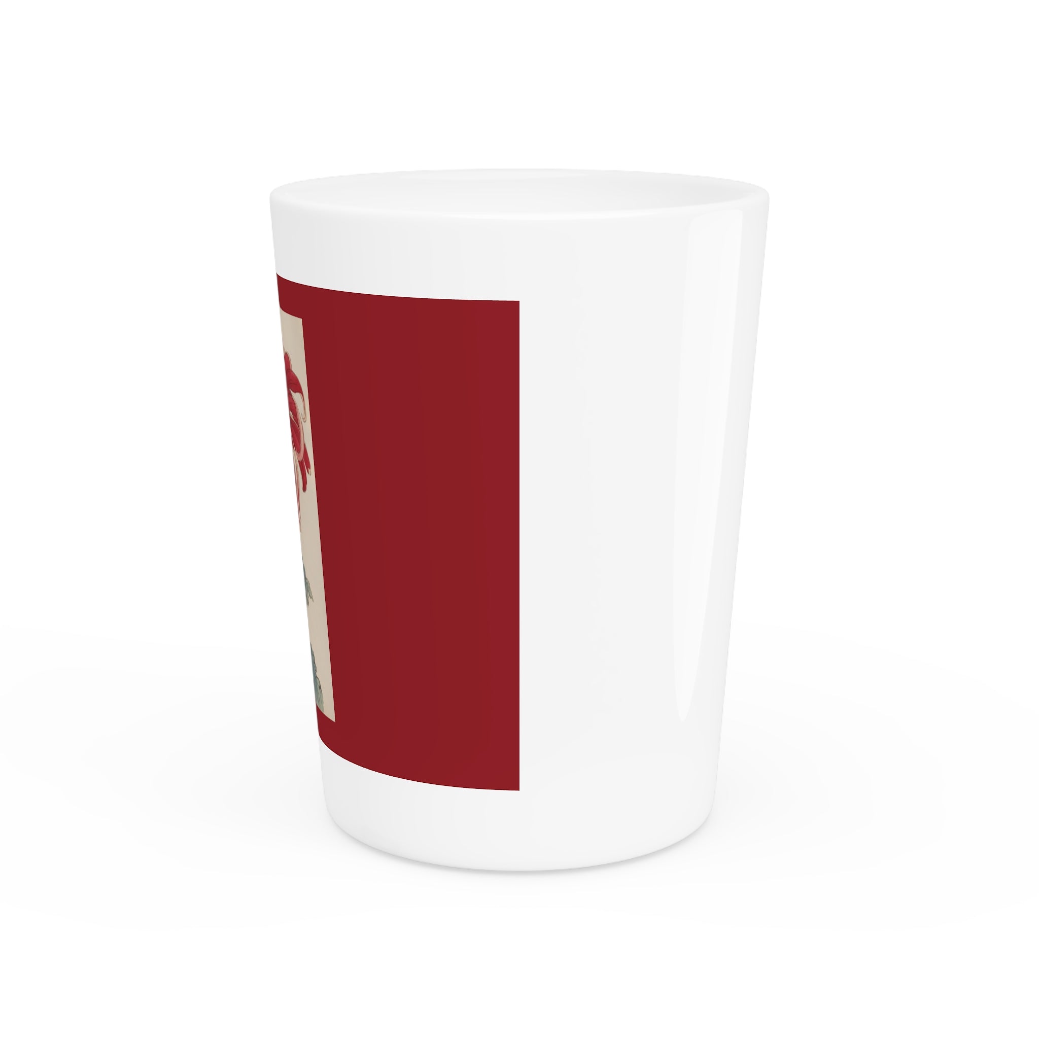 Elevate your gatherings or professional setting with this exclusive shot glass, featuring captivating vintage art. Crafted from premium ceramic material, this unique shot glass offers a choice of a pristine white or sleek black interior. Whether you're seeking to enhance your collection, offer a touch of sophistication to your venue, or give a gift, this shot glass serves as an exquisite canvas for showcasing the captivating artwork, making it a one-of-a-kind addition to your setting.