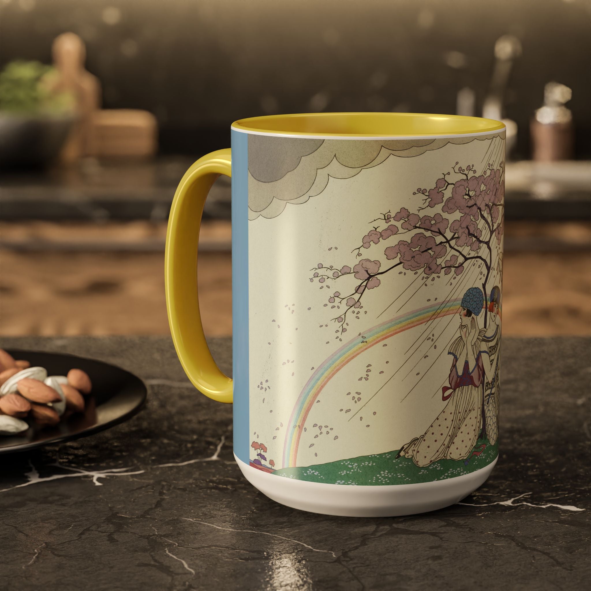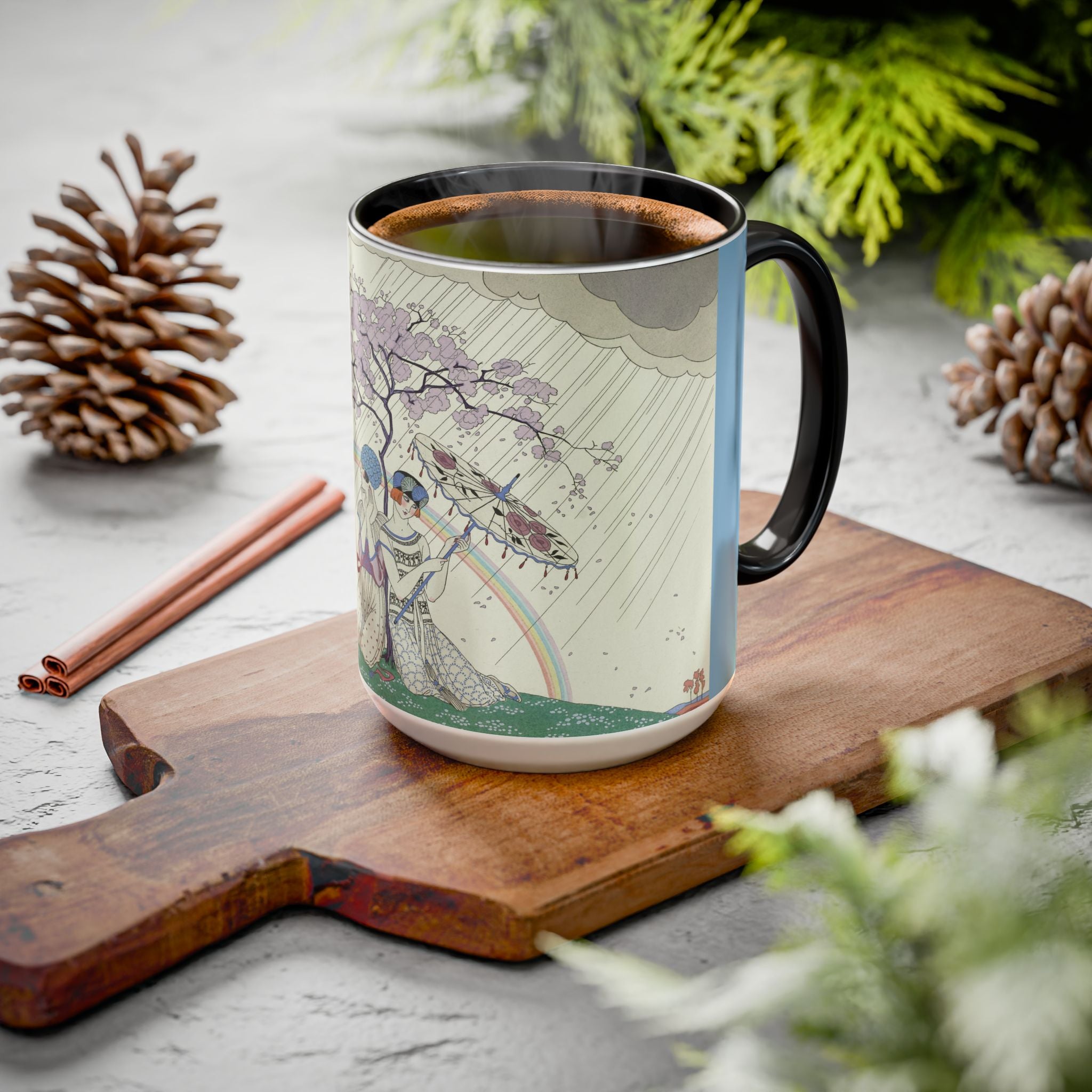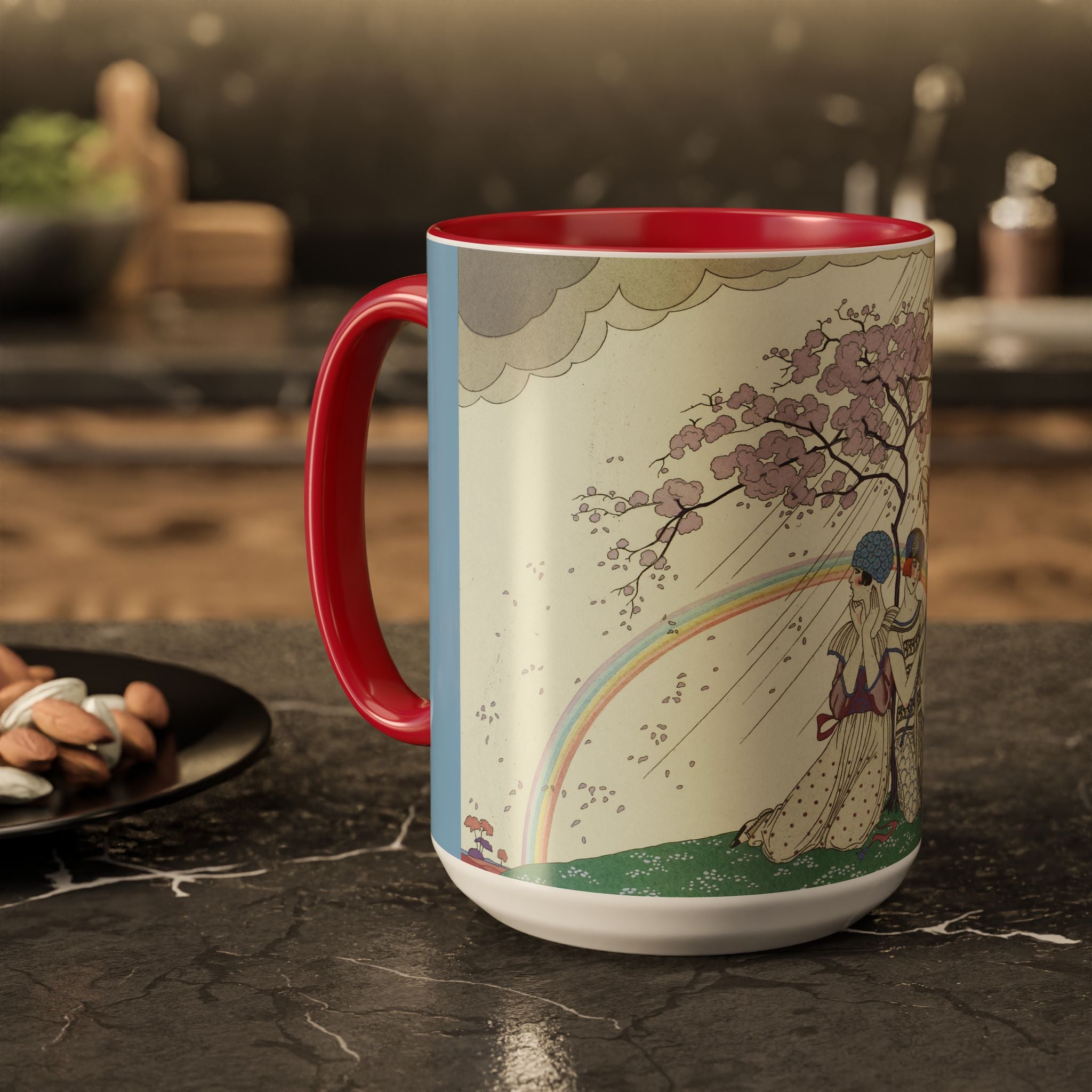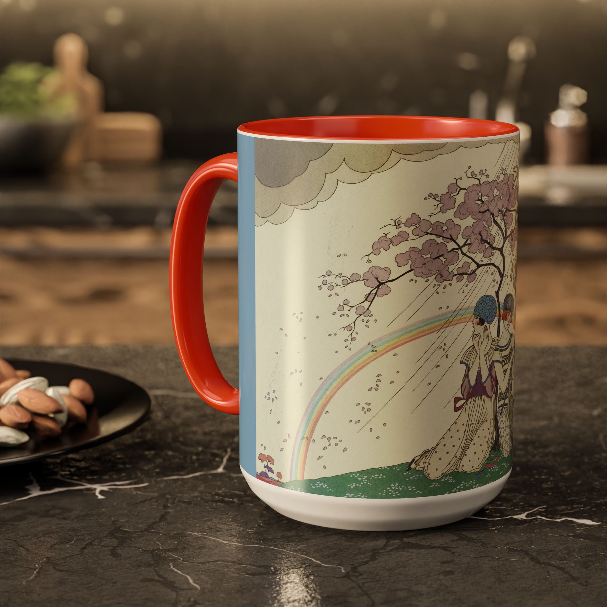 L’Arc-en-Ciel by George Barbier Colorful Mugs (11oz, 15oz) adds timeless elegance and vintage artistry to your daily ritual. These glossy ceramic mugs elevate morning coffee, cozy evening tea, or decorative display with bold interior accent colors and a refined finish that enhances the artwork. Beautiful, functional, and designed to last, they make a thoughtful gift for collectors, art lovers, and admirers of Art Deco design.