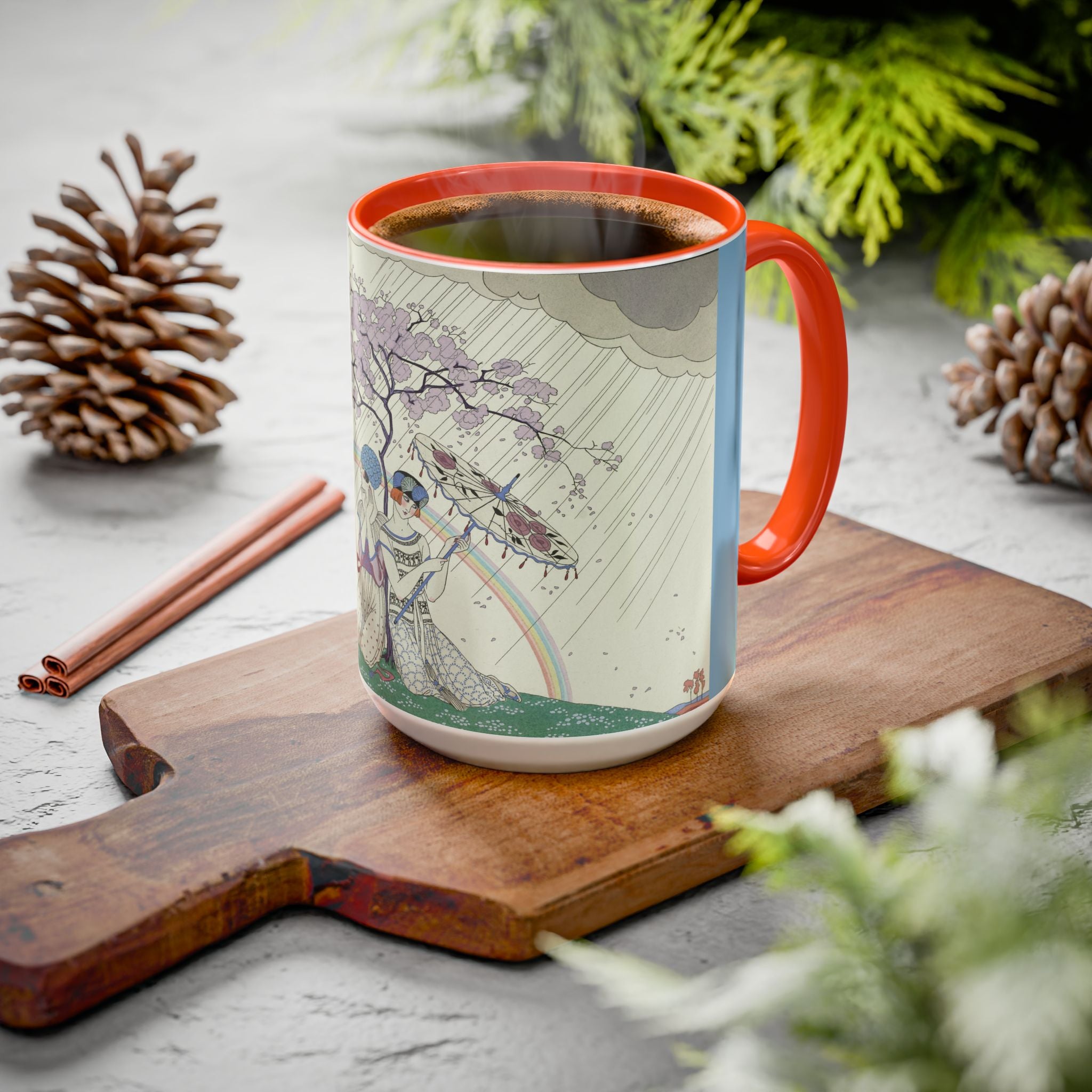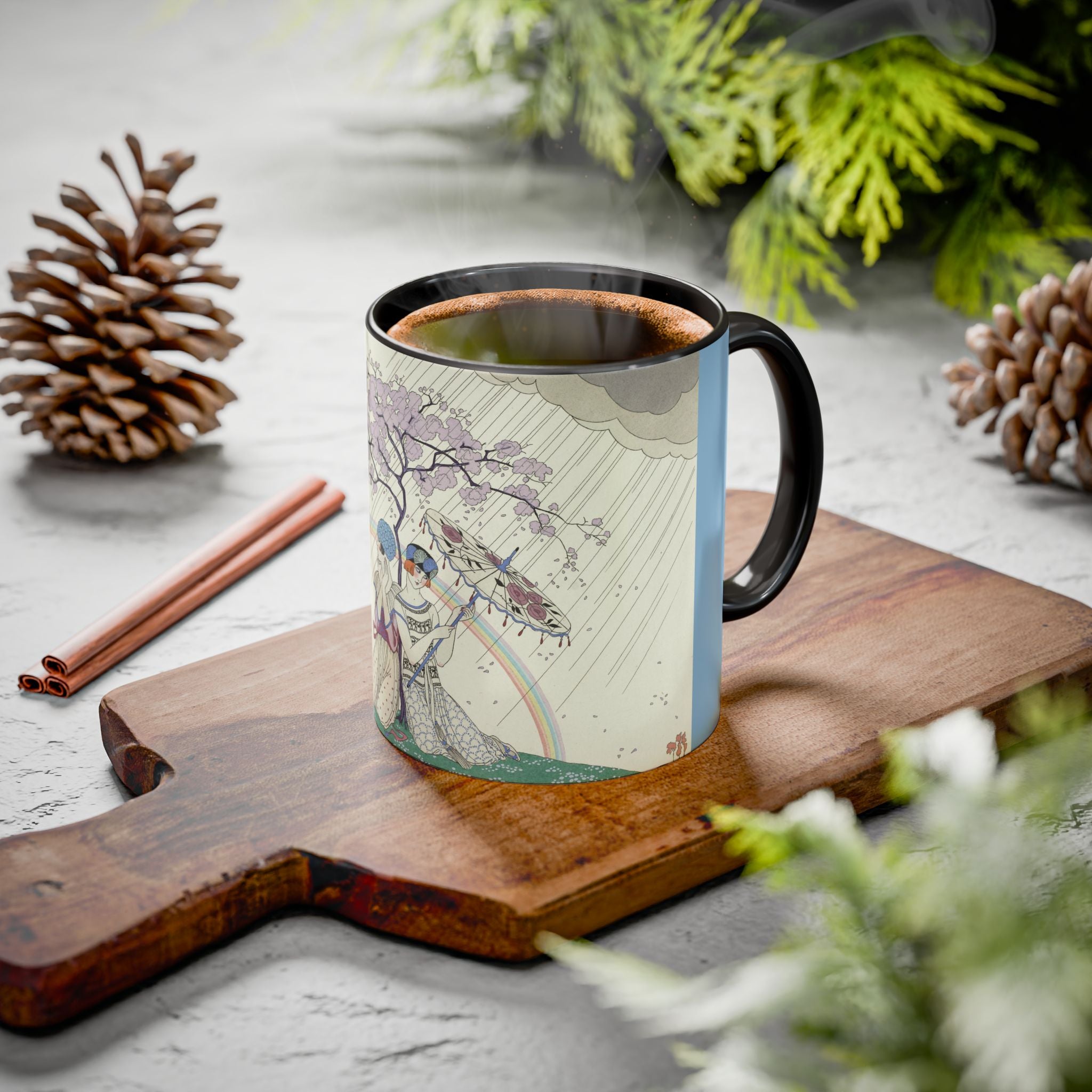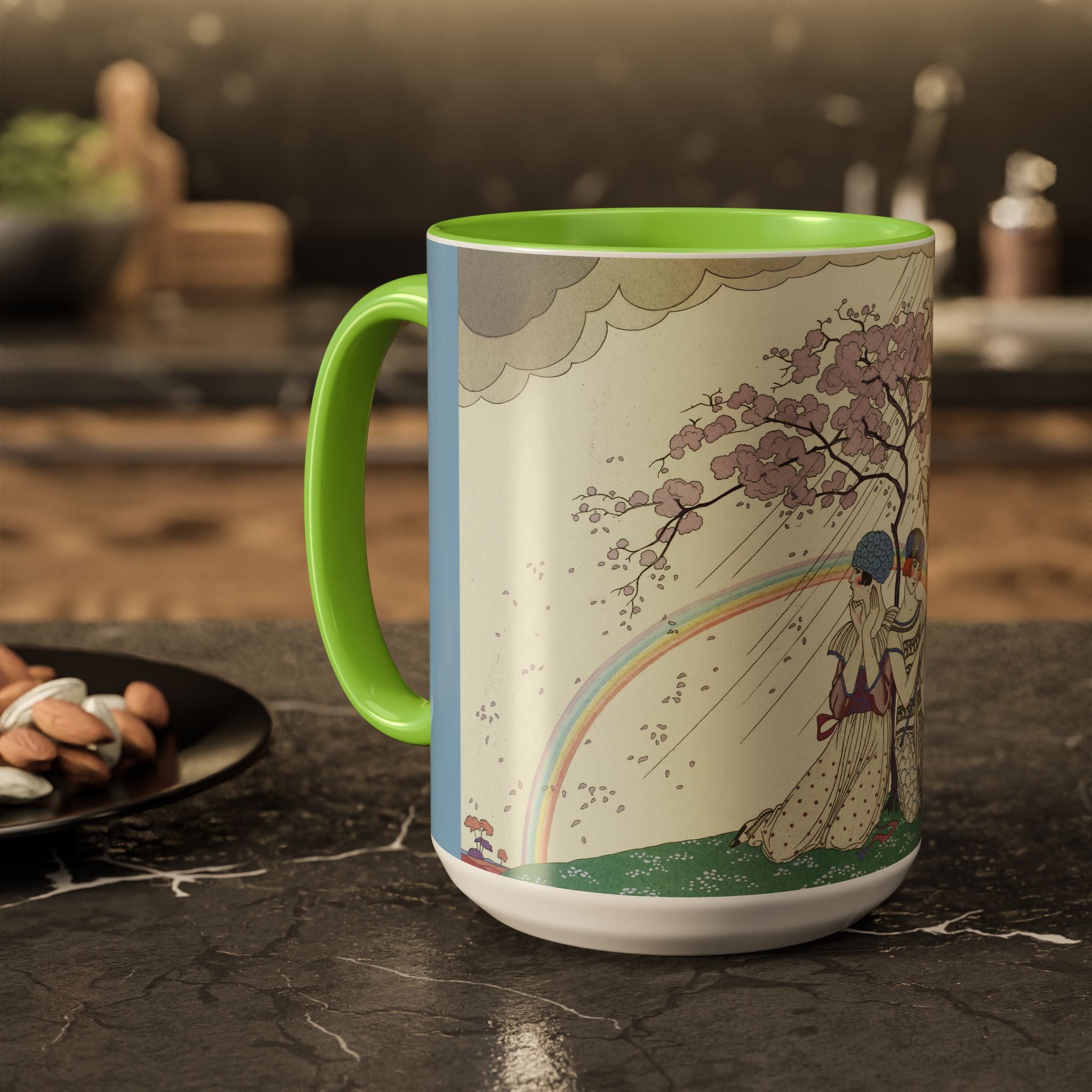 L’Arc-en-Ciel by George Barbier Colorful Mugs (11oz, 15oz) adds timeless elegance and vintage artistry to your daily ritual. These glossy ceramic mugs elevate morning coffee, cozy evening tea, or decorative display with bold interior accent colors and a refined finish that enhances the artwork. Beautiful, functional, and designed to last, they make a thoughtful gift for collectors, art lovers, and admirers of Art Deco design.