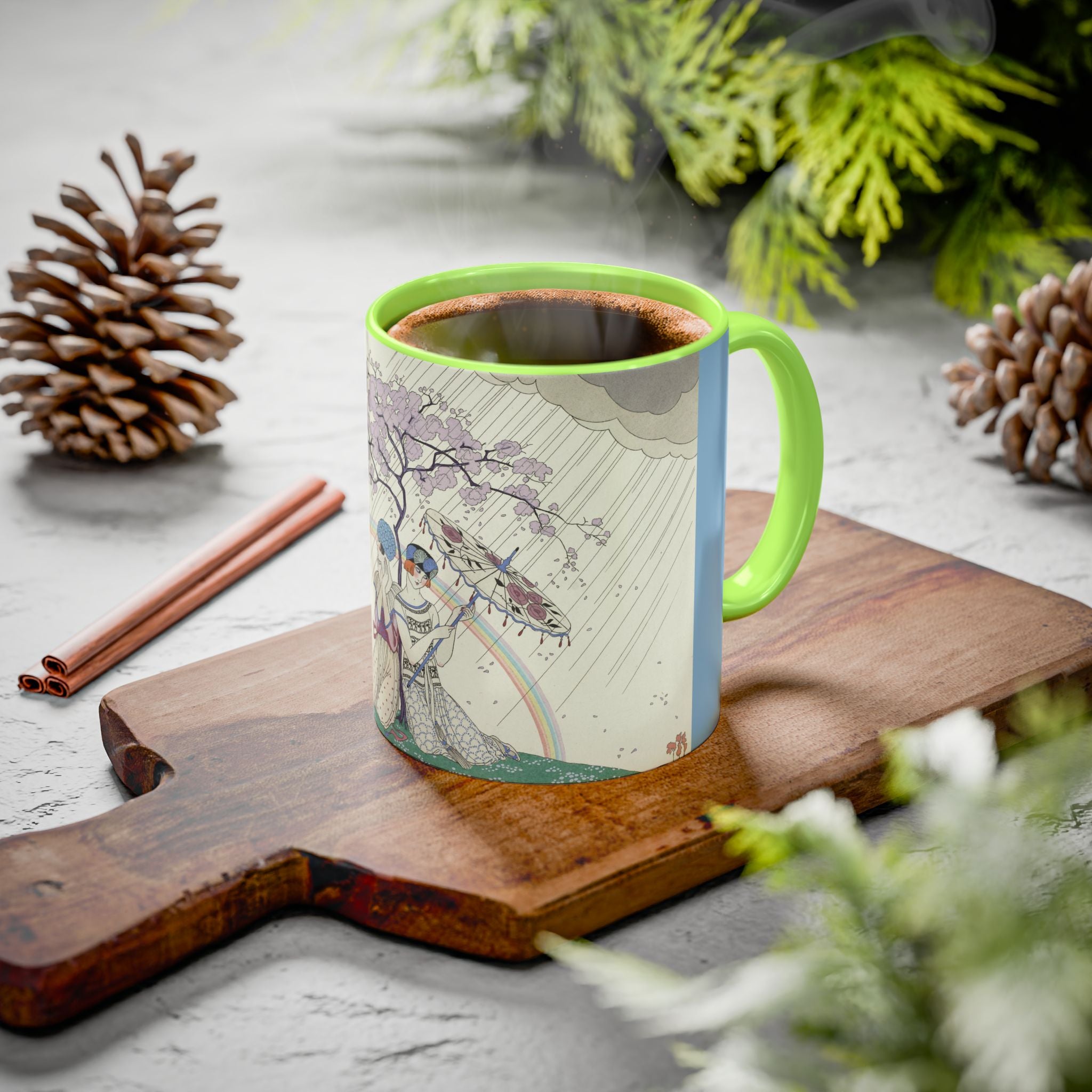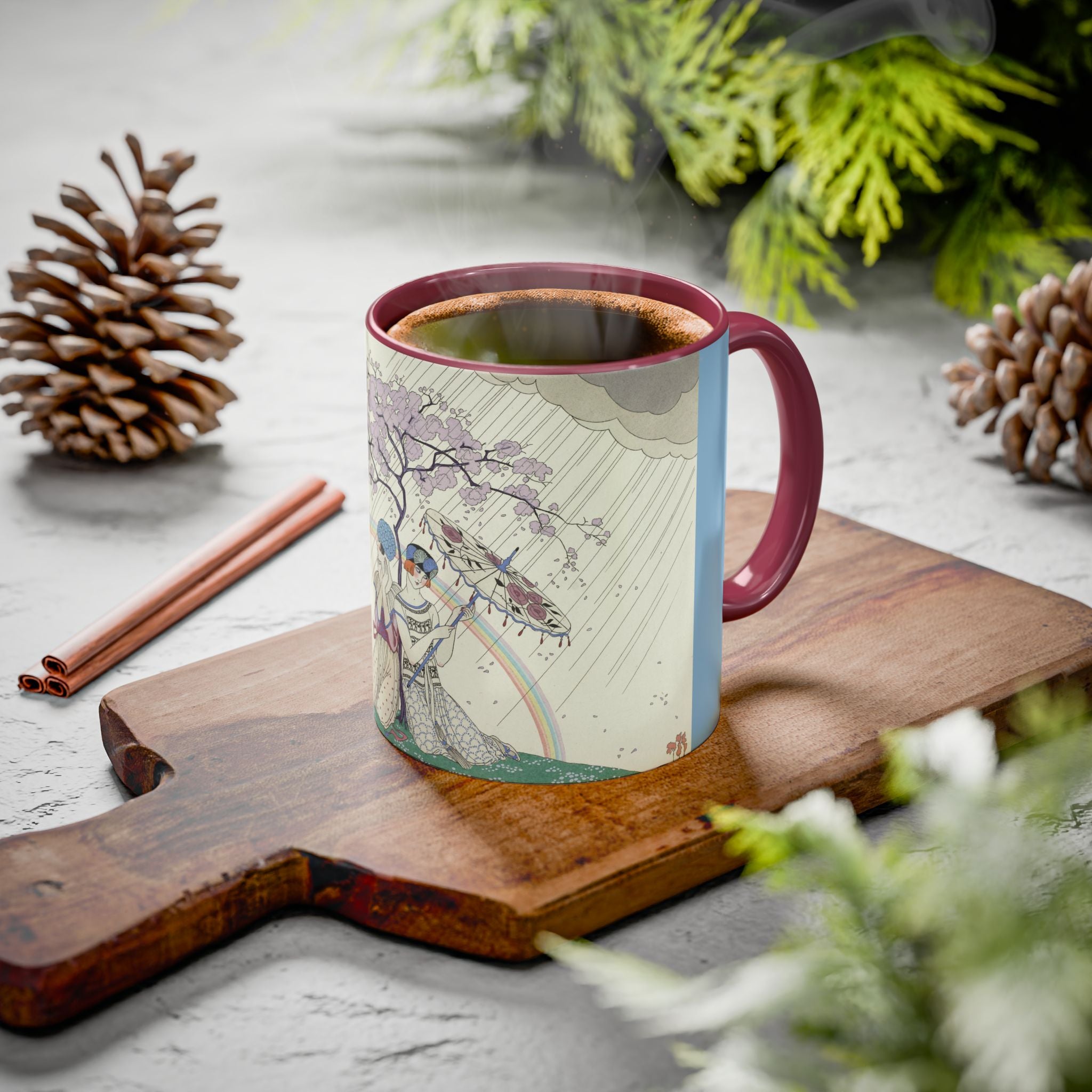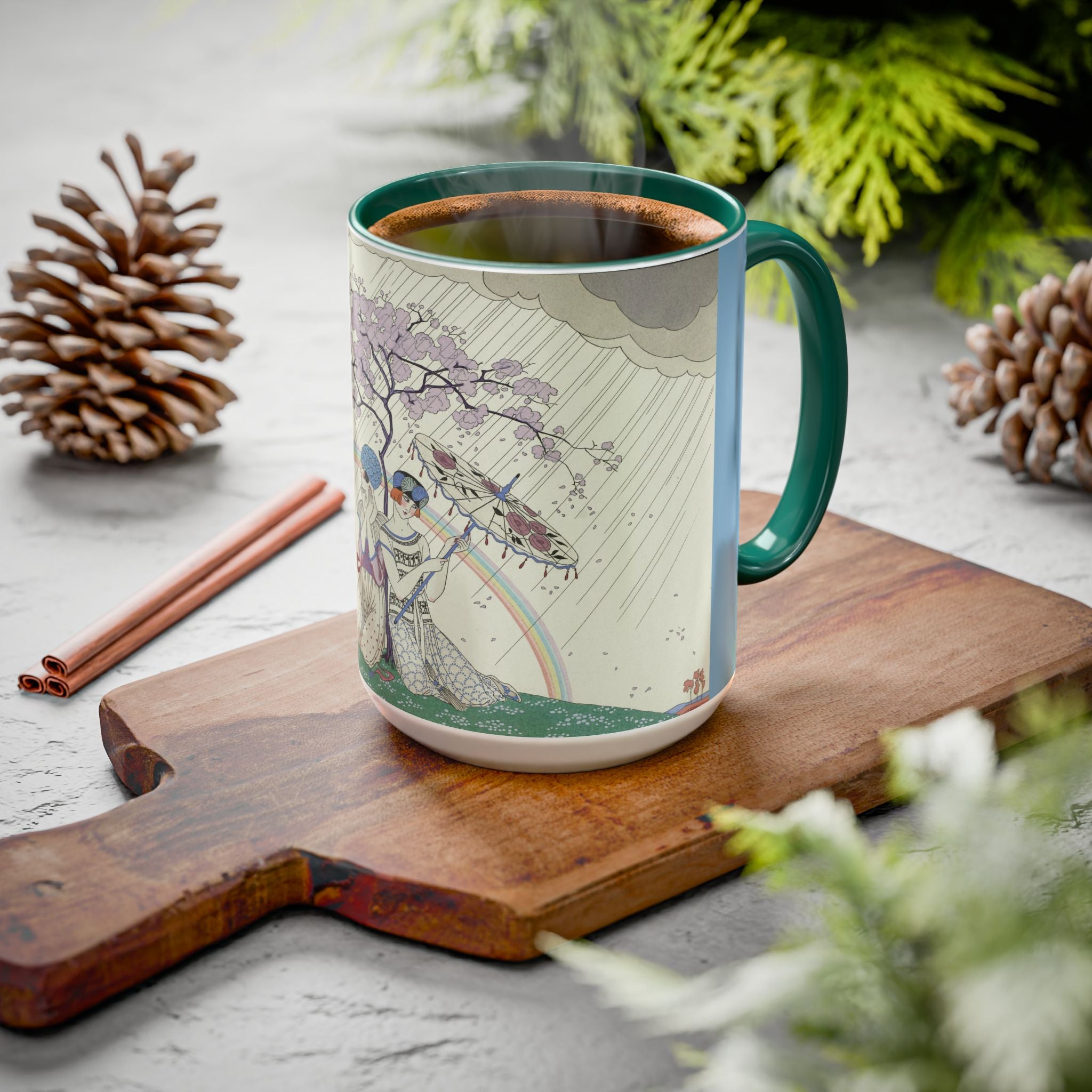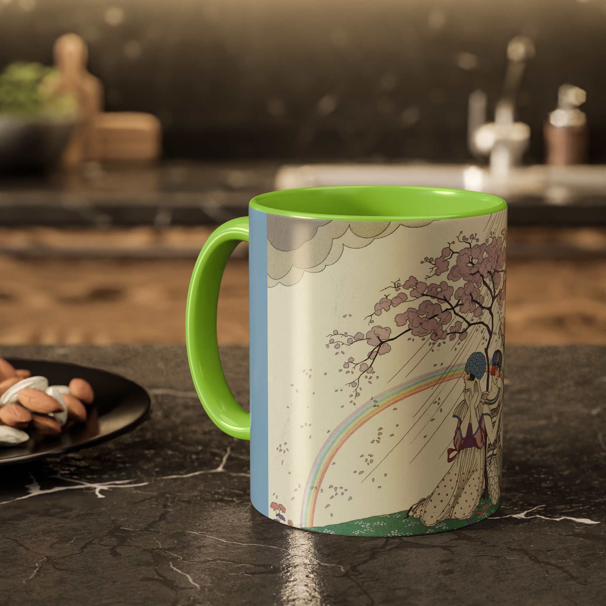 L’Arc-en-Ciel by George Barbier Colorful Mugs (11oz, 15oz) adds timeless elegance and vintage artistry to your daily ritual. These glossy ceramic mugs elevate morning coffee, cozy evening tea, or decorative display with bold interior accent colors and a refined finish that enhances the artwork. Beautiful, functional, and designed to last, they make a thoughtful gift for collectors, art lovers, and admirers of Art Deco design.