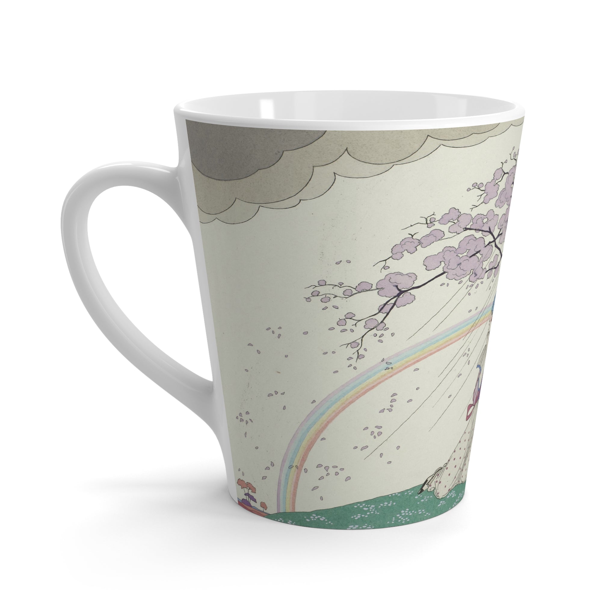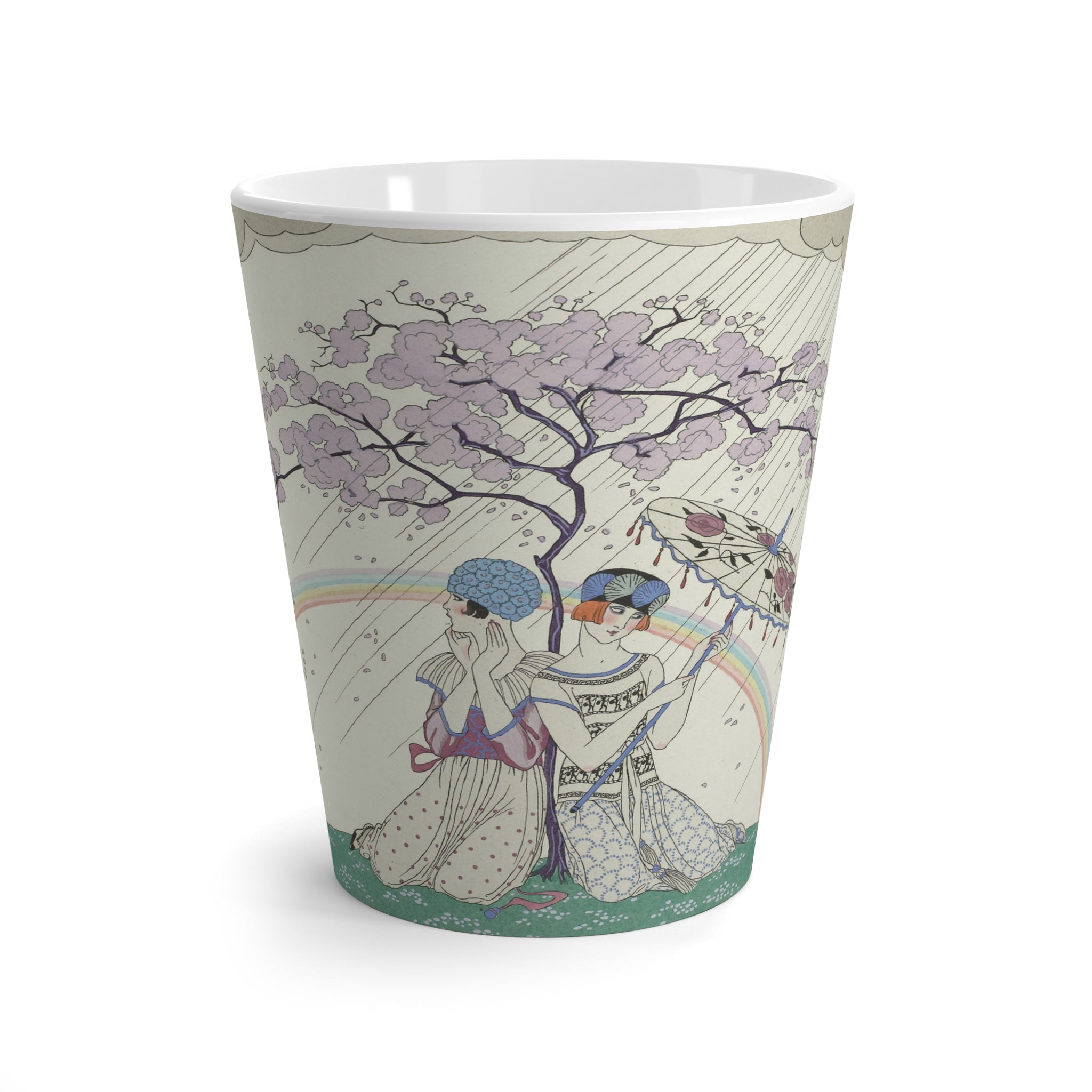 Indulge in your latte moments with elegance and artistry, featuring the L’Arc-en-Ciel by George Barbier latte mug. Showcasing Barbier’s exquisite 1924 artwork "L’Arc-en-Ciel," this mug captures the serene charm of two women sheltering under a tree with a radiant rainbow—a beautiful symbol of nature's tranquility and beauty.