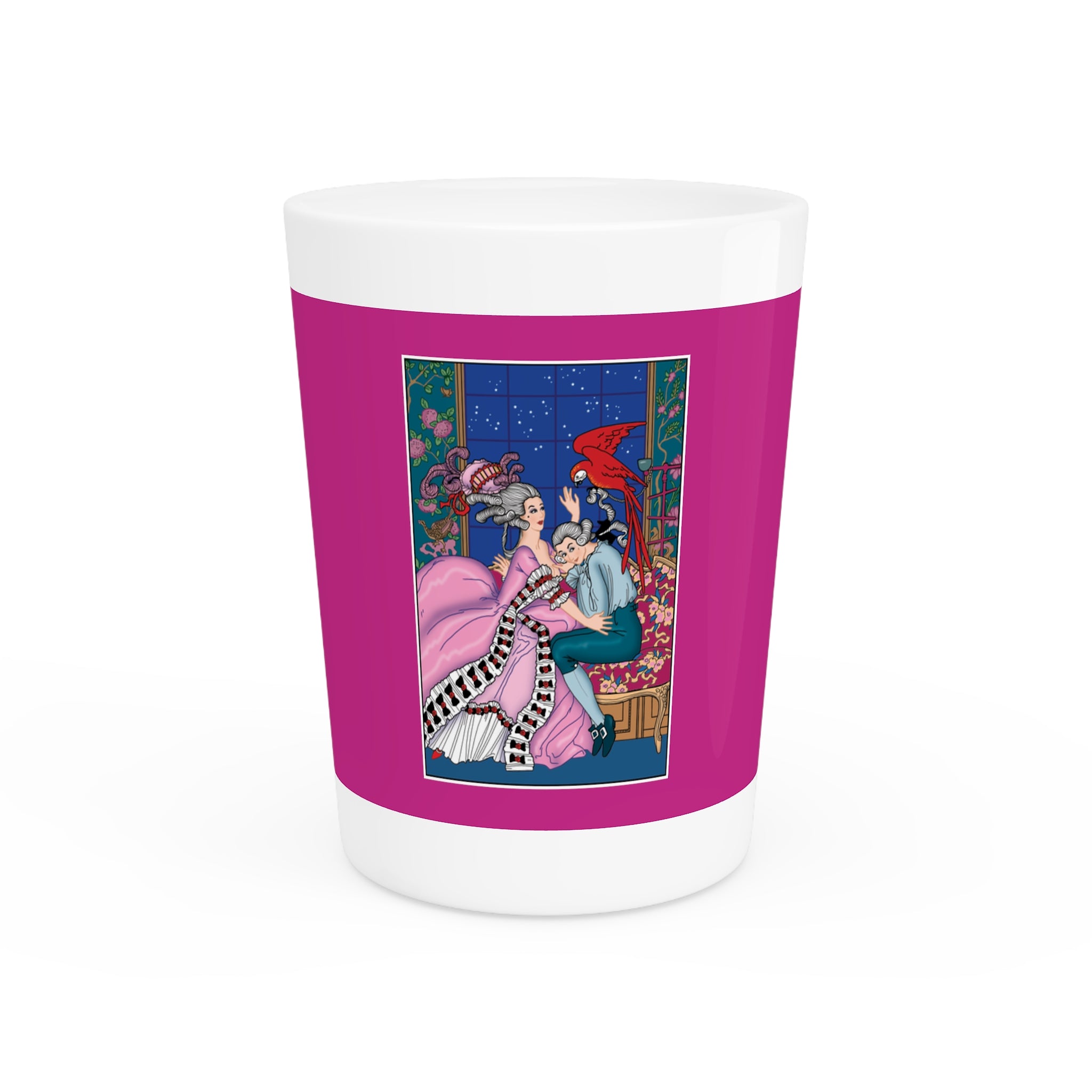 Elevate your gatherings or professional setting with this exclusive shot glass, featuring captivating vintage art. Crafted from premium ceramic material, this unique shot glass offers a choice of a pristine white or sleek black interior. Whether you're seeking to enhance your collection, offer a touch of sophistication to your venue, or give a gift, this shot glass serves as an exquisite canvas for showcasing the captivating artwork, making it a one-of-a-kind addition to your setting.