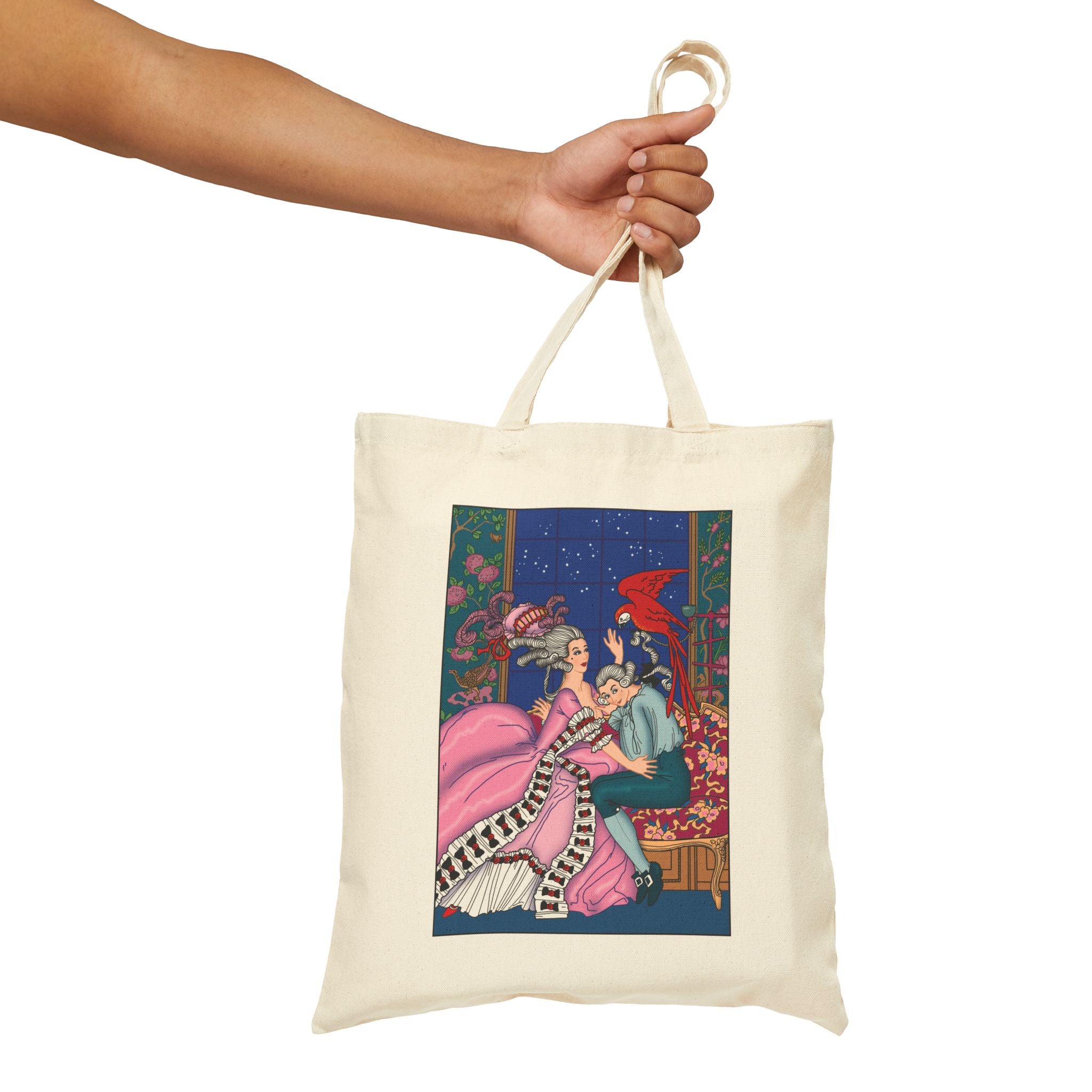 This 100% cotton bag comes in one size – 15" x 16"– perfect for everyday wear. While the canvas material will show off the art deco inspired design in great colors, it's durable and will last for years. The bag features 20" handles (made from the same canvas), making it easy to carry even with a week's worth of shopping.