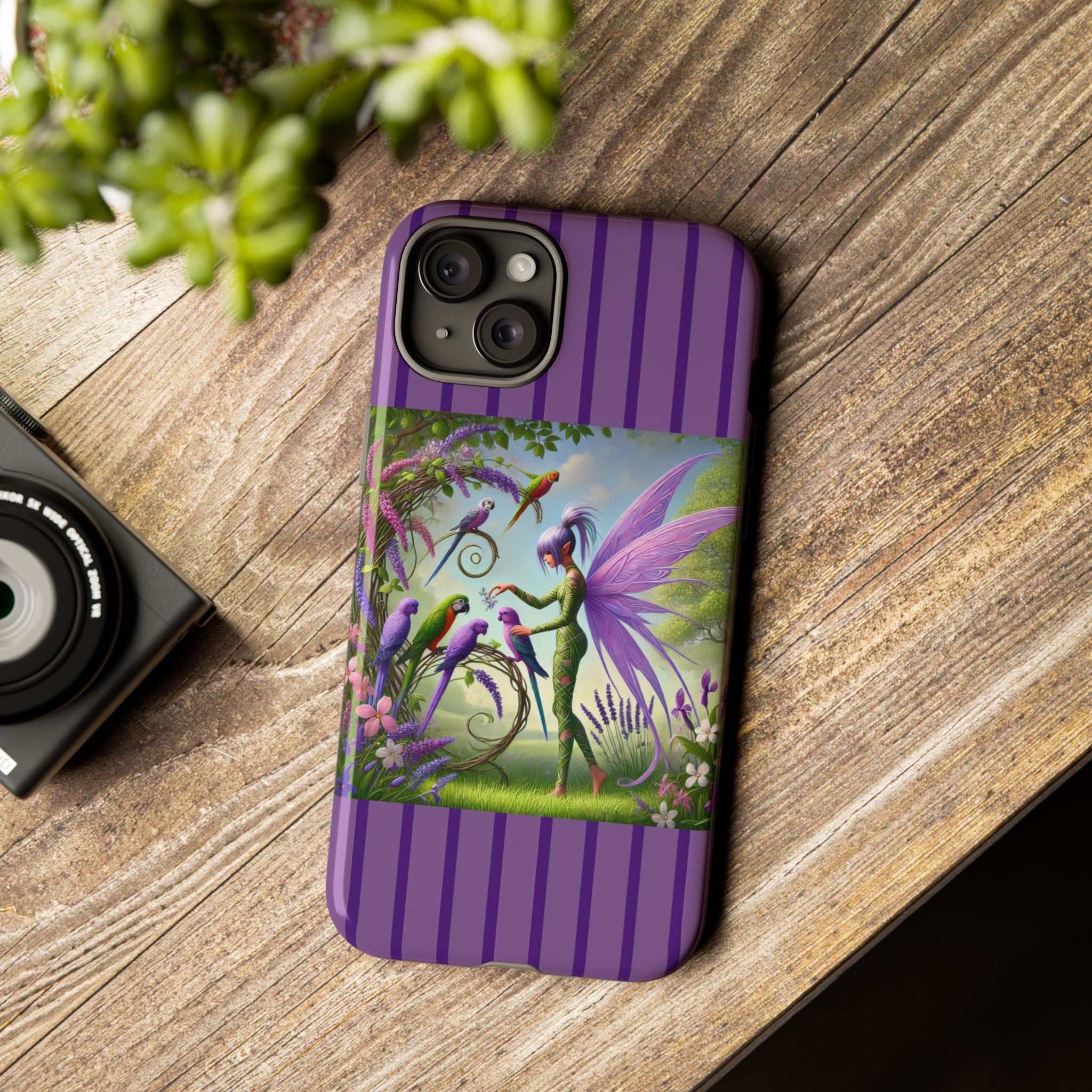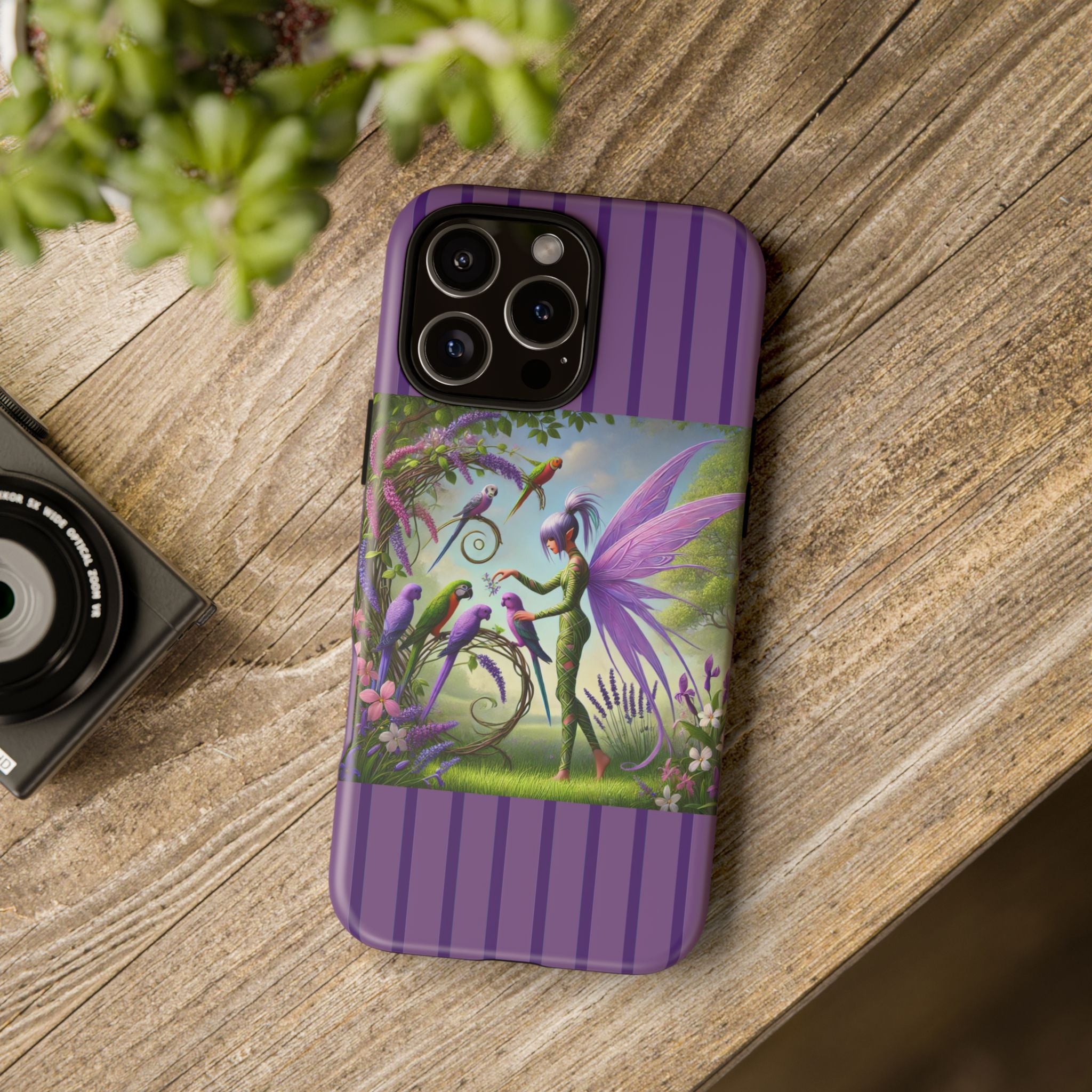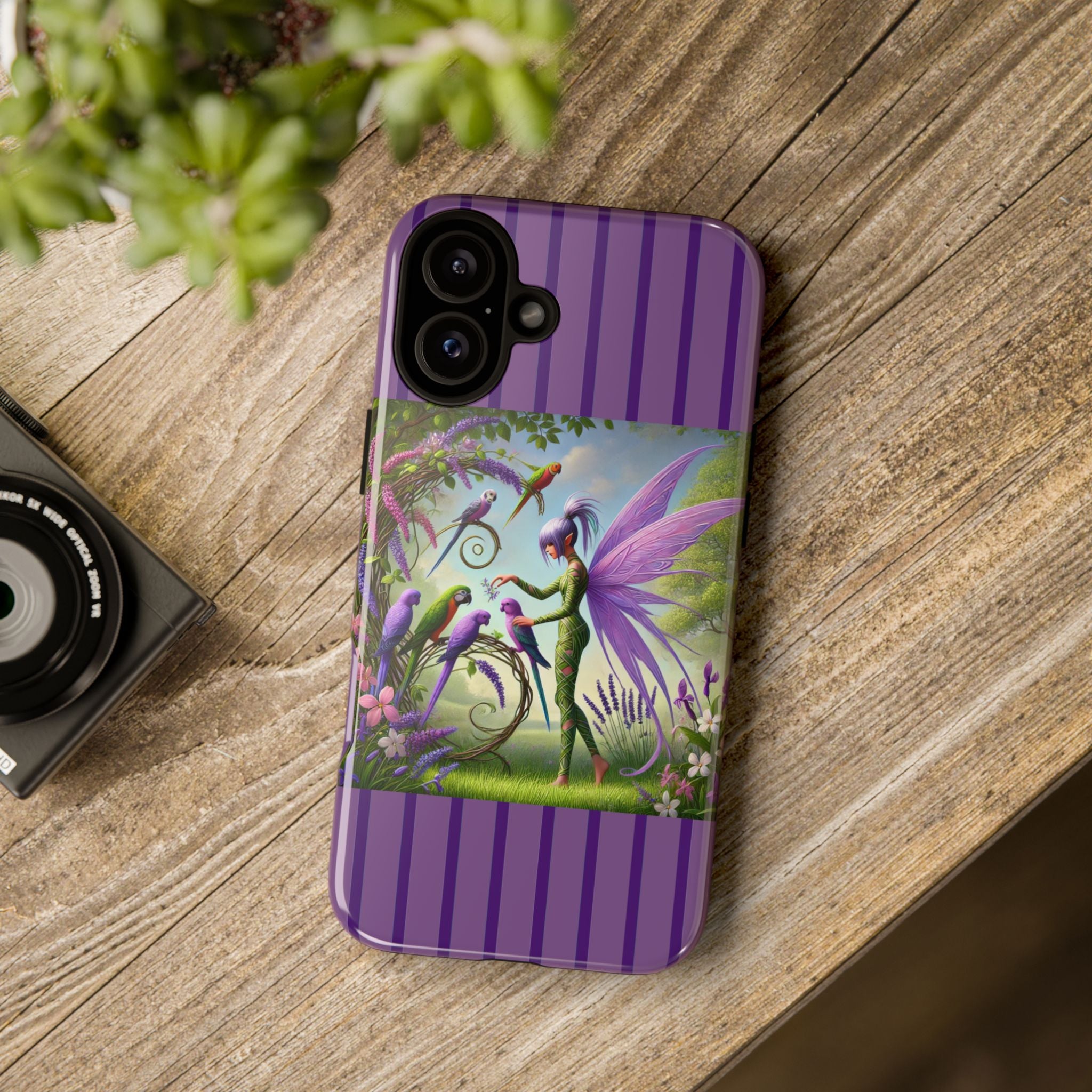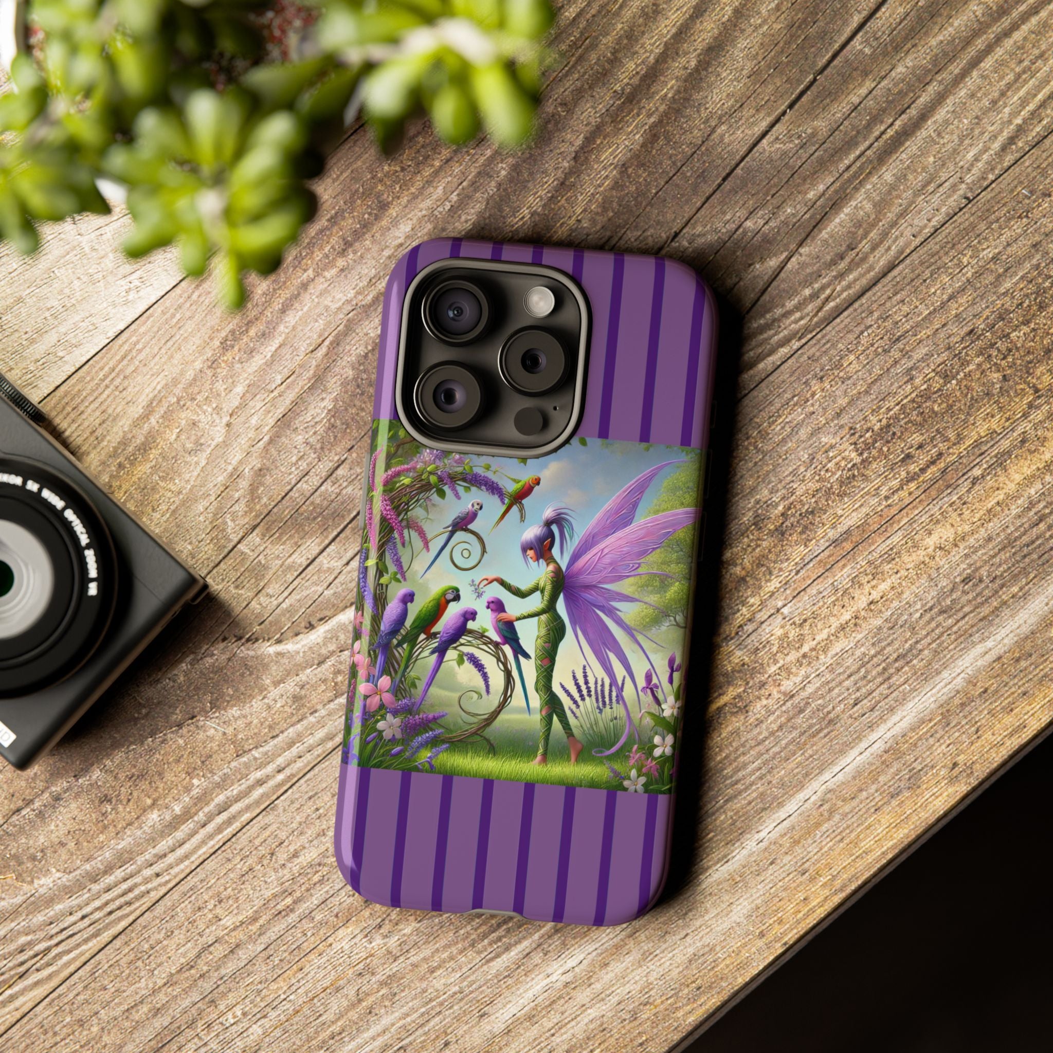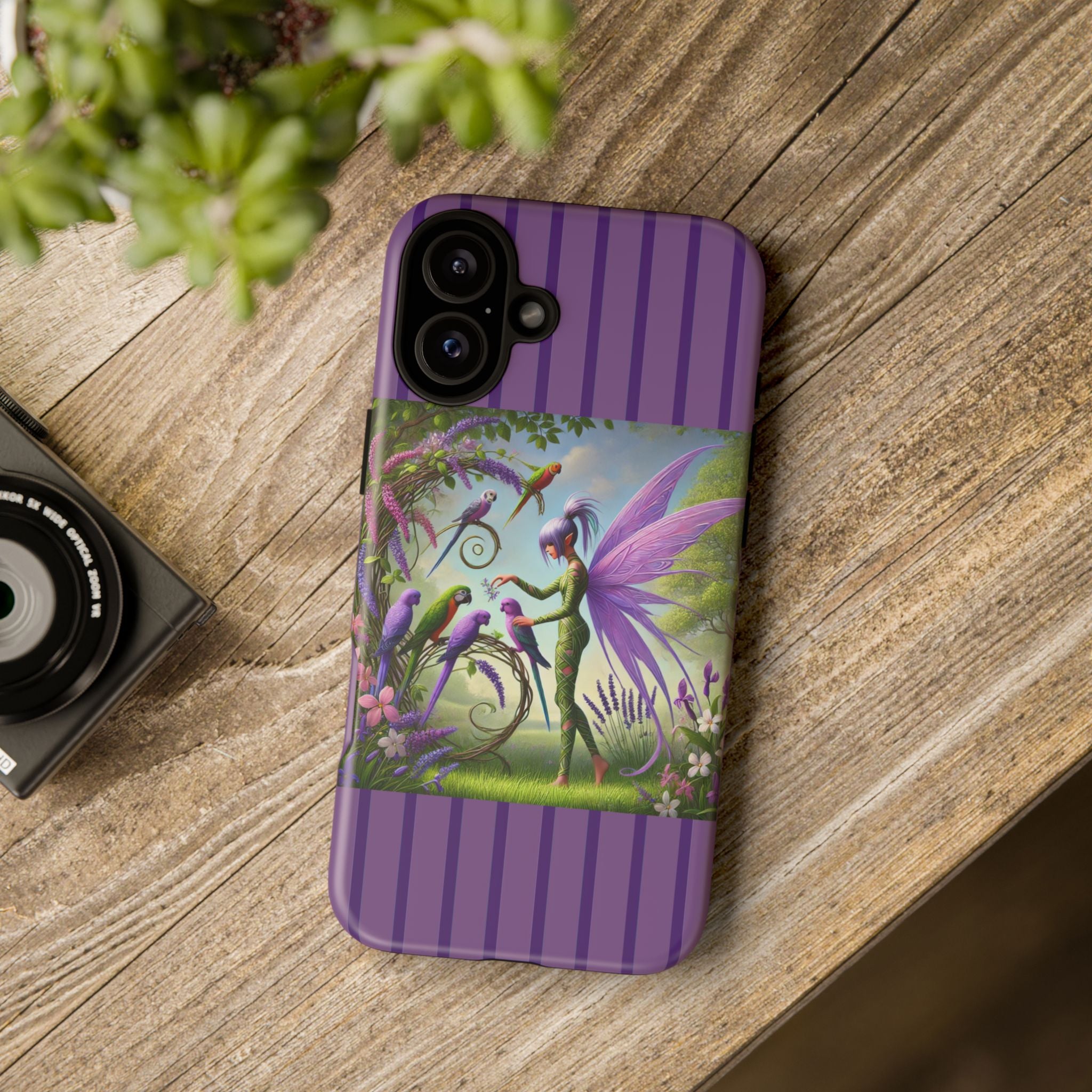 Lavender-Winged Fairy Phone Case transforms your phone into a scene of dreamy elegance and modern charm. Designed for iPhone, Samsung Galaxy, and Google Pixel devices, this case blends fine artistry with reliable protection. The design features a long, stylish fairy with shimmering lavender wings surrounded by vibrantly colored parrots under soft natural daylight. Lush greenery and blooms in shades of purple, pink, and white create an atmosphere of whimsy and freshness—capturing the magic of spring with contemporary sophistication. Choose a glossy or matte finish to bring this enchanting illustration to life while keeping your phone safe and stylish.