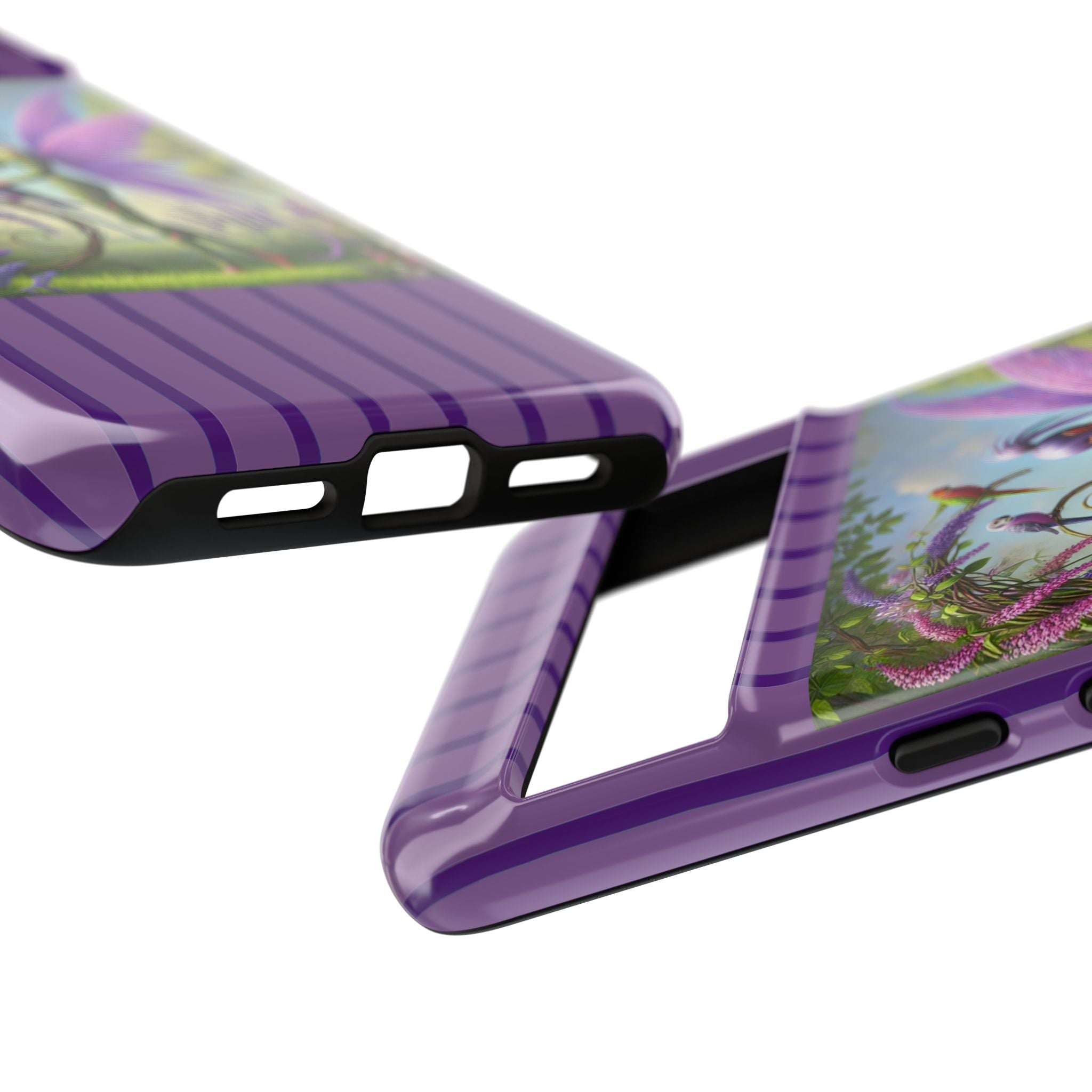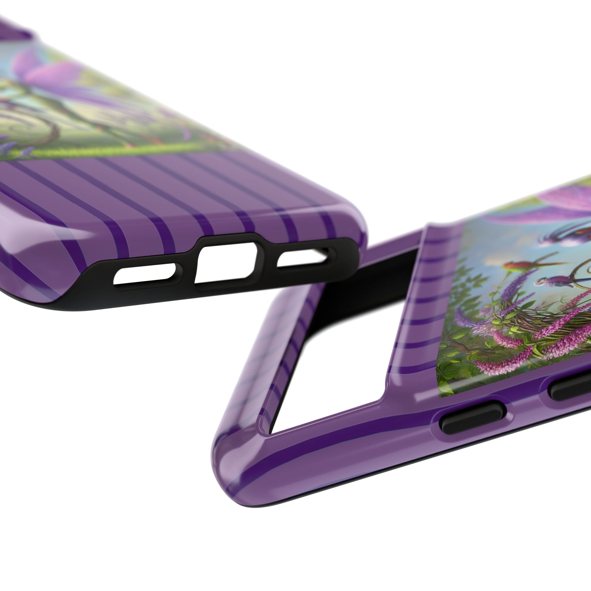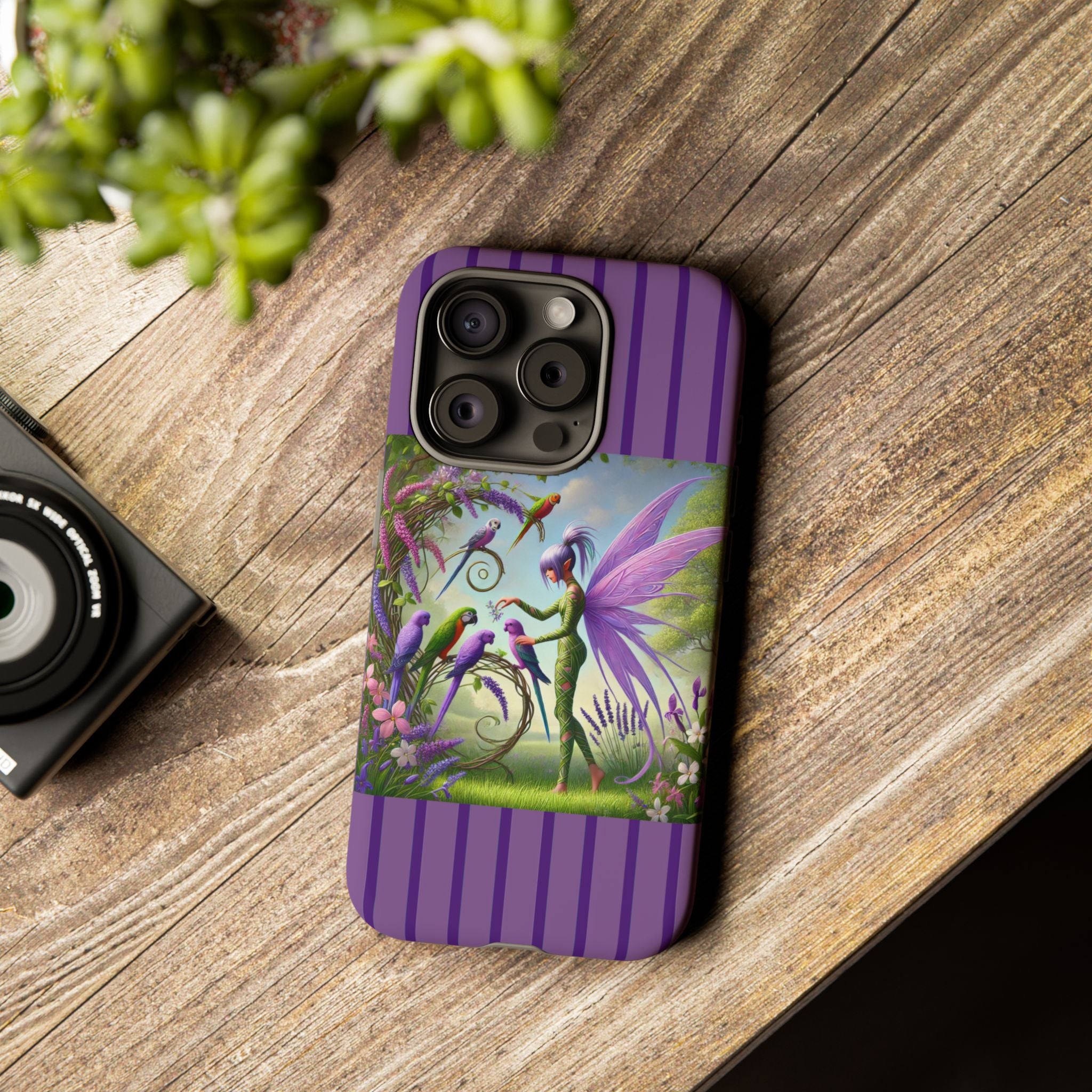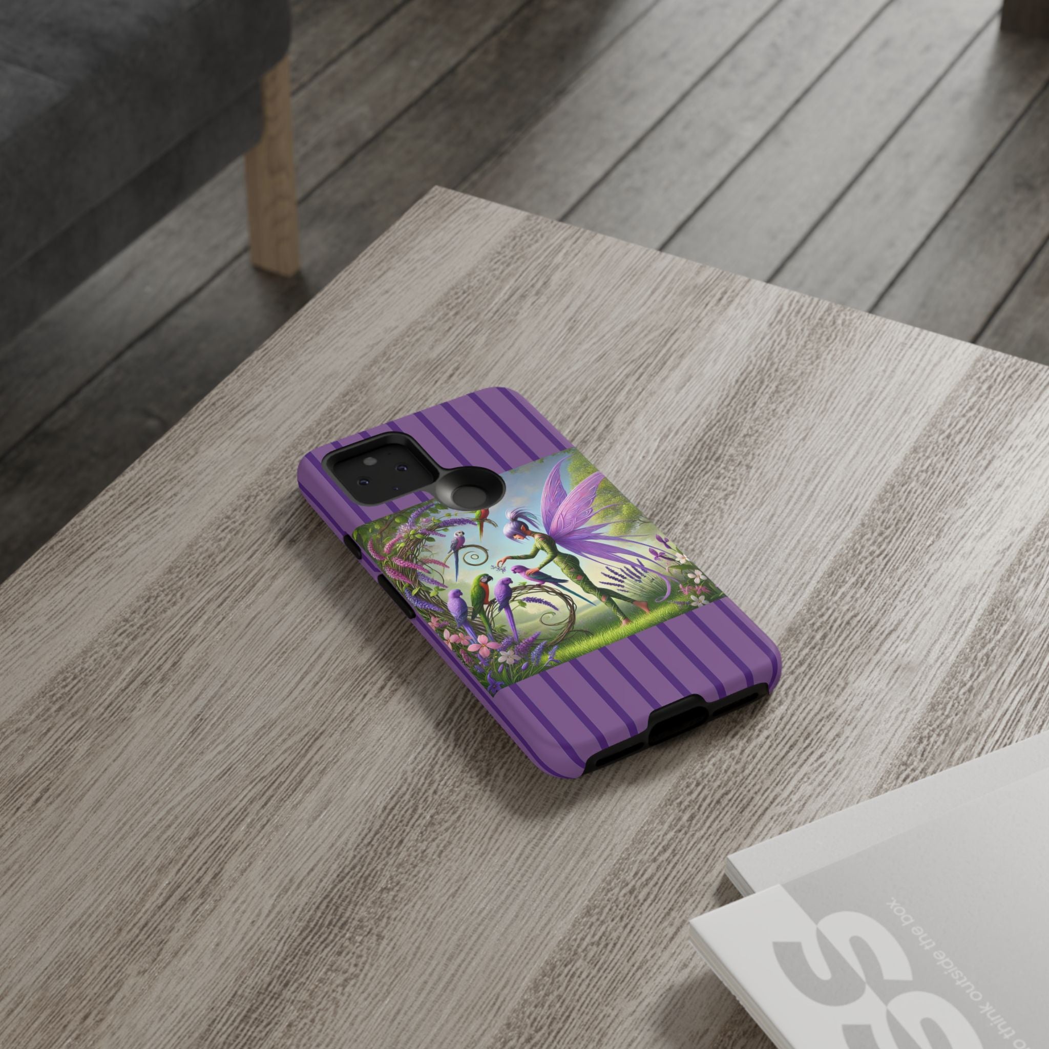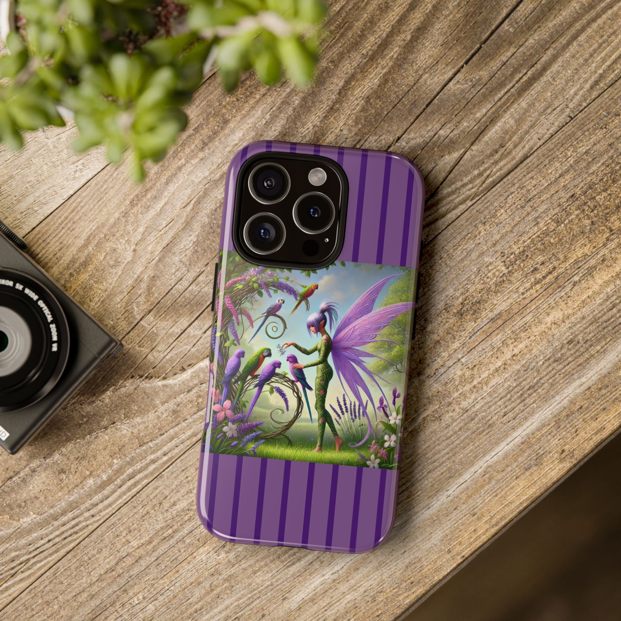 Lavender-Winged Fairy Phone Case transforms your phone into a scene of dreamy elegance and modern charm. Designed for iPhone, Samsung Galaxy, and Google Pixel devices, this case blends fine artistry with reliable protection. The design features a long, stylish fairy with shimmering lavender wings surrounded by vibrantly colored parrots under soft natural daylight. Lush greenery and blooms in shades of purple, pink, and white create an atmosphere of whimsy and freshness—capturing the magic of spring with contemporary sophistication. Choose a glossy or matte finish to bring this enchanting illustration to life while keeping your phone safe and stylish.