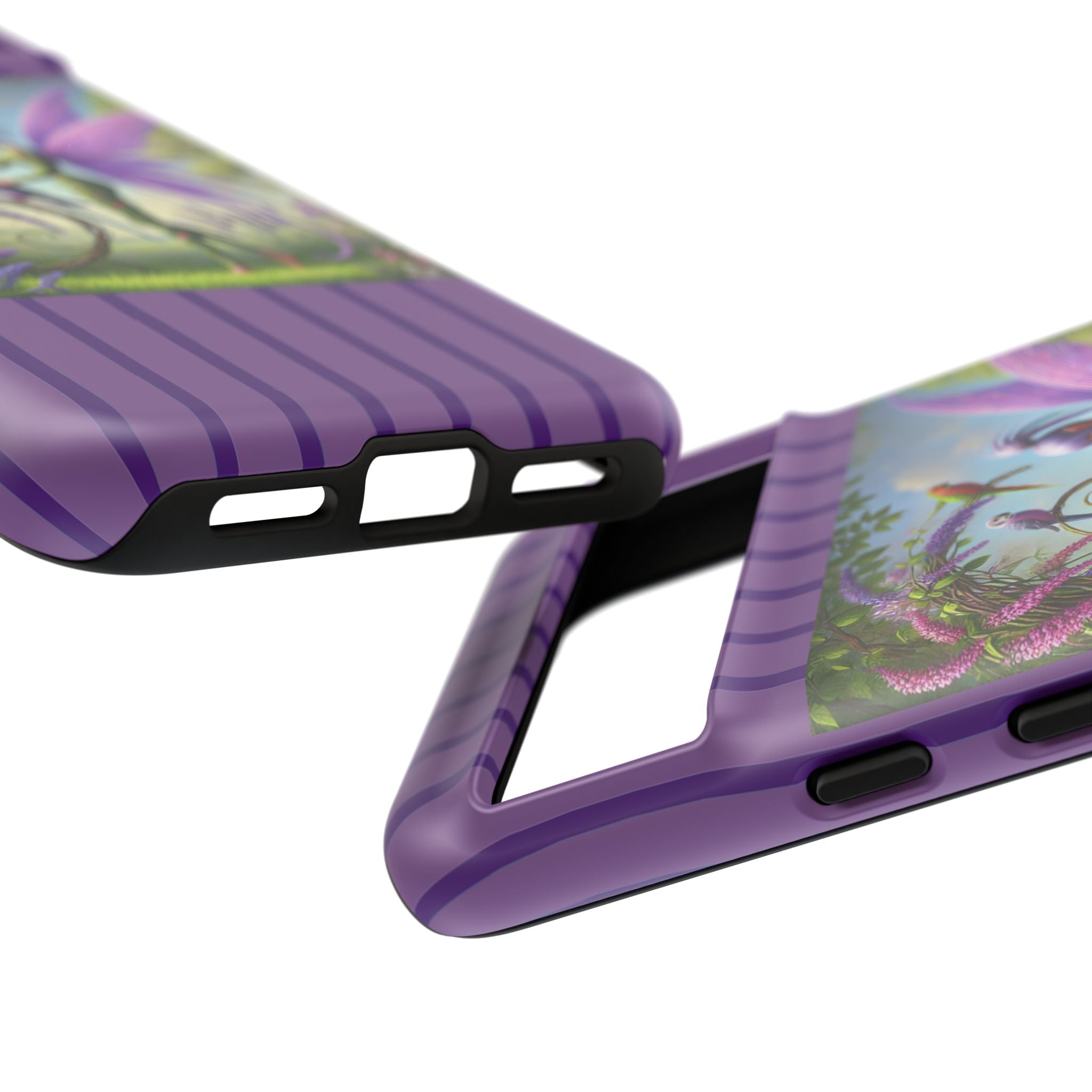 Artwork created, designed, and digitally remastered by Sarasvati Designs. The Lavender-Winged Fairy illustration evokes a sense of ethereal beauty, where nature and fantasy intertwine. With its delicate balance of color, composition, and light, this artwork invites the imagination to wander through a world of serenity and wonder—making it more than just a phone case, but a small piece of art you can carry every day.