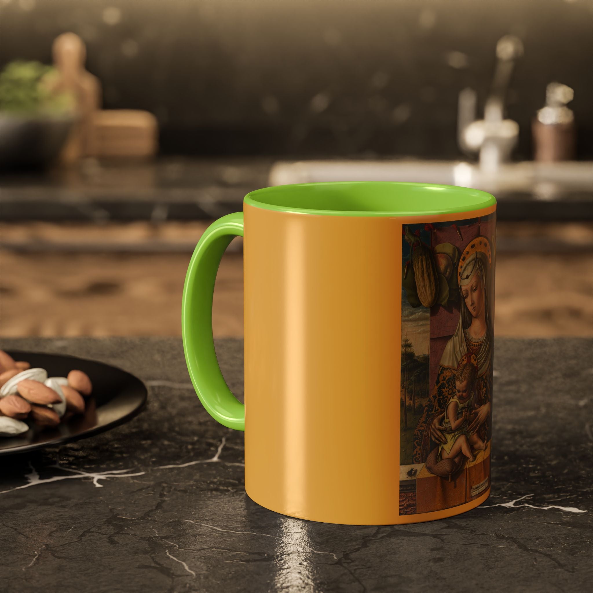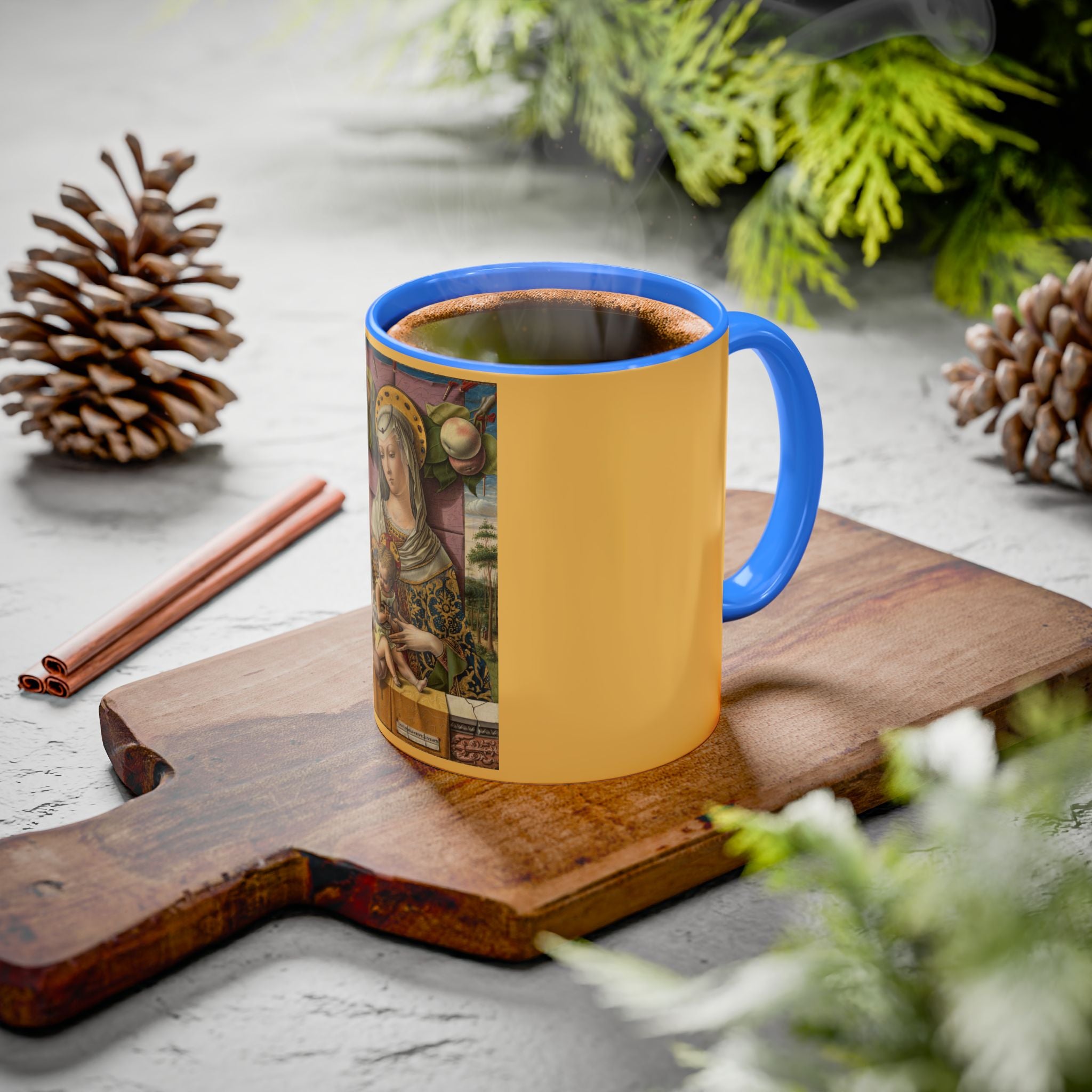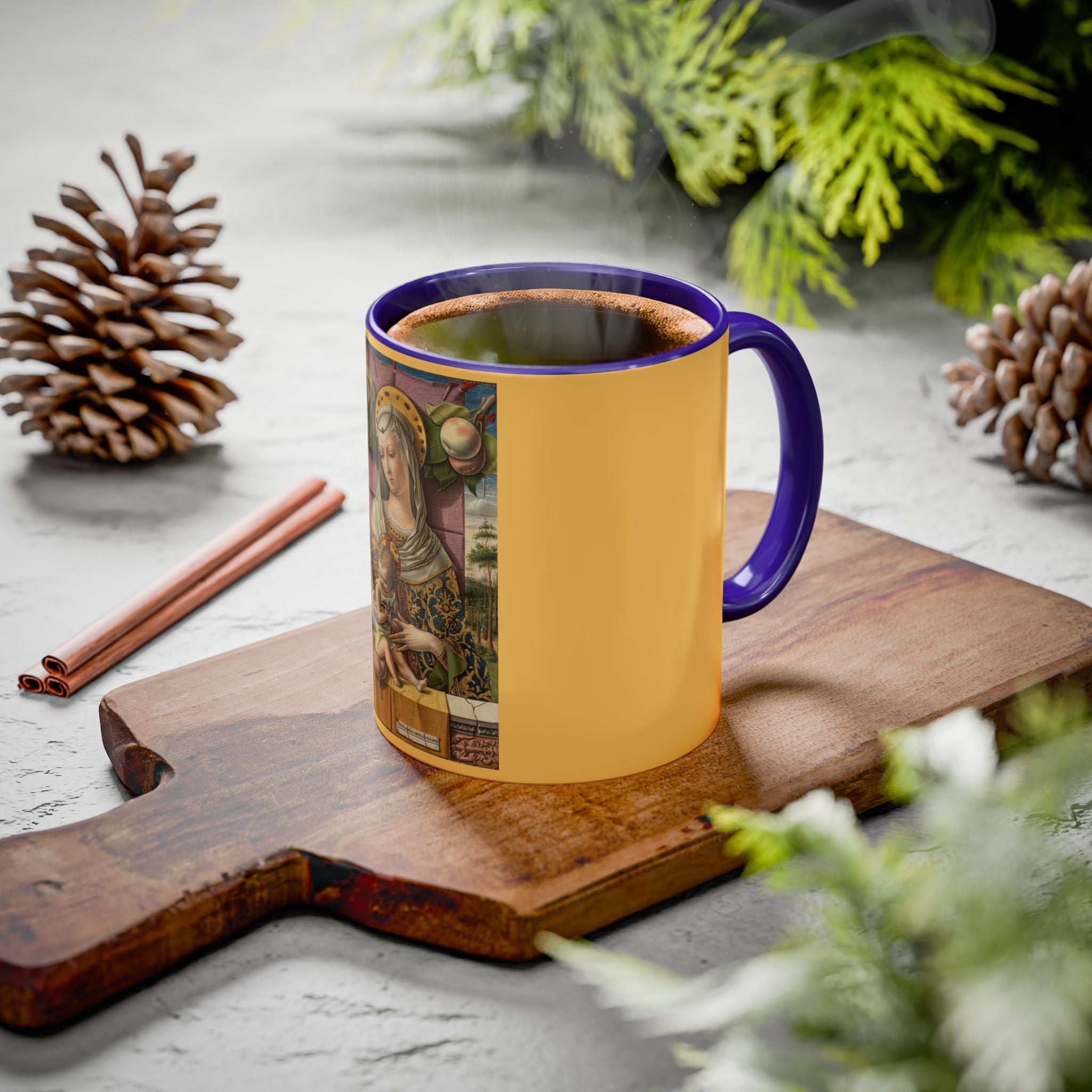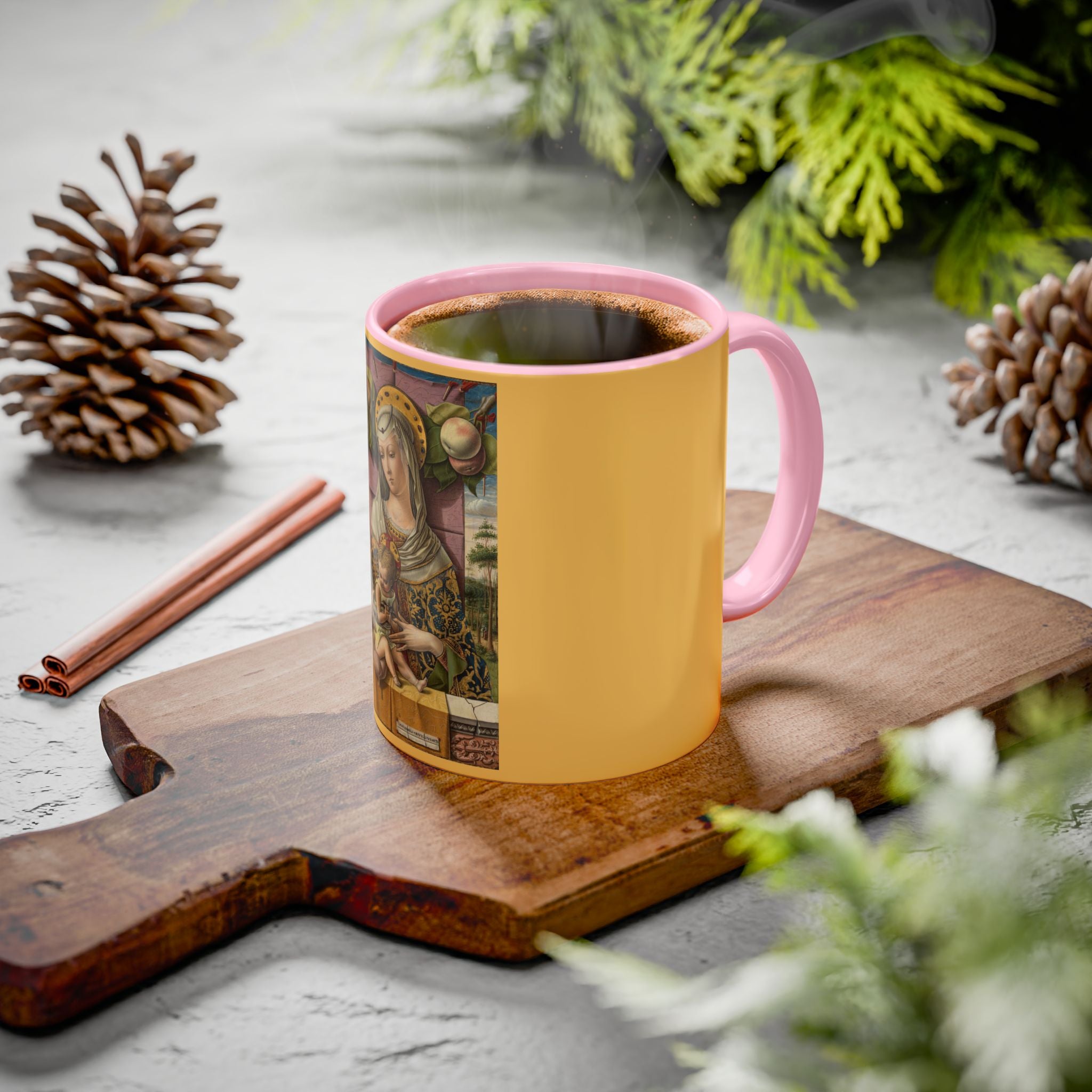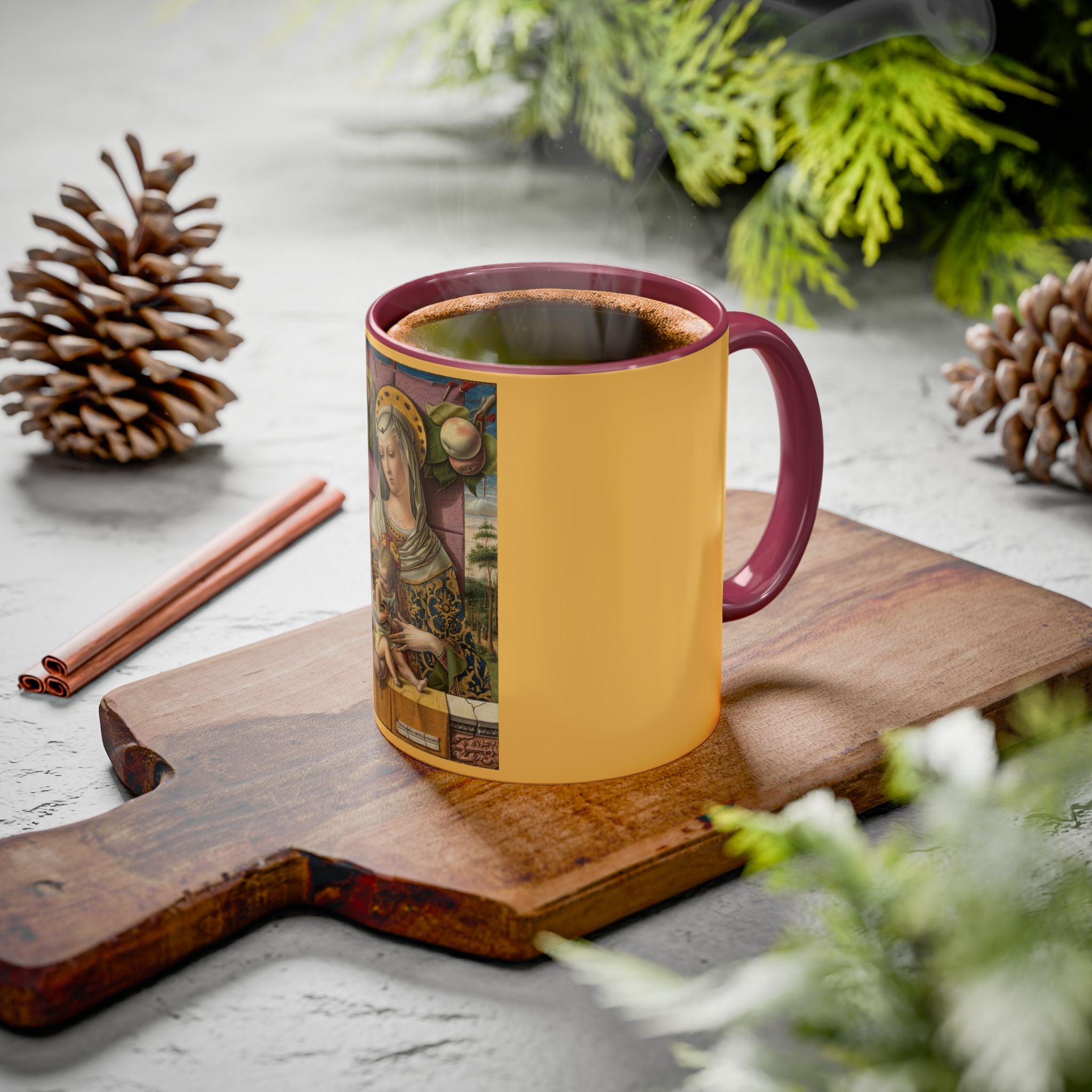 Mugs are a kitchen essential, and when infused with a charming touch, they transform into cherished favorites. These mugs, offered in 12 vibrant color choices, can hold up to 11oz of your preferred rejuvenating beverage and feature a colored handle and interior. The glossy finish adds an elegant accent that beautifully complements the high-fidelity artwork print, making them not only a delightful addition to your kitchen but also a fantastic choice for thoughtful gifts.