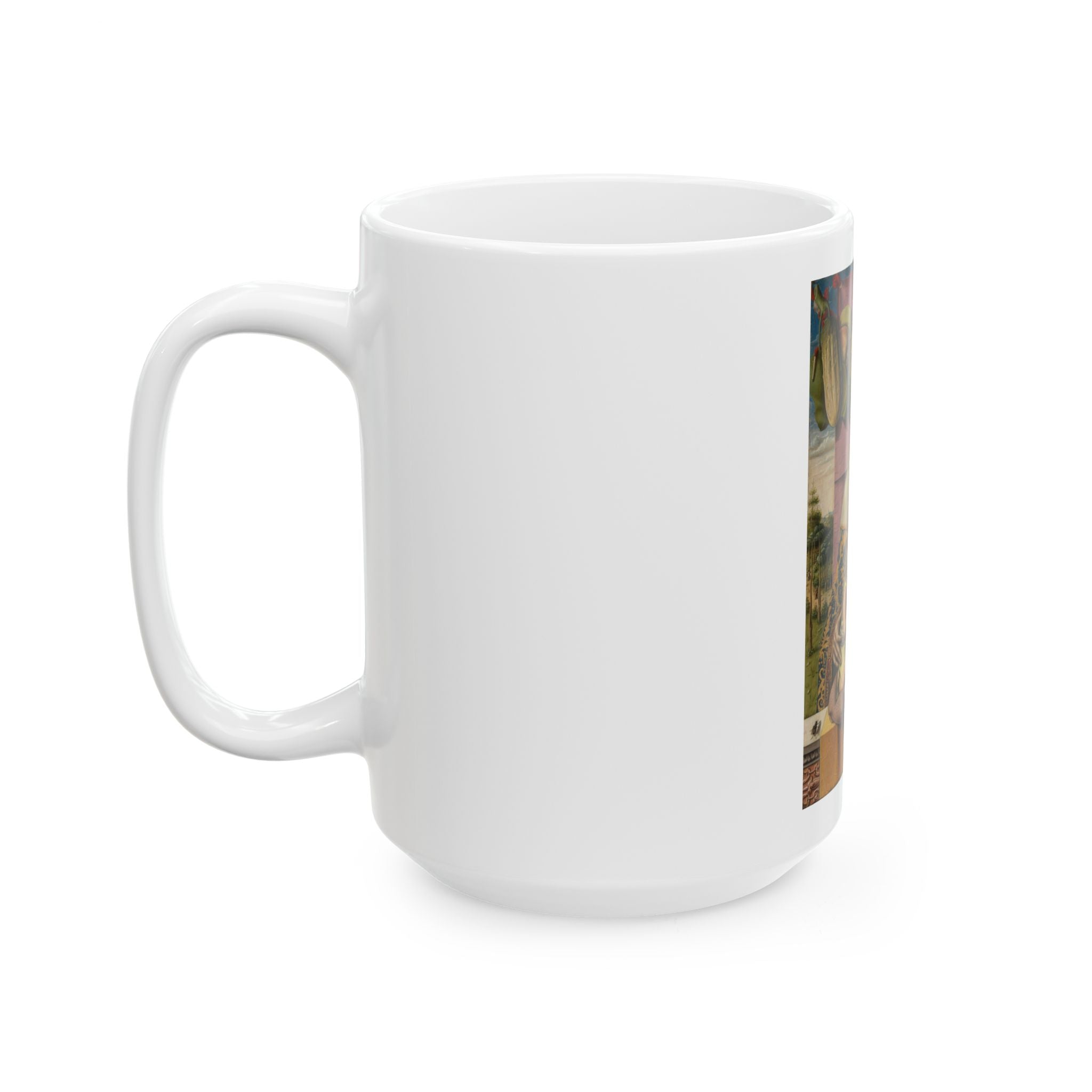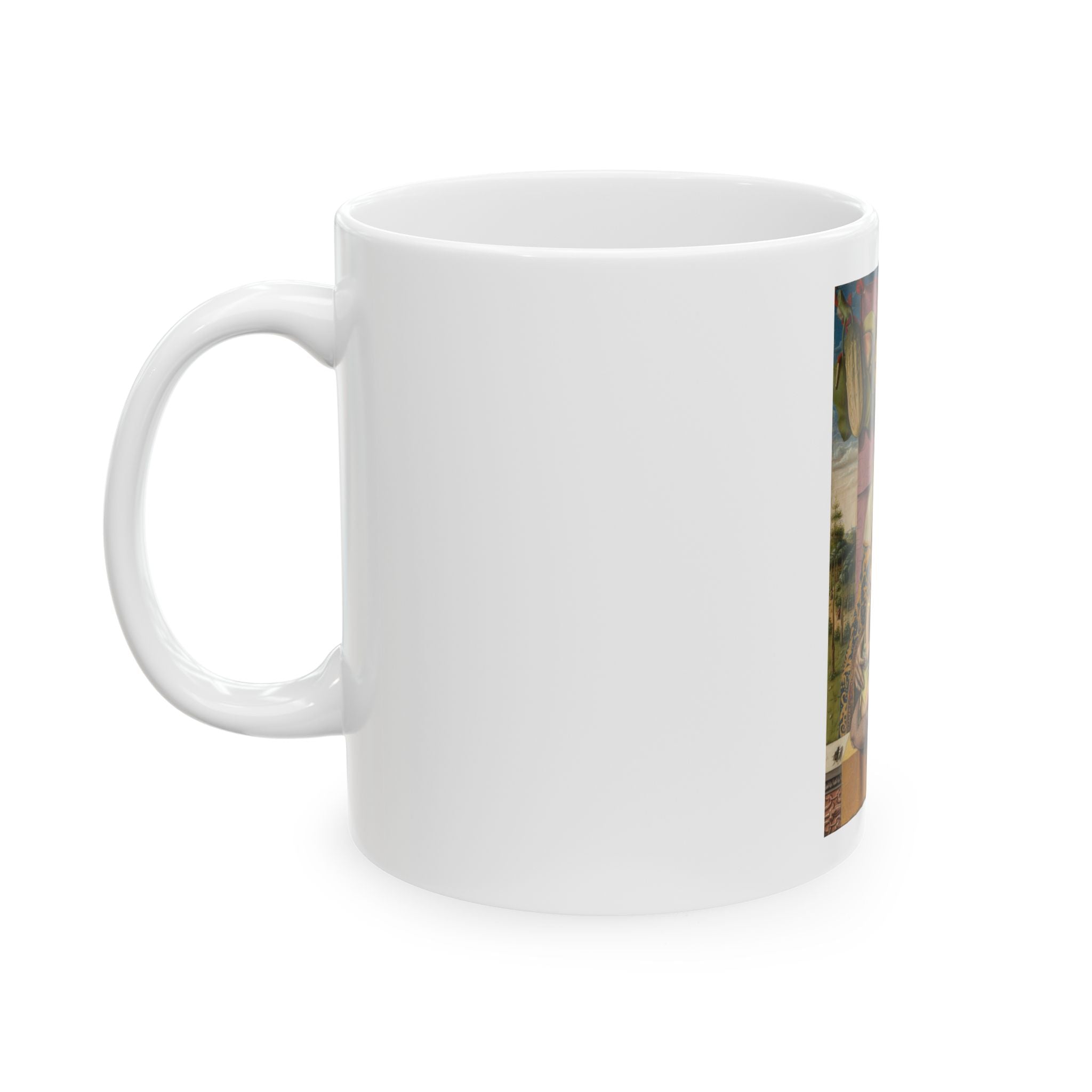 This 11 oz ceramic mug is the perfect gift for coffee, tea, and chocolate lovers. It's made of high-quality white ceramic that is lead and BPA-free, and it's microwave and dishwasher safe for easy cleanup. The mug has rounded corners and a comfortable C-handle for a secure grip.