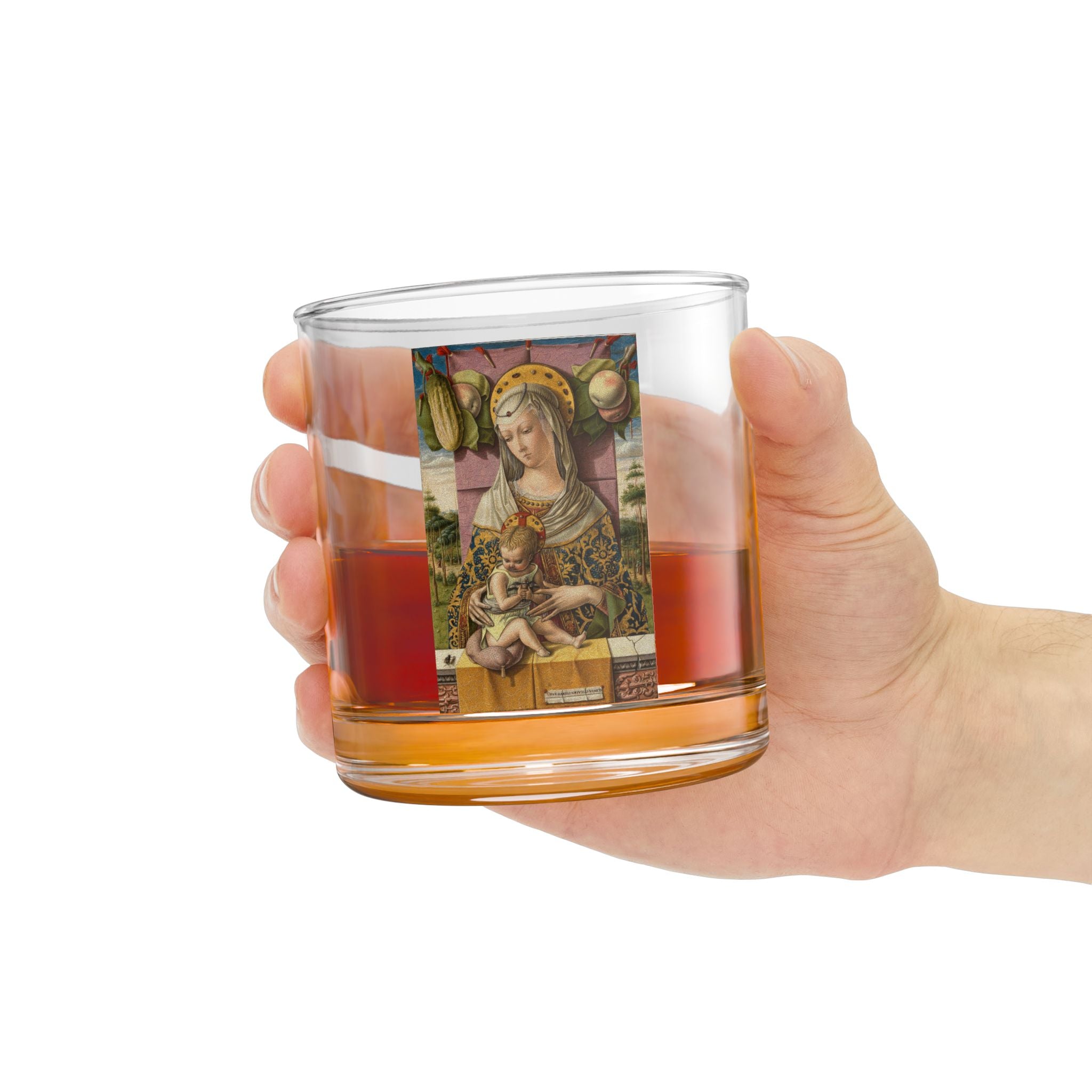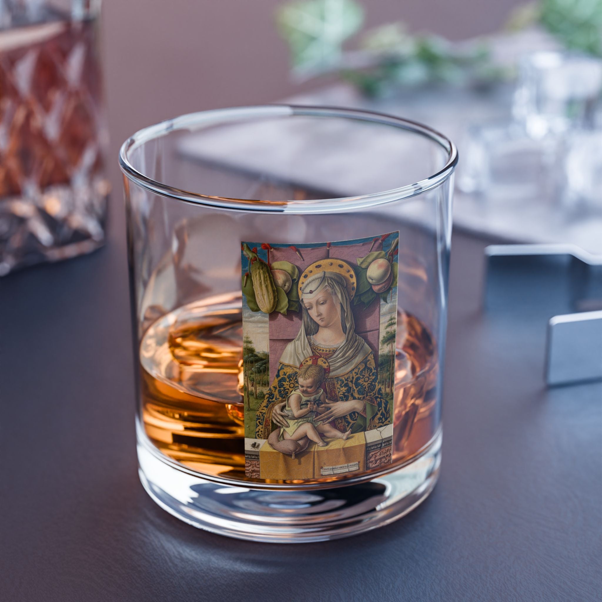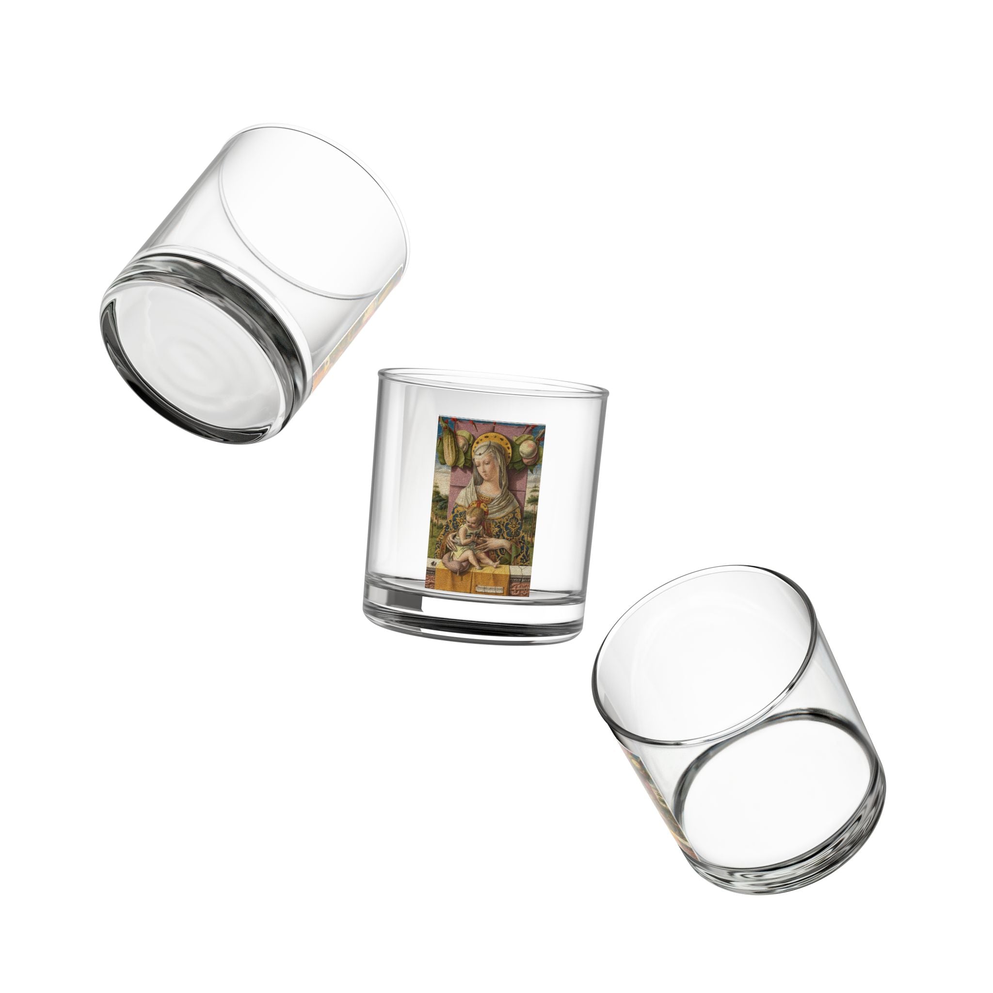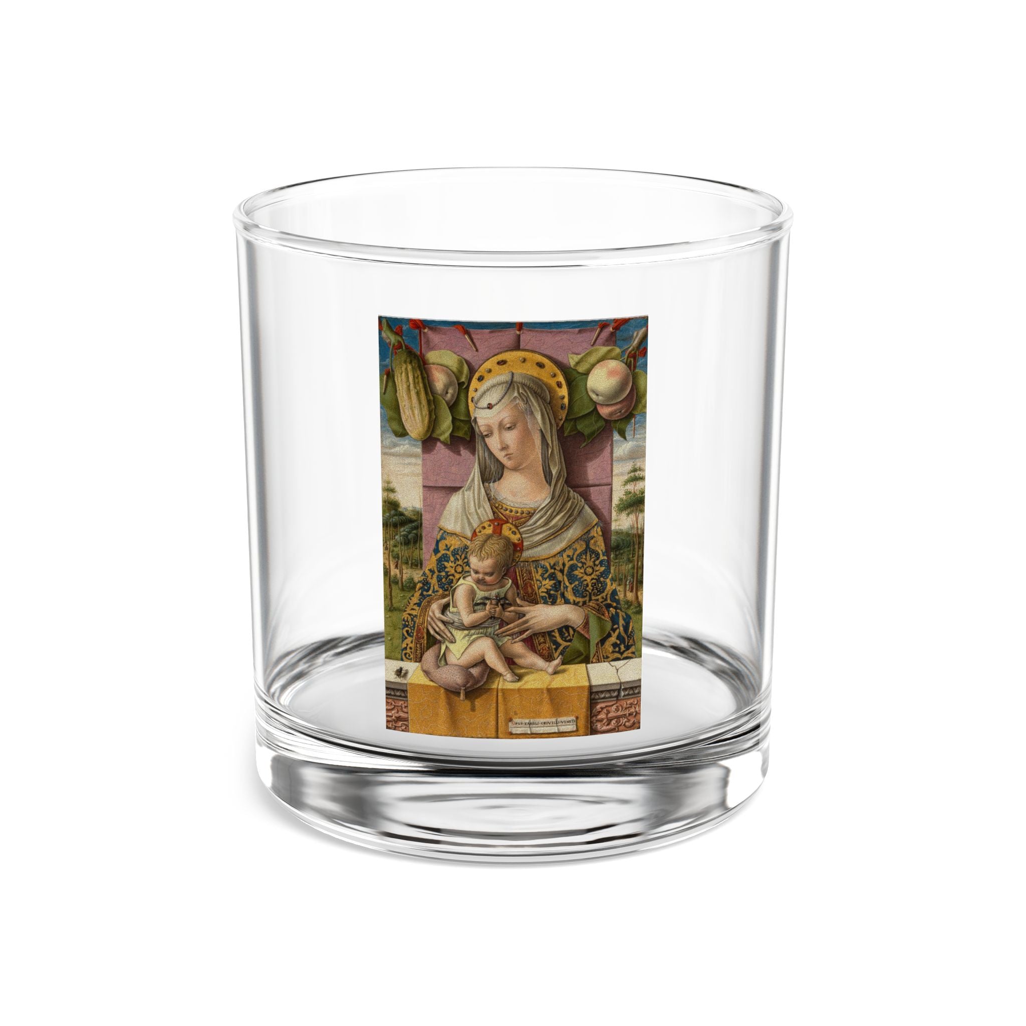 This Rocks Glass features a beautiful print of the painting 'Madonna and Child' by Carlo Crivelli, adding an elegant and artistic touch to your drinking experience. Perfect for art enthusiasts and those who appreciate fine details, this glass is ideal for special occasions and gatherings where you want to impress your guests with a unique piece of drinkware.