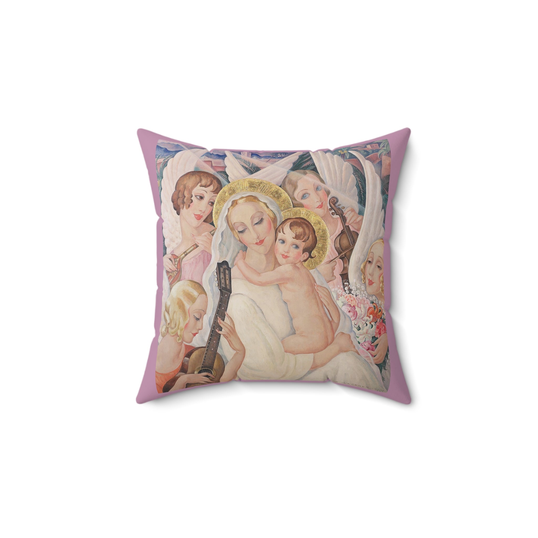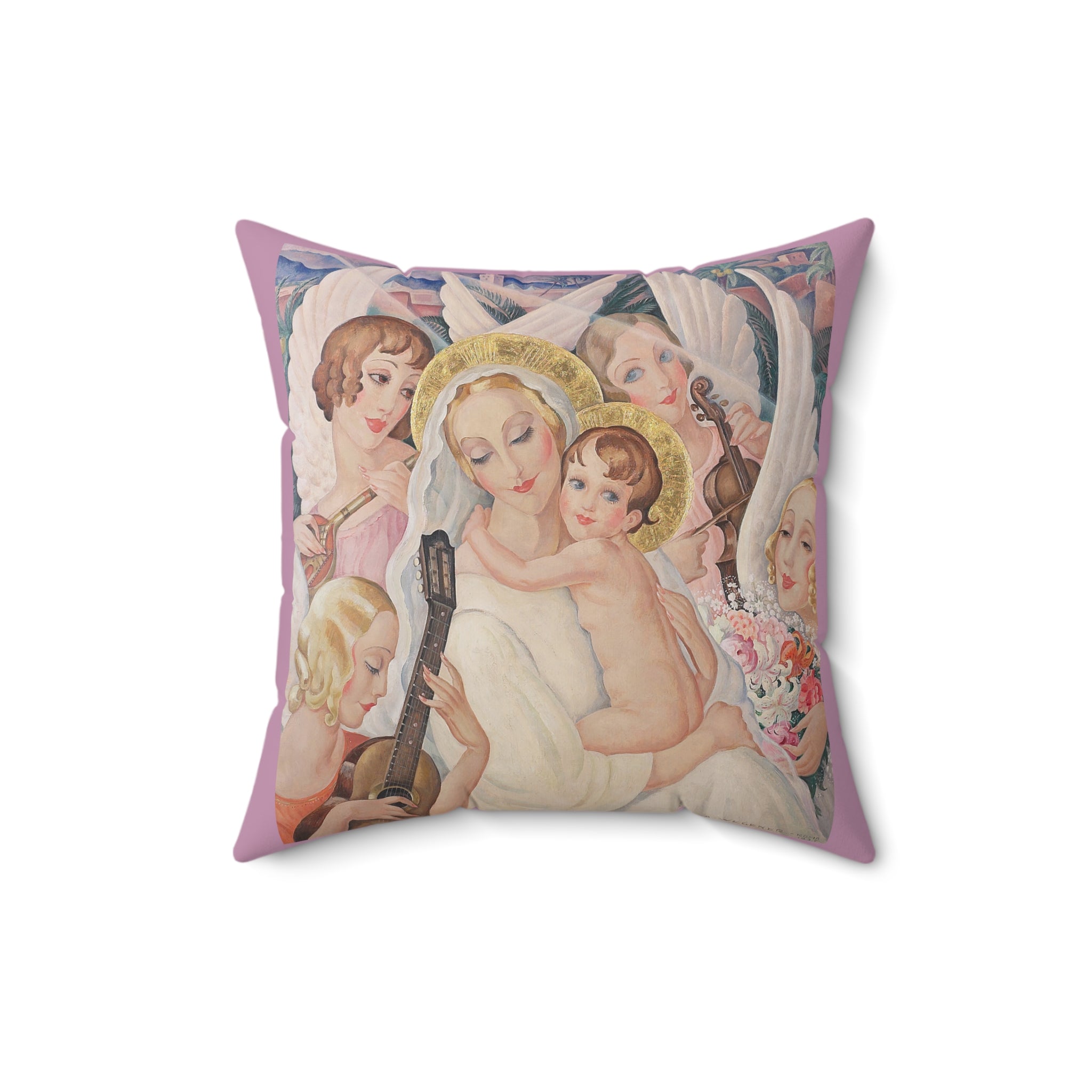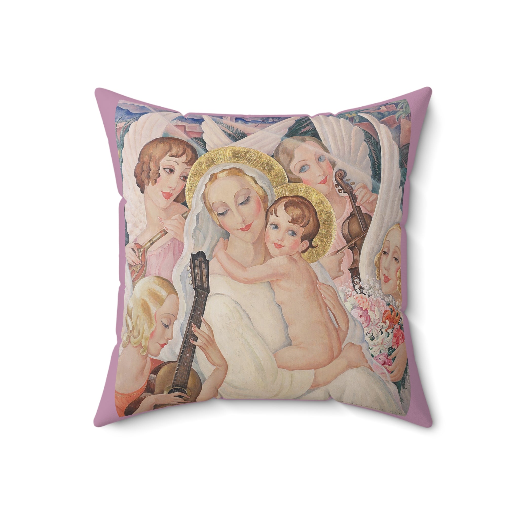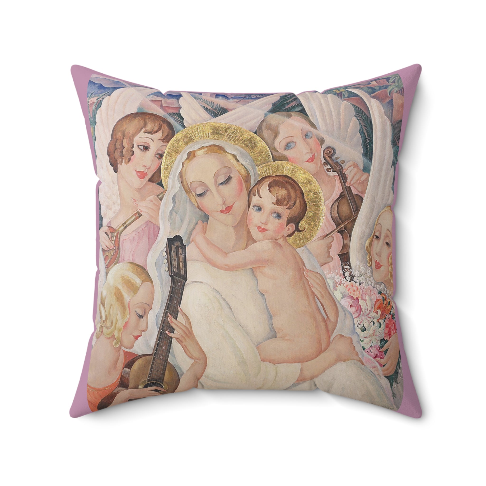 Artwork designed and digitally remastered by Sarasvati Designs. The original artwork, Madonna with Child surrounded by musical angels by Danish artist Gerda Wegener, is an oil painting created in 1935. The painting depicts the Virgin Mary, holding the baby Jesus. The Madonna and Child are surrounded by a group of female angels playing musical instruments.