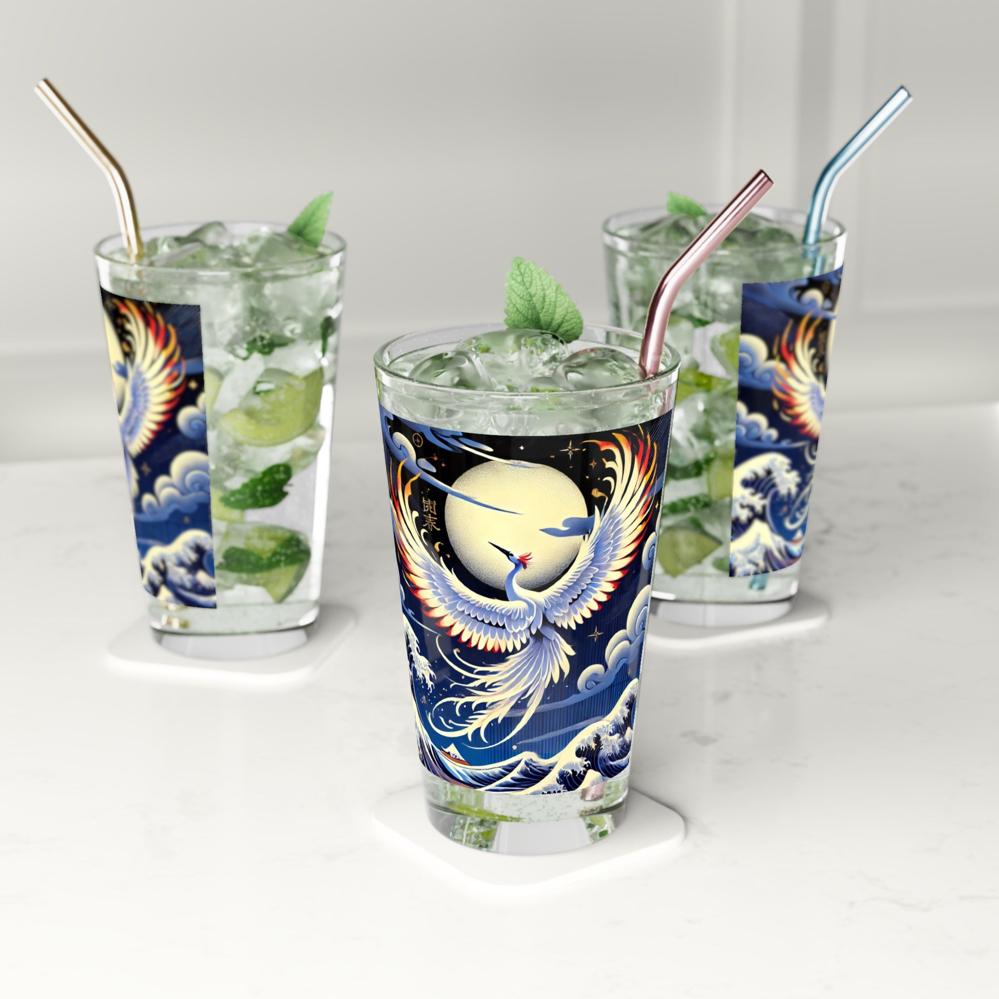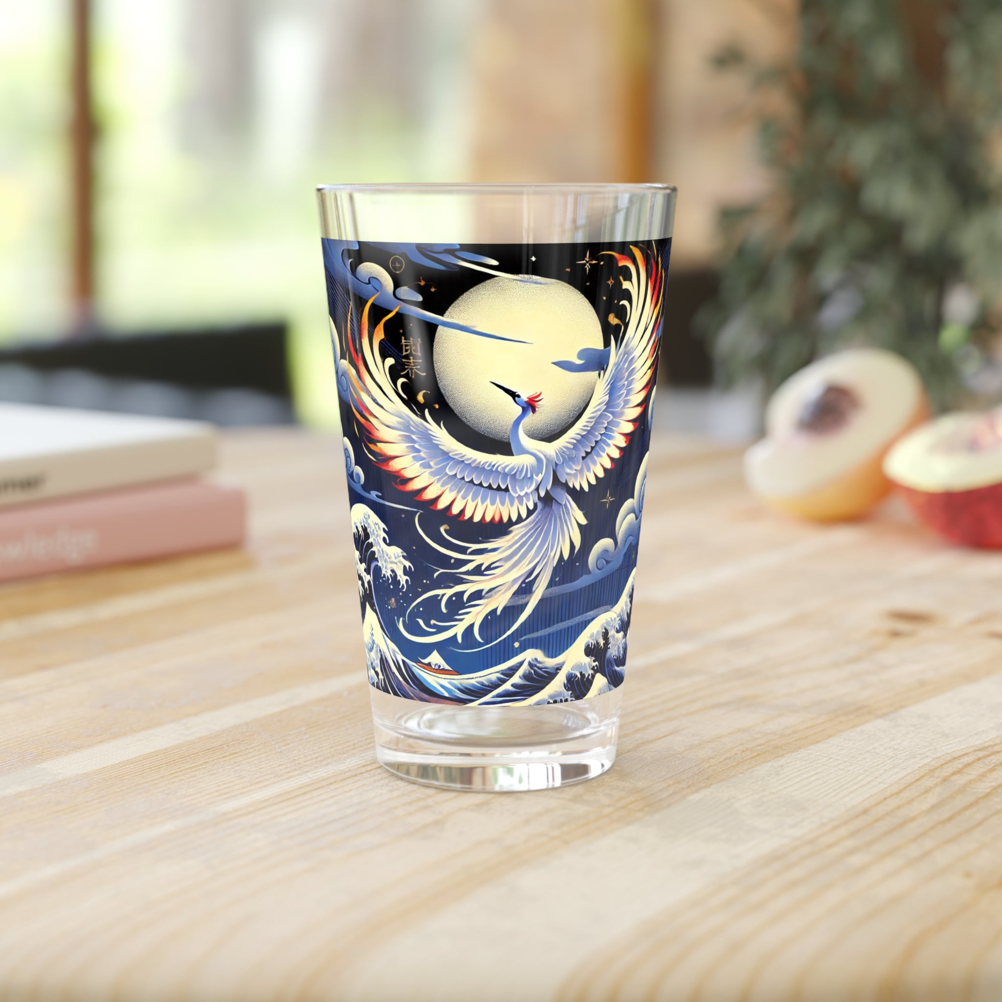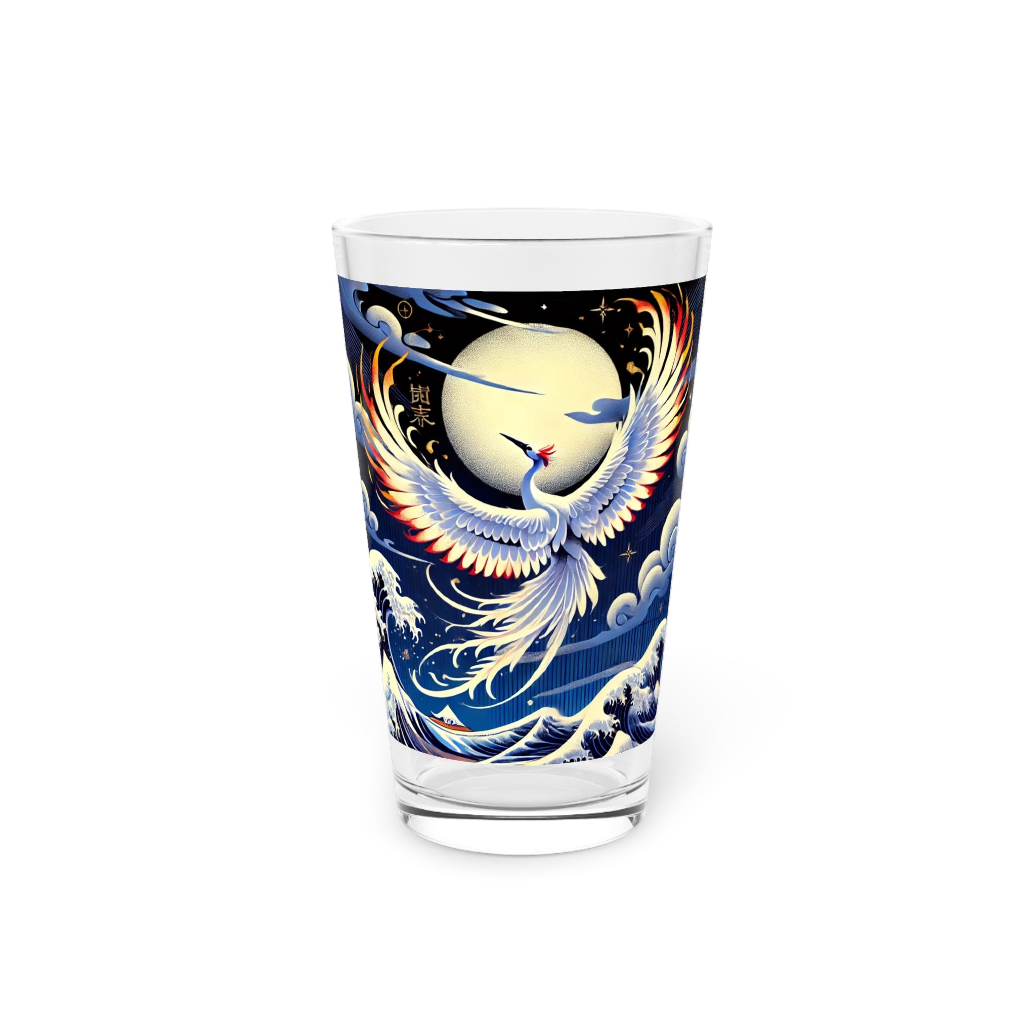 Every drink becomes a performance with this 16oz pint glass, designed to be as versatile as it is beautiful. Tall, transparent, and durable, it’s perfect for everyday use or as a thoughtful housewarming gift. Wrapped around its surface is a lyrical Kabuki-inspired scene, where a majestic white crane takes center stage. Rendered in bold flat colors and sharp clarity, the bird radiates elegance and strength, while the backdrop flows with layered depth and rich hues that evoke the grandeur of a theatrical stage. Both practical and artistic, this glass merges durability with timeless beauty—turning each sip into a celebration of Kabuki symbolism and performance.