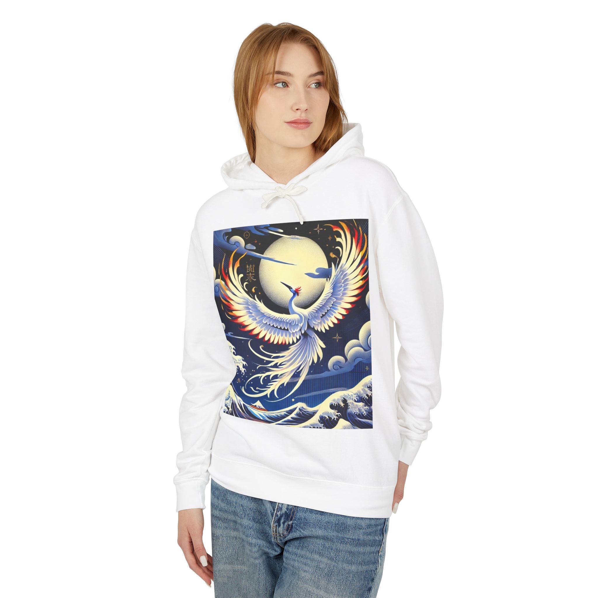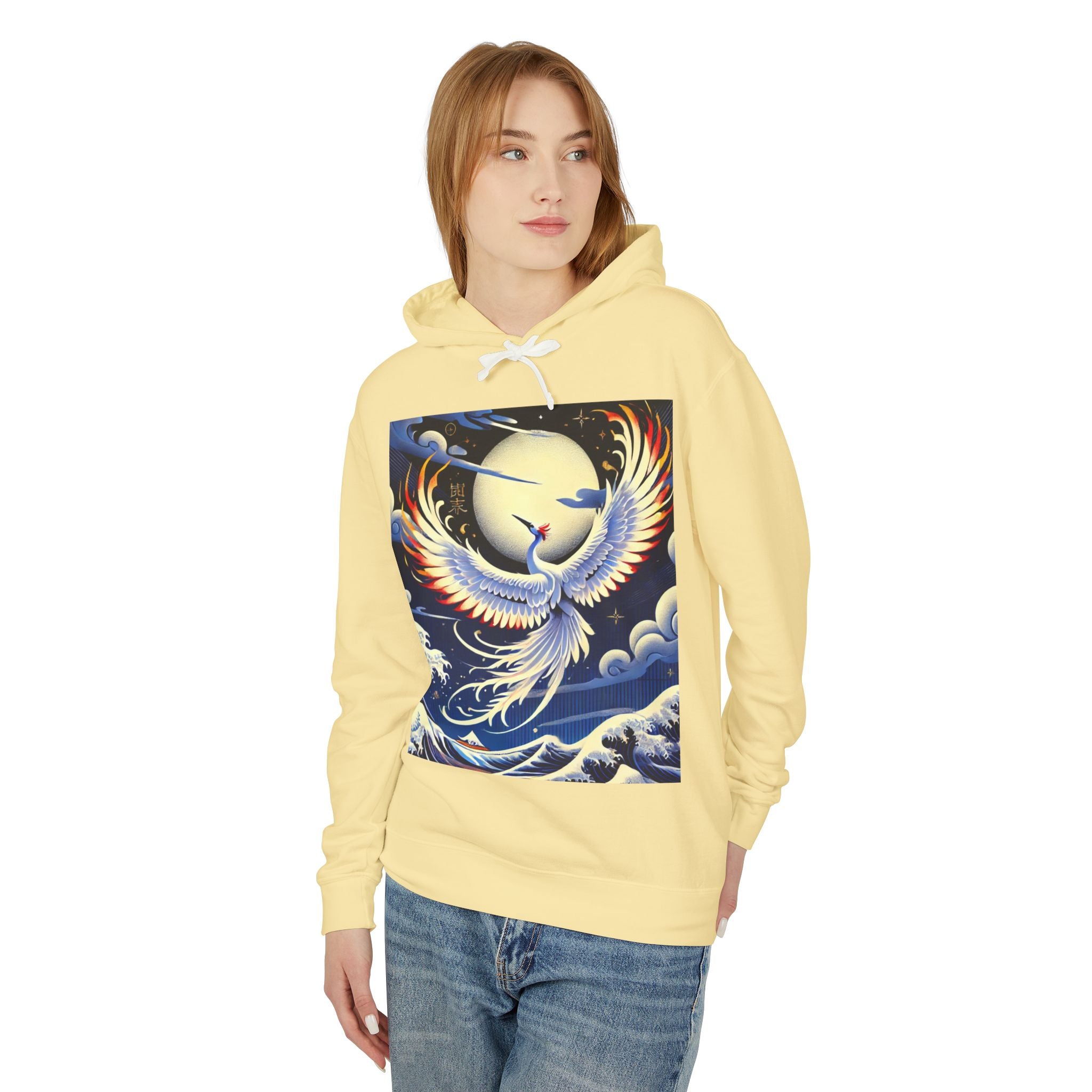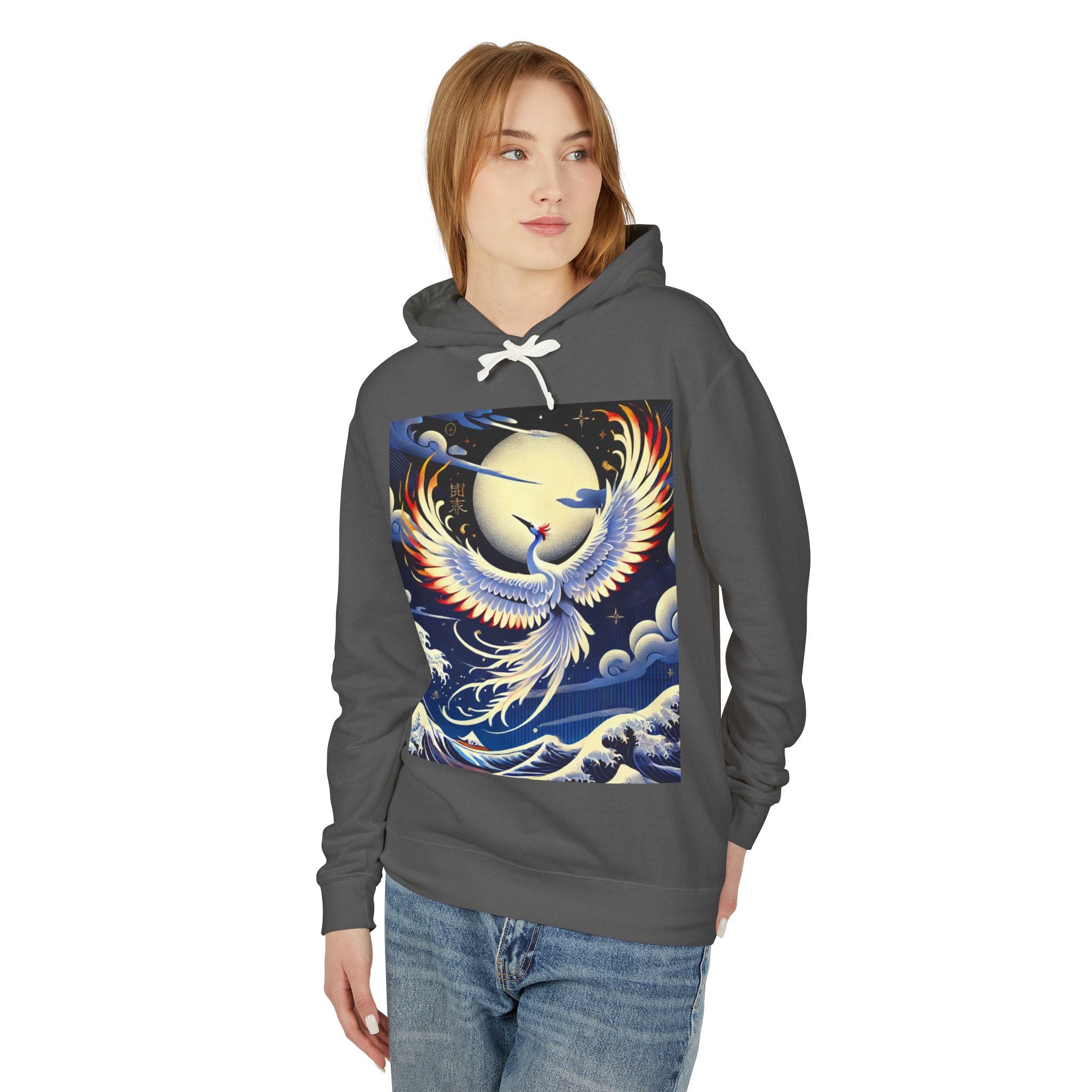 Majestic White Crane Hoodie pairs luxurious comfort with the refined drama of Japanese theatrical art, creating a piece that feels as expressive as it is wearable. Crafted from 100% ring-spun US cotton for exceptional softness and durability, this relaxed-fit sweatshirt features a jersey-lined hood with a natural colored flatcord (white flatcords for white and ivory variants), rolled forward shoulders for added comfort, and a smooth, clean silhouette. Proudly a member of the U.S. Cotton Trust Protocol, it is made using OEKO-TEX certified low-impact dyes and clean pigment dye colors that are salt-free, providing an eco-conscious garment without compromising vibrancy.