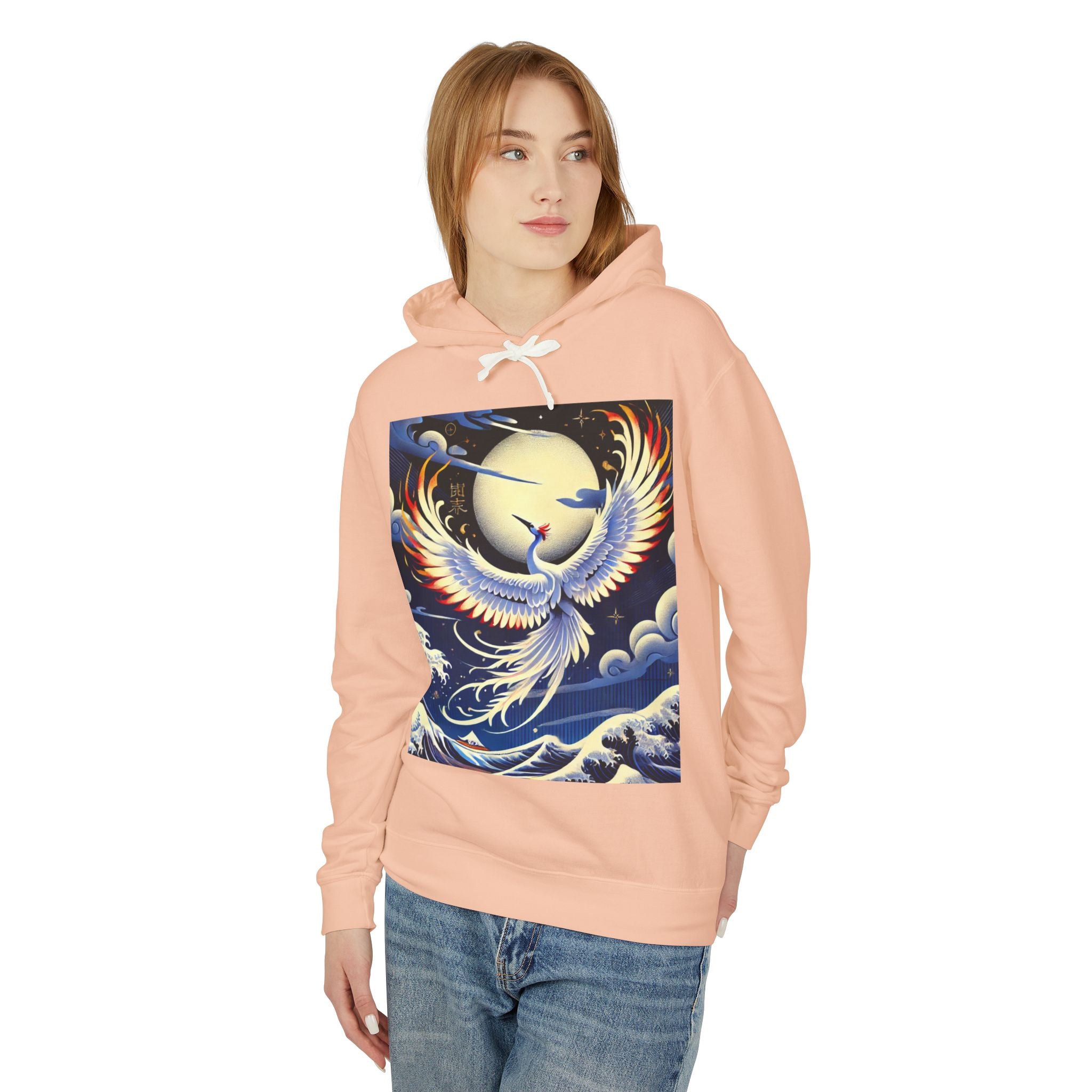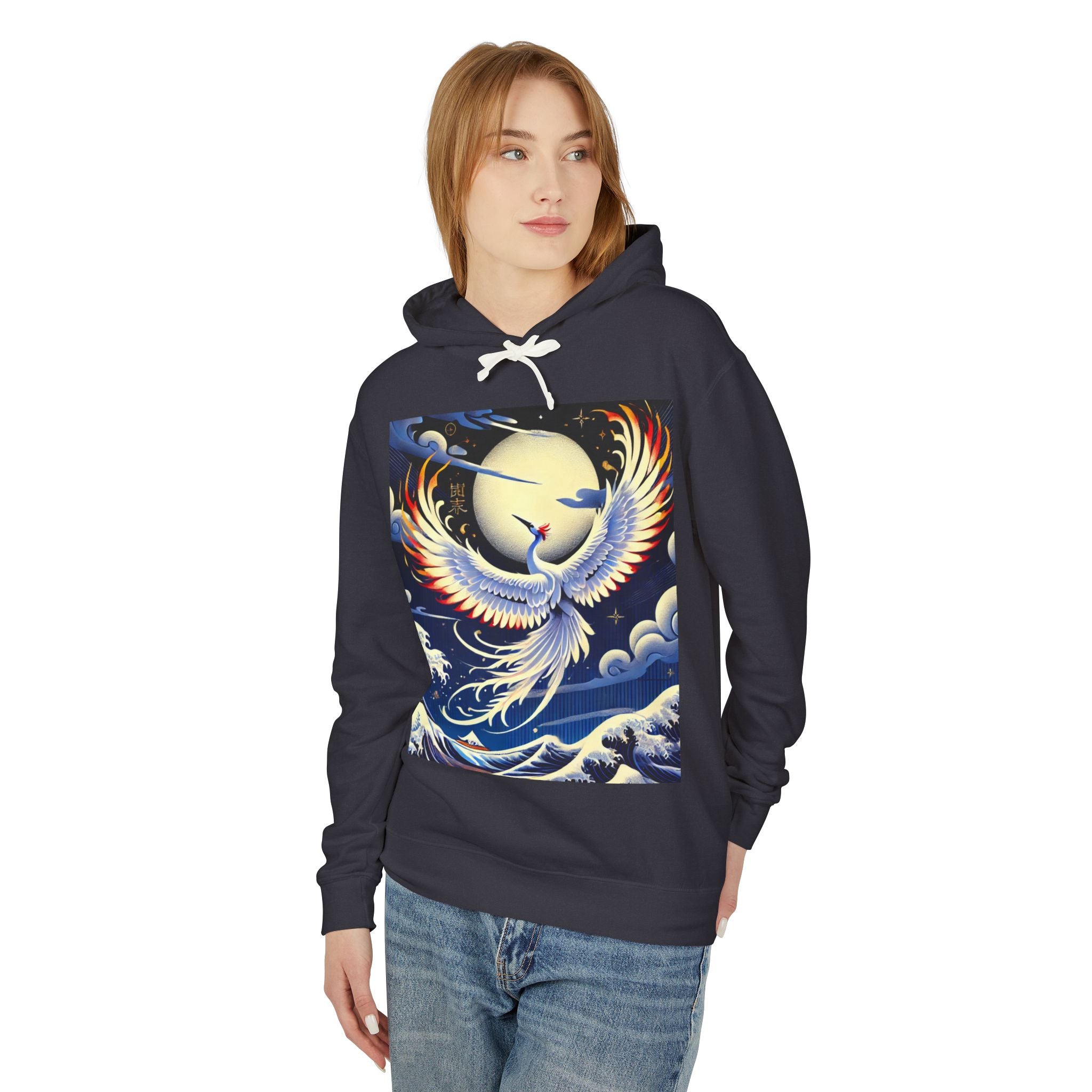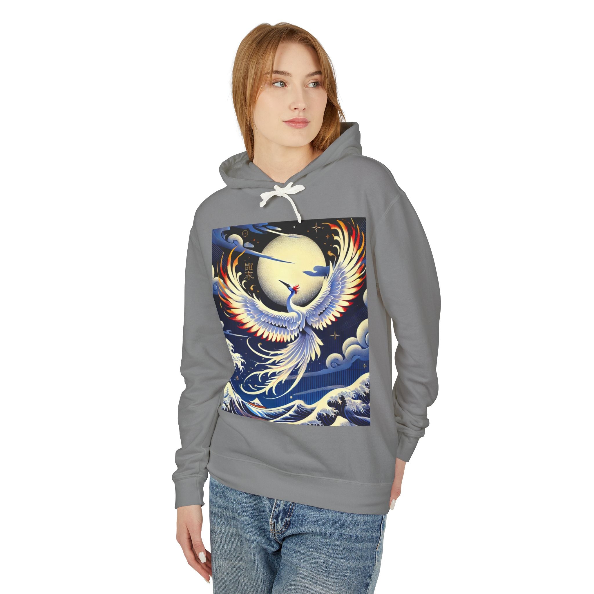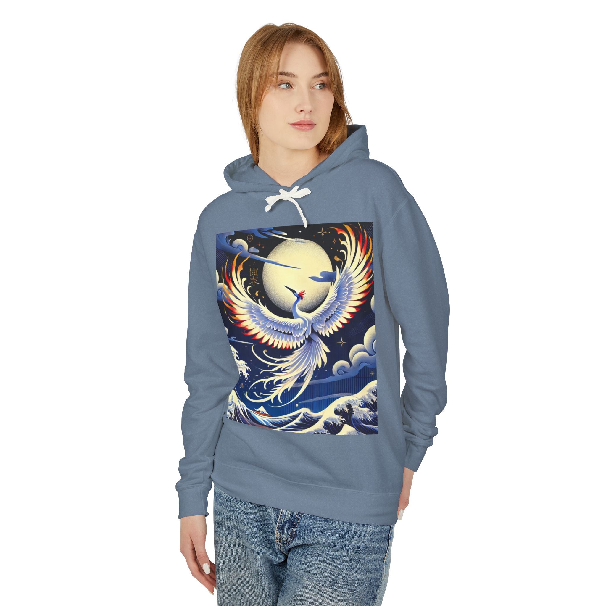 Majestic White Crane Hoodie pairs luxurious comfort with the refined drama of Japanese theatrical art, creating a piece that feels as expressive as it is wearable. Crafted from 100% ring-spun US cotton for exceptional softness and durability, this relaxed-fit sweatshirt features a jersey-lined hood with a natural colored flatcord (white flatcords for white and ivory variants), rolled forward shoulders for added comfort, and a smooth, clean silhouette. Proudly a member of the U.S. Cotton Trust Protocol, it is made using OEKO-TEX certified low-impact dyes and clean pigment dye colors that are salt-free, providing an eco-conscious garment without compromising vibrancy.