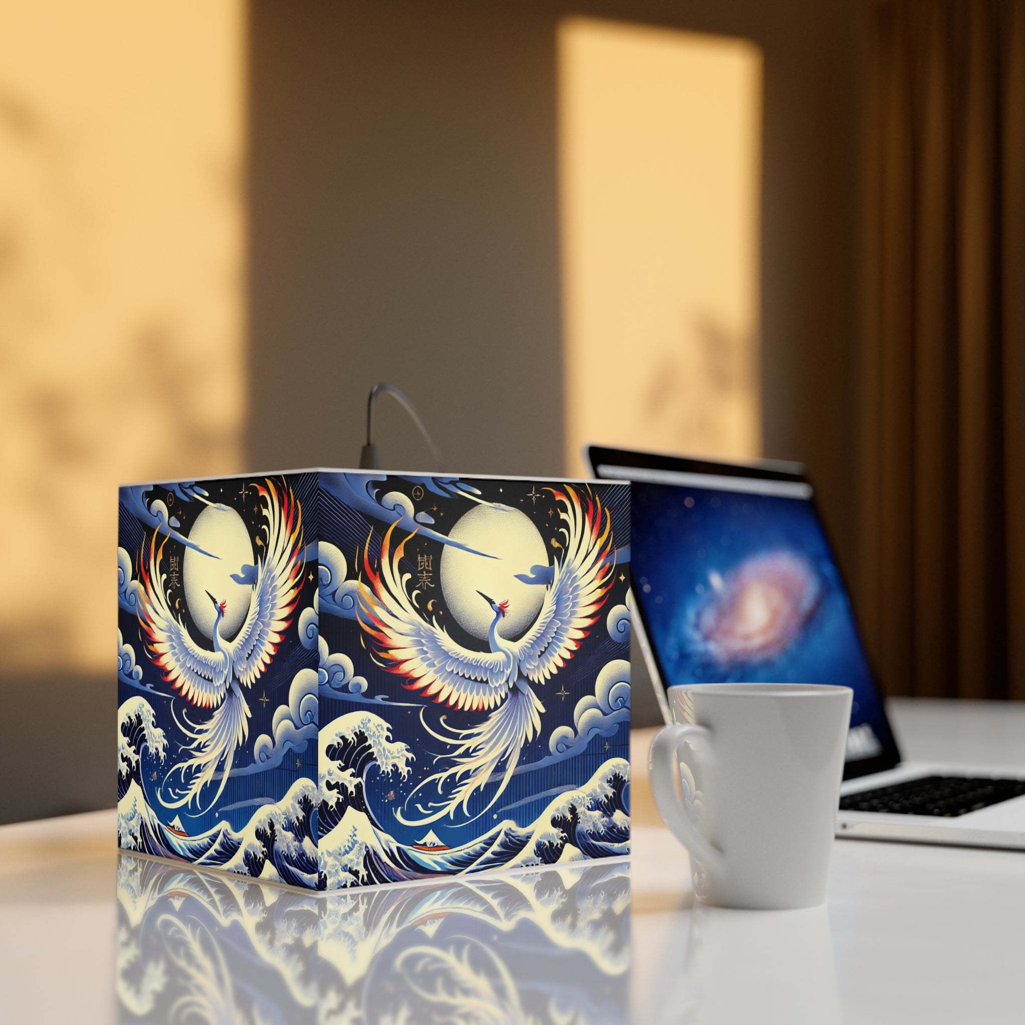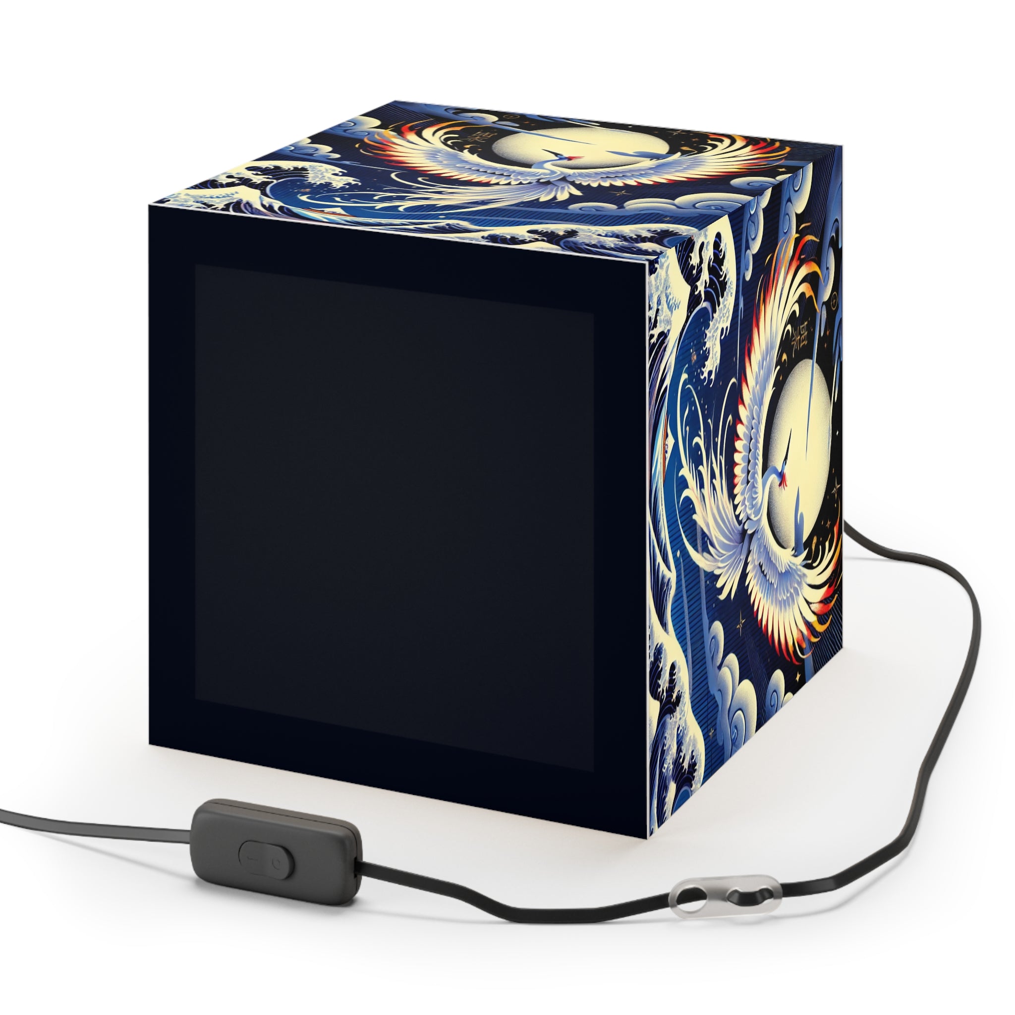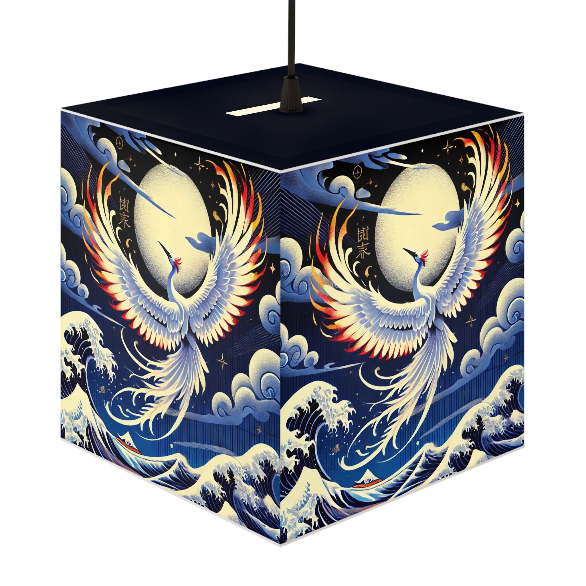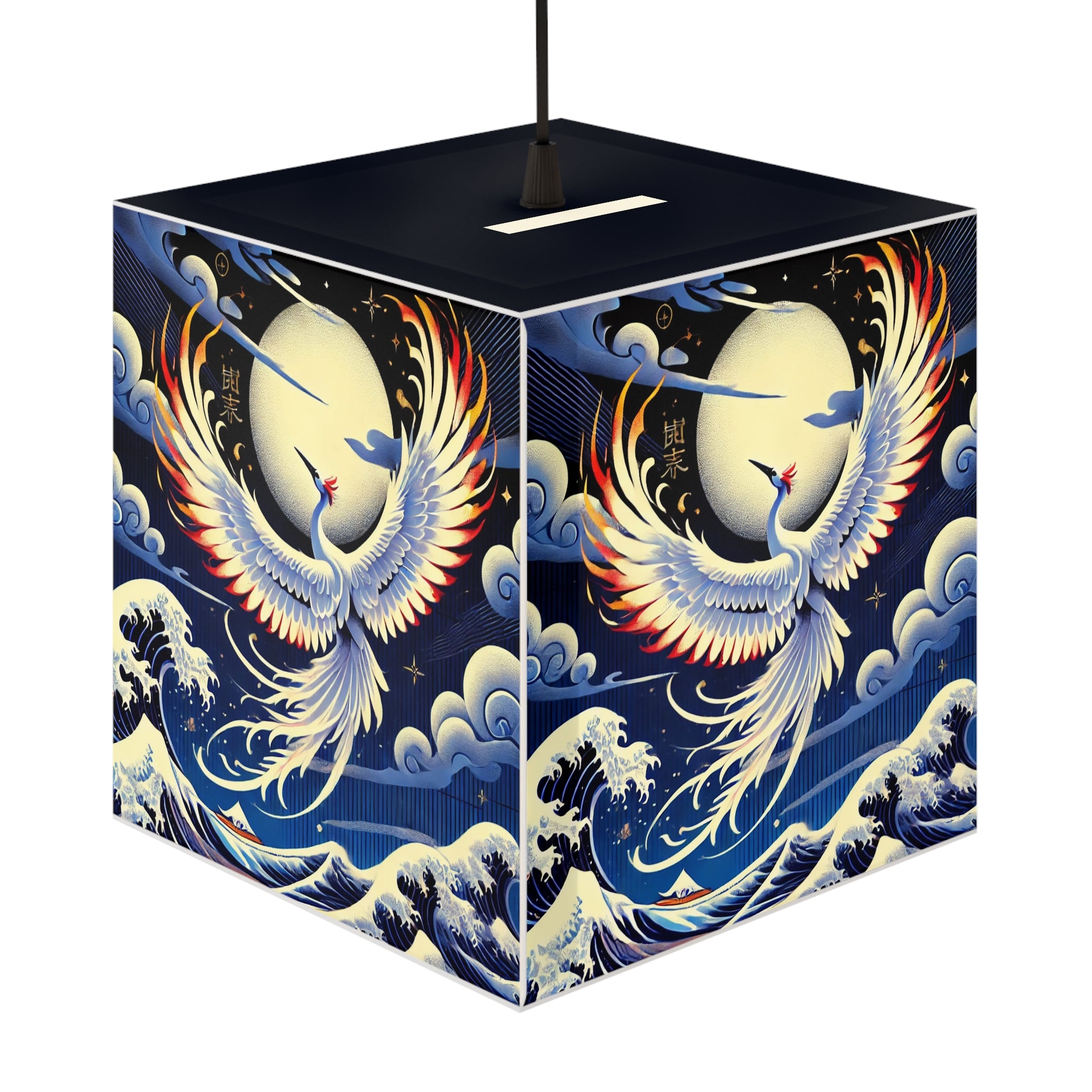 Transform any room into a serene stage with the Majestic White Crane Light Cube Lamp, where art and function become one. Lightweight yet striking, this lamp offers the choice between two cord types: the Standard cord, designed for US (Type A) or Europe (Type C) outlets, or the Pendant cord for a sleek, plug-free aesthetic. Across its glowing surface unfolds a lyrical Kabuki-inspired performance—at the center stands a majestic white crane, its form painted in bold flat colors with sharp clarity, radiating elegance and power. Behind it, layered hues of deep blues, purples, and gold flow like stage curtains, evoking the grandeur of a theatrical set alive with symbolism. Both practical and decorative, the lamp casts a tranquil light while embodying the timeless beauty of Kabuki artistry—a fusion of performance, symbolism, and atmosphere that transforms your space into an illuminated masterpiece.