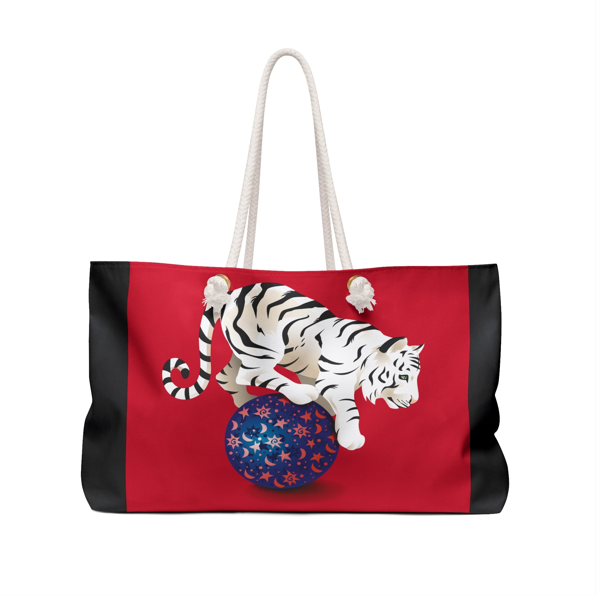 Our oversized Weekender Tote is perfect for your weekend at the beach or in town. The wide-mouthed, durable bag holds a generous amount of personal items and is easily held by its thick rope handles.
