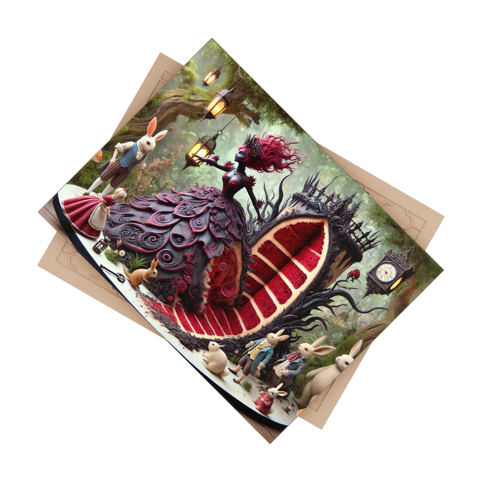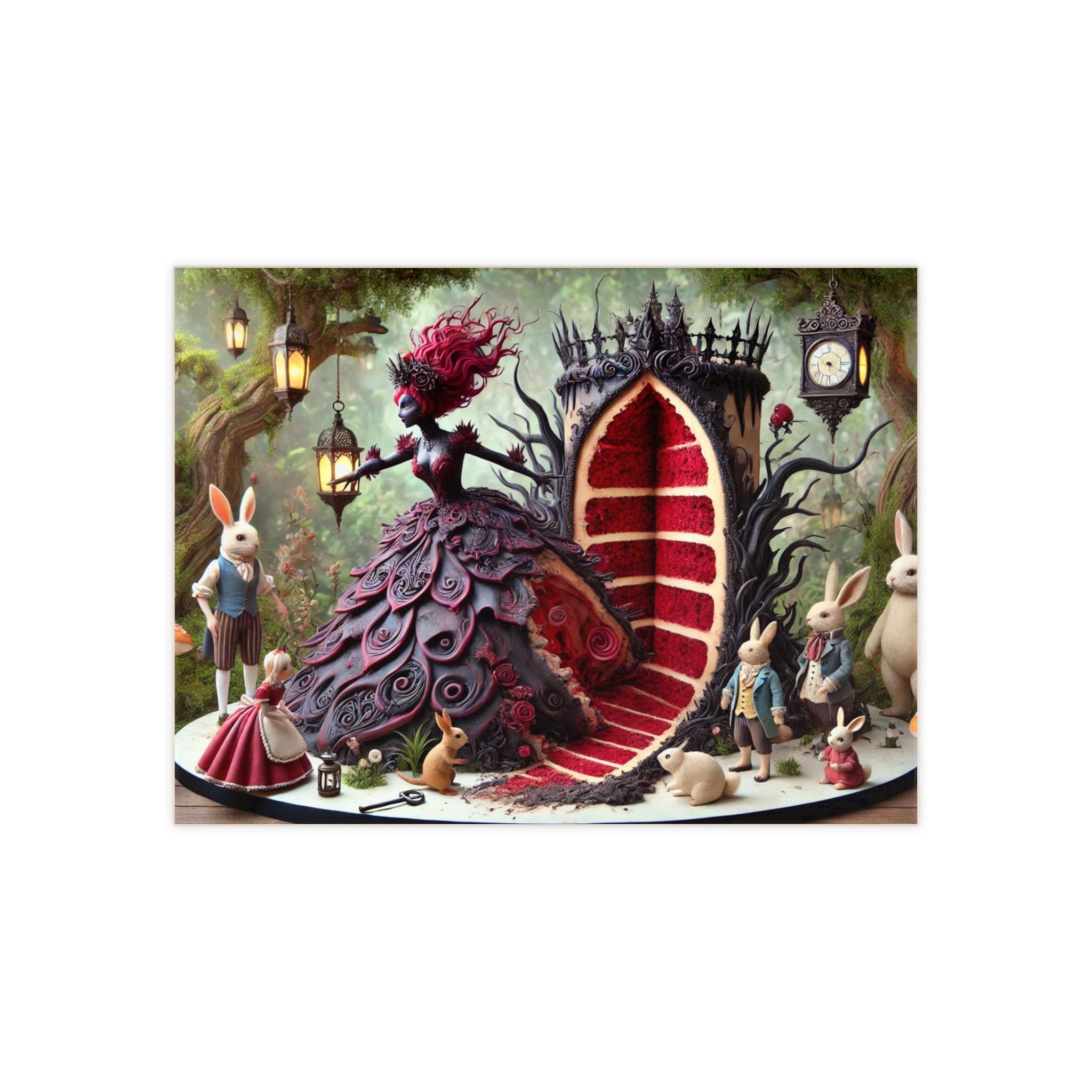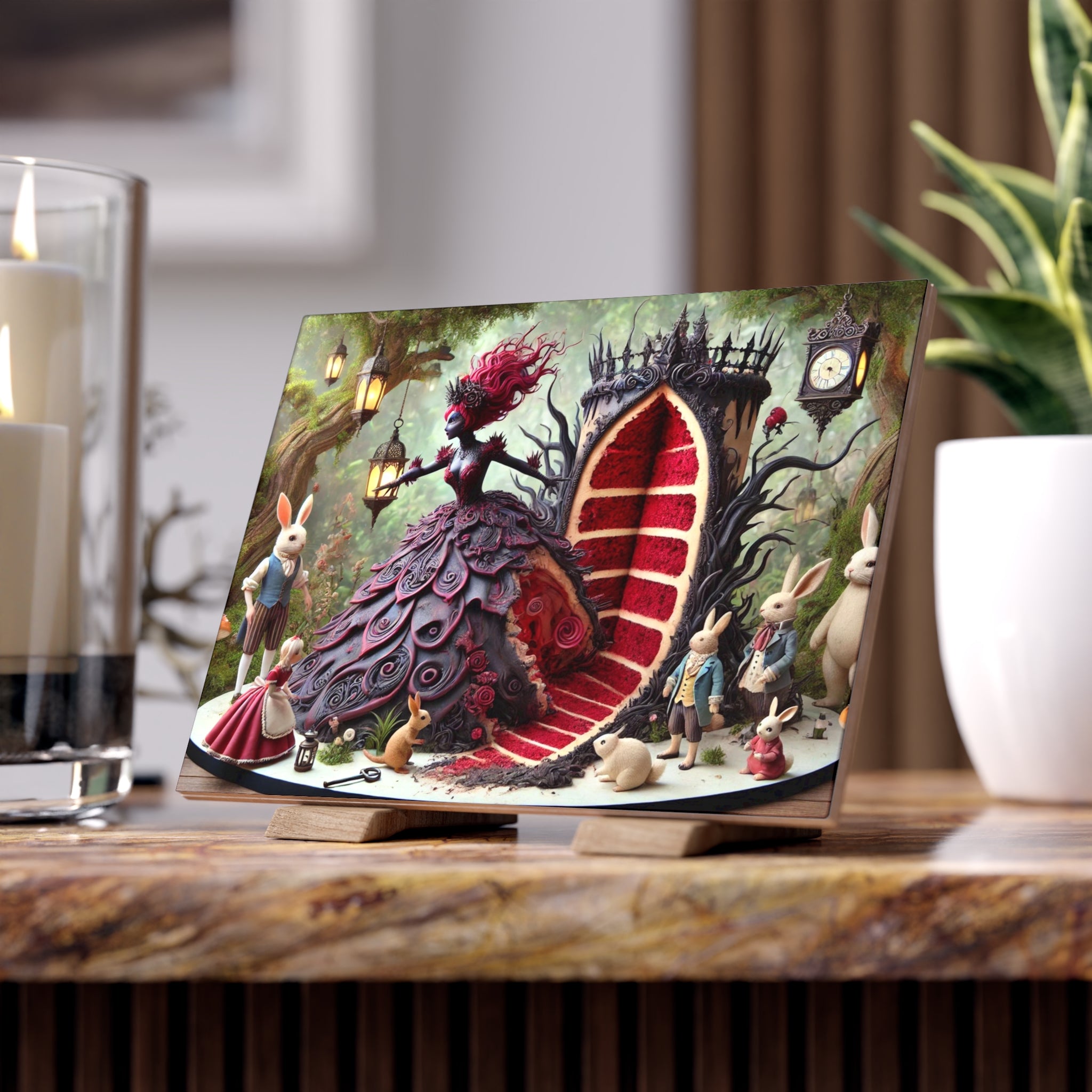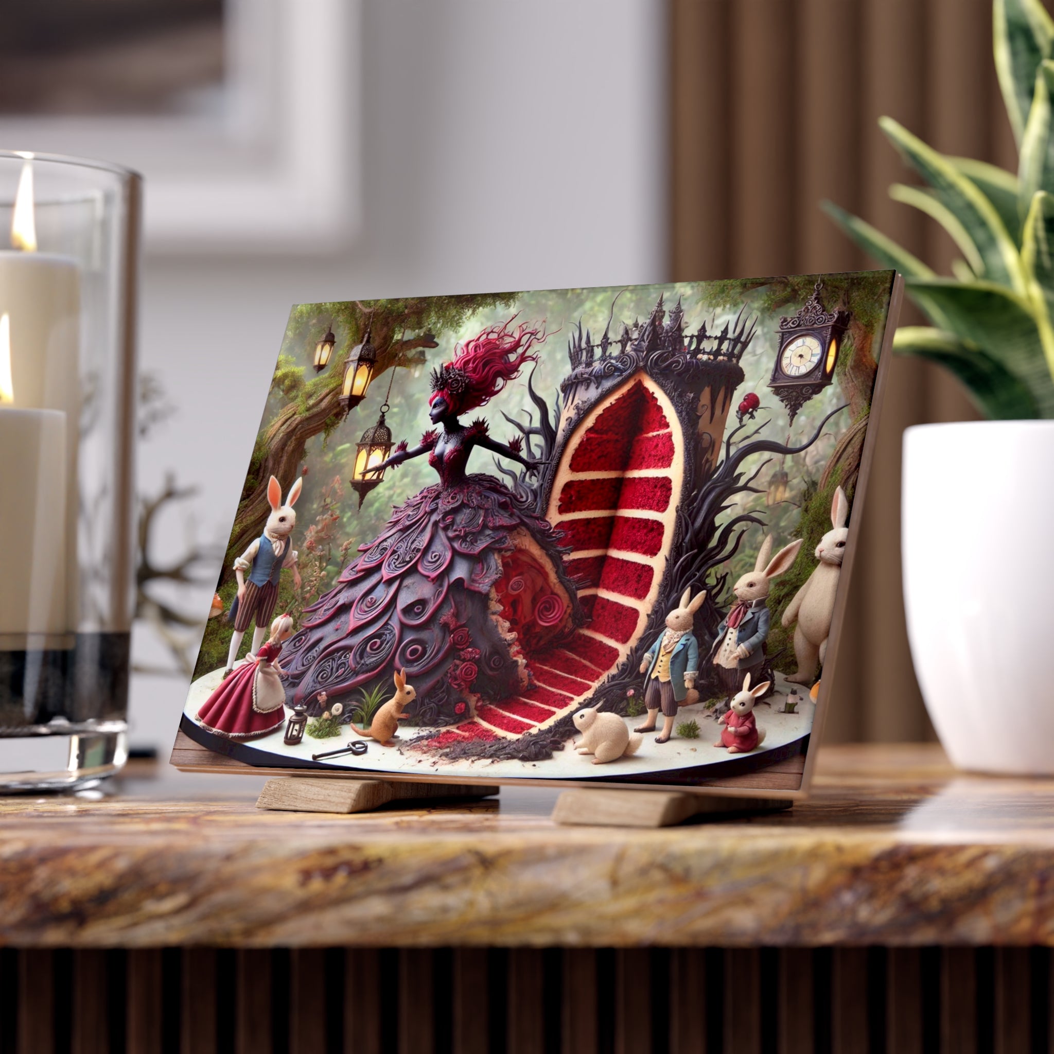 Step into a surreal Halloween dreamscape with this striking ceramic tile featuring Malice in Wonderland. Designed as a gothic yet whimsical cake figure, Malice stands gracefully before a towering cake surrounded by curious, fantastical animals in a moonlit garden. The artwork blends gothic elegance with playful fantasy, creating a hauntingly enchanting centerpiece that brings mystery and magic to any space. Available in a glossy or matte finish, this tile showcases full-color artwork that captures every detail of the scene, making it a unique accent for Halloween décor or year-round display.