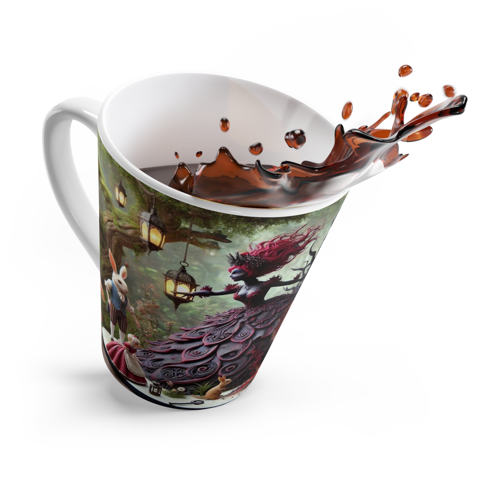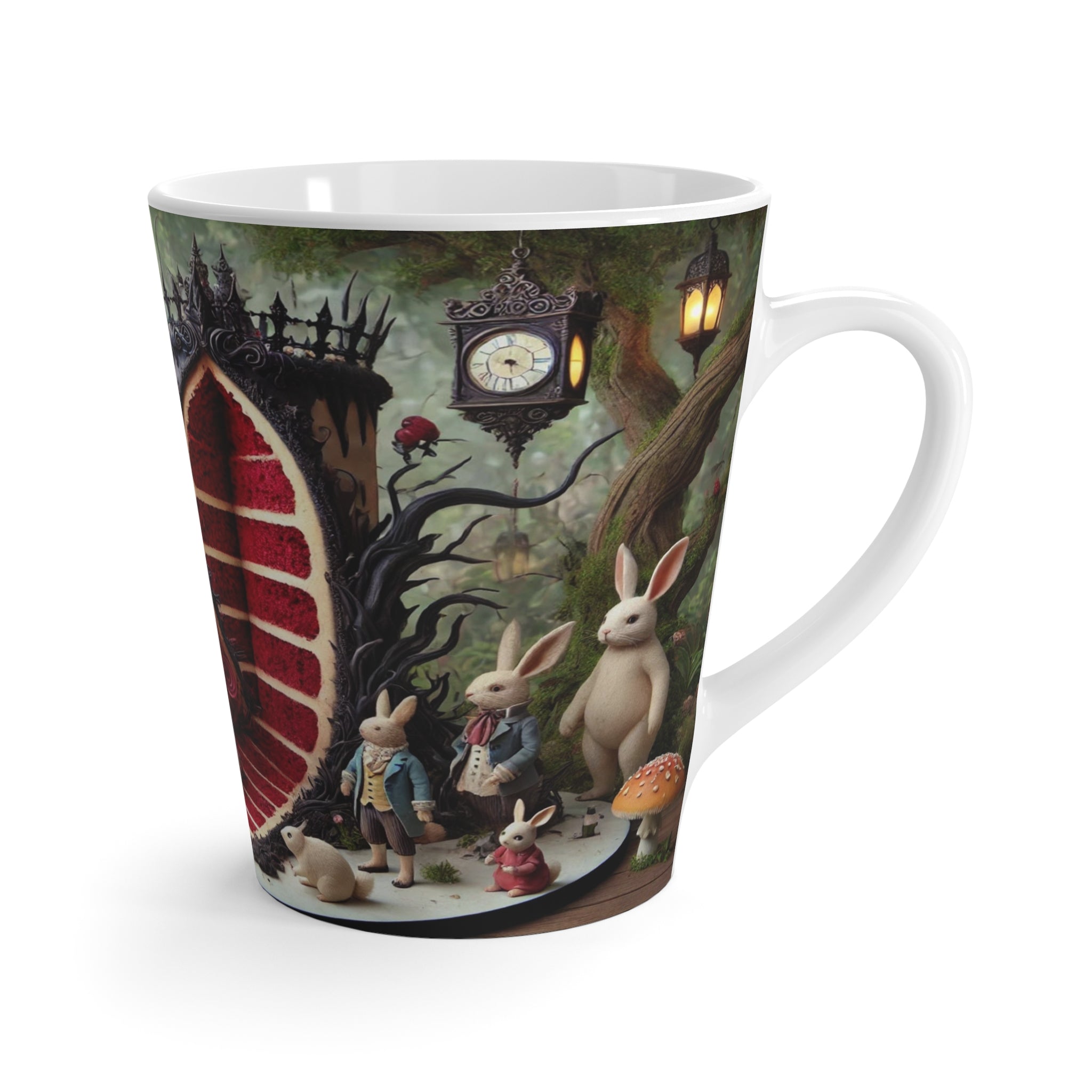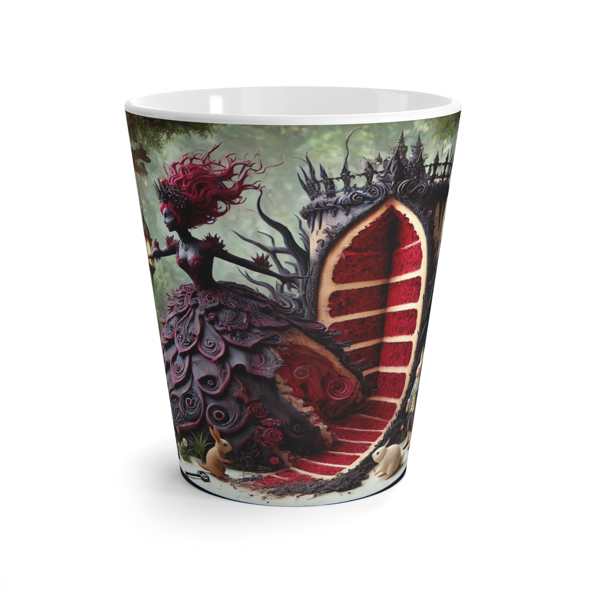 Wrapped around its surface, a surreal Halloween wonderland comes to life. Malice, a gothic yet whimsical figure, appears as a fantastical full-length cake sculpture, standing gracefully before a towering cake. Curious animals gather in a moonlit garden, their presence weaving whimsy into the gothic scene. The design balances dark drama with playful fantasy, transforming this mug into more than drinkware—it becomes a hauntingly enchanting celebration of Halloween imagination.