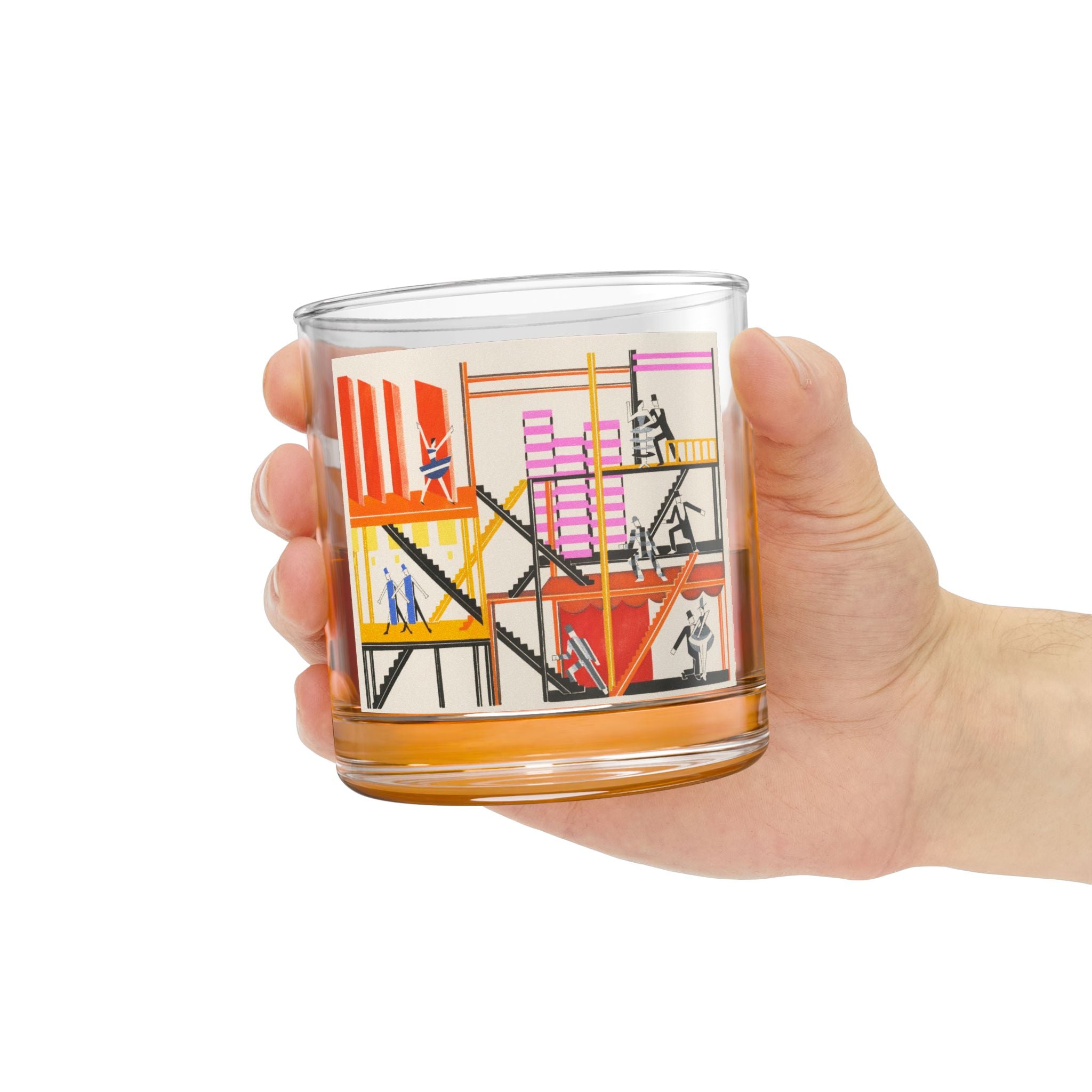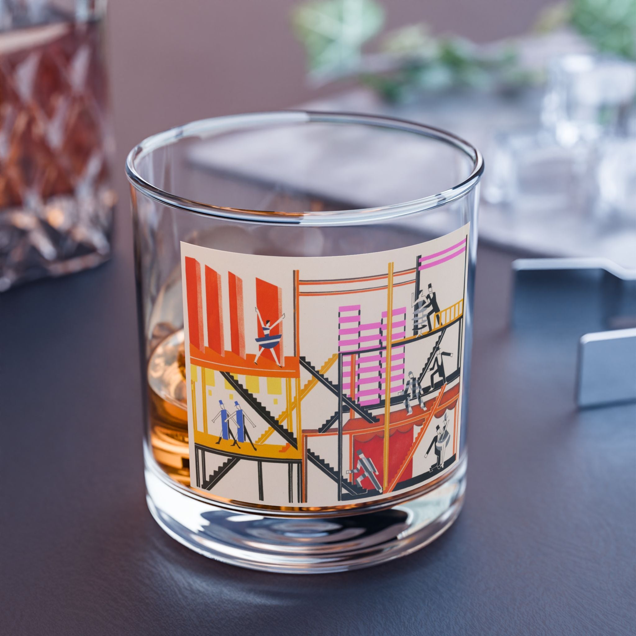 Elevate your drinking experience with the 'Maquettes de Théâtre 4' Rocks Glass featuring a vibrant and modern design inspired by Ukrainian-French artist Alexandra Exter. Perfect for those who appreciate art, theater, and unique home decor. Ideal for gifts for theater lovers, artists, and anyone who enjoys a stylish drinkware collection. Relevant for holidays, birthdays, housewarmings, and special occasions.