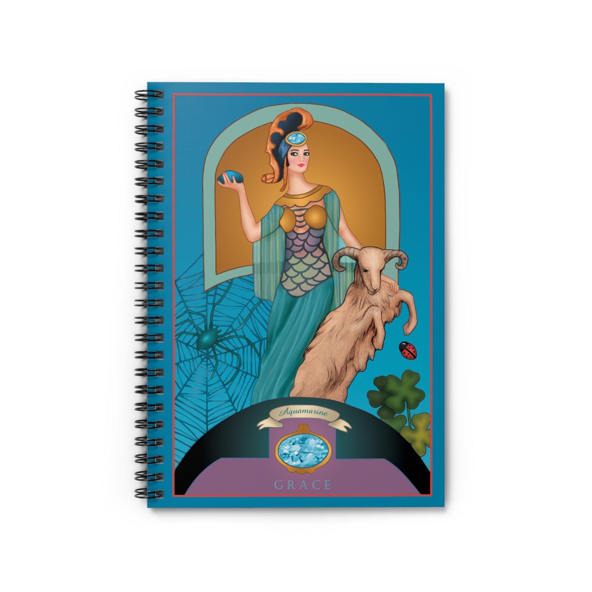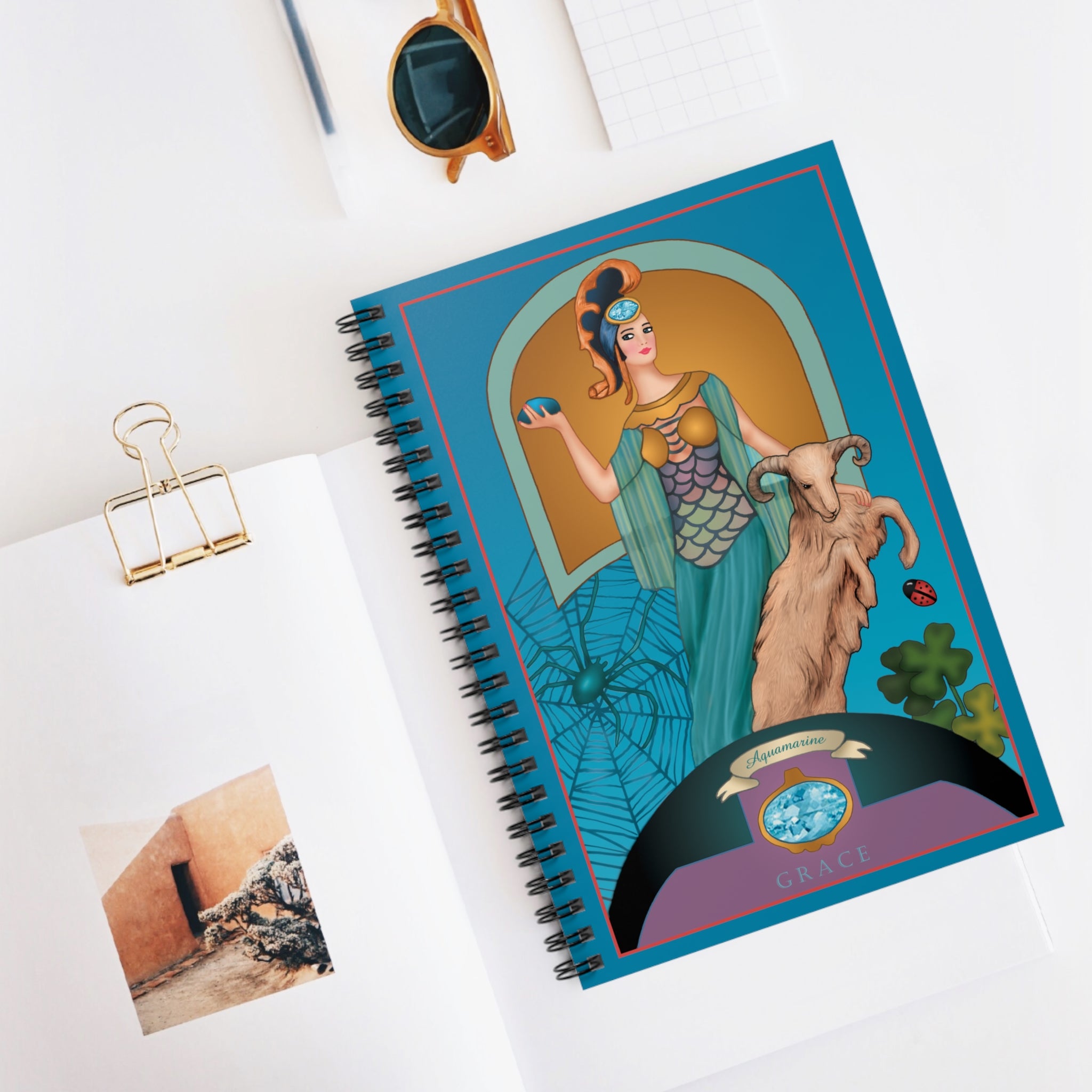 March & Aquamarine (Gem Series) by Sofia Chiostri Spiral Notebook - Ruled Line
