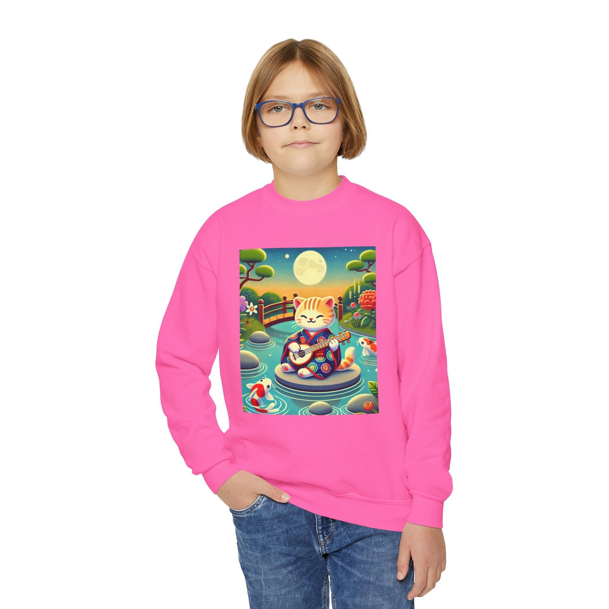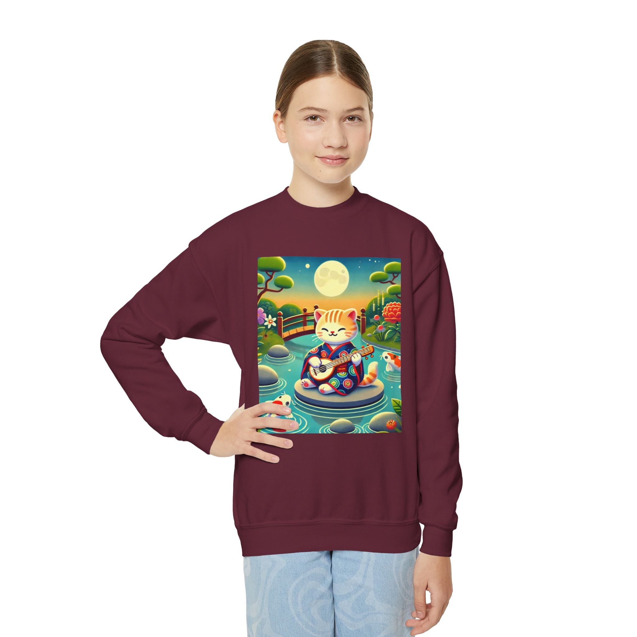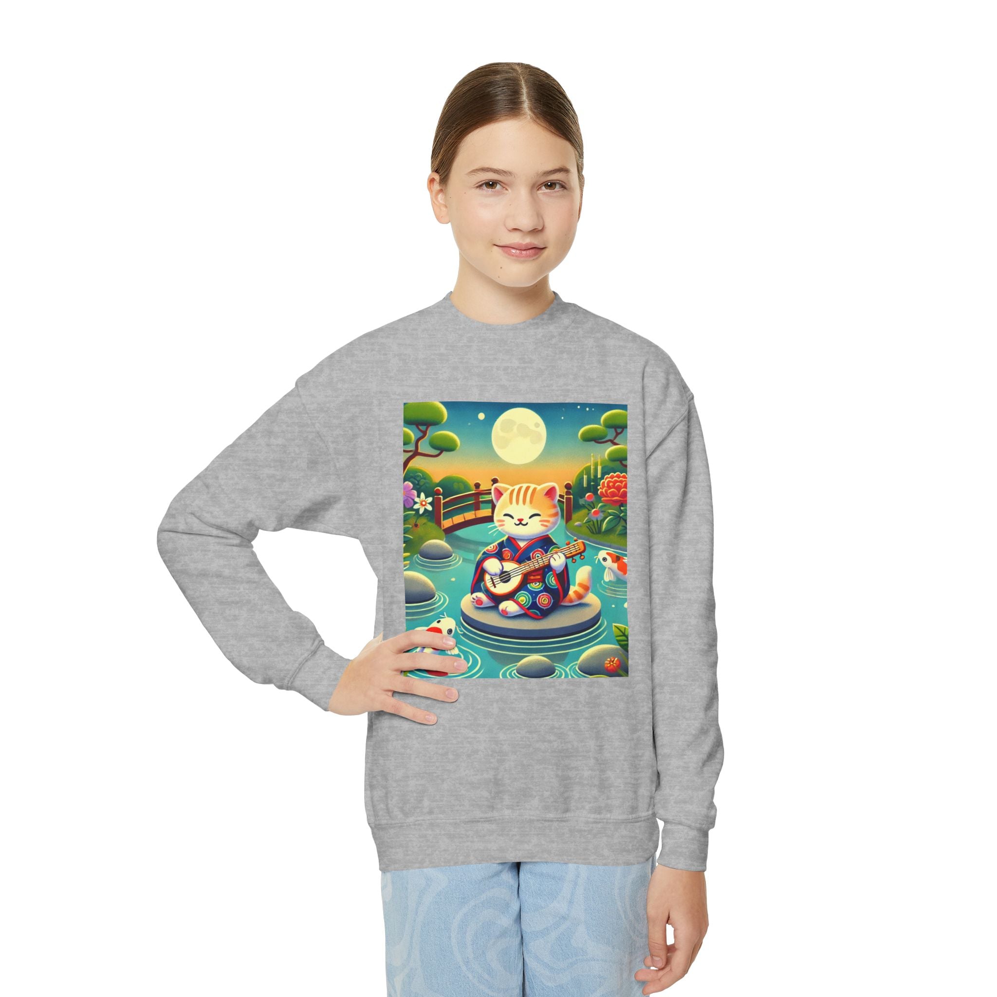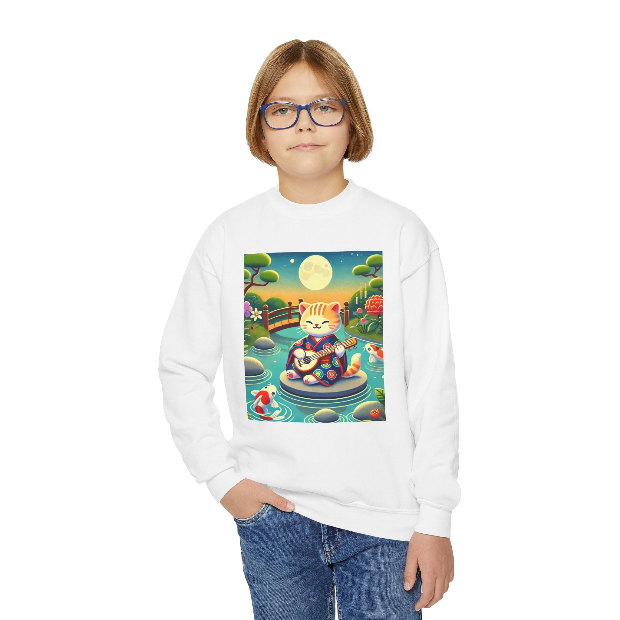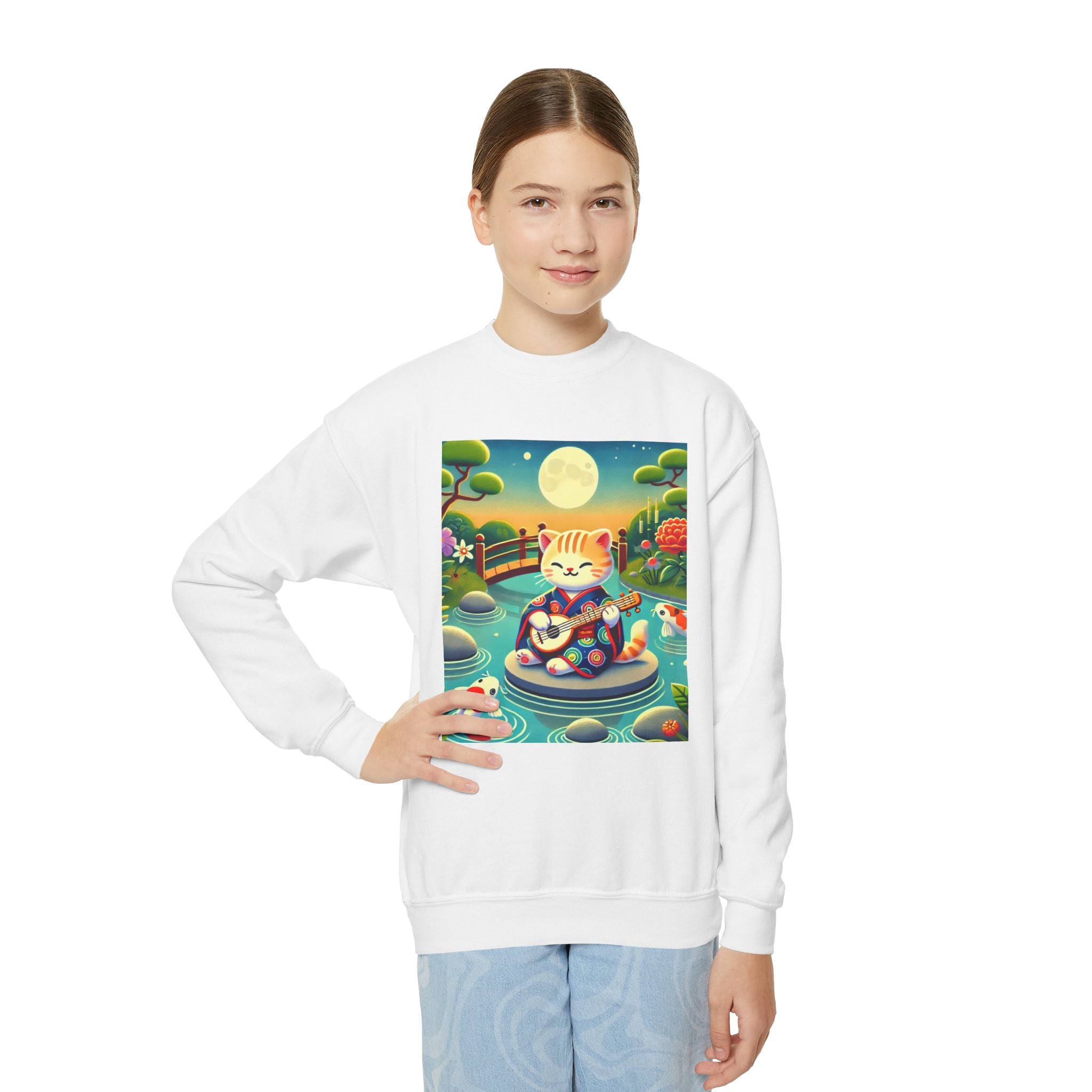 Melodic Kitten by the Koi Pond Youth Crewneck Sweatshirt combines cozy comfort with artistic charm. Made from a soft, durable blend of 50% cotton and 50% polyester, this Gildan 18000B sweatshirt provides warmth and versatility for school, play, or relaxing at home. Its medium-heavy fabric ensures a snug, premium feel, while the loose fit offers freedom of movement. Please note: due to the fabric properties, the White color variant may appear slightly off-white.