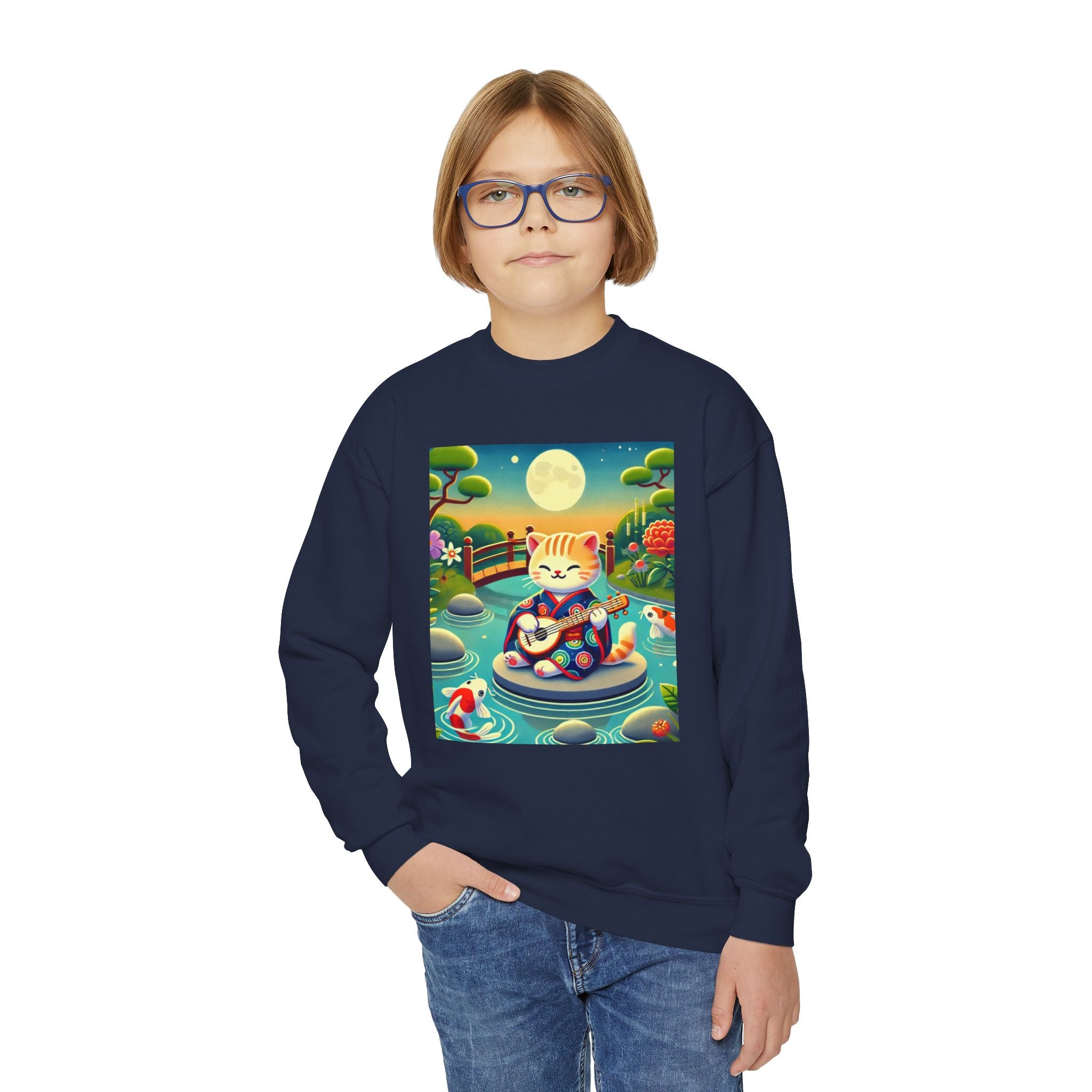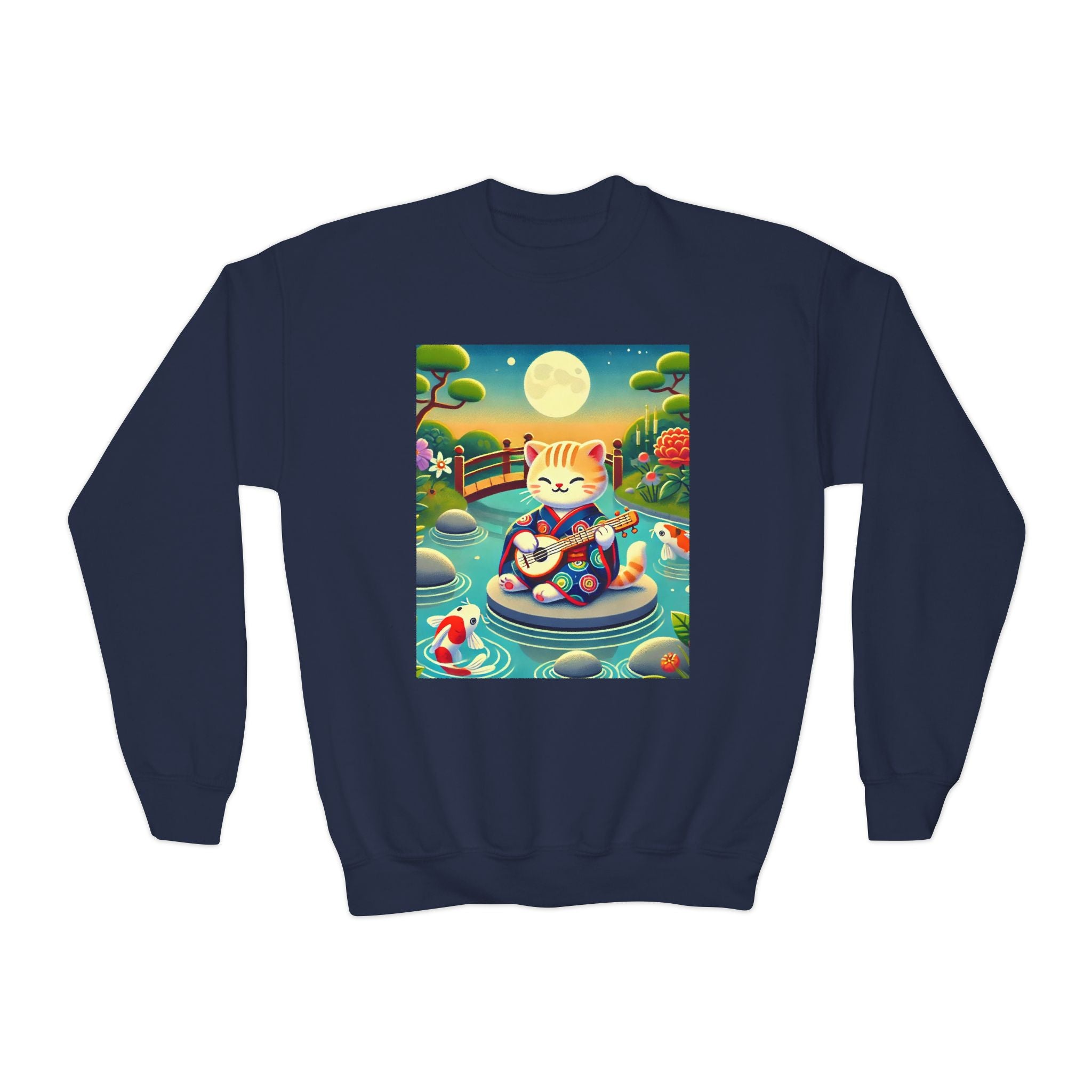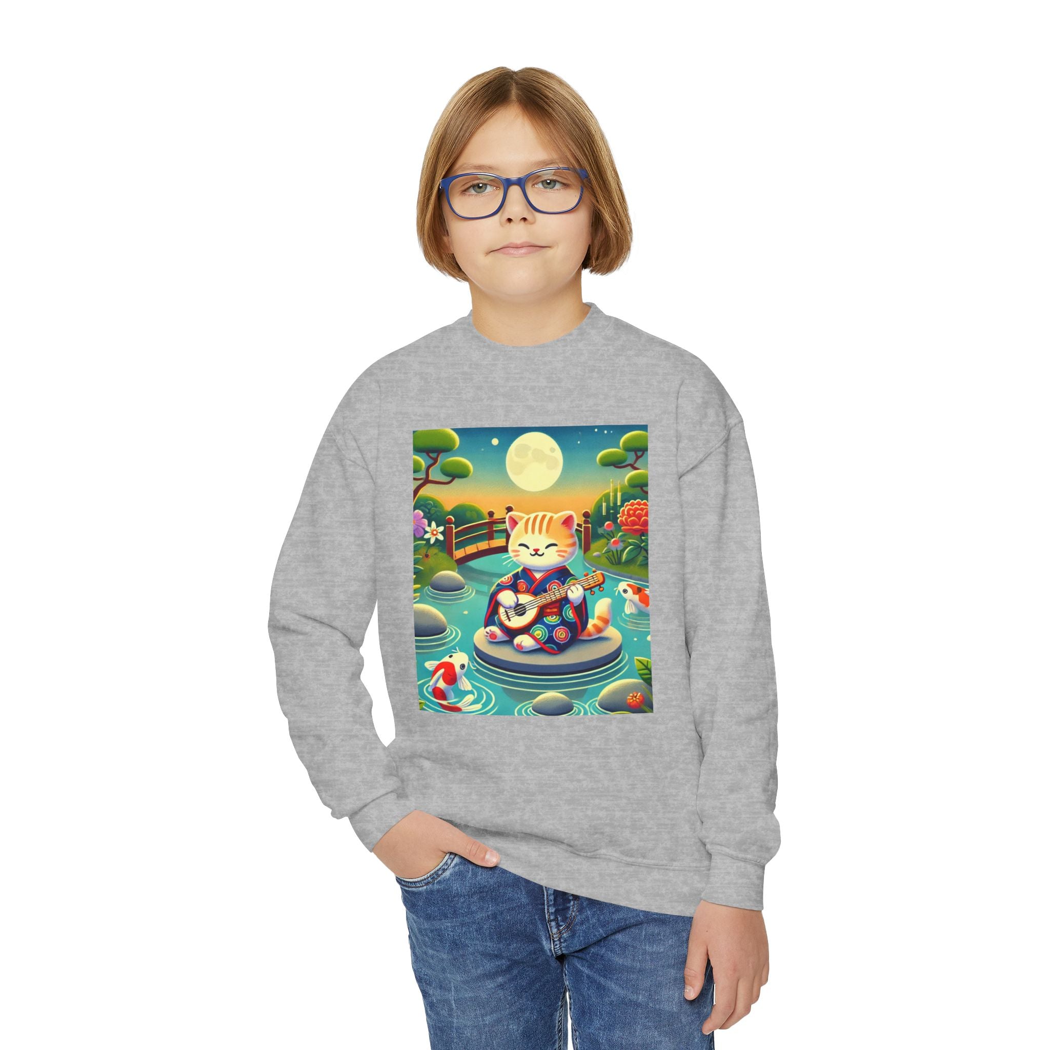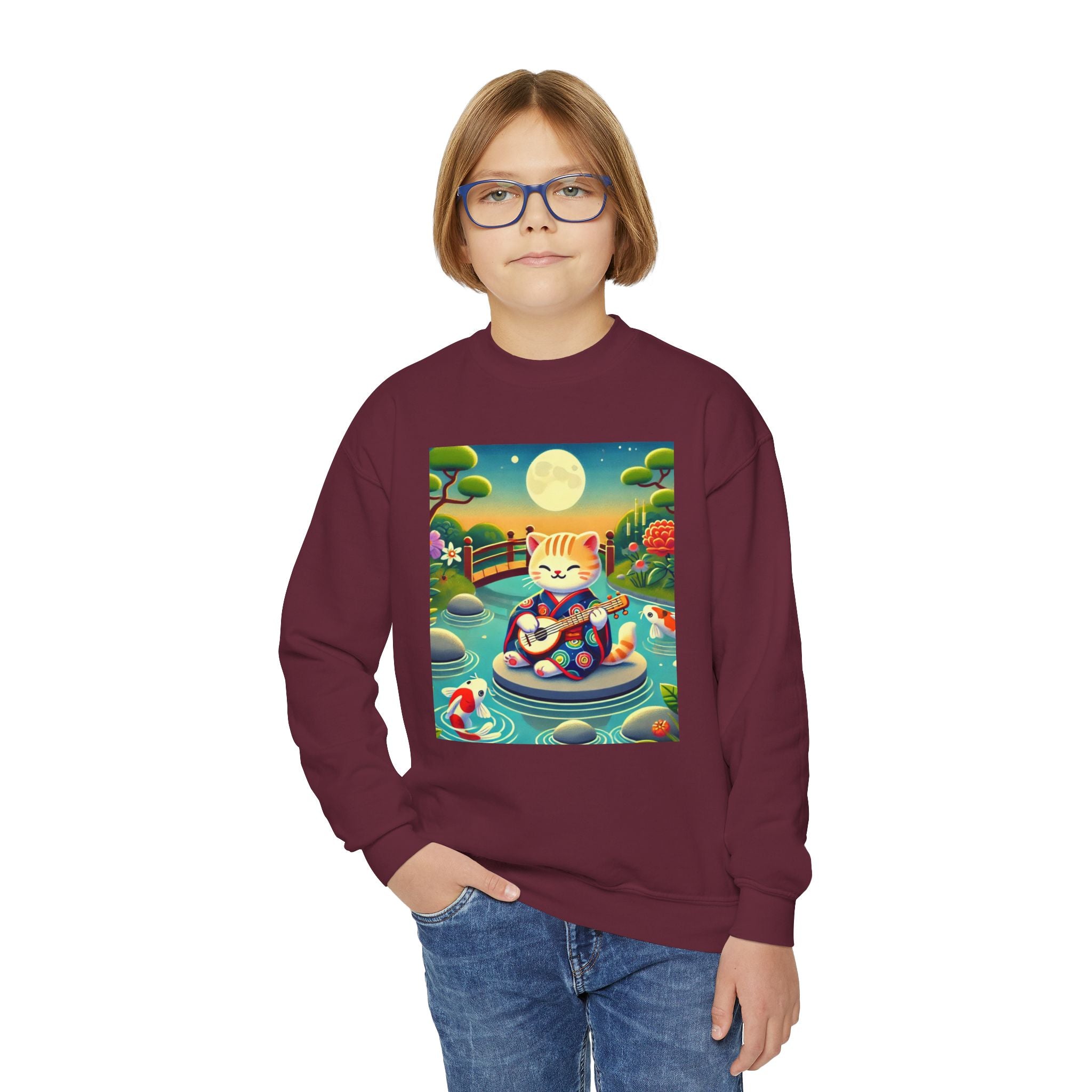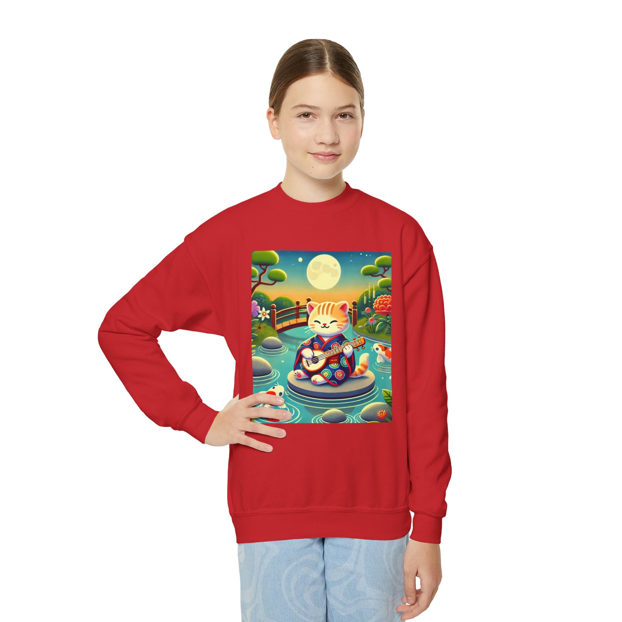 Melodic Kitten by the Koi Pond Youth Crewneck Sweatshirt combines cozy comfort with artistic charm. Made from a soft, durable blend of 50% cotton and 50% polyester, this Gildan 18000B sweatshirt provides warmth and versatility for school, play, or relaxing at home. Its medium-heavy fabric ensures a snug, premium feel, while the loose fit offers freedom of movement. Please note: due to the fabric properties, the White color variant may appear slightly off-white.