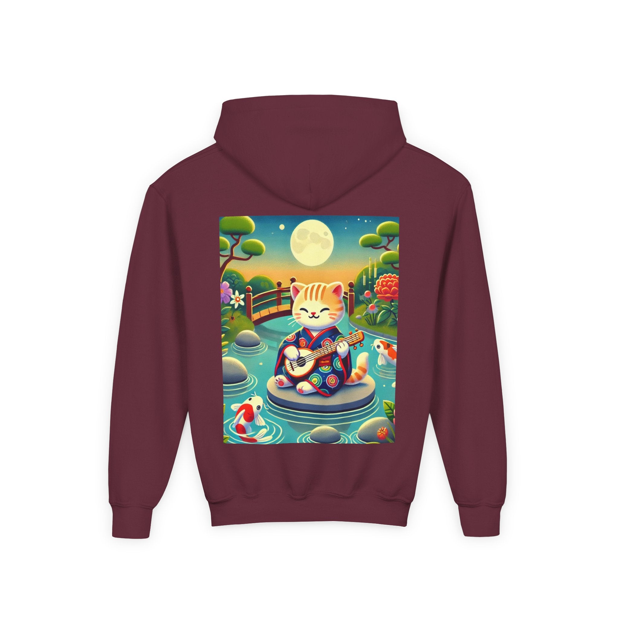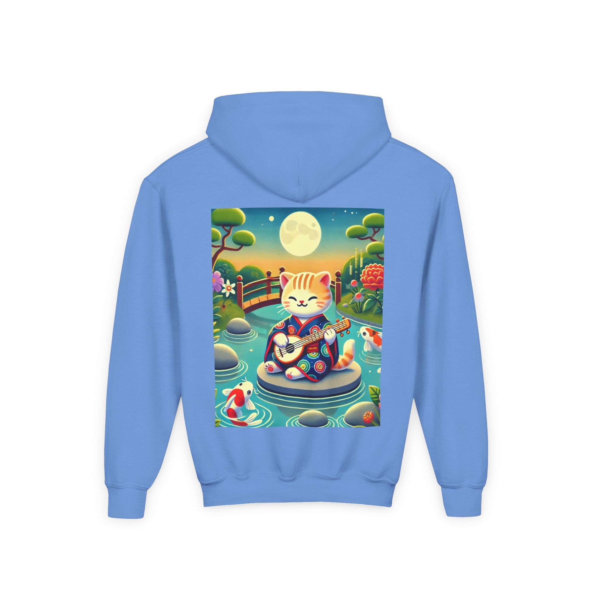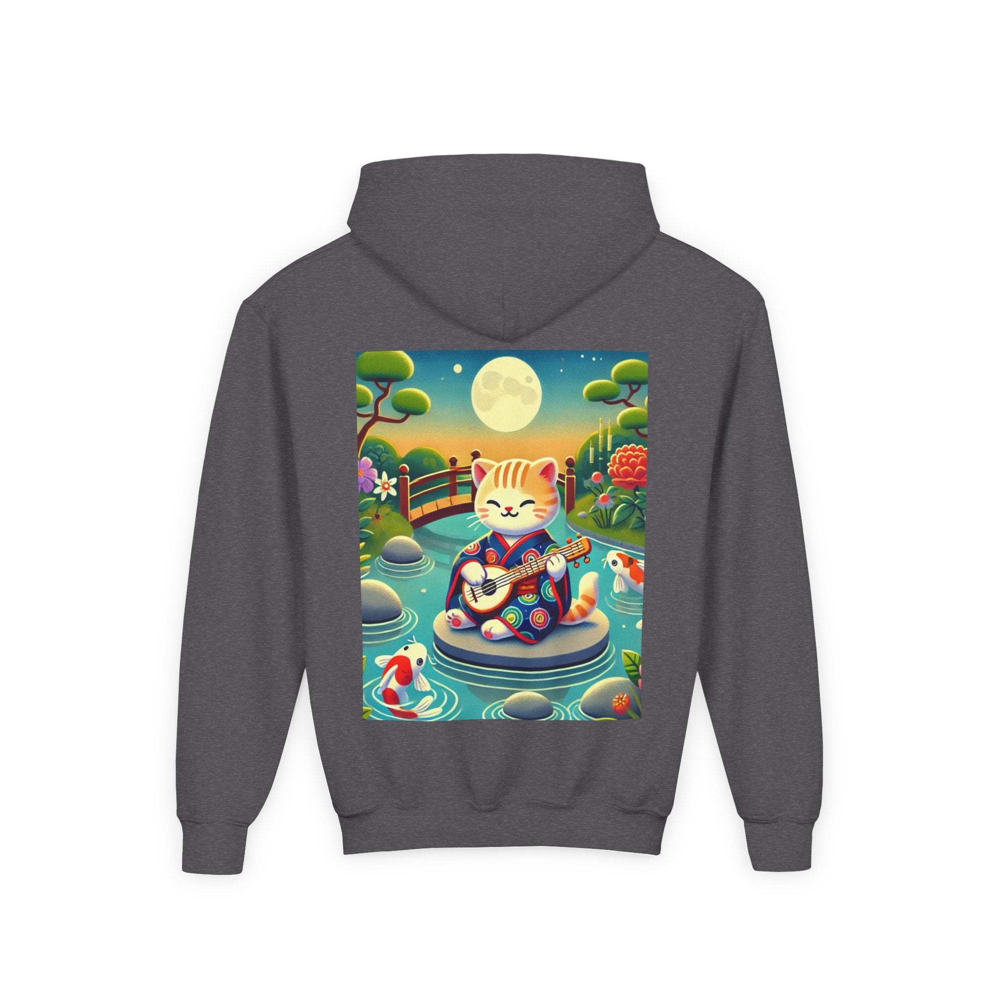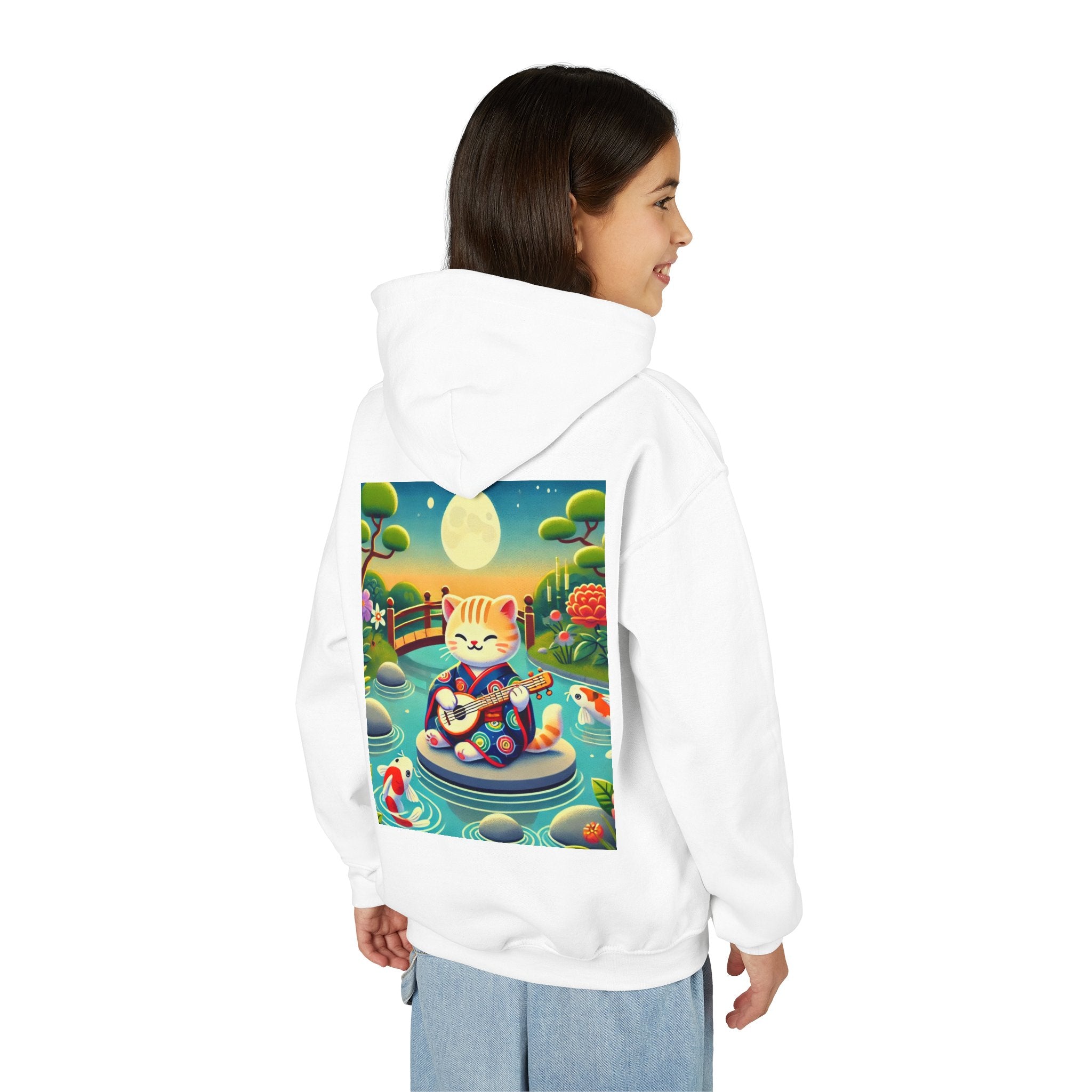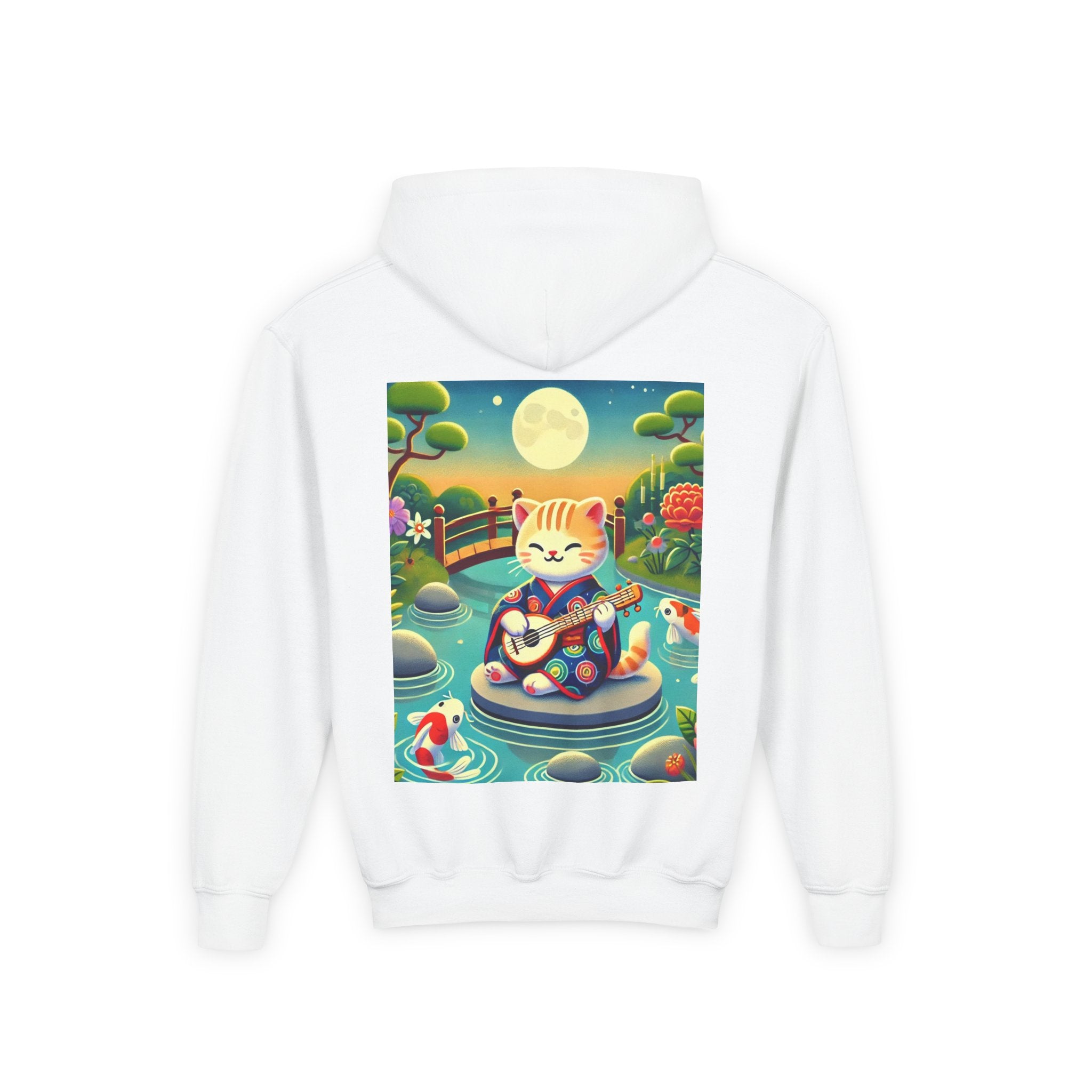 Melodic Kitten by the Koi Pond Youth Heavy Blend Hooded Sweatshirt combines cozy comfort with a touch of artistic charm. Made from ultra-soft, preshrunk fleece, this hoodie feels smooth and warm while minimizing lint buildup. The 50/50 cotton-polyester blend provides lasting softness and durability, complete with a roomy kangaroo pocket and a twill-reinforced neck for everyday comfort. Please note: due to fabric properties, the White color variant may appear slightly off-white.
