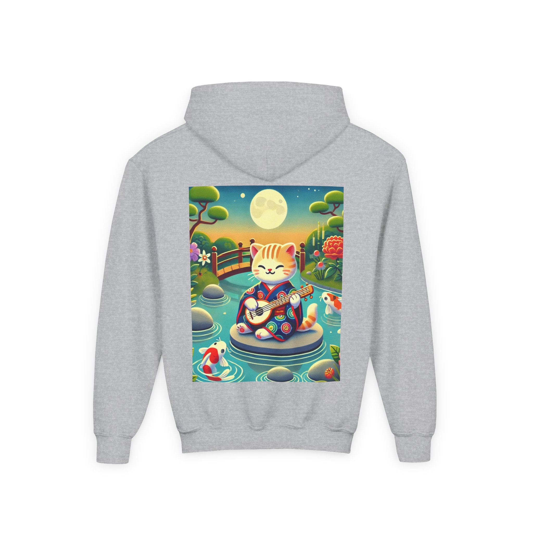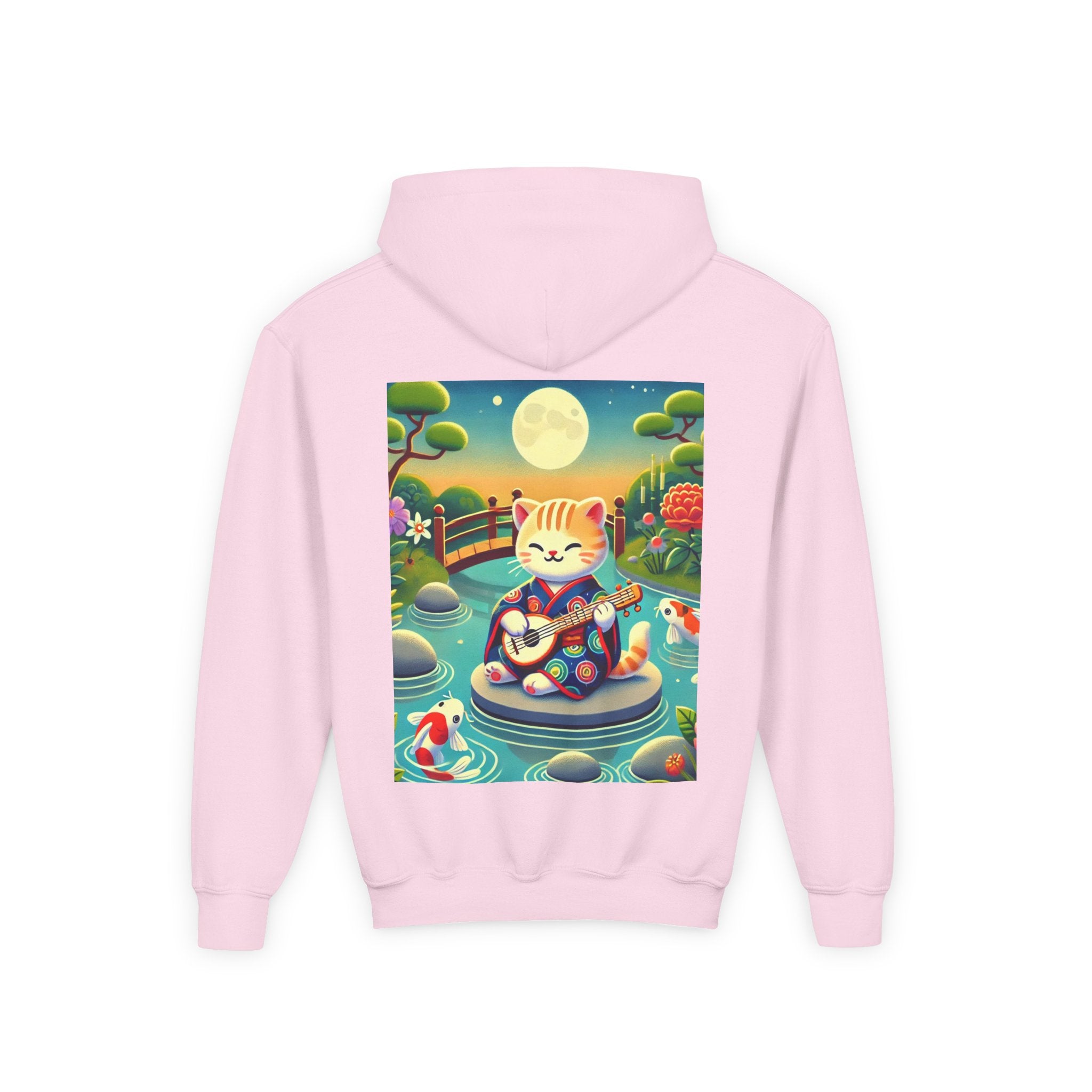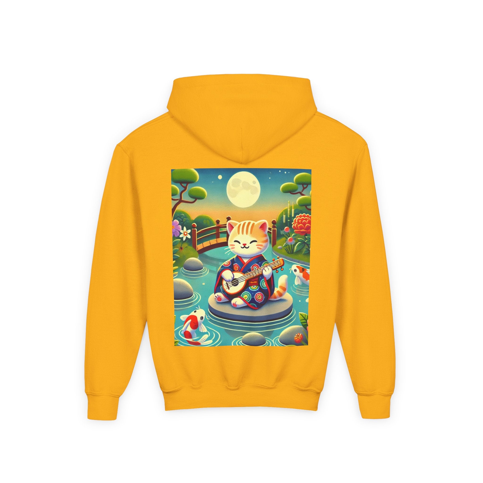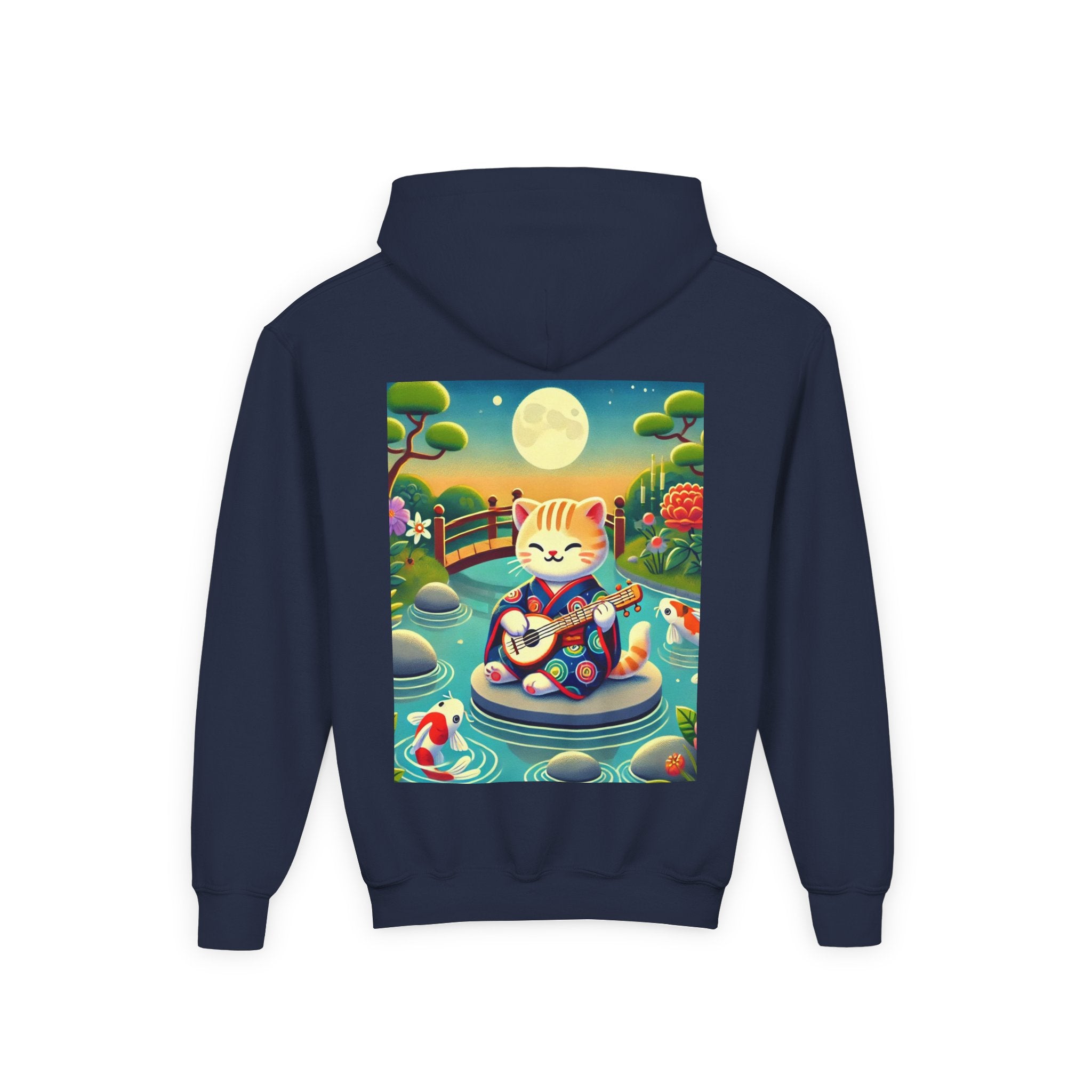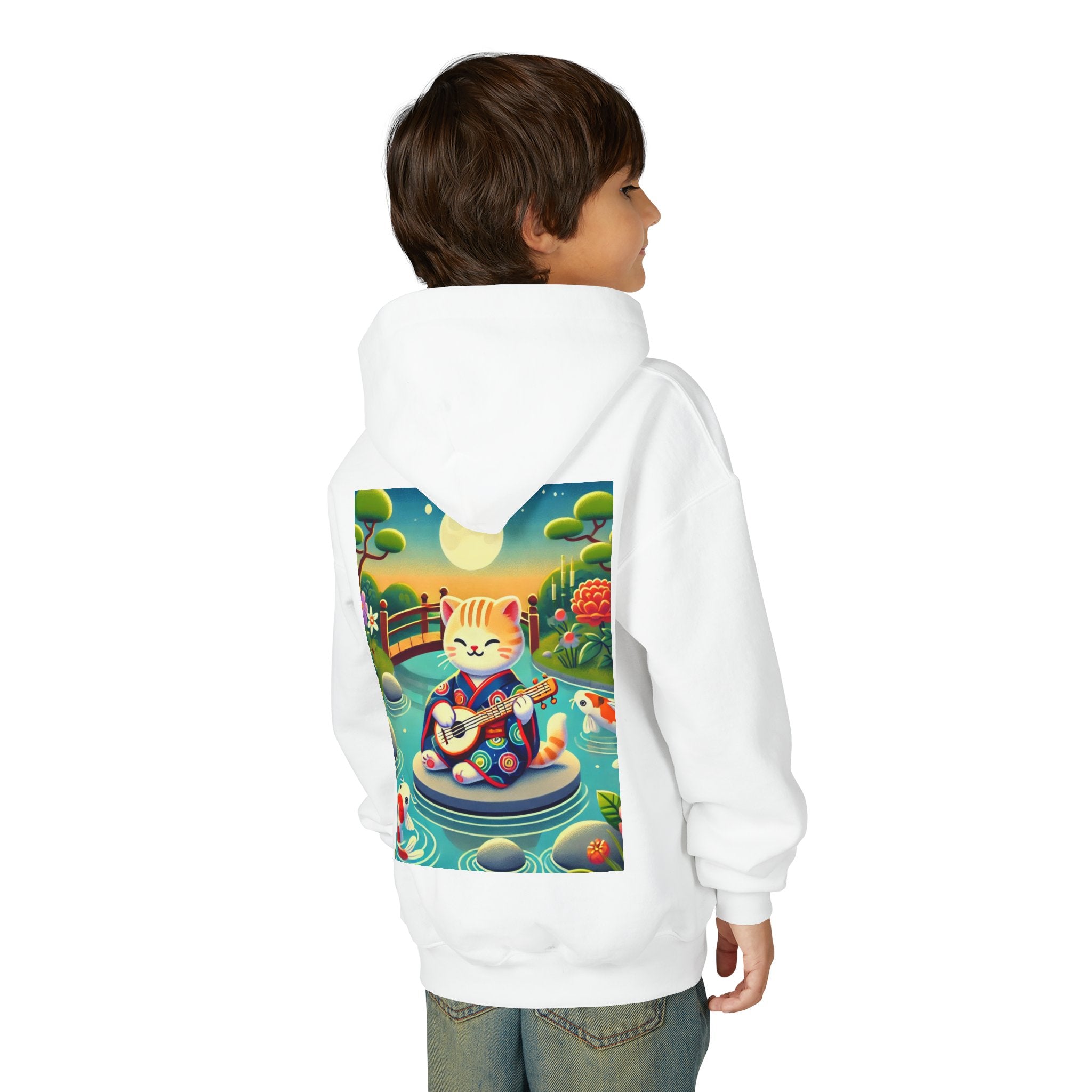 Melodic Kitten by the Koi Pond Youth Heavy Blend Hooded Sweatshirt combines cozy comfort with a touch of artistic charm. Made from ultra-soft, preshrunk fleece, this hoodie feels smooth and warm while minimizing lint buildup. The 50/50 cotton-polyester blend provides lasting softness and durability, complete with a roomy kangaroo pocket and a twill-reinforced neck for everyday comfort. Please note: due to fabric properties, the White color variant may appear slightly off-white.
