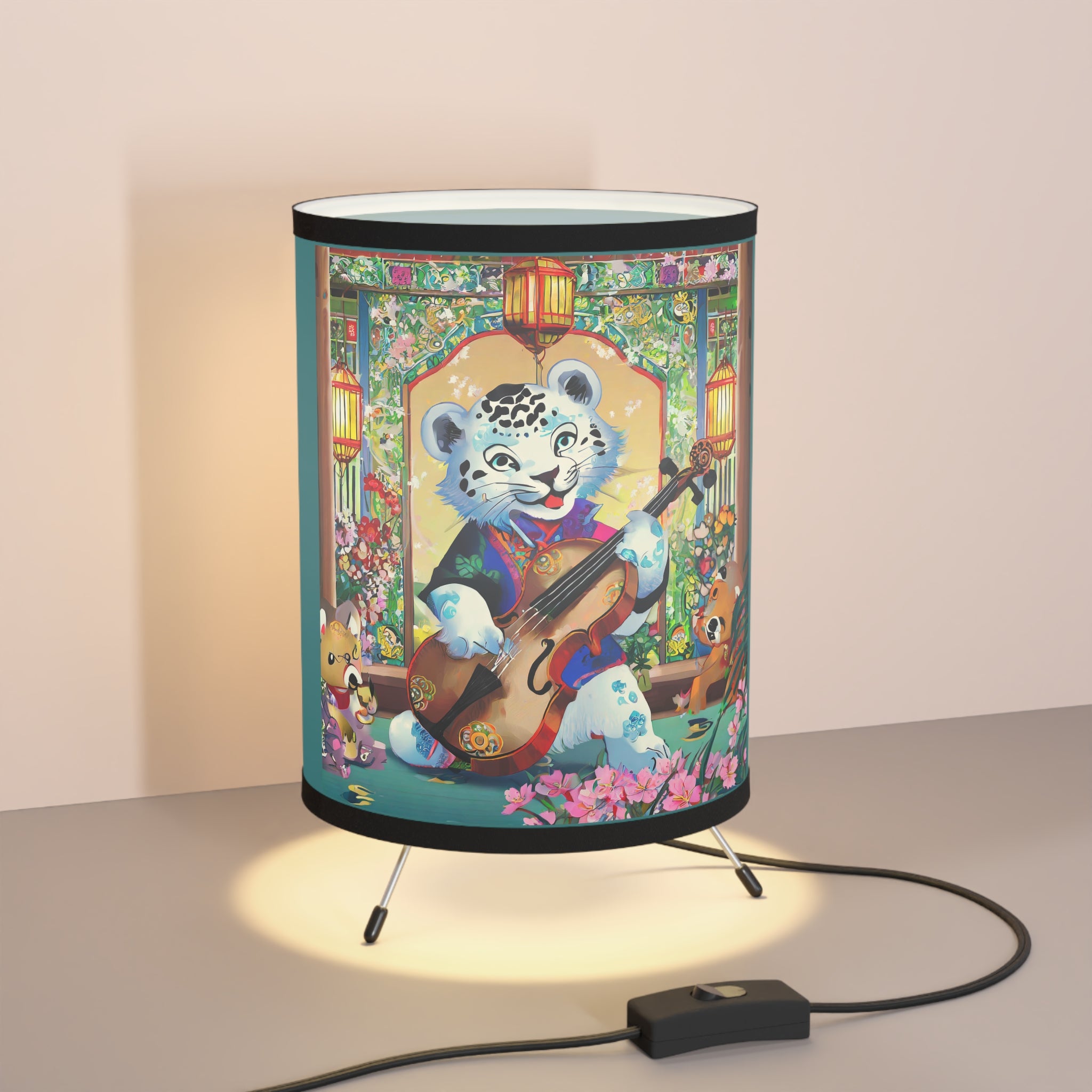 Transform your room with this epic tripod lamp! This sturdy lamp has a cool metal base, and the best part? It comes with an awesome pre-designed artwork for the shade! The high-resolution image is super vibrant, so your favorite design will light up your space in style. This lamp isn't just for lighting, it's a statement piece that lets you show off your personality. Light up your room and your imagination with this must-have lamp!