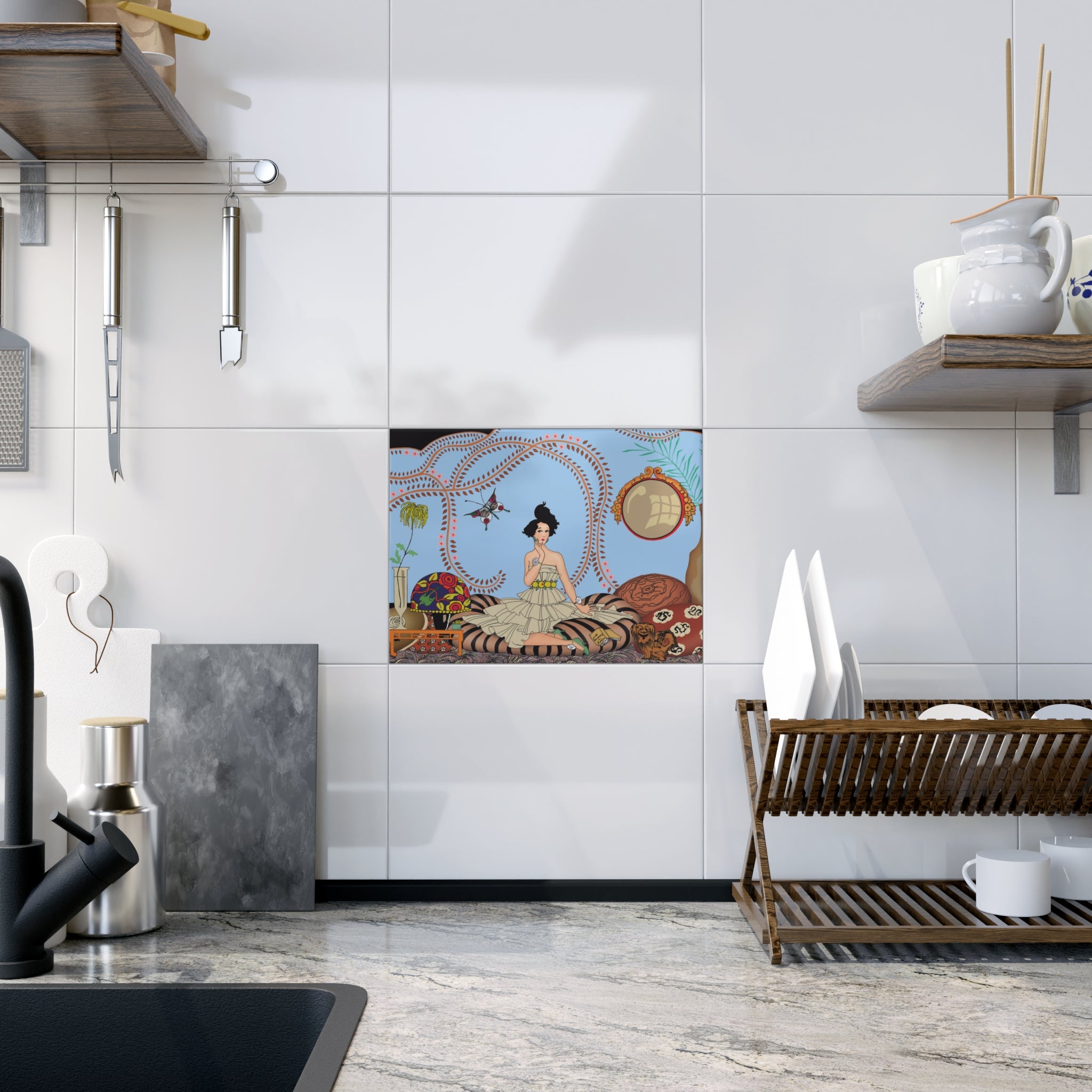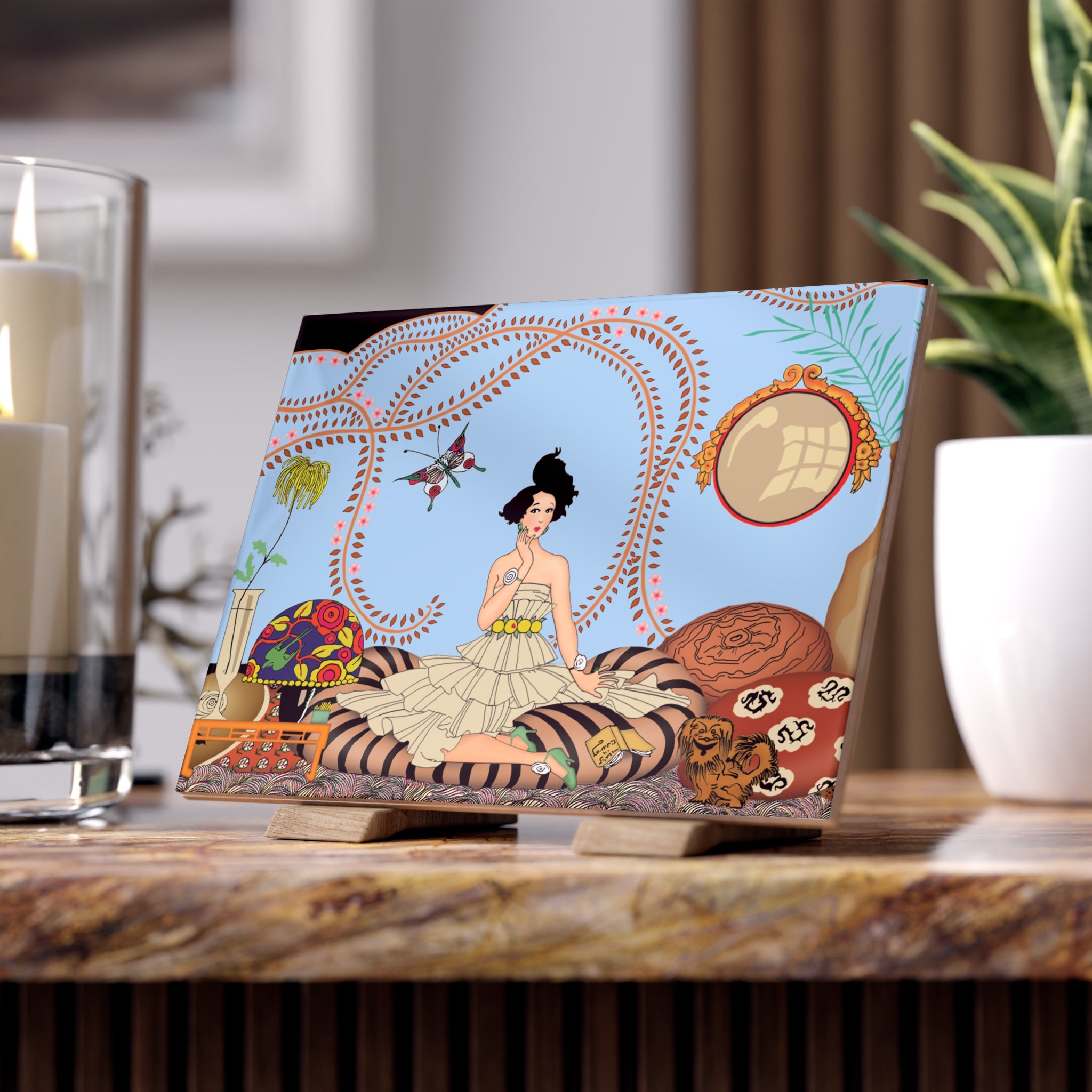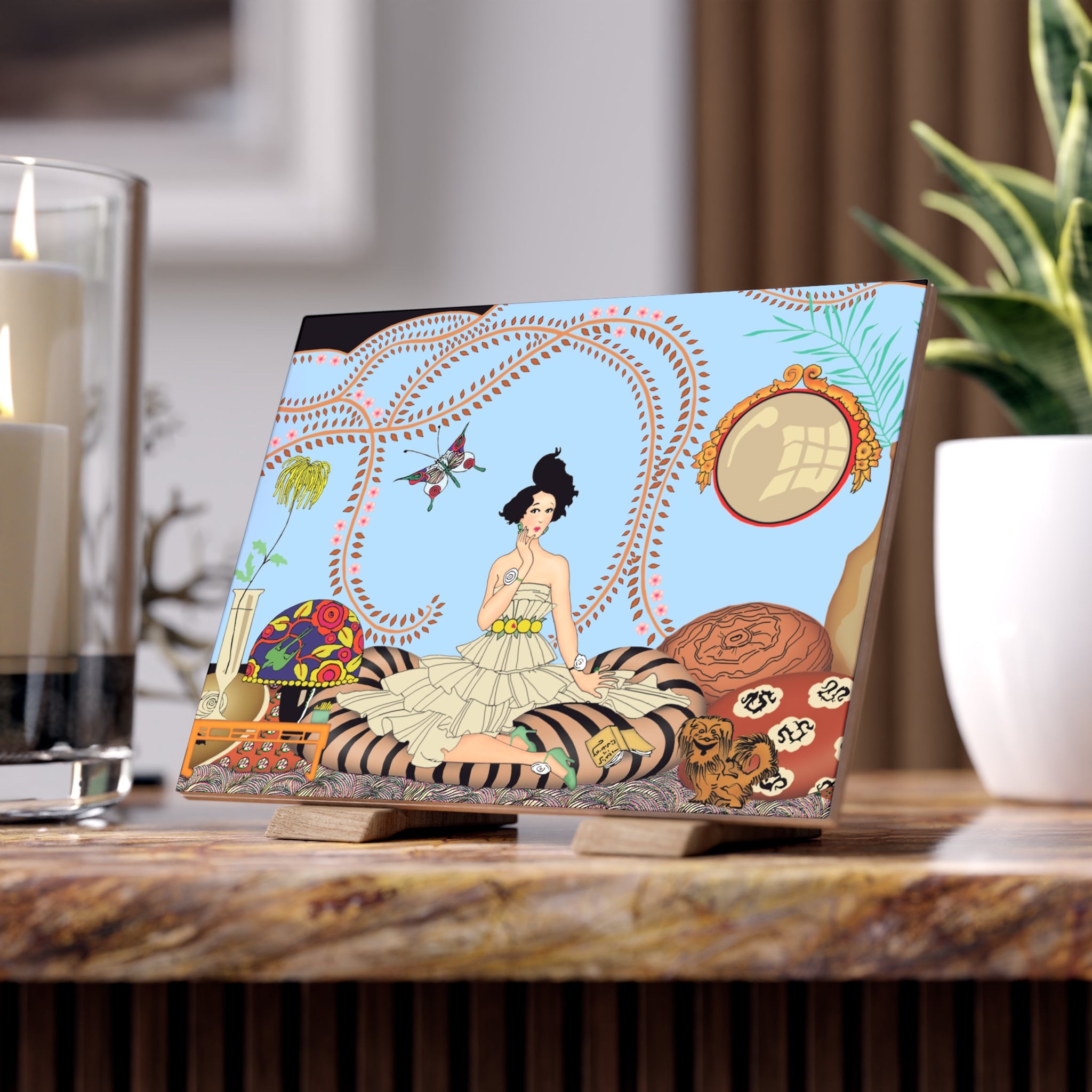 Add a touch of sophisticated Art Deco elegance to your home with this custom-designed Ceramic Tile featuring a reimagined masterpiece by George Barbier. Perfect for art enthusiasts and those who appreciate refined decor, this vibrant and whimsical tile is a great accent piece for any room. Ideal for special occasions like housewarmings or birthdays.