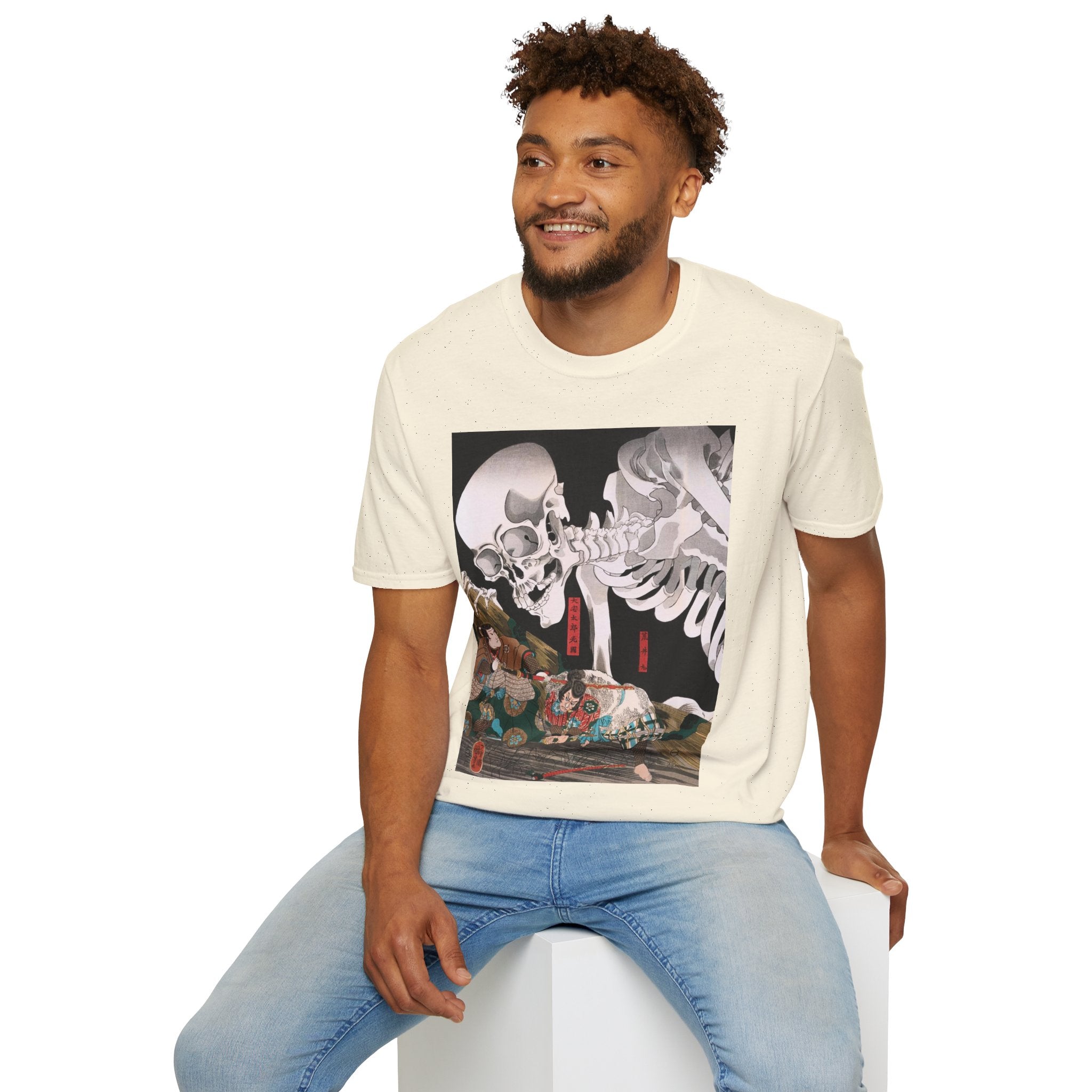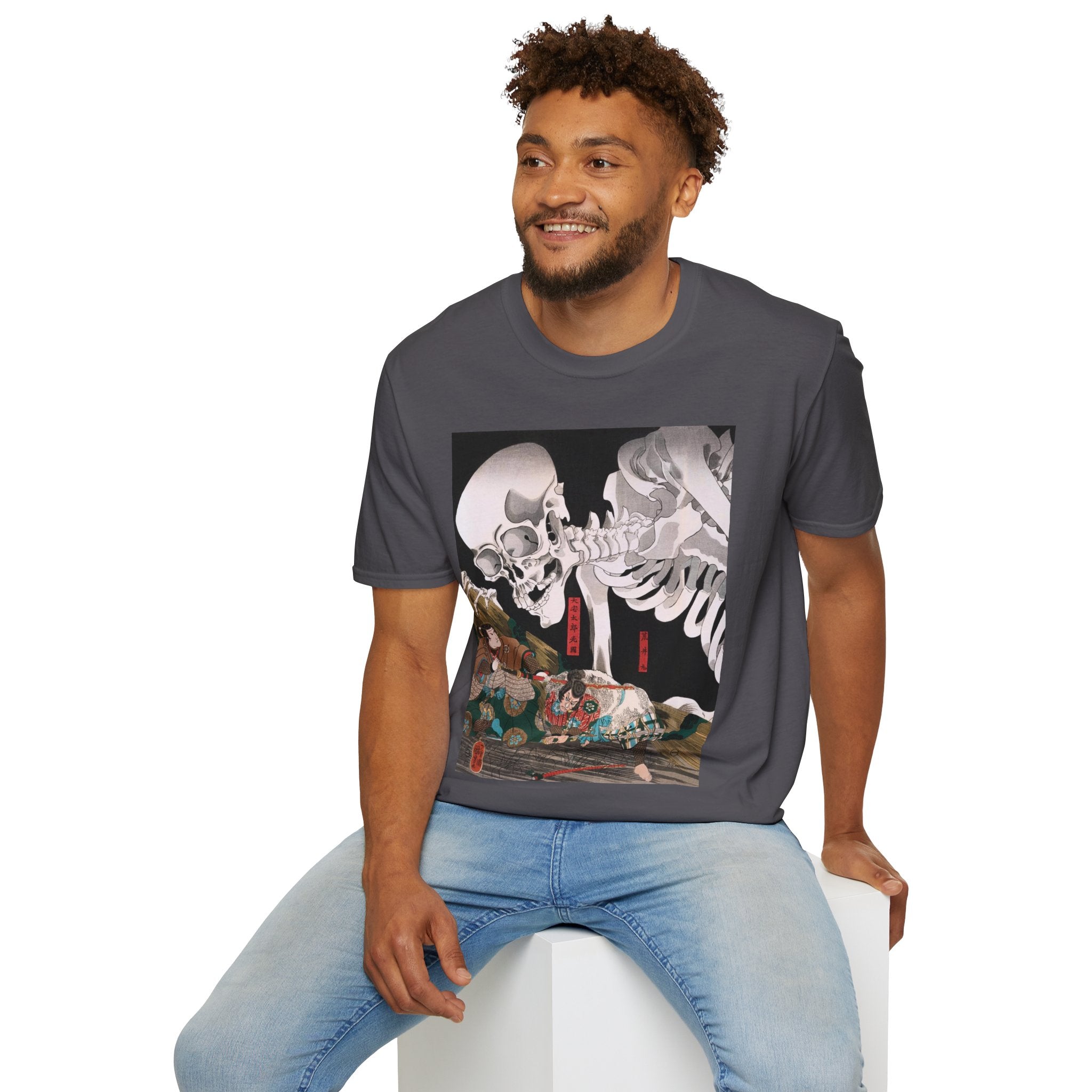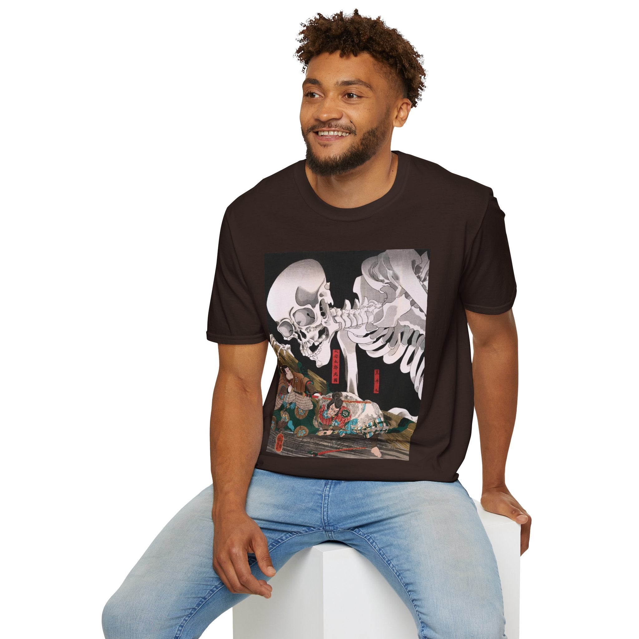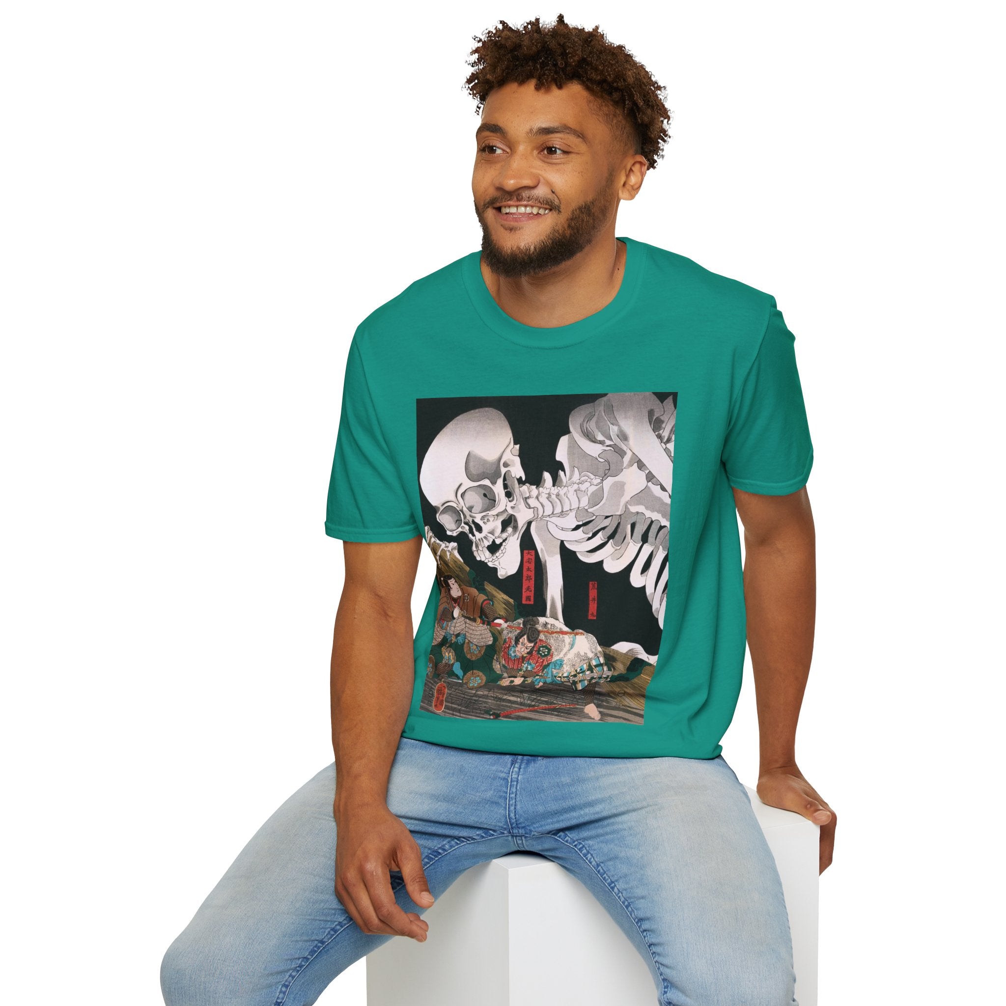 Mitsukuni Defying the Skeleton Spectre Softstyle T-Shirt is perfect for those who appreciate the thrill of mythology, the brilliance of Edo-period art, and the fearless spirit of Japanese legend.