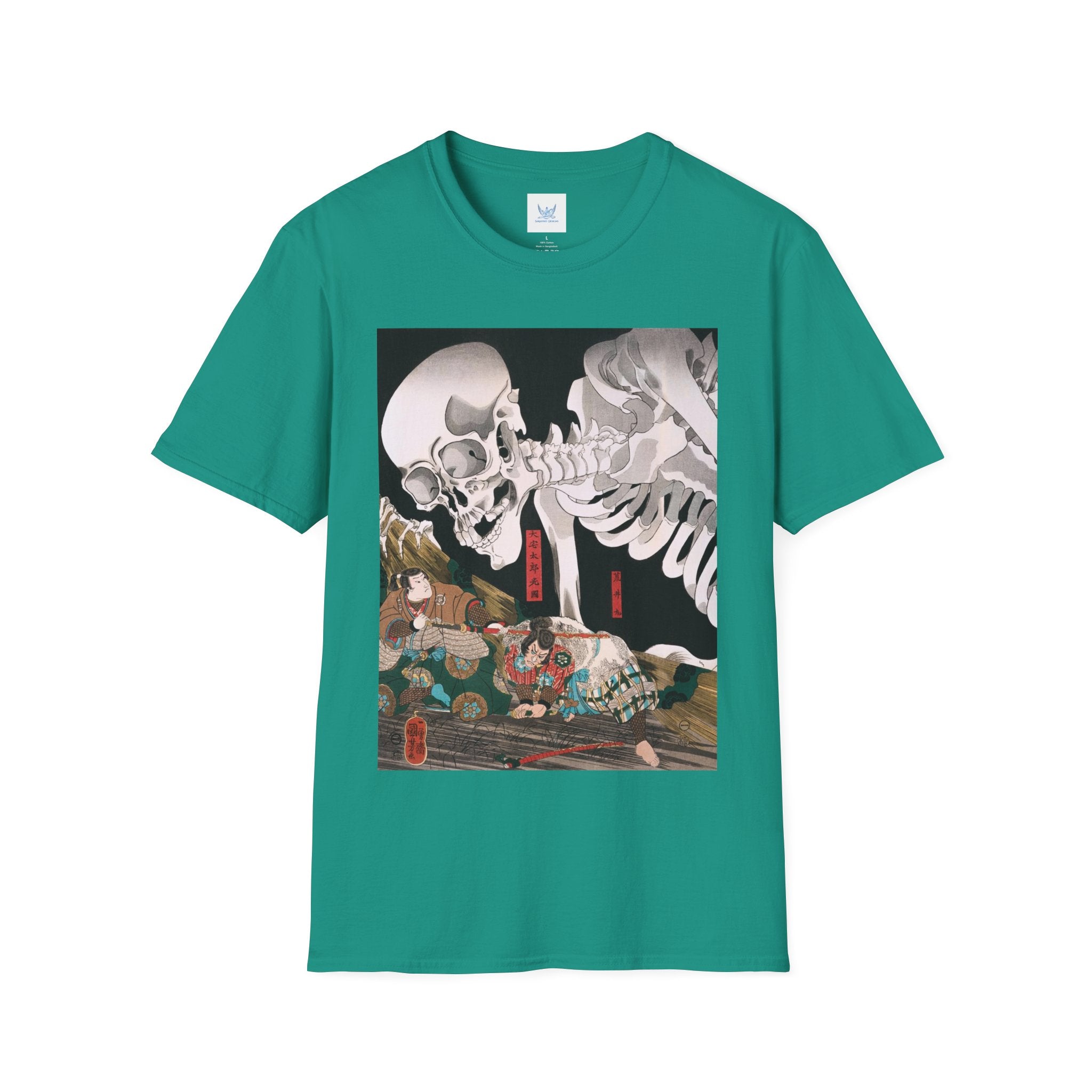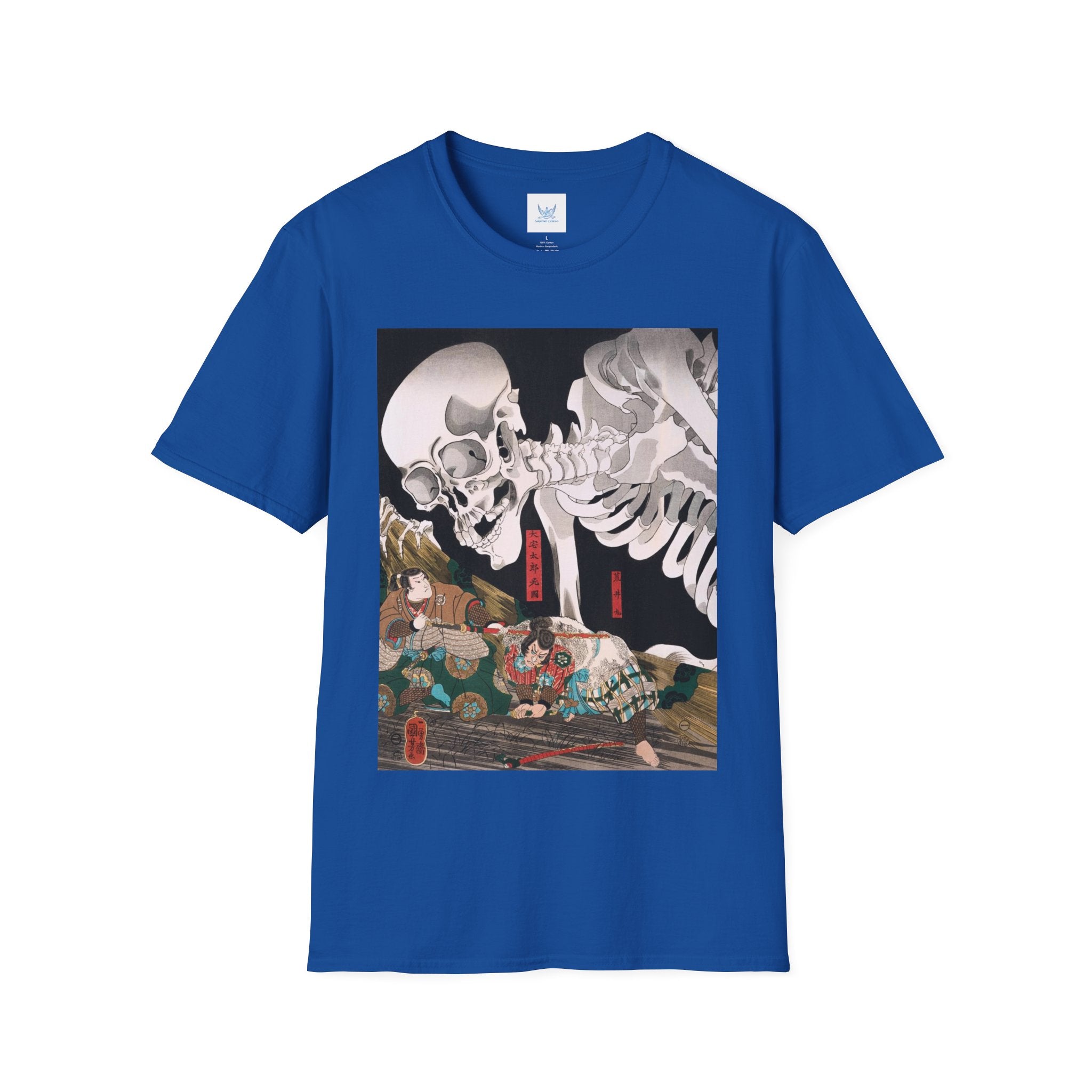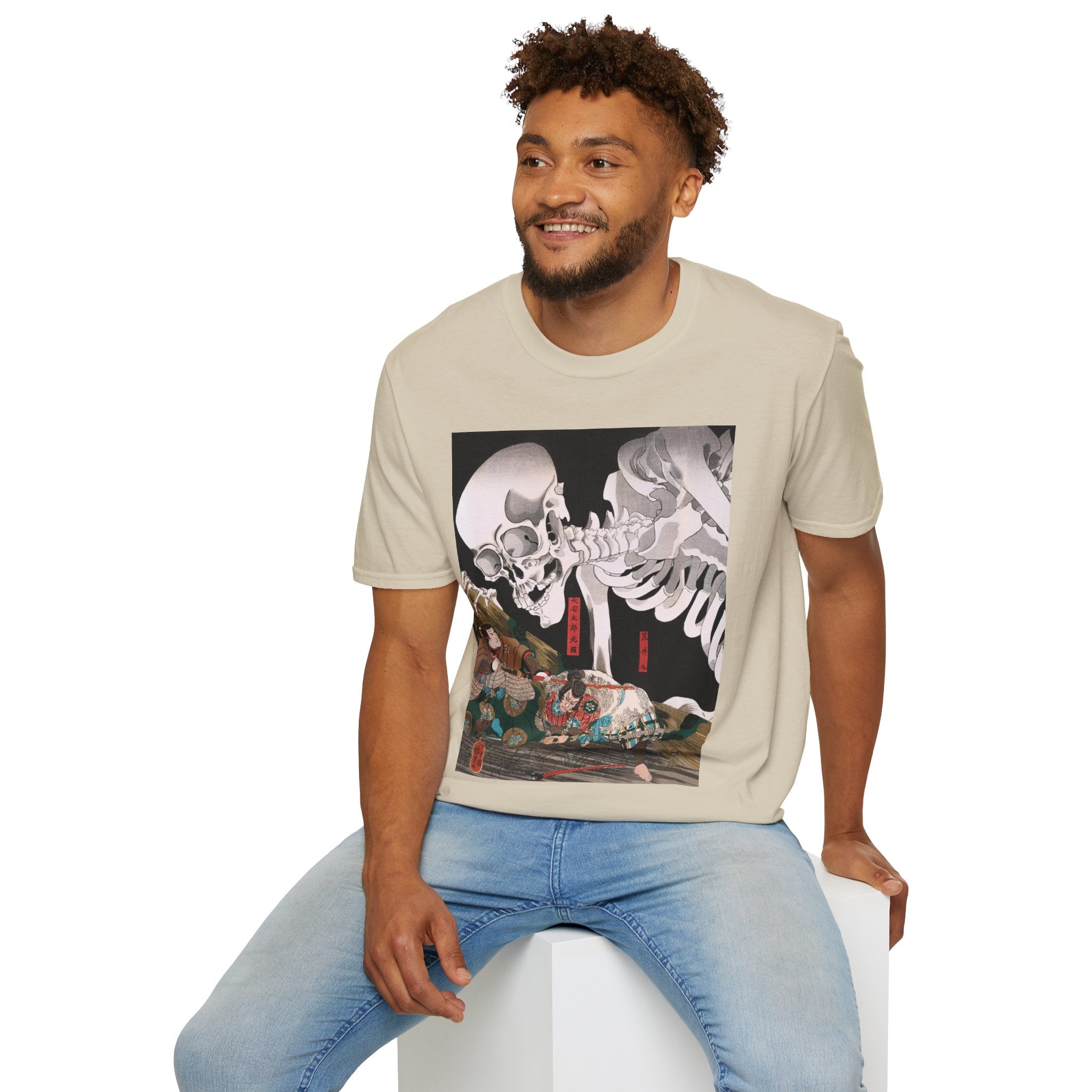 Mitsukuni Defying the Skeleton Spectre Softstyle T-Shirt is perfect for those who appreciate the thrill of mythology, the brilliance of Edo-period art, and the fearless spirit of Japanese legend.