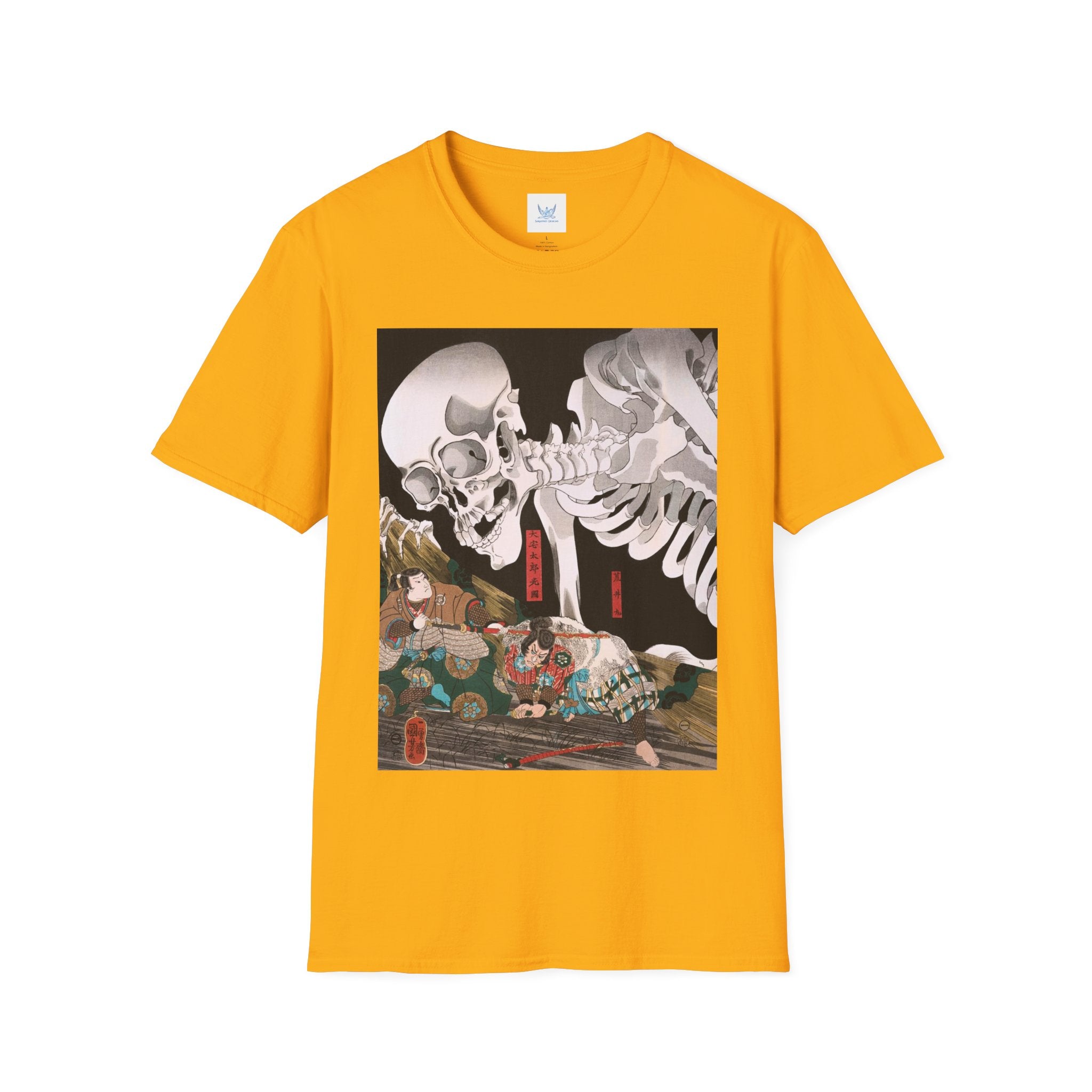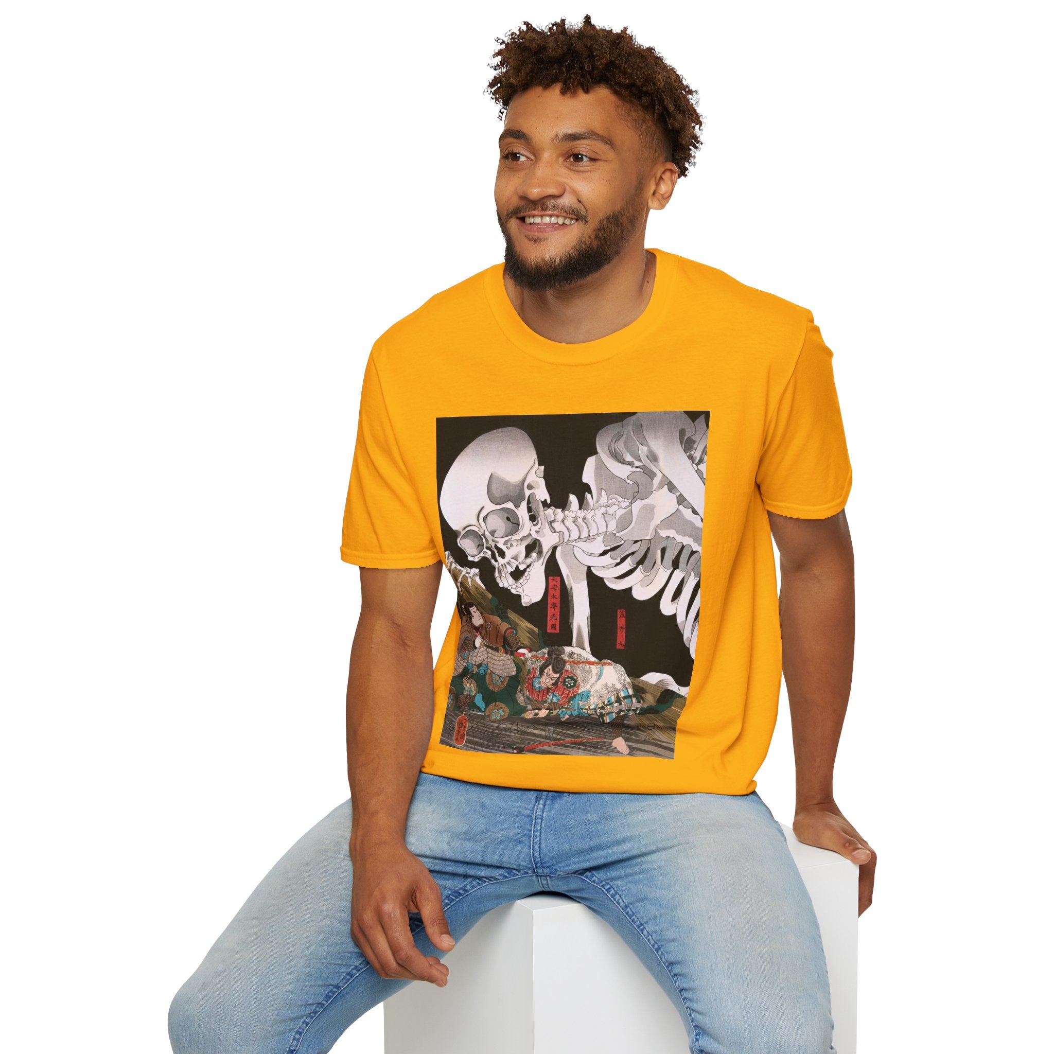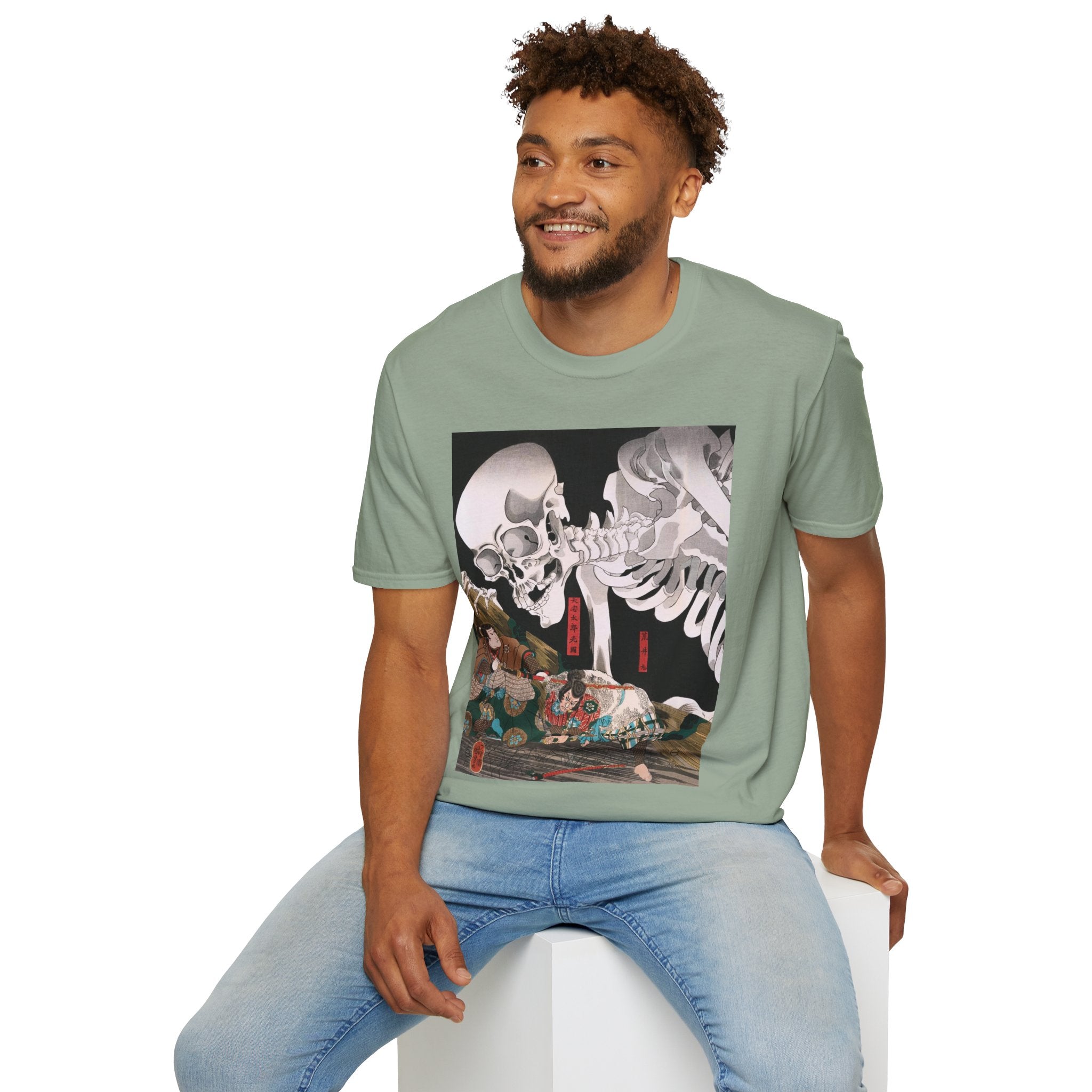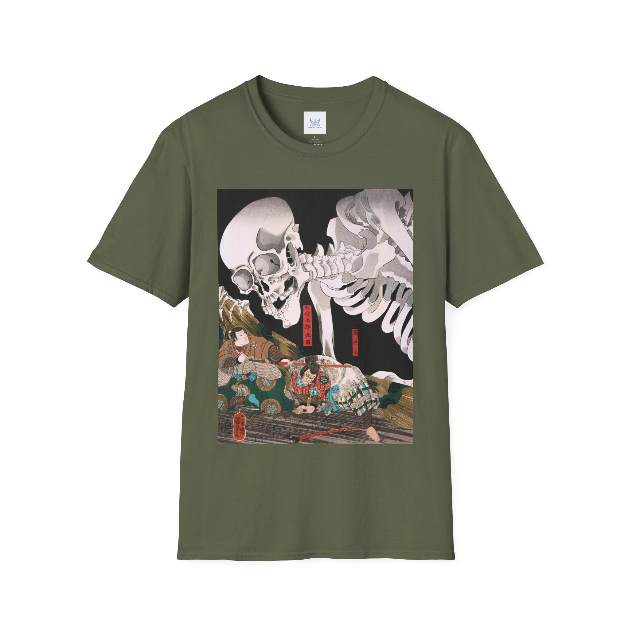 Mitsukuni Defying the Skeleton Spectre Softstyle T-Shirt is perfect for those who appreciate the thrill of mythology, the brilliance of Edo-period art, and the fearless spirit of Japanese legend.