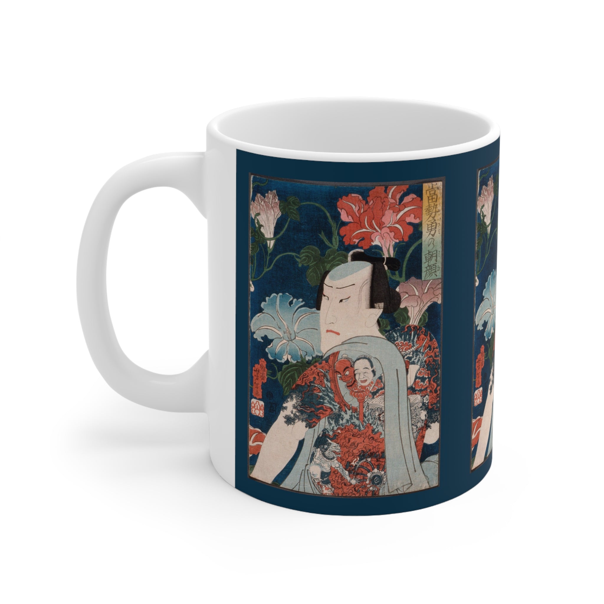 “Modern Gallants with Morning Glories” (1860) is one panel from a triptych woodblock print by the Japanese artist Tsukioka Yoshitoshi (1839-1892). The triptych depicts three young kabuki actors, Ichikawa Ichizō III, Kawarazaki Gonjūrō I, and Nakamura Shikan IV, in fashionable clothing of the time. The actors are posed against a backdrop of morning glories, which are in full bloom. The specific panel here (right side of the original triptych) depicts the kabuki actor Nakamura Shikan IV. The print is notable for its vibrant colors and intricate details. Yoshitoshi used a variety of printing techniques to create a sense of depth and realism. The actors' clothing is particularly well-rendered, with its rich textures and patterns. The morning glories are also beautifully depicted, with their delicate petals and delicate vines The print is also significant for its historical value. It provides a glimpse into the world of kabuki theater and the fashion trends of the late Edo period. It is also a testament to the skill of Yoshitoshi, who was one of the most celebrated woodblock print artists of his time.