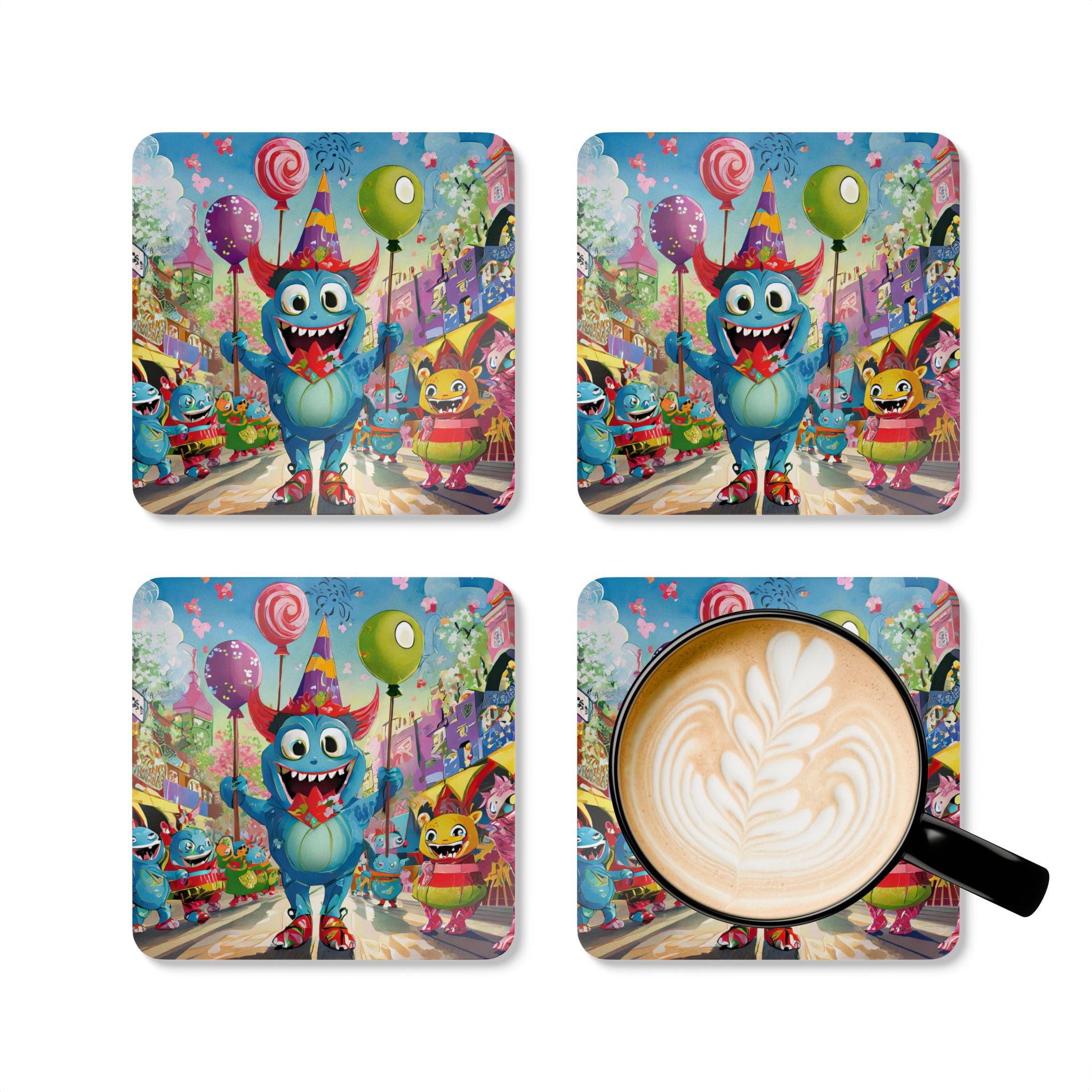 Add a festive touch to your Halloween decor with this elegant set of coasters. Each set includes four coasters, all featuring captivating Halloween designs. Crafted with a high-gloss top and a cork back, these coasters offer both style and functionality, preventing any unwanted sliding while adding a spooky charm to your home or business.