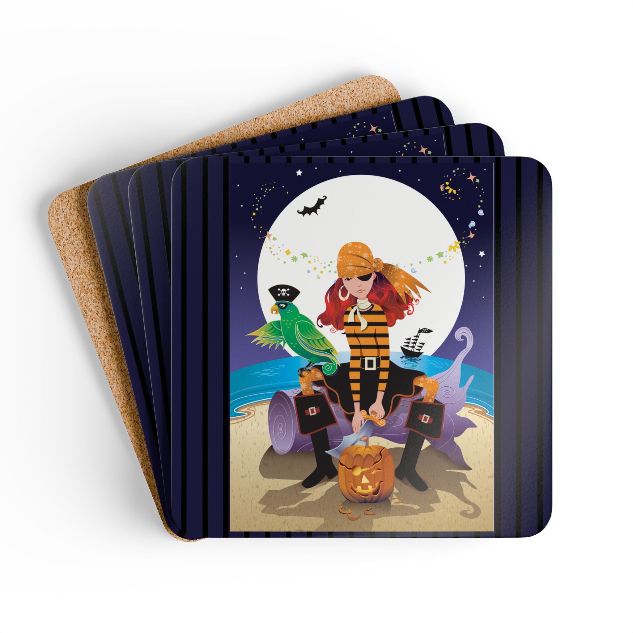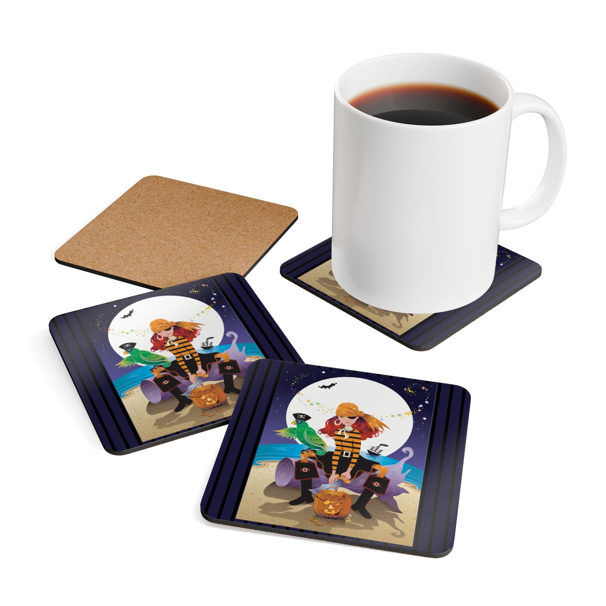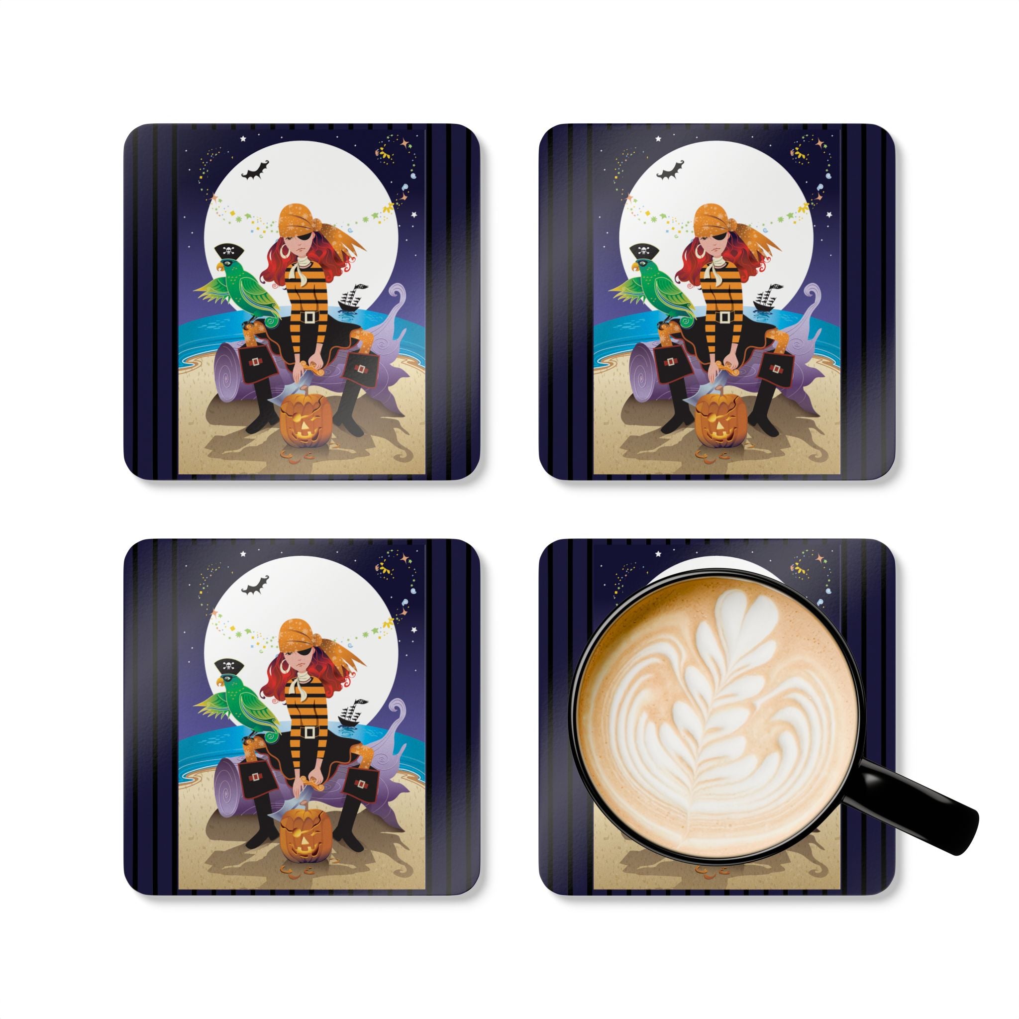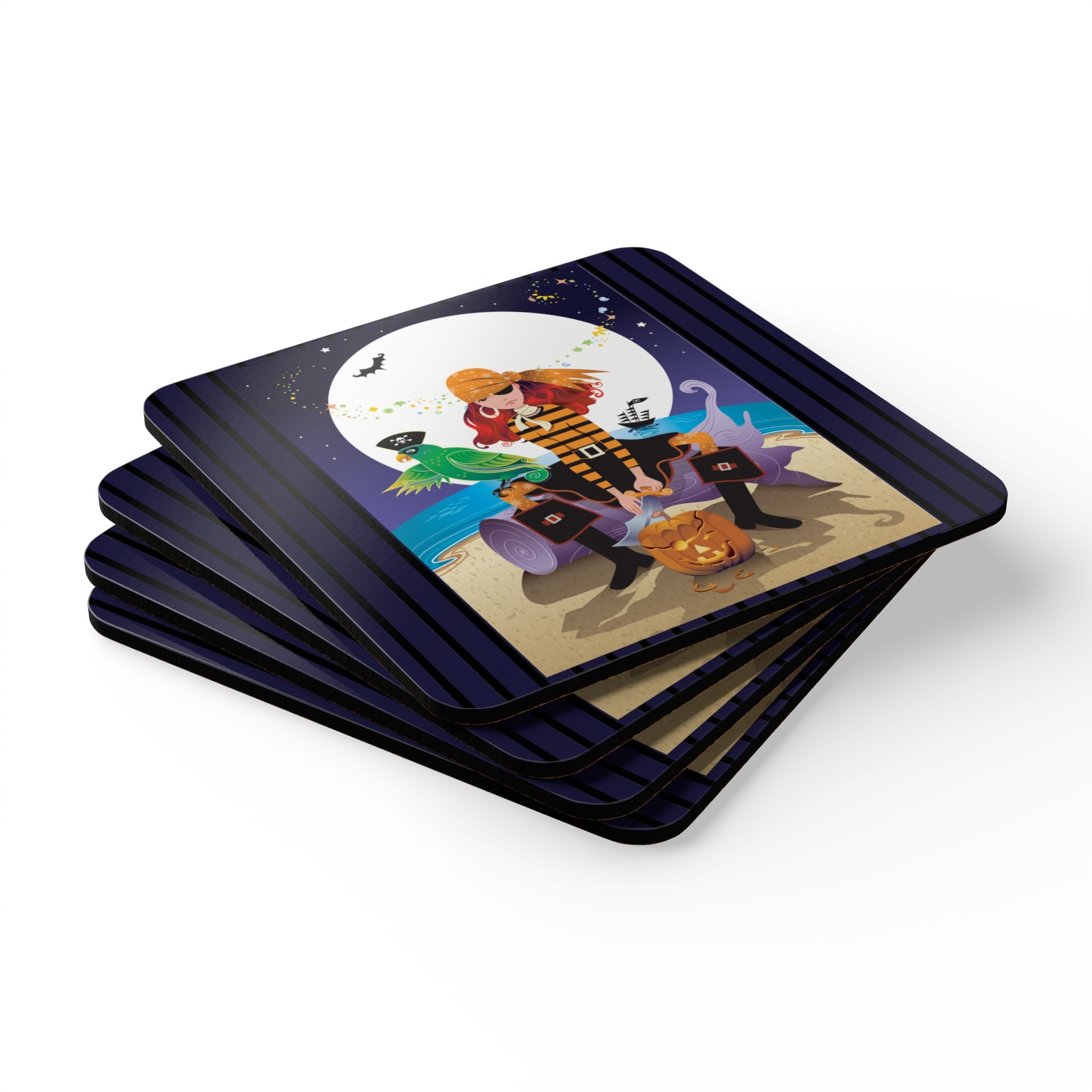Add a festive touch to your Halloween decor with this elegant set of coasters. Each set includes four coasters, all featuring captivating Halloween designs. Crafted with a high-gloss top and a cork back, these coasters offer both style and functionality, preventing any unwanted sliding while adding a spooky charm to your home or business.