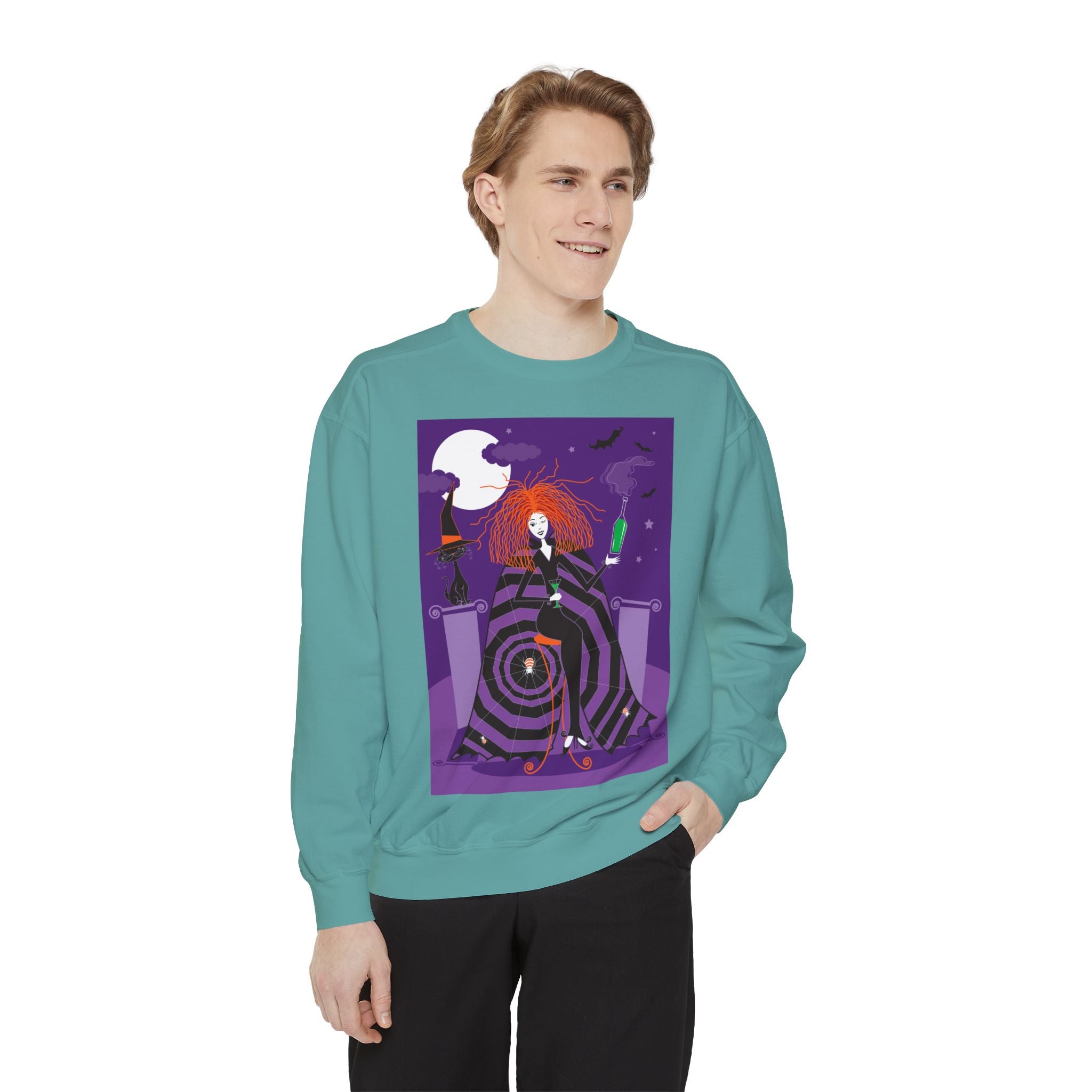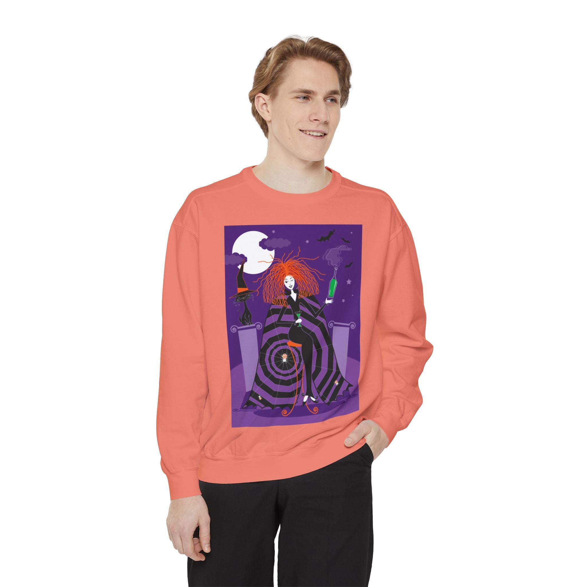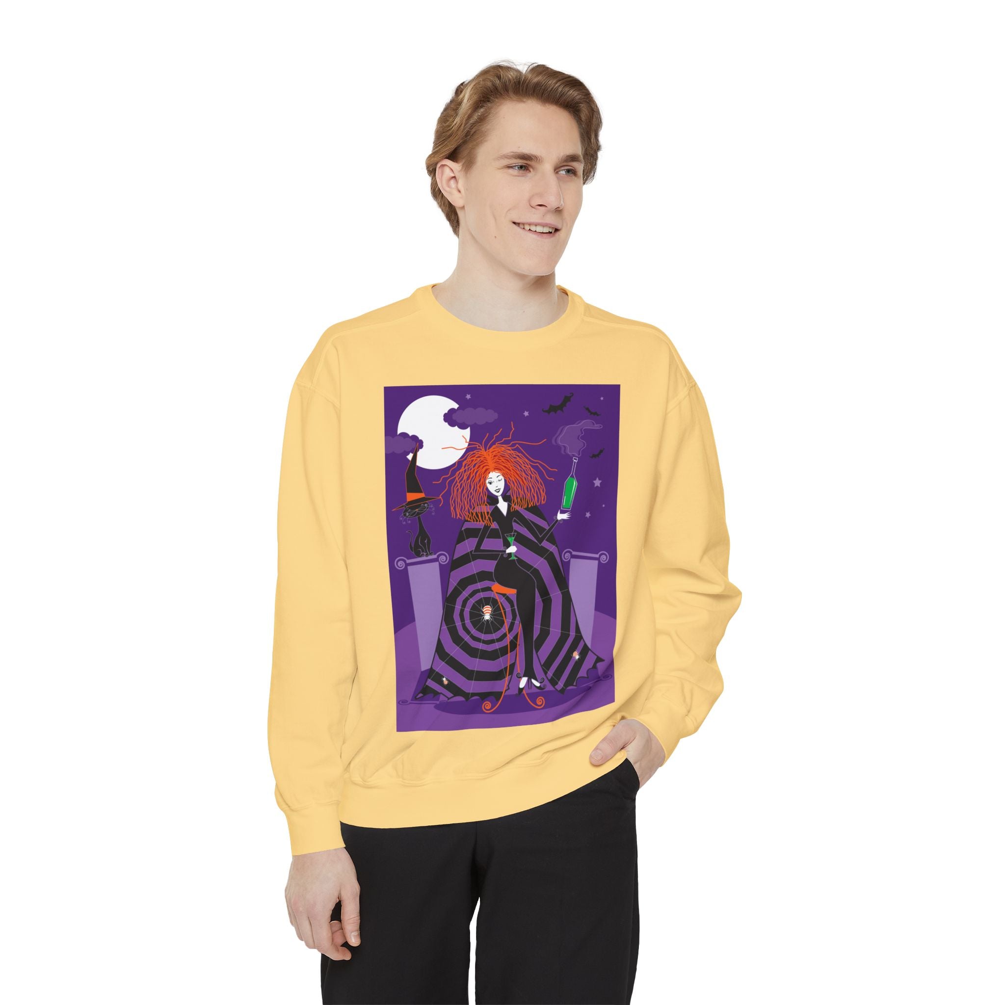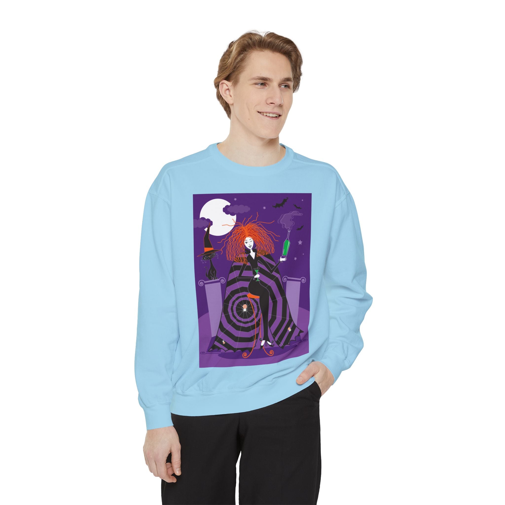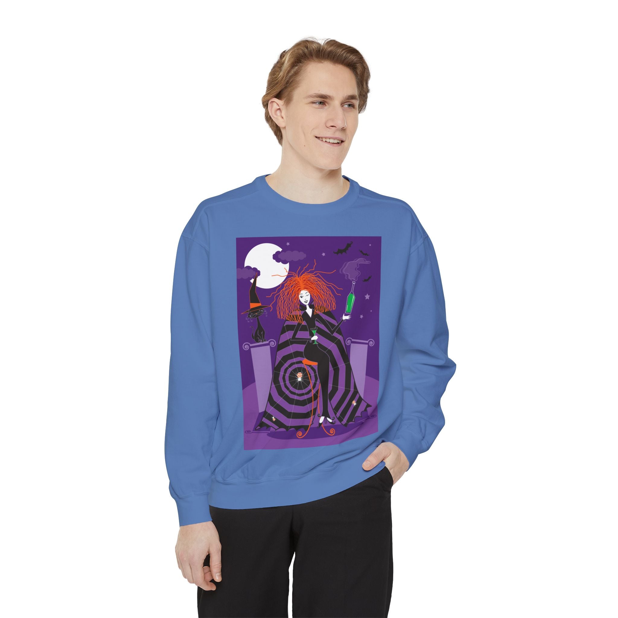 Embrace the Halloween season with luxurious comfort and style in this unisex, garment-dyed sweatshirt. Crafted from 80% ring-spun cotton and 20% polyester, this sweatshirt features a 3-end garment-dyed, ring-spun, color-blast fleece with a 100% cotton face, perfect for showcasing festive Halloween designs. With a relaxed fit, rolled-forward shoulder, and back neck patch, this sweatshirt combines cozy warmth with a touch of spooky flair, making it an ideal choice for all your Halloween activities.