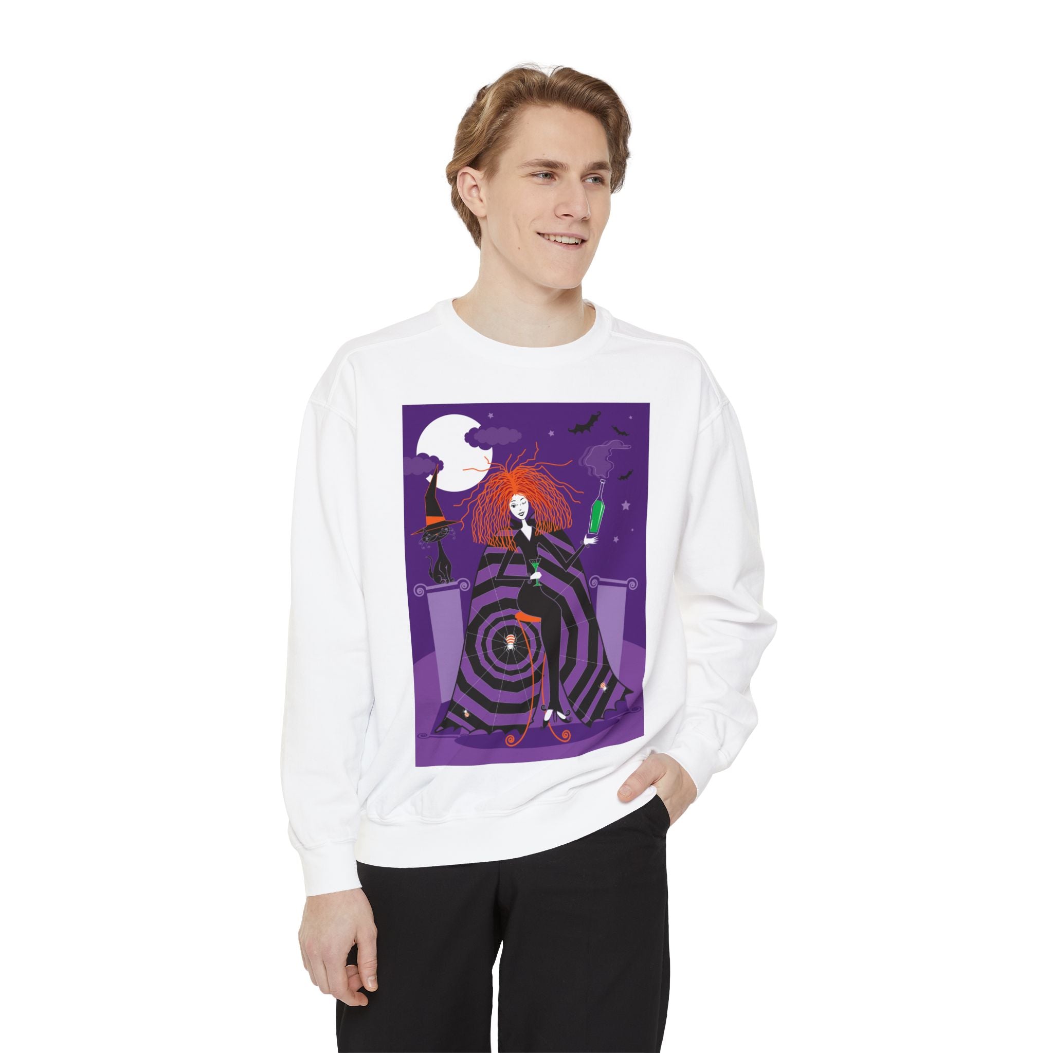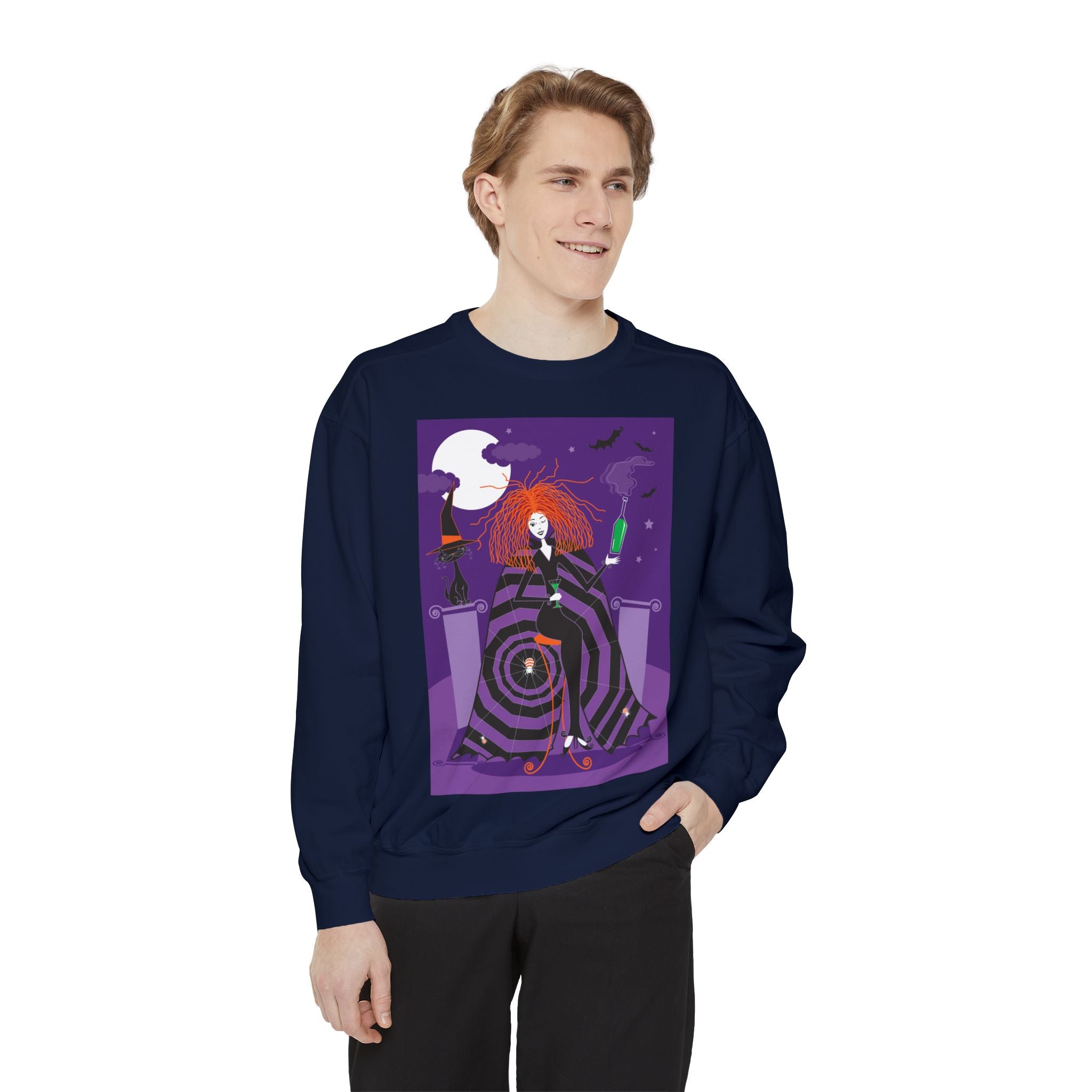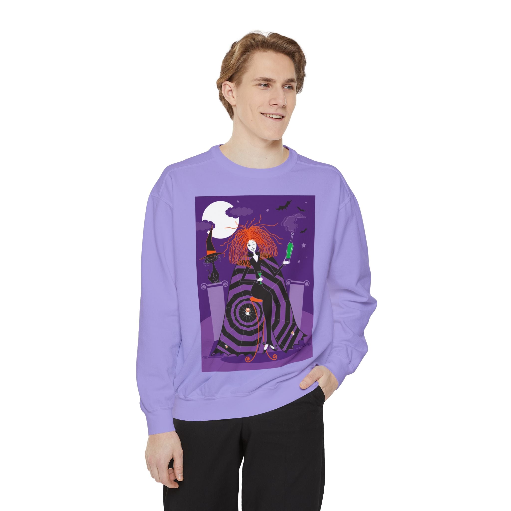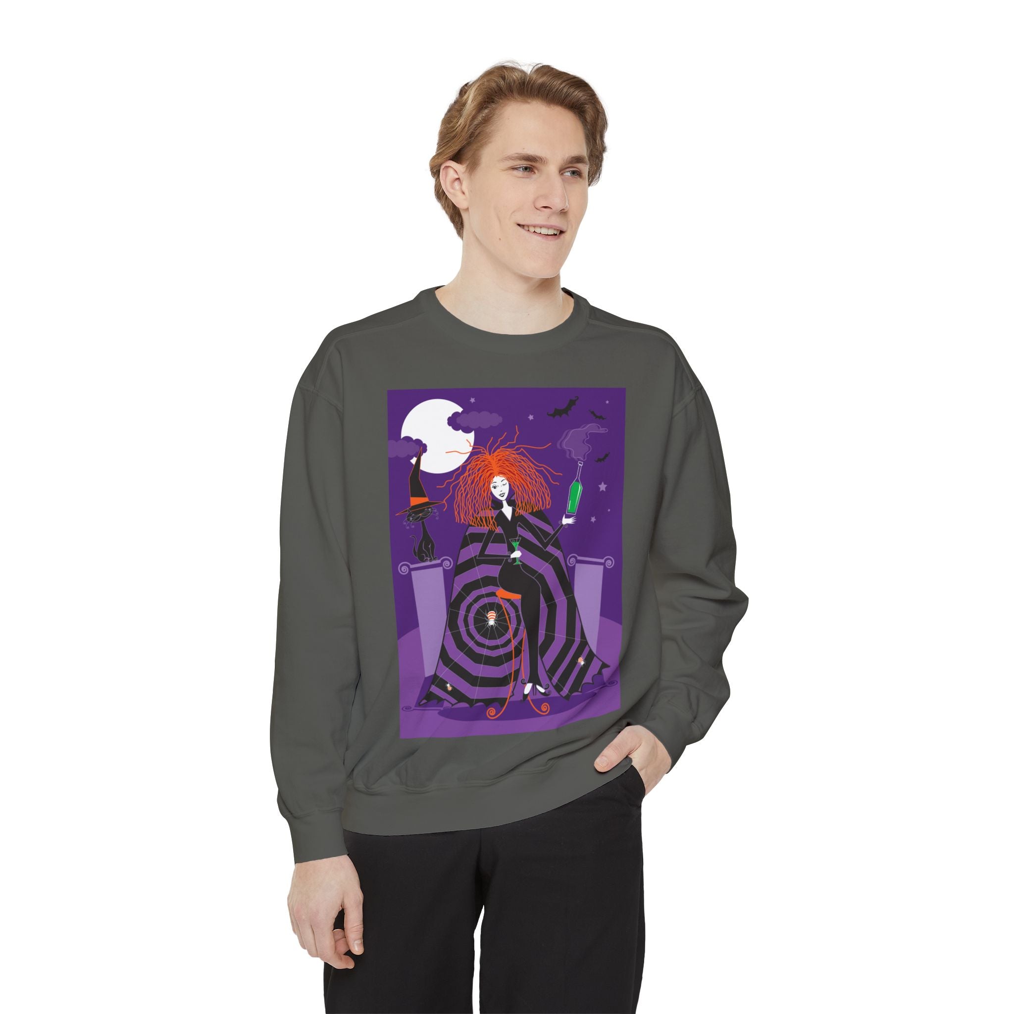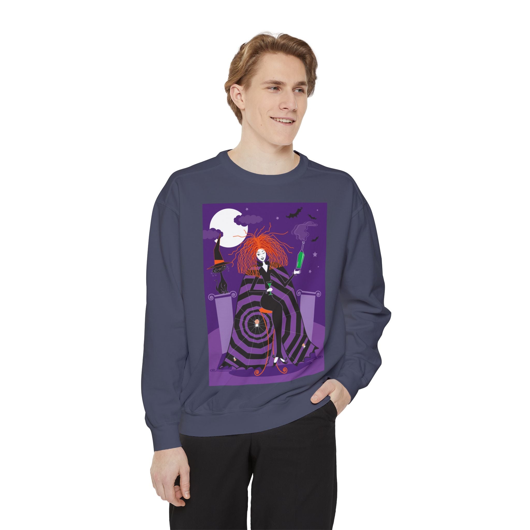 Embrace the Halloween season with luxurious comfort and style in this unisex, garment-dyed sweatshirt. Crafted from 80% ring-spun cotton and 20% polyester, this sweatshirt features a 3-end garment-dyed, ring-spun, color-blast fleece with a 100% cotton face, perfect for showcasing festive Halloween designs. With a relaxed fit, rolled-forward shoulder, and back neck patch, this sweatshirt combines cozy warmth with a touch of spooky flair, making it an ideal choice for all your Halloween activities.