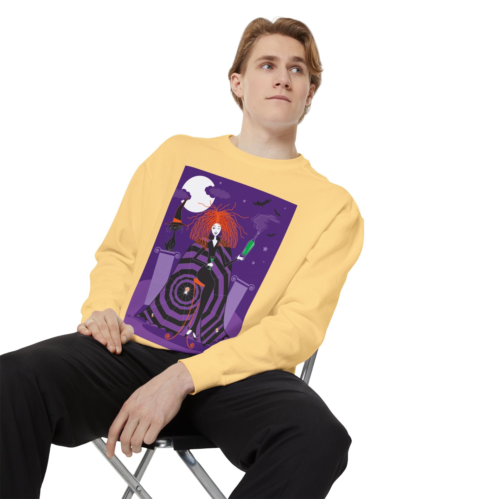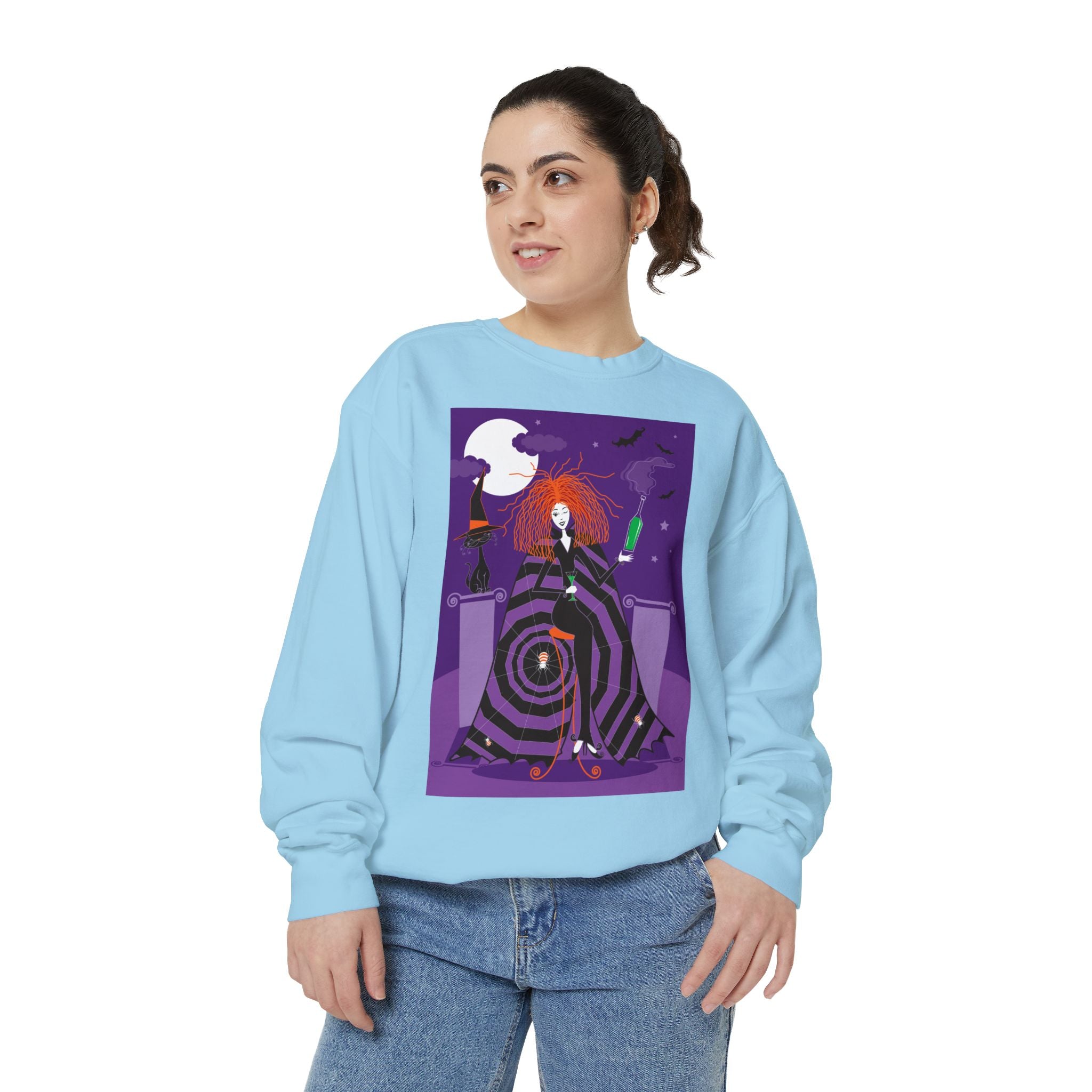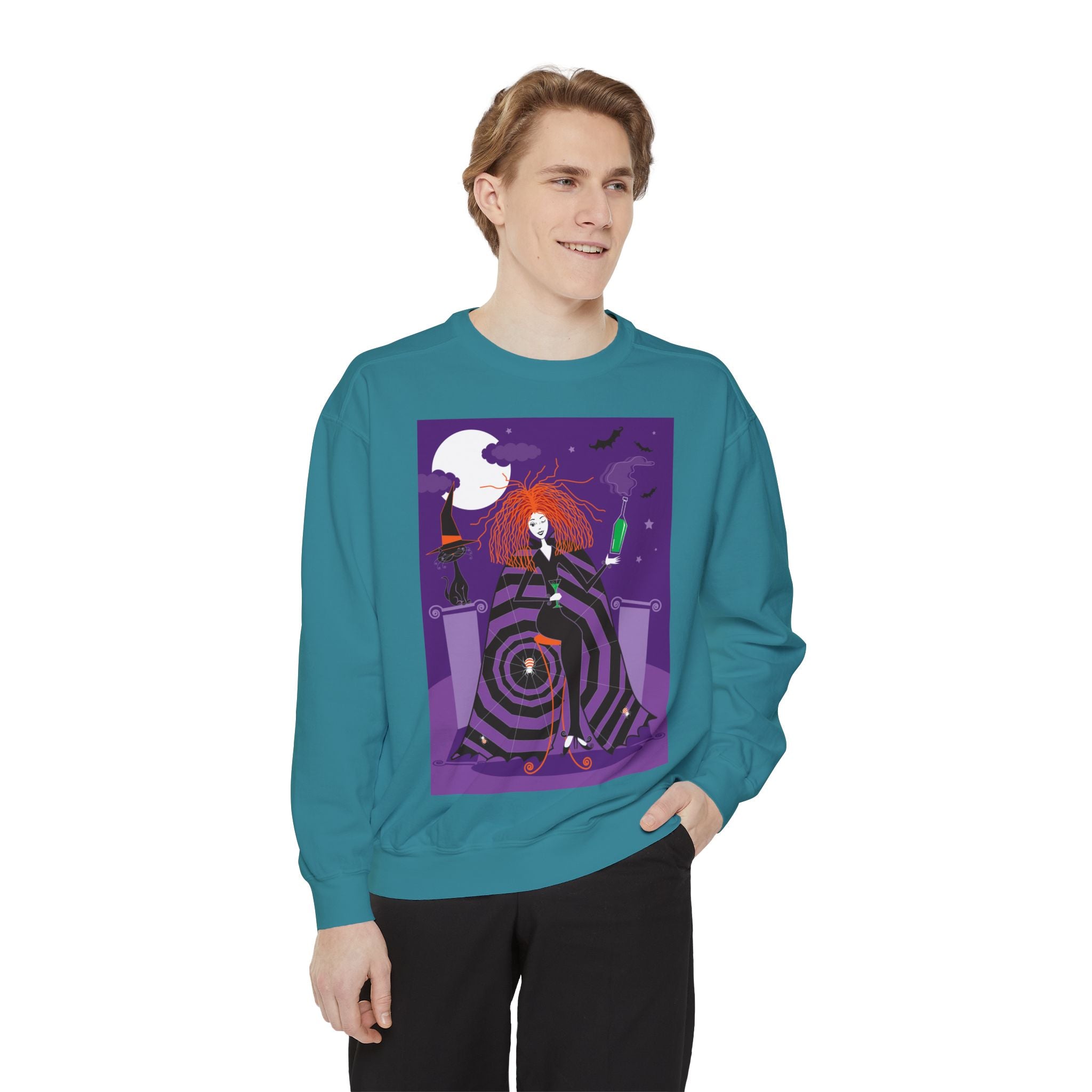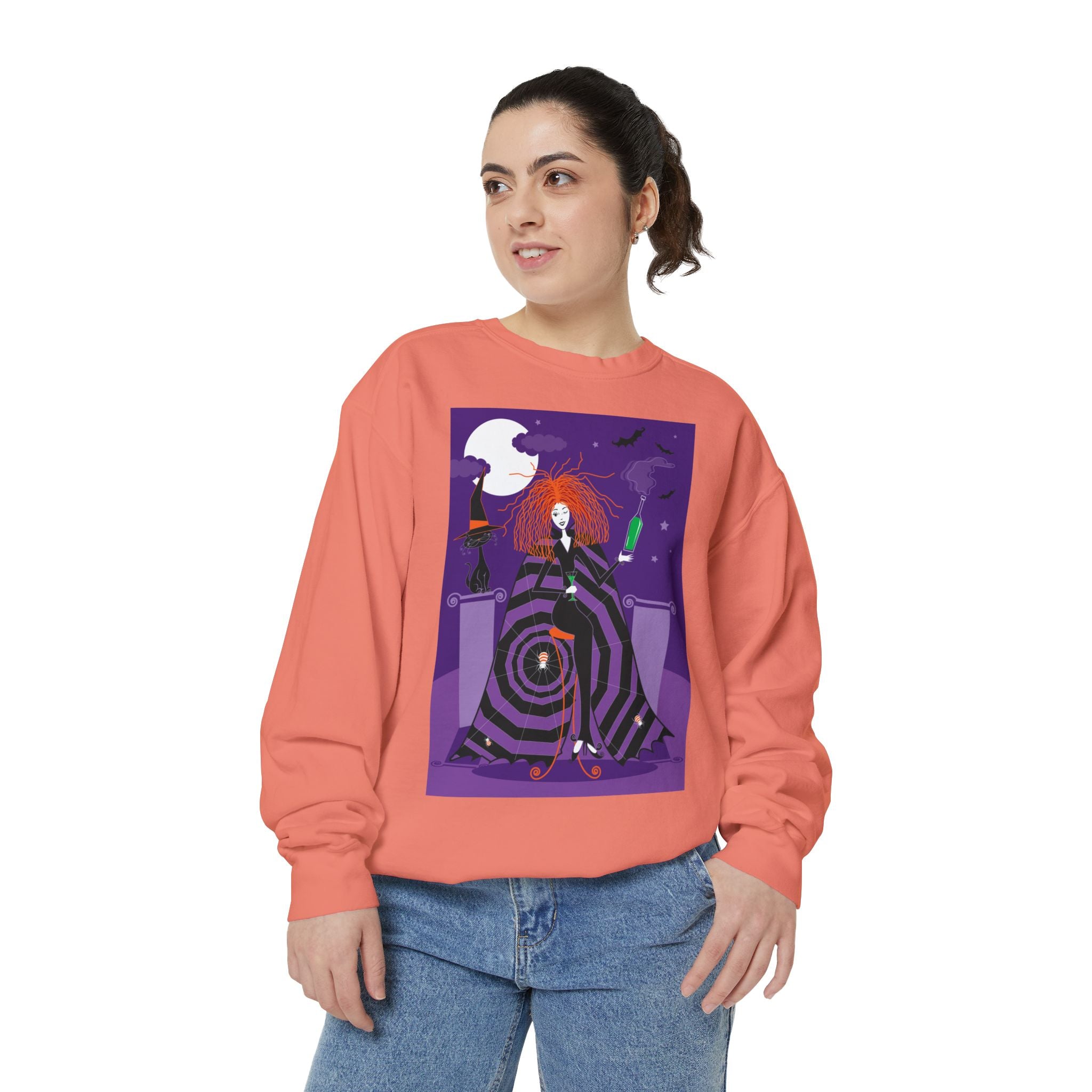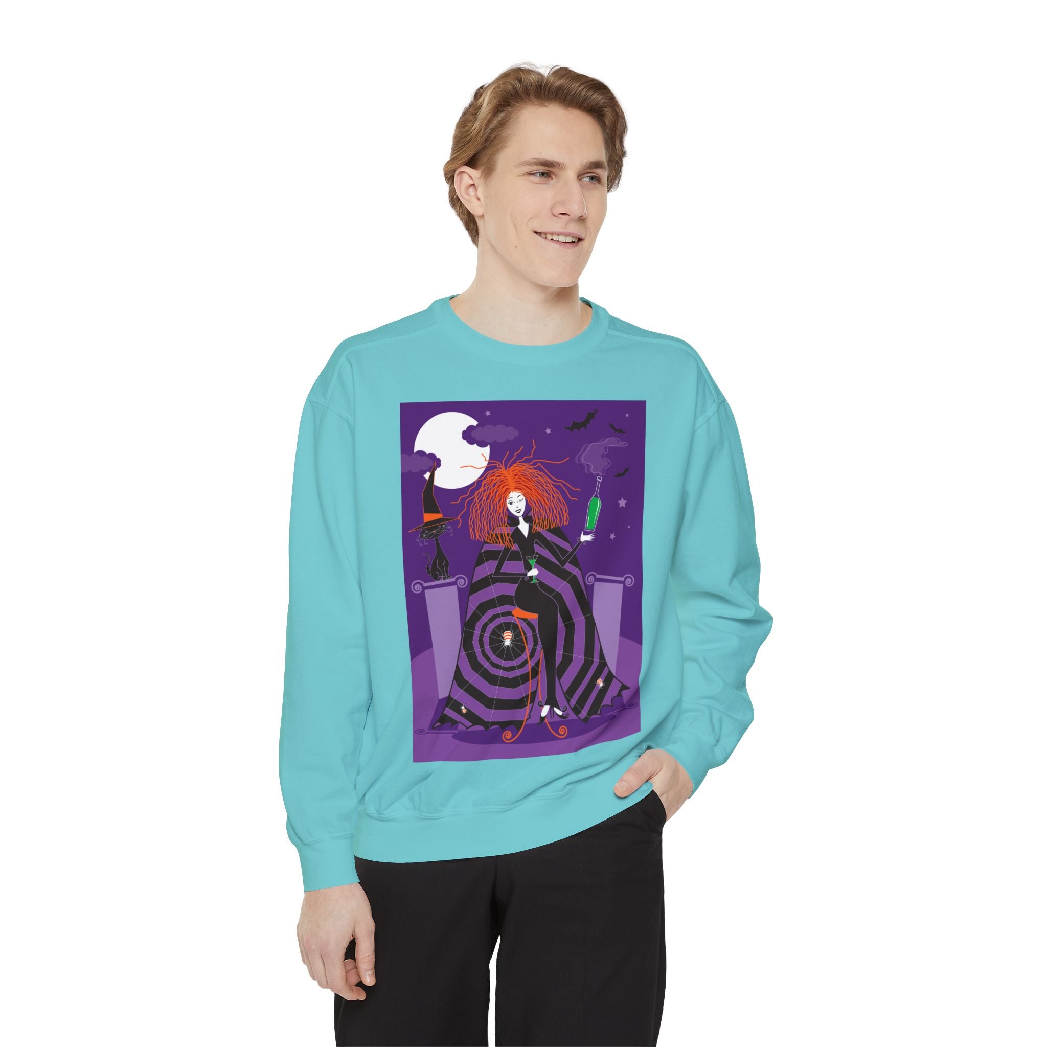Embrace the Halloween season with luxurious comfort and style in this unisex, garment-dyed sweatshirt. Crafted from 80% ring-spun cotton and 20% polyester, this sweatshirt features a 3-end garment-dyed, ring-spun, color-blast fleece with a 100% cotton face, perfect for showcasing festive Halloween designs. With a relaxed fit, rolled-forward shoulder, and back neck patch, this sweatshirt combines cozy warmth with a touch of spooky flair, making it an ideal choice for all your Halloween activities.
