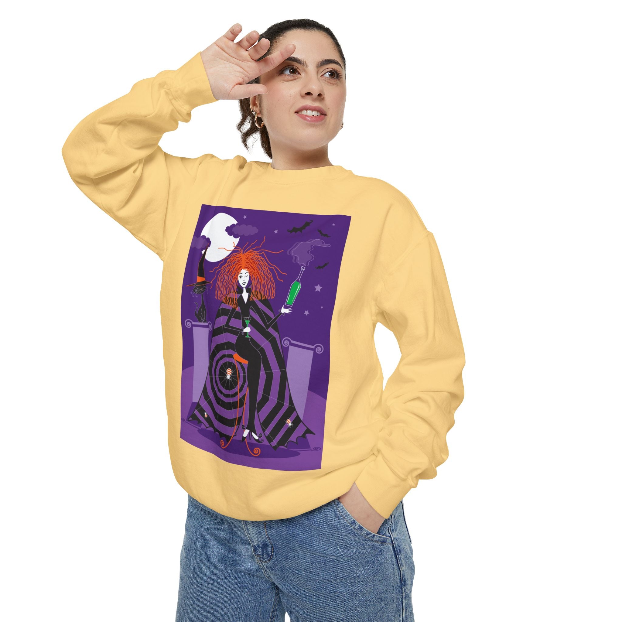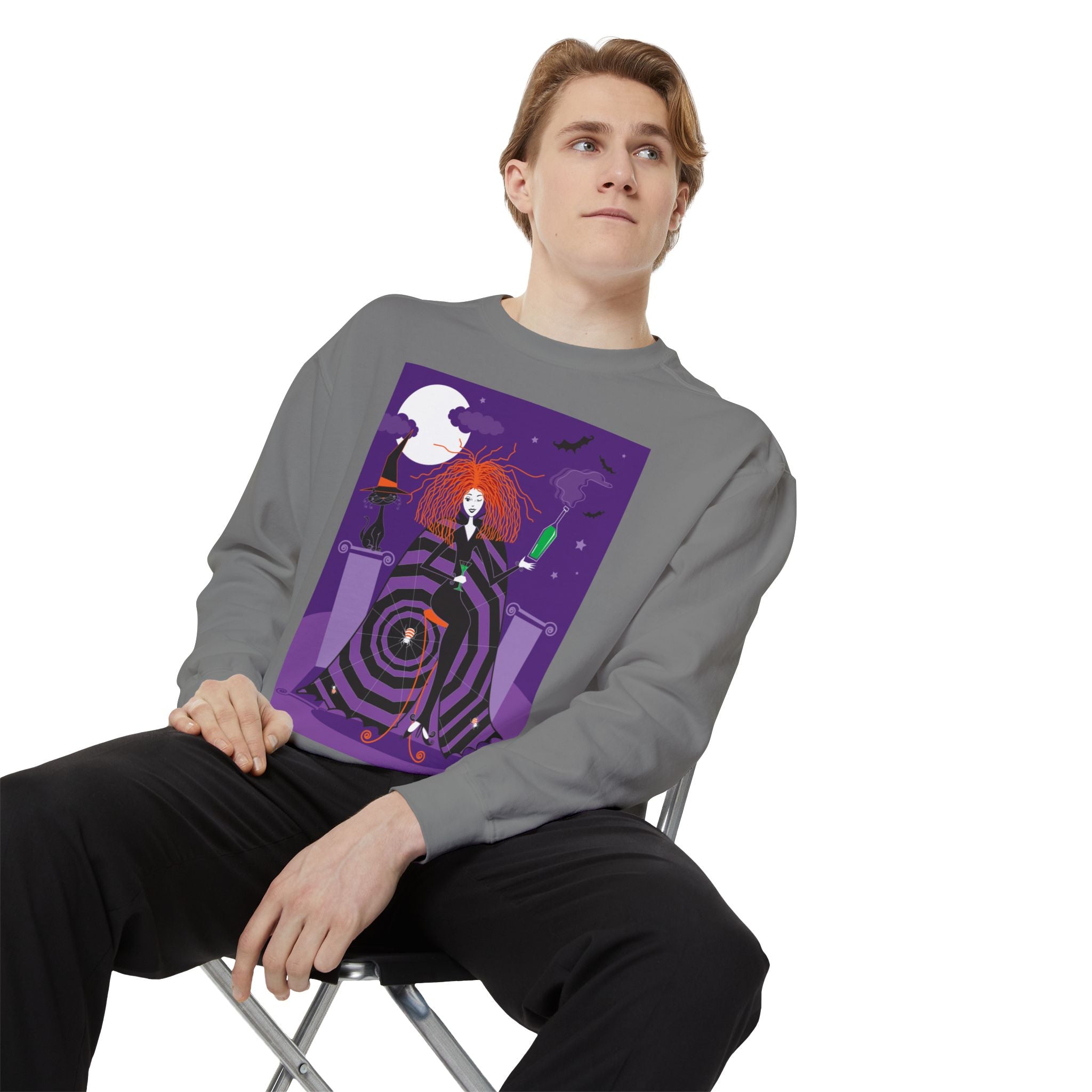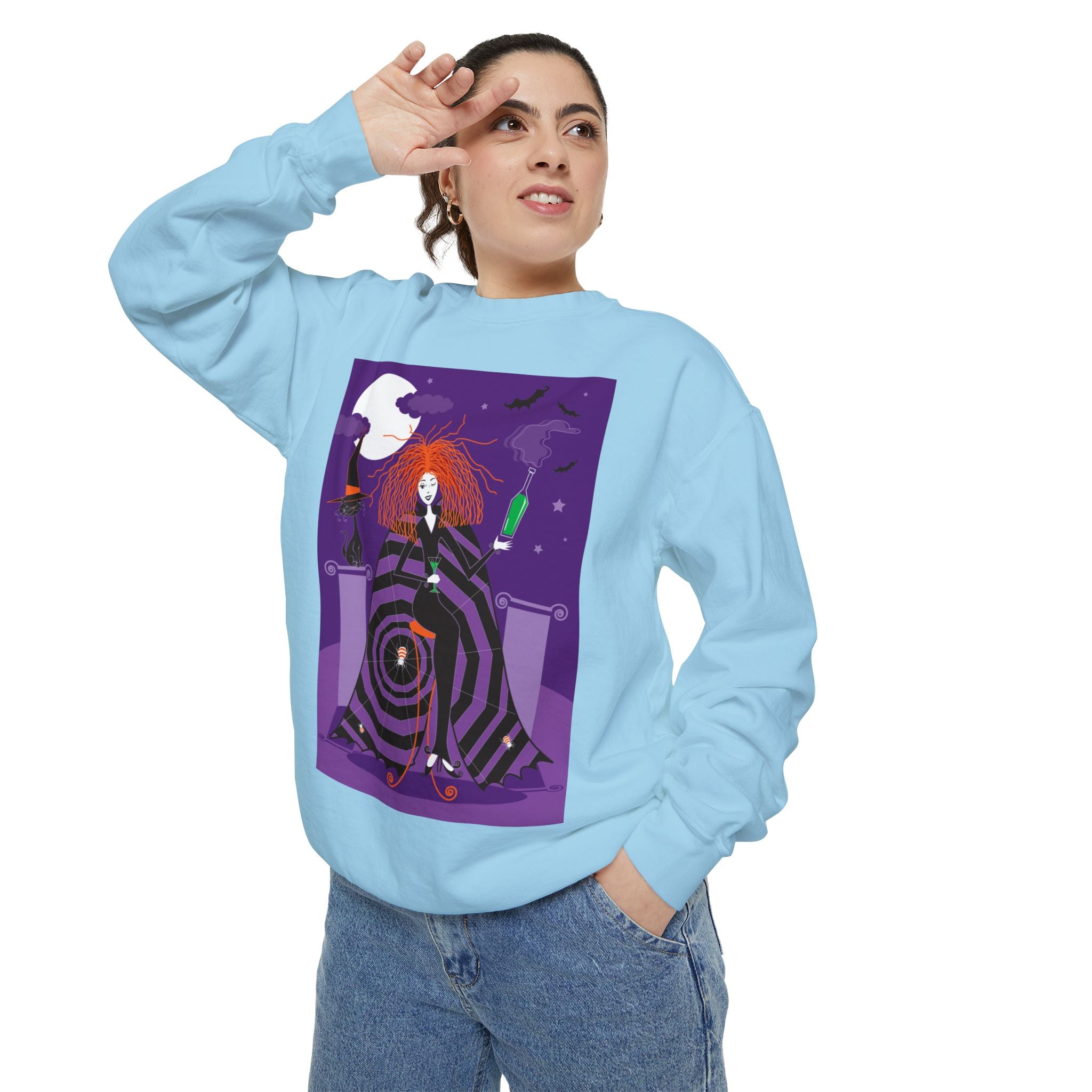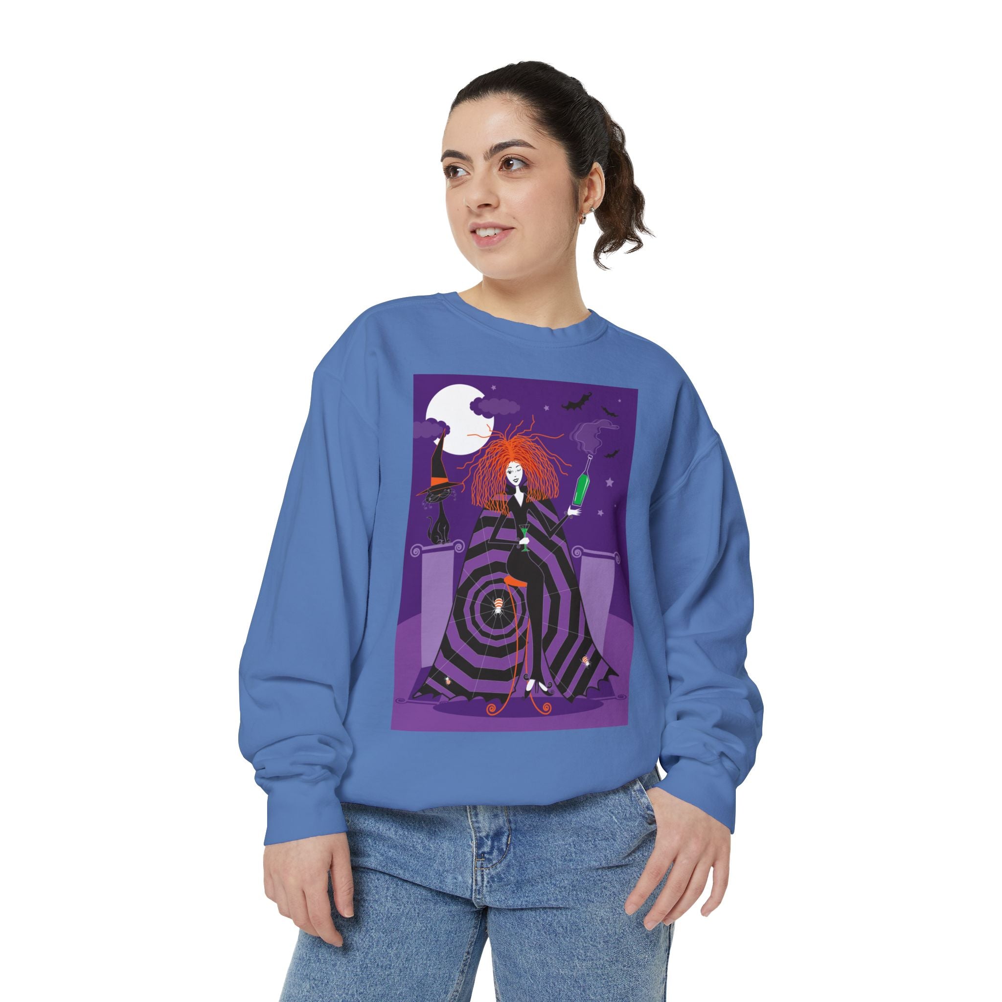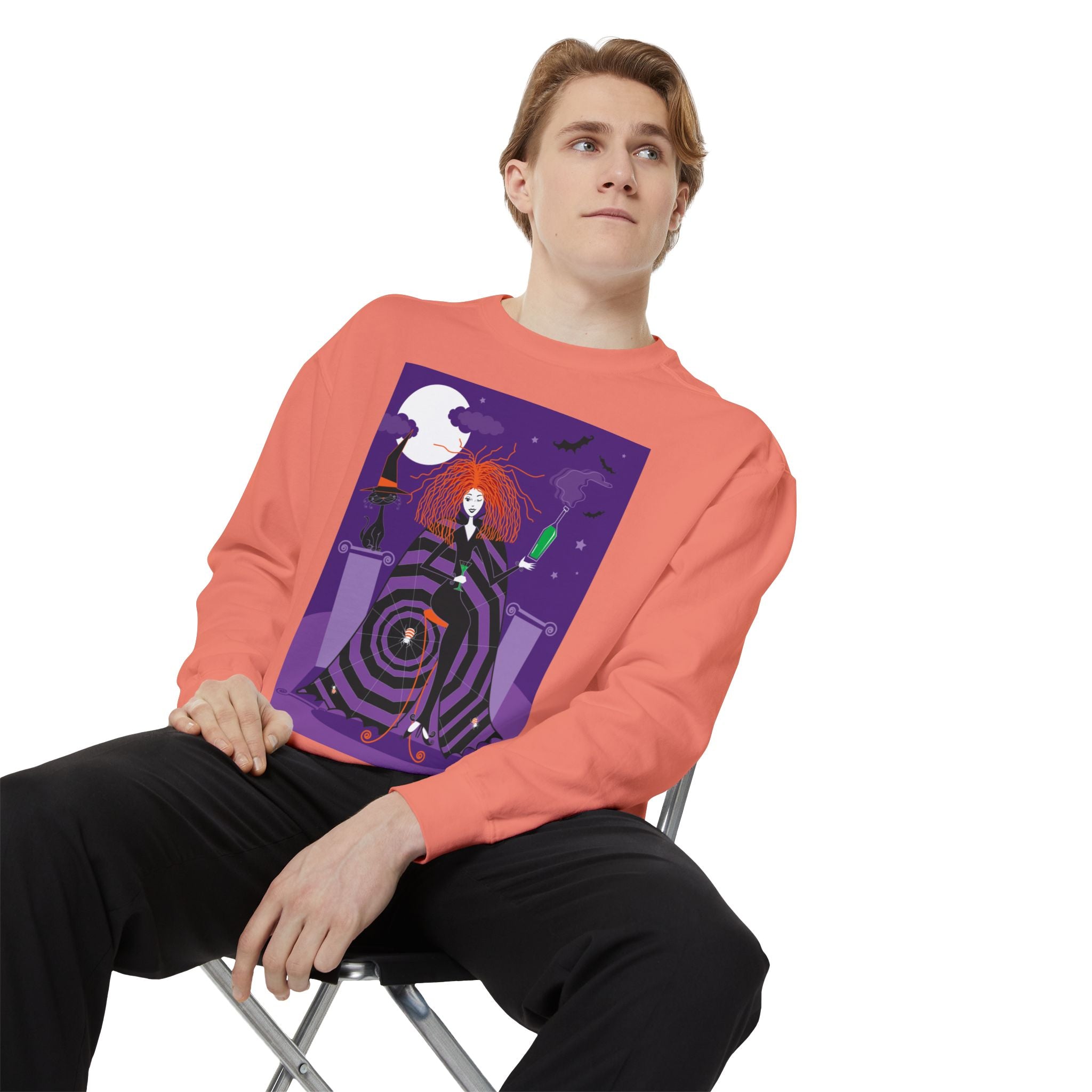 Embrace the Halloween season with luxurious comfort and style in this unisex, garment-dyed sweatshirt. Crafted from 80% ring-spun cotton and 20% polyester, this sweatshirt features a 3-end garment-dyed, ring-spun, color-blast fleece with a 100% cotton face, perfect for showcasing festive Halloween designs. With a relaxed fit, rolled-forward shoulder, and back neck patch, this sweatshirt combines cozy warmth with a touch of spooky flair, making it an ideal choice for all your Halloween activities.