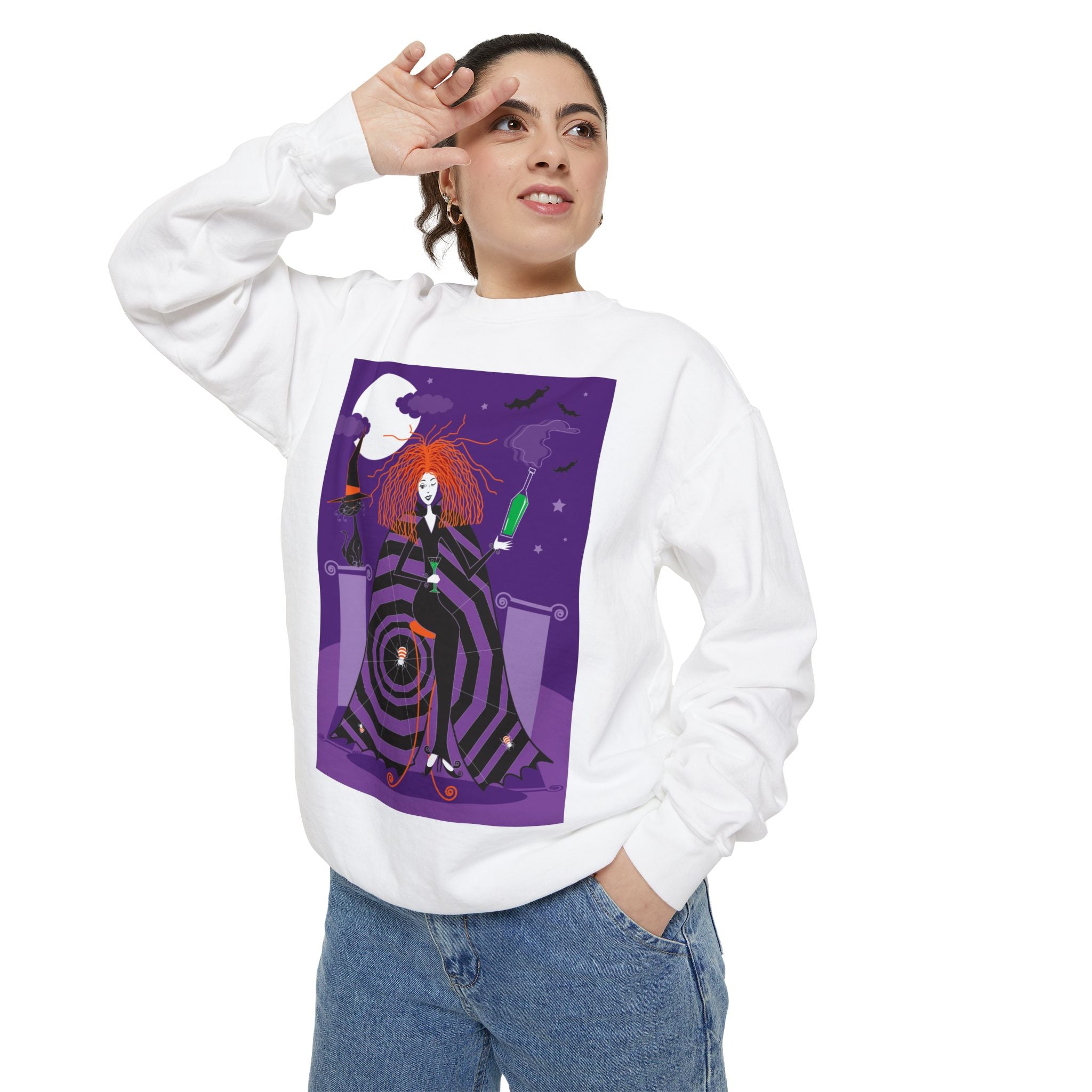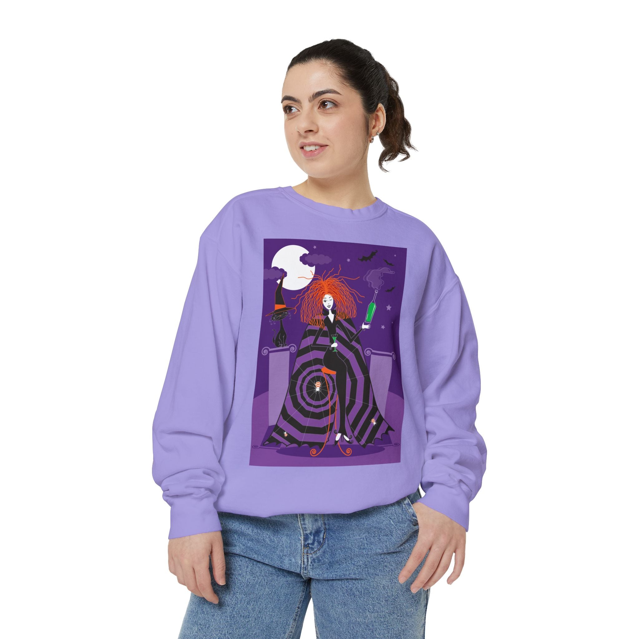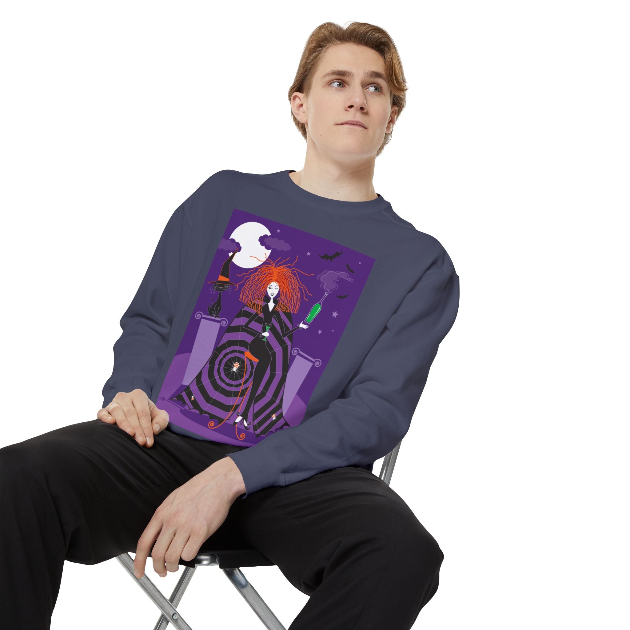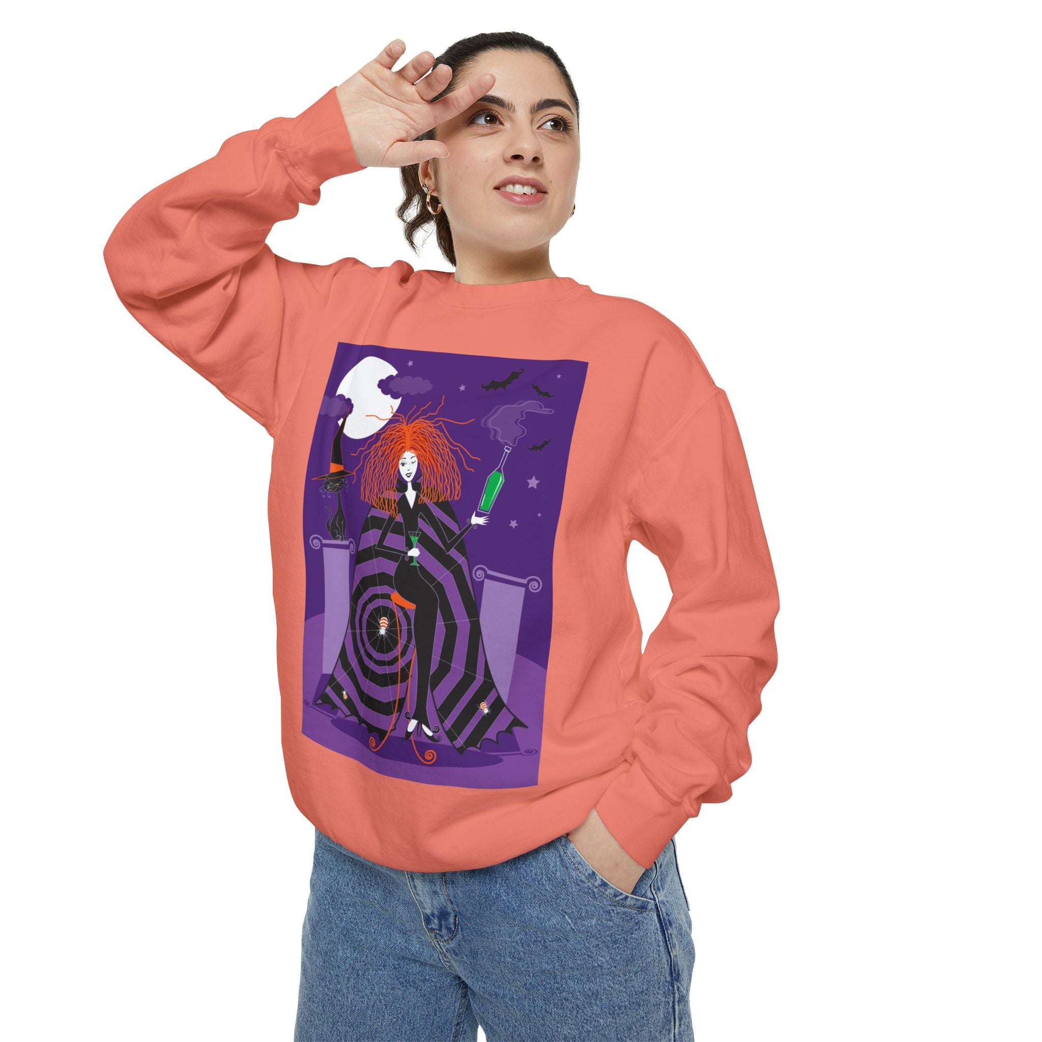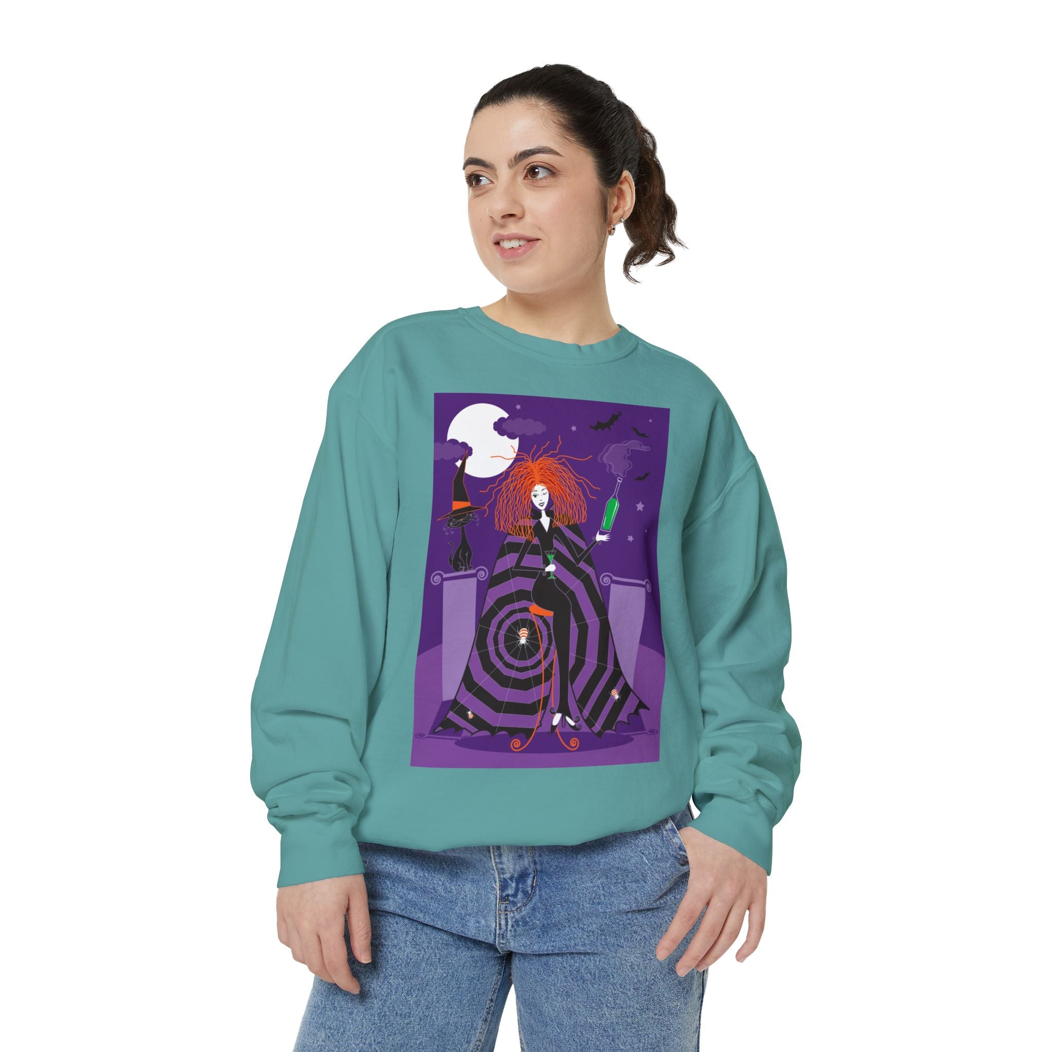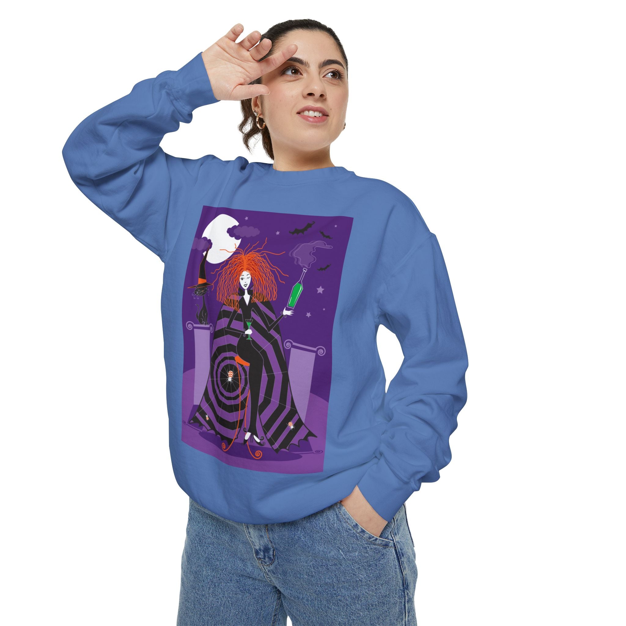 Embrace the Halloween season with luxurious comfort and style in this unisex, garment-dyed sweatshirt. Crafted from 80% ring-spun cotton and 20% polyester, this sweatshirt features a 3-end garment-dyed, ring-spun, color-blast fleece with a 100% cotton face, perfect for showcasing festive Halloween designs. With a relaxed fit, rolled-forward shoulder, and back neck patch, this sweatshirt combines cozy warmth with a touch of spooky flair, making it an ideal choice for all your Halloween activities.