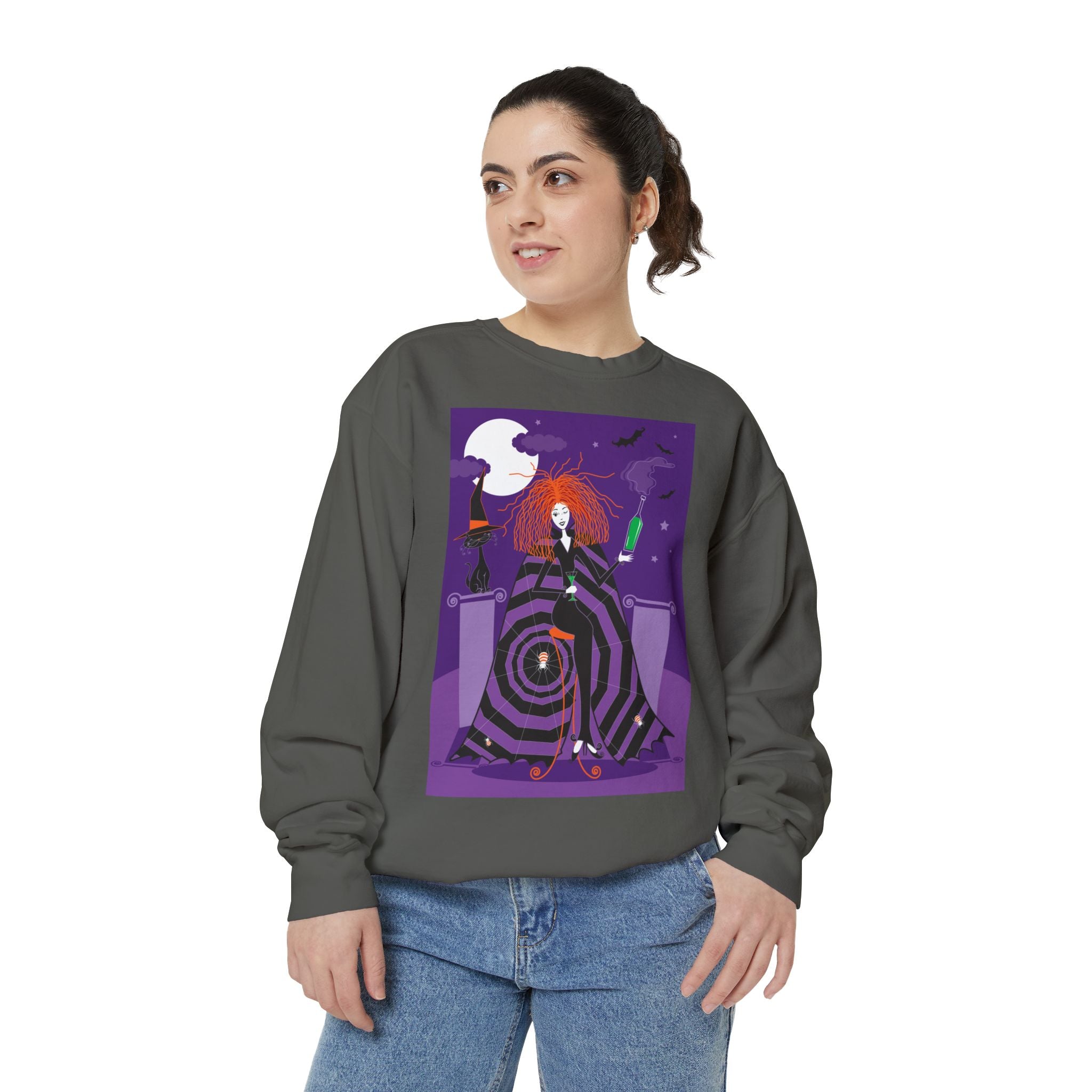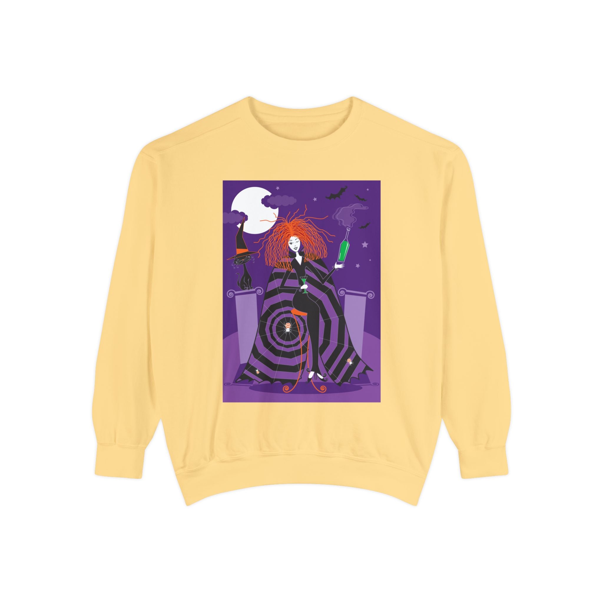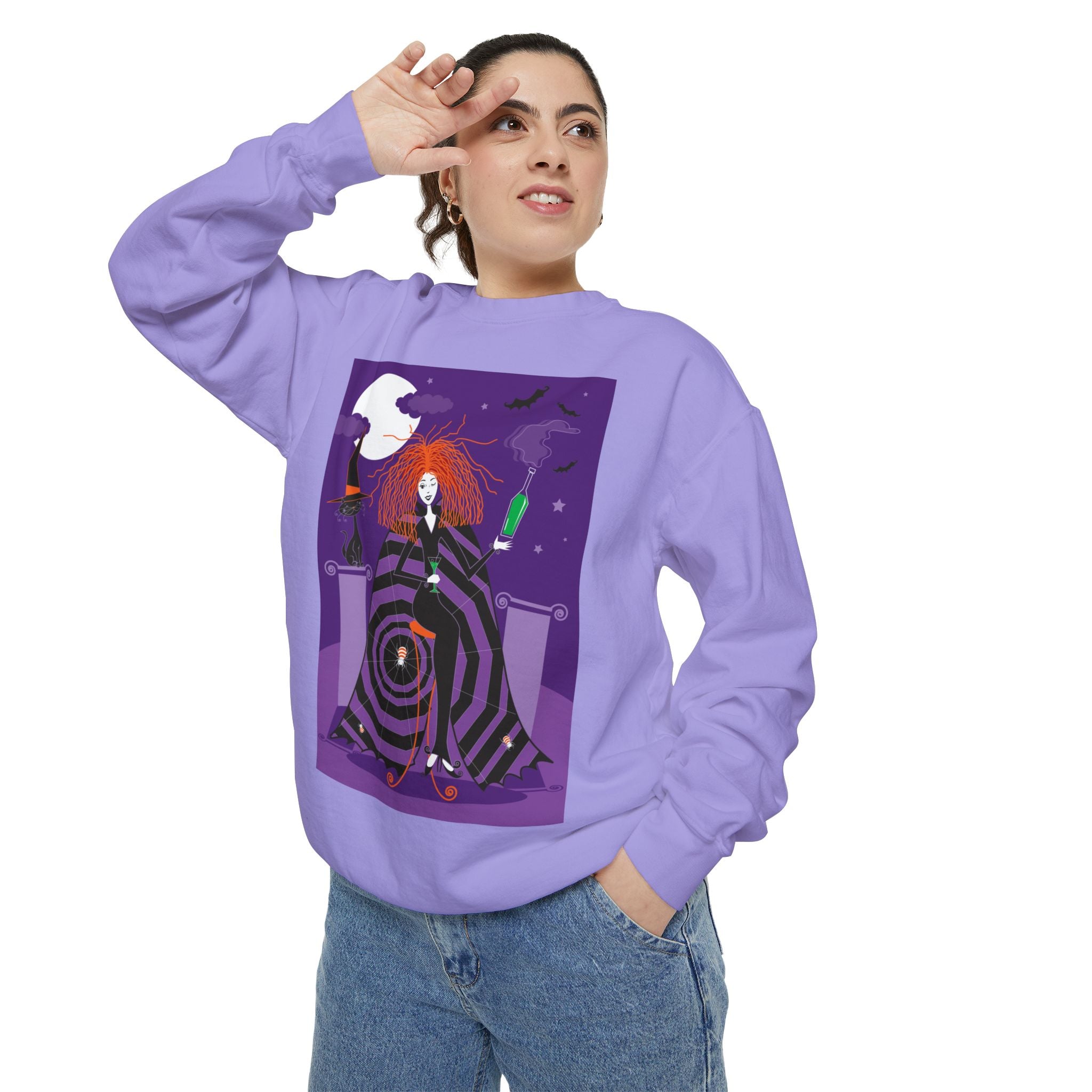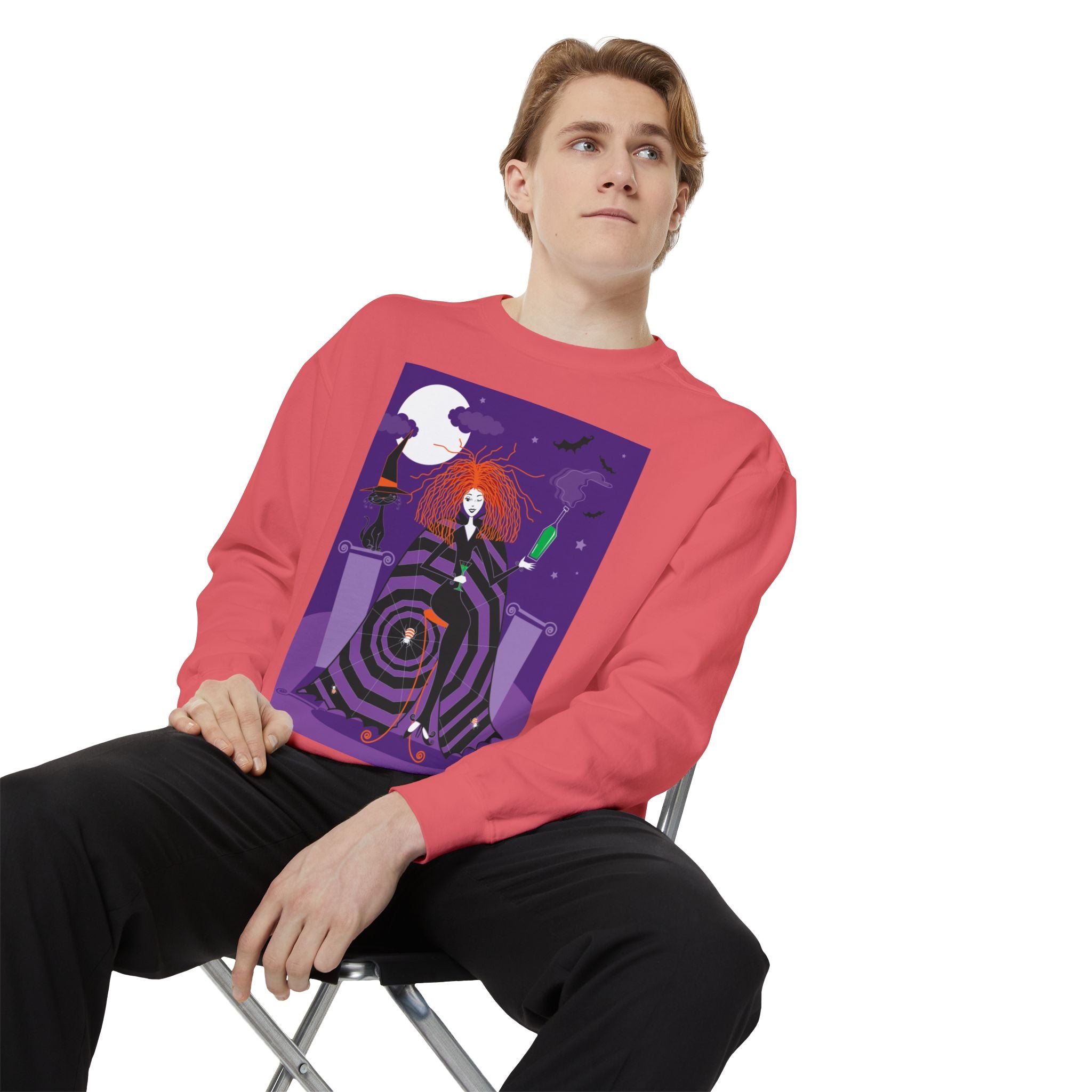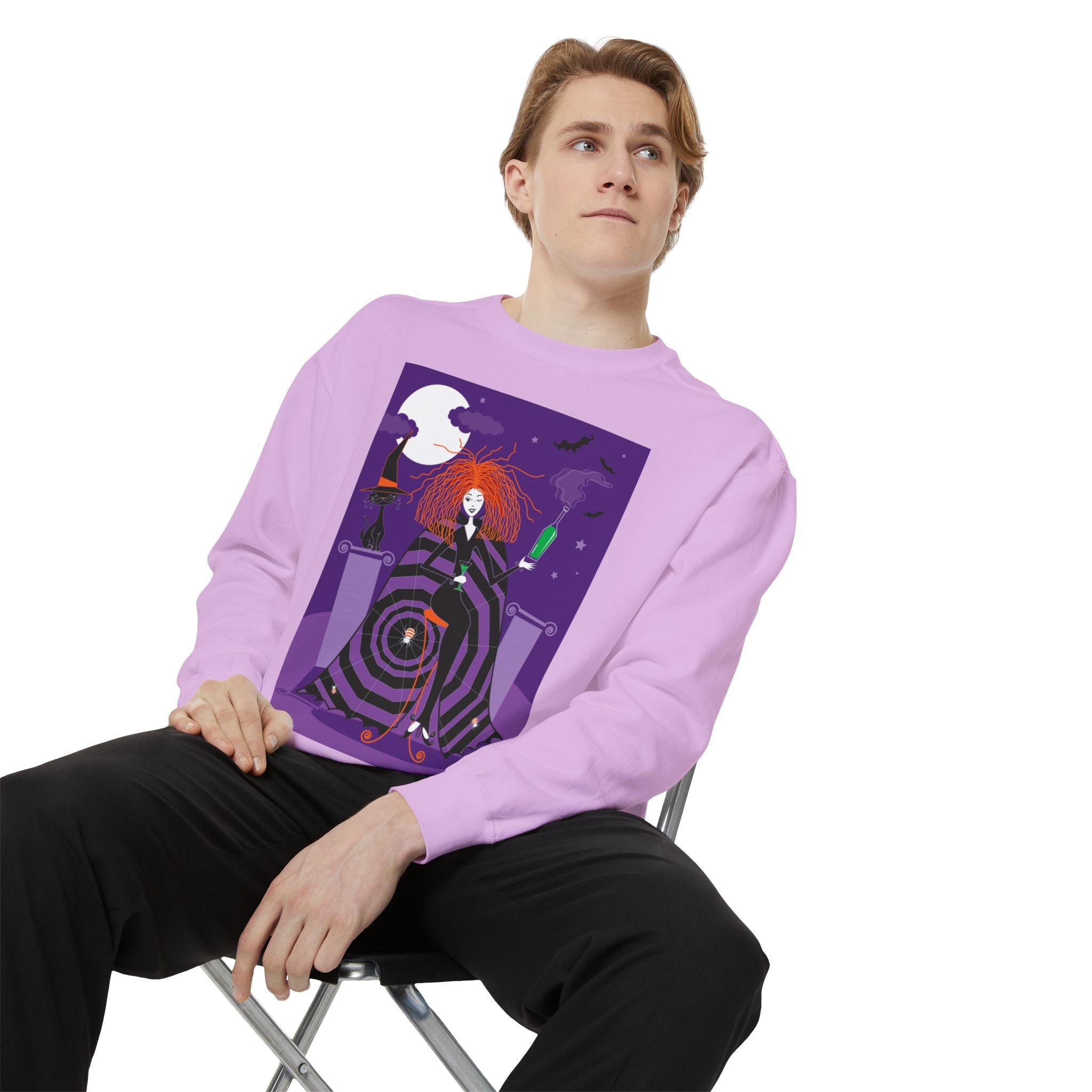 Embrace the Halloween season with luxurious comfort and style in this unisex, garment-dyed sweatshirt. Crafted from 80% ring-spun cotton and 20% polyester, this sweatshirt features a 3-end garment-dyed, ring-spun, color-blast fleece with a 100% cotton face, perfect for showcasing festive Halloween designs. With a relaxed fit, rolled-forward shoulder, and back neck patch, this sweatshirt combines cozy warmth with a touch of spooky flair, making it an ideal choice for all your Halloween activities.