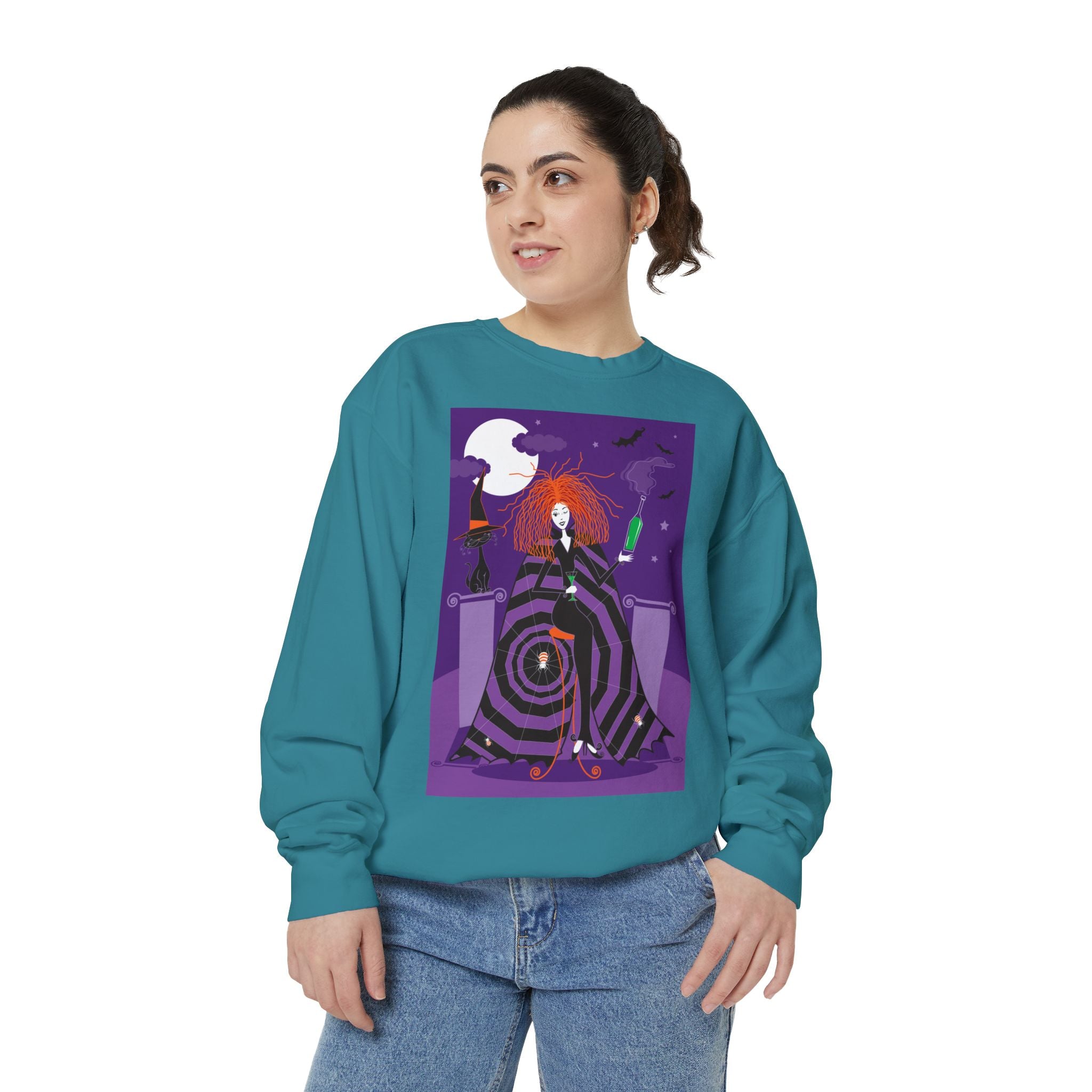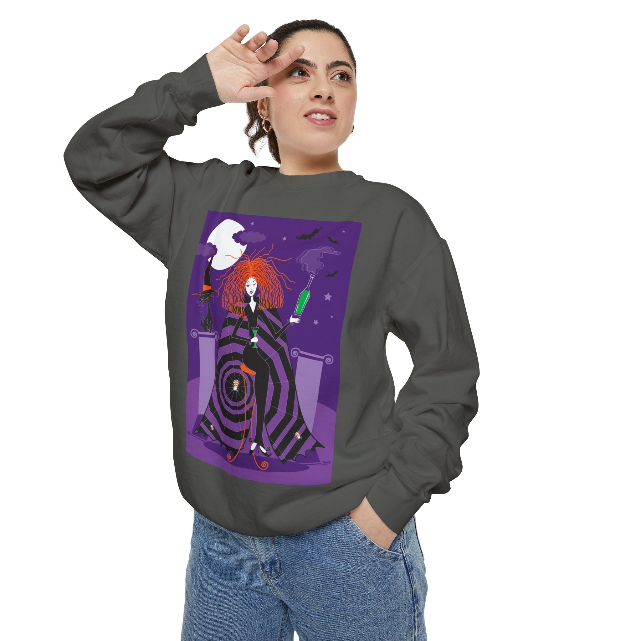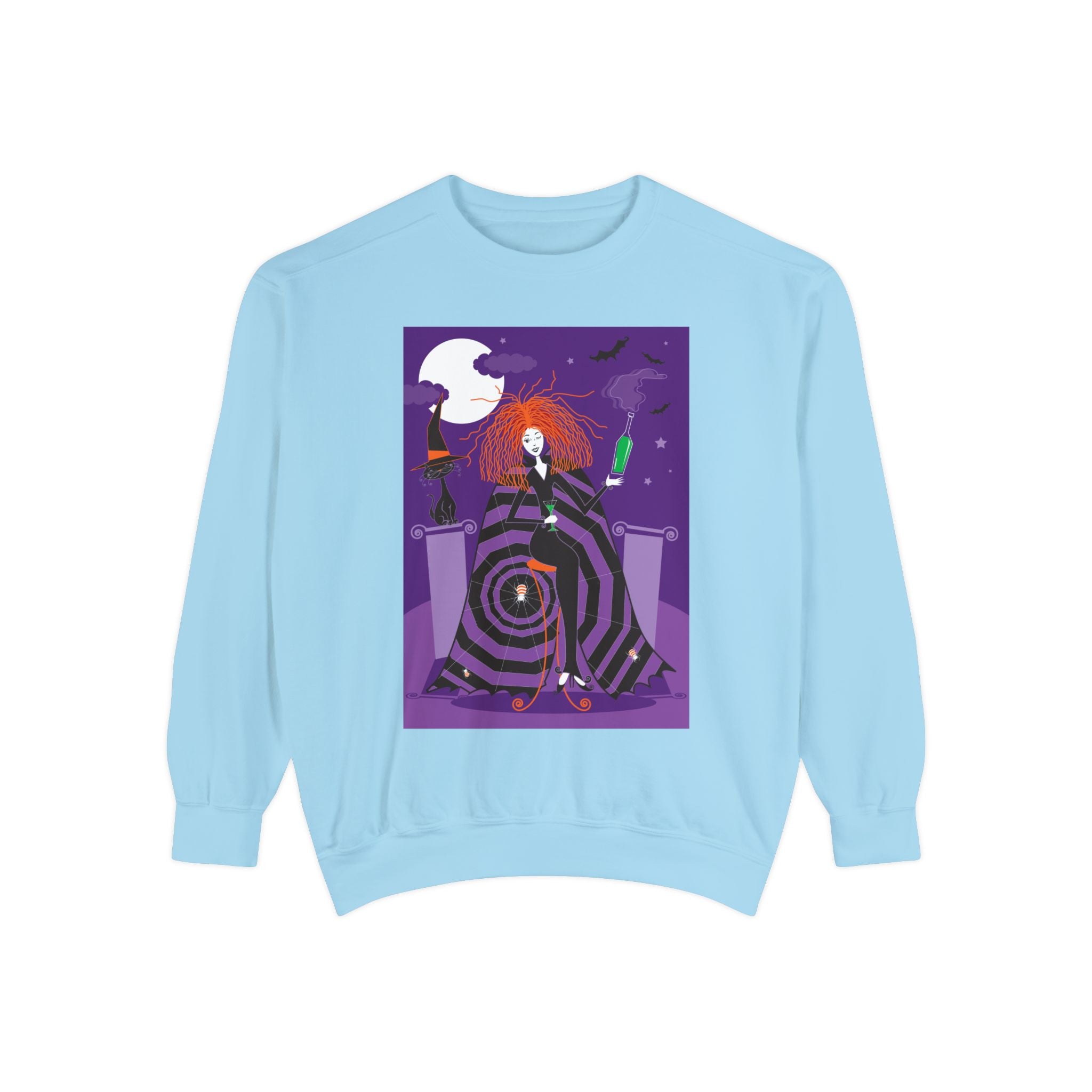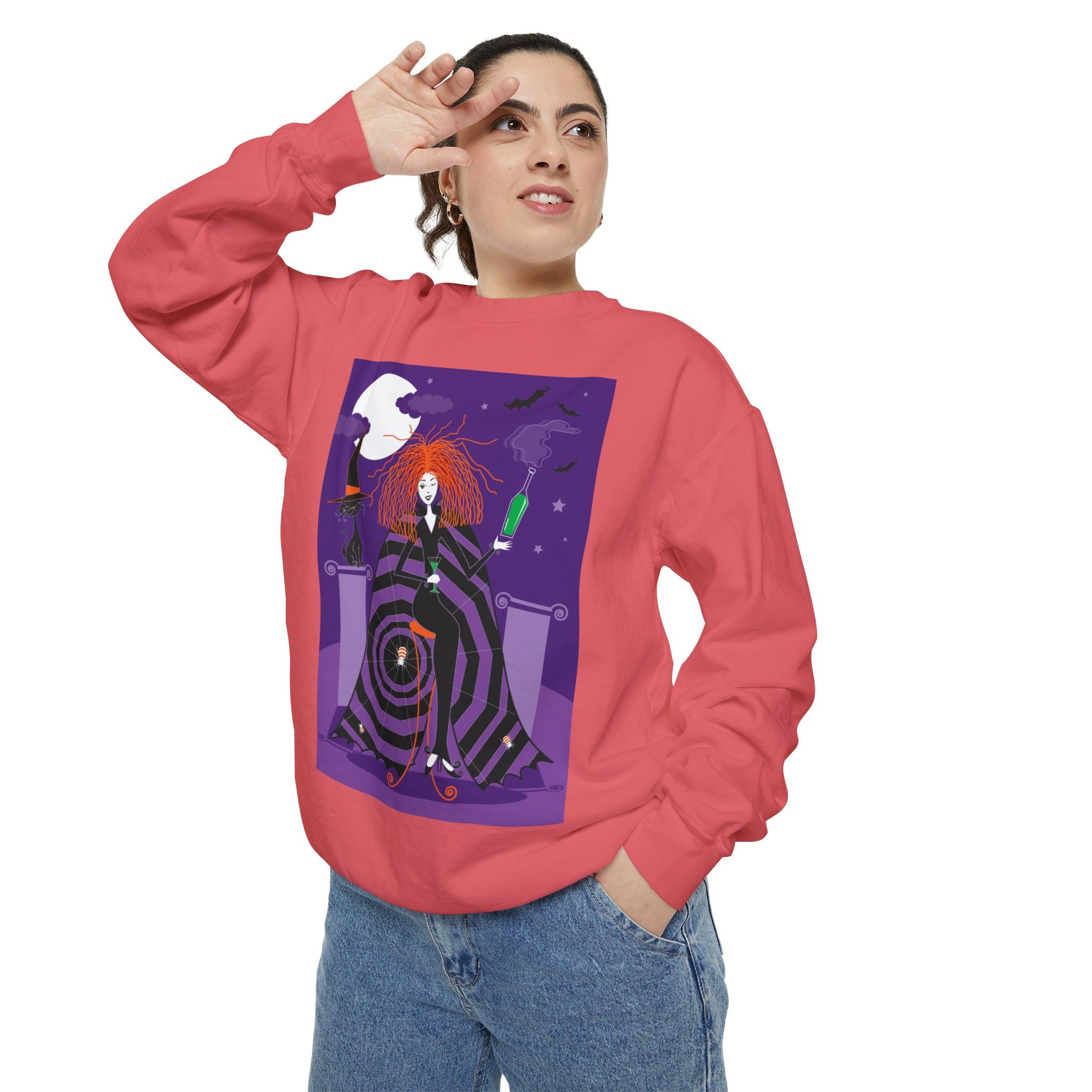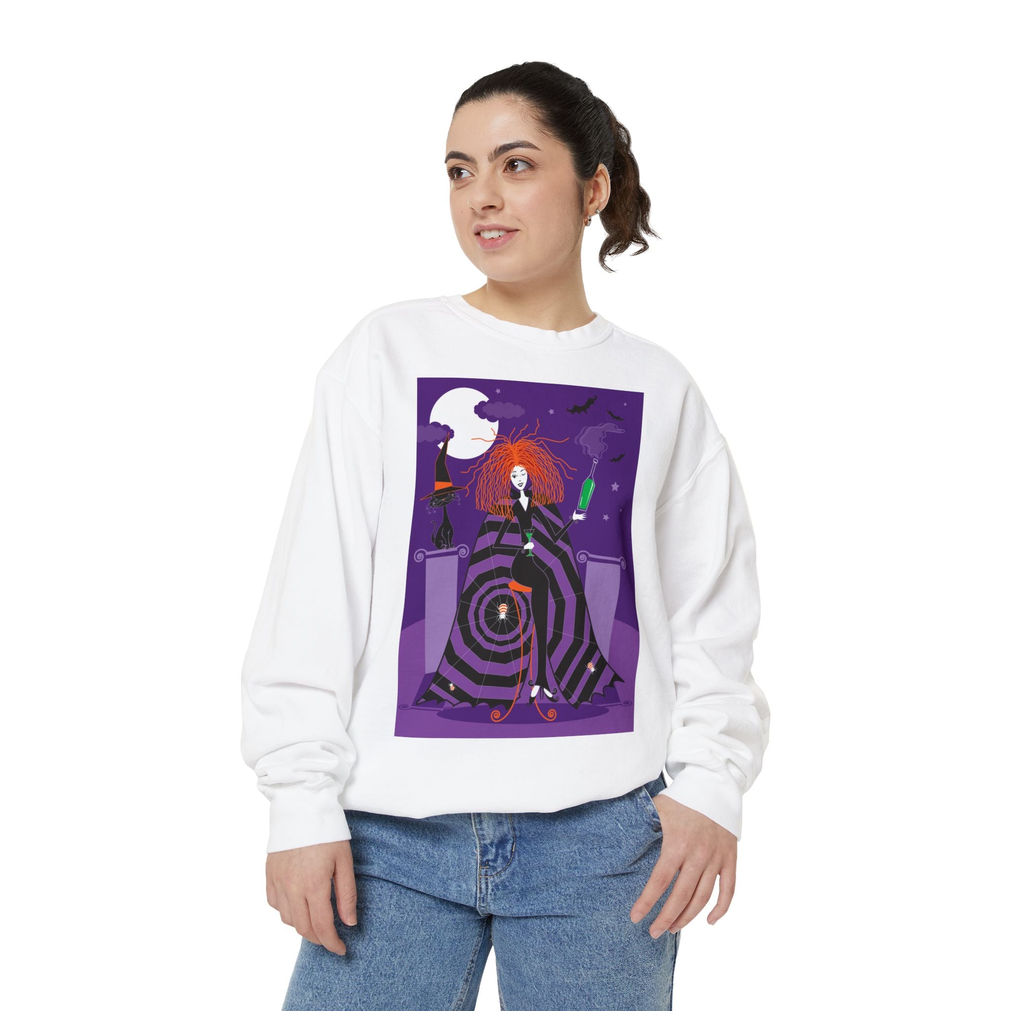 Embrace the Halloween season with luxurious comfort and style in this unisex, garment-dyed sweatshirt. Crafted from 80% ring-spun cotton and 20% polyester, this sweatshirt features a 3-end garment-dyed, ring-spun, color-blast fleece with a 100% cotton face, perfect for showcasing festive Halloween designs. With a relaxed fit, rolled-forward shoulder, and back neck patch, this sweatshirt combines cozy warmth with a touch of spooky flair, making it an ideal choice for all your Halloween activities.