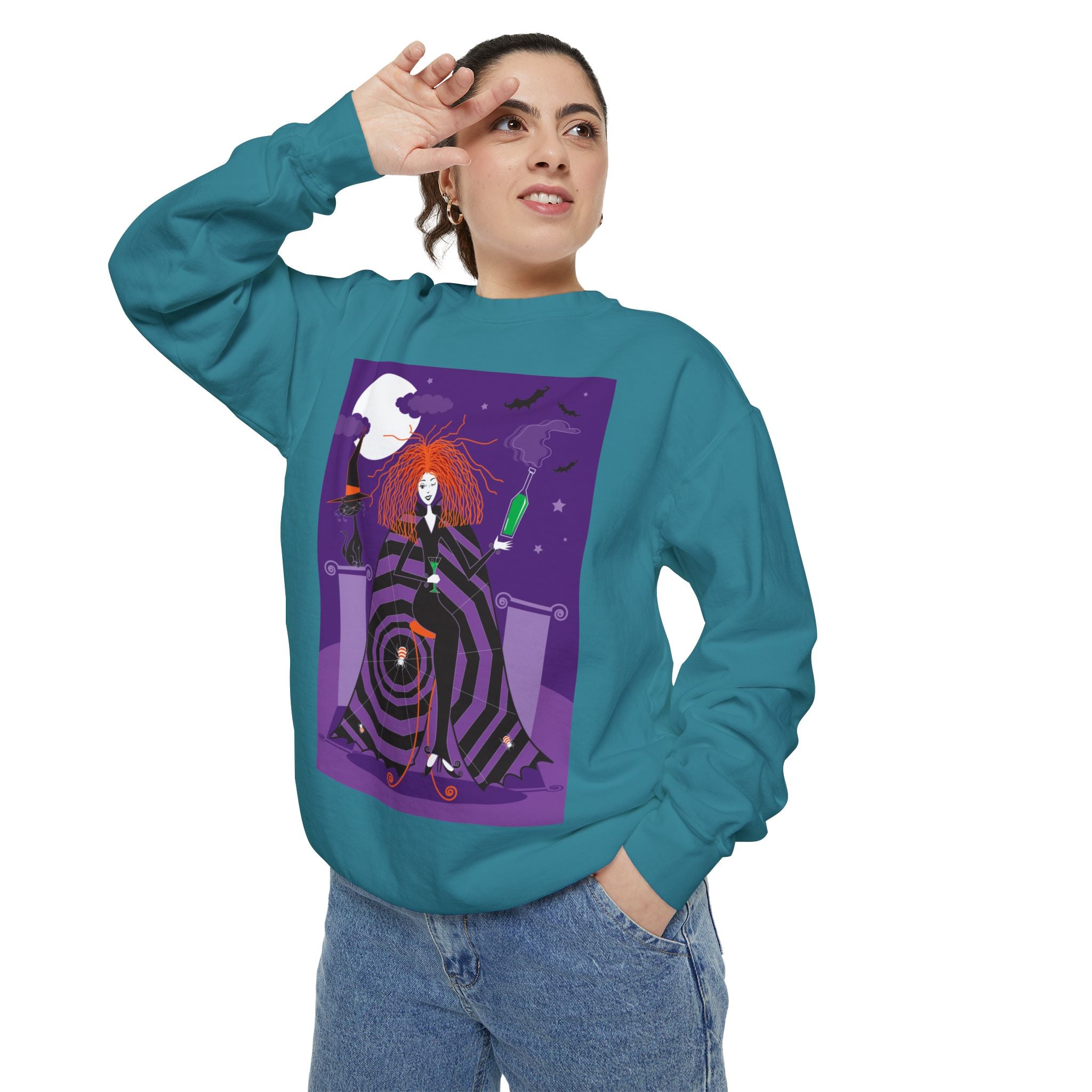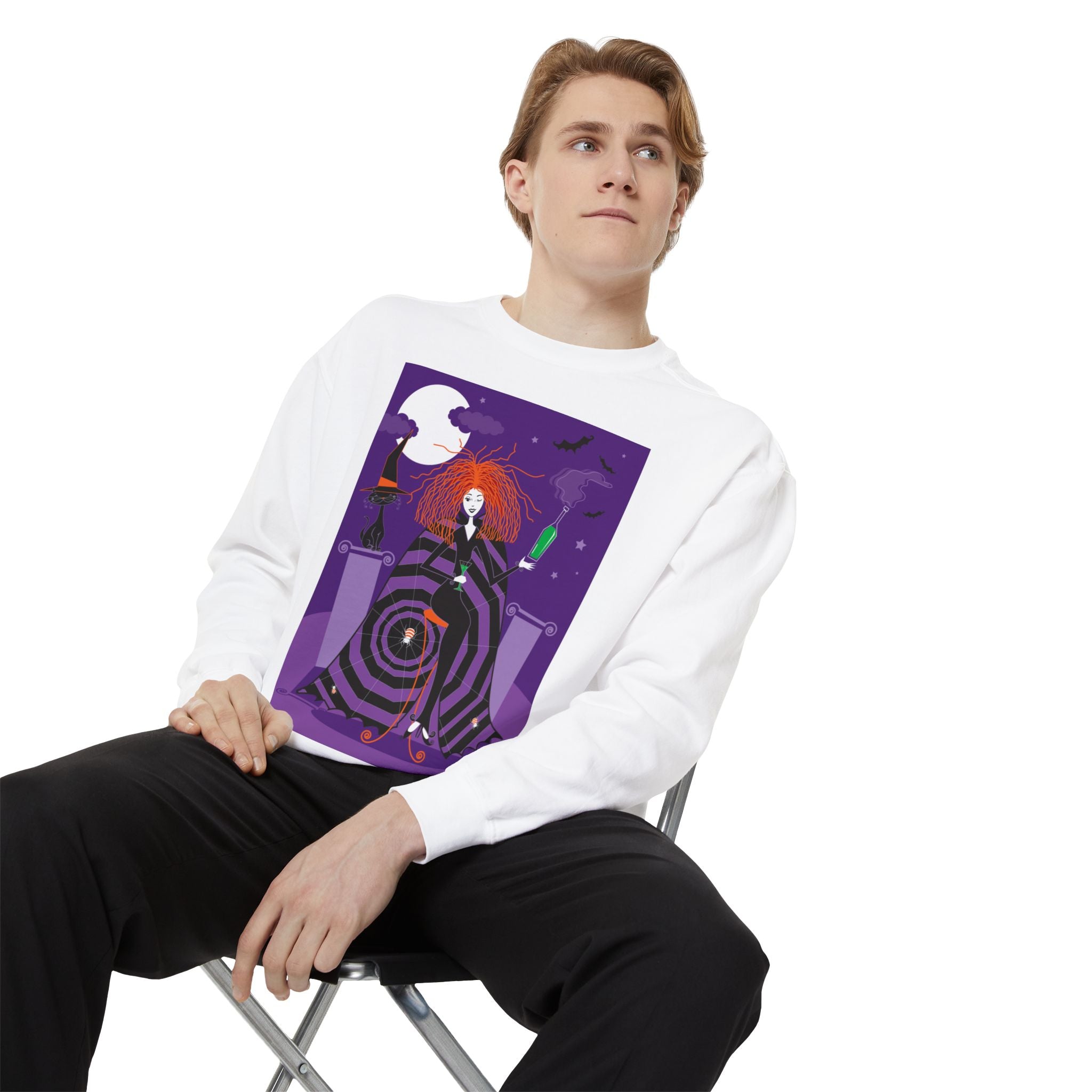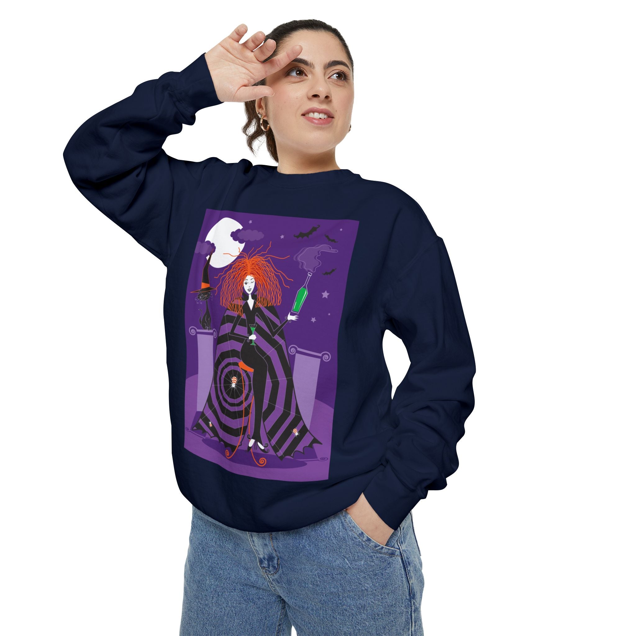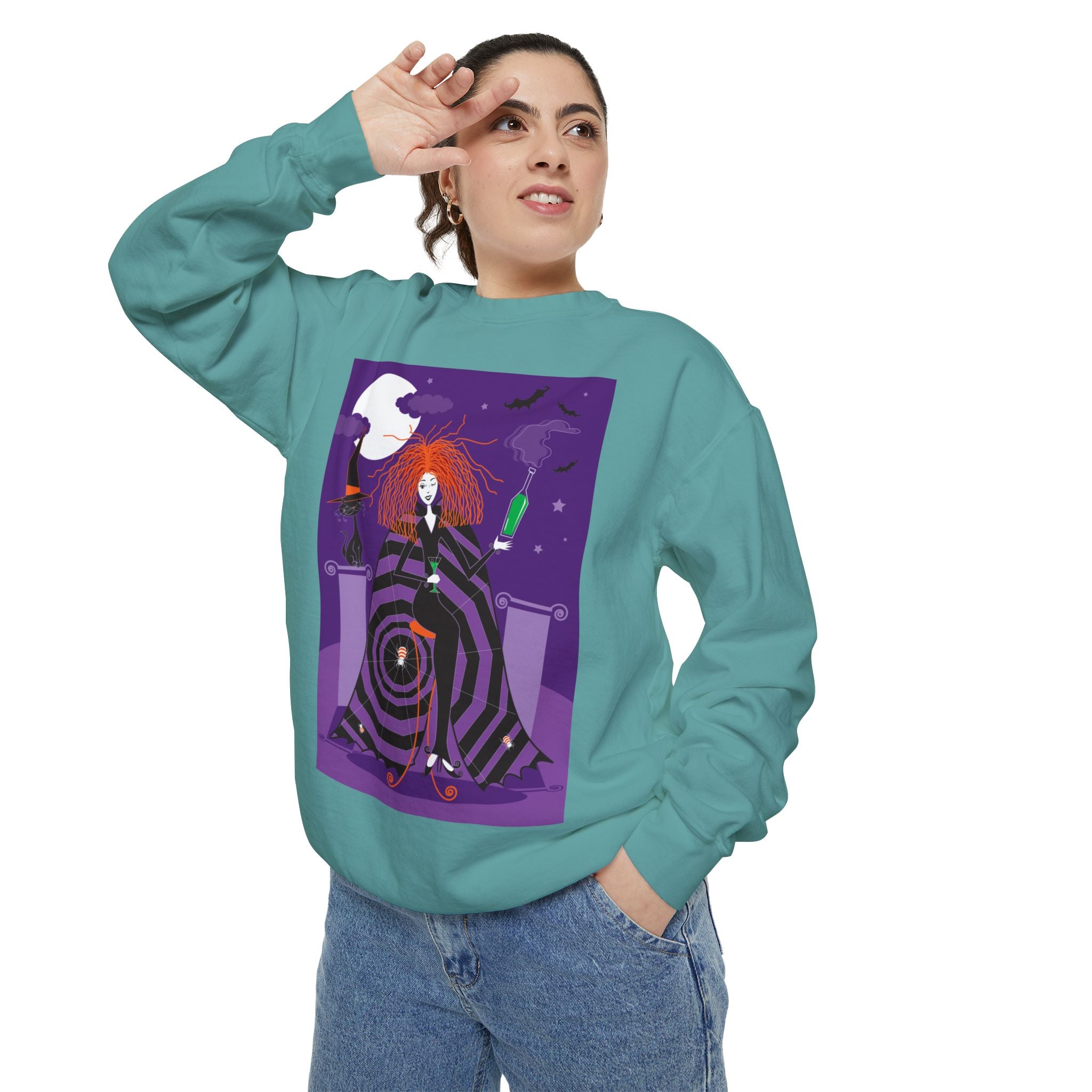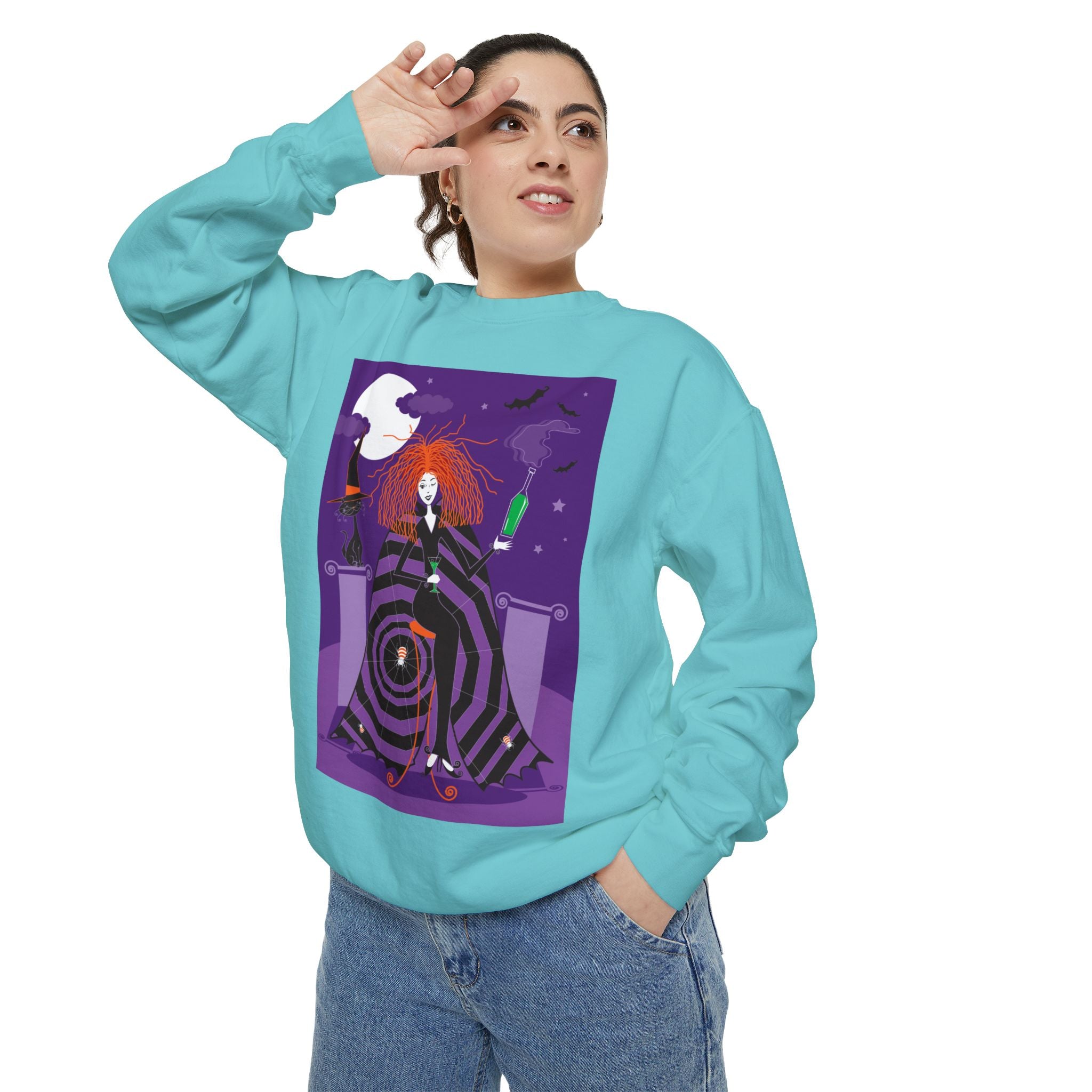 Embrace the Halloween season with luxurious comfort and style in this unisex, garment-dyed sweatshirt. Crafted from 80% ring-spun cotton and 20% polyester, this sweatshirt features a 3-end garment-dyed, ring-spun, color-blast fleece with a 100% cotton face, perfect for showcasing festive Halloween designs. With a relaxed fit, rolled-forward shoulder, and back neck patch, this sweatshirt combines cozy warmth with a touch of spooky flair, making it an ideal choice for all your Halloween activities.