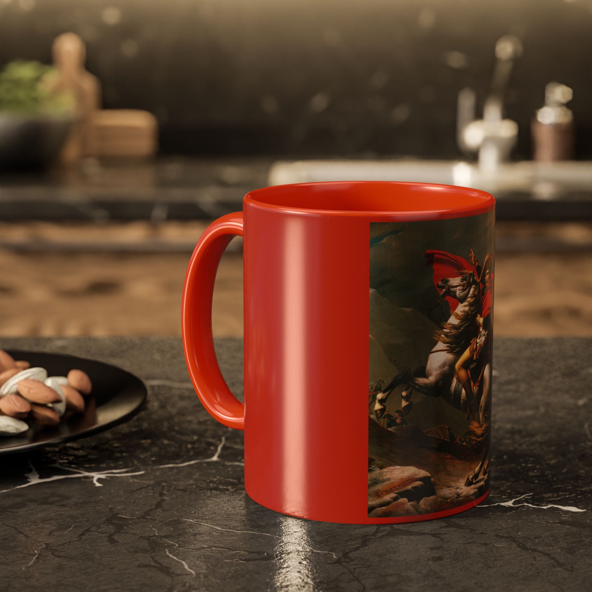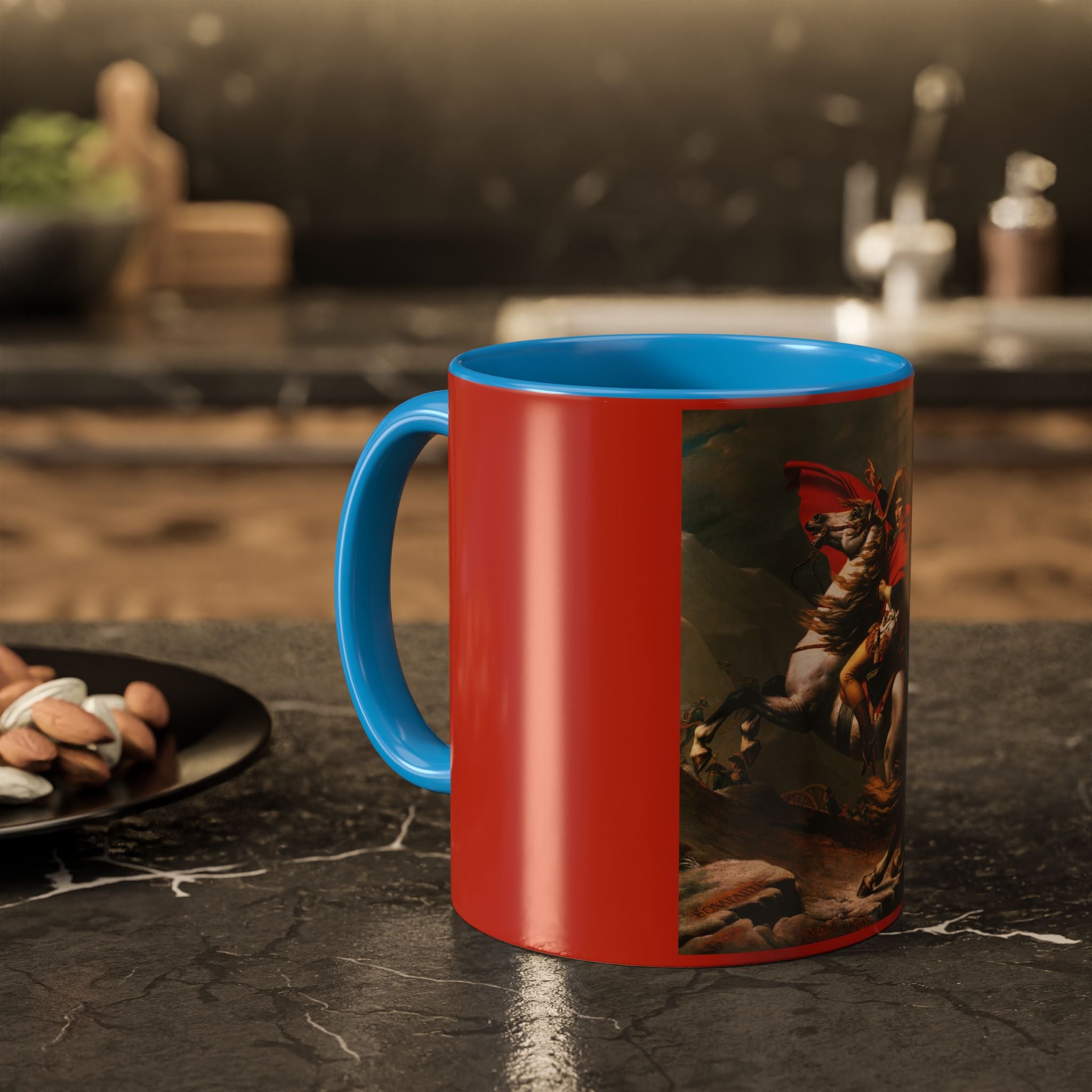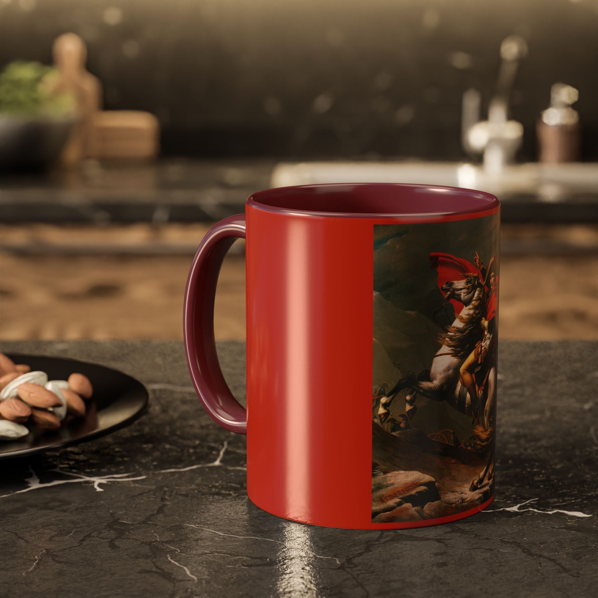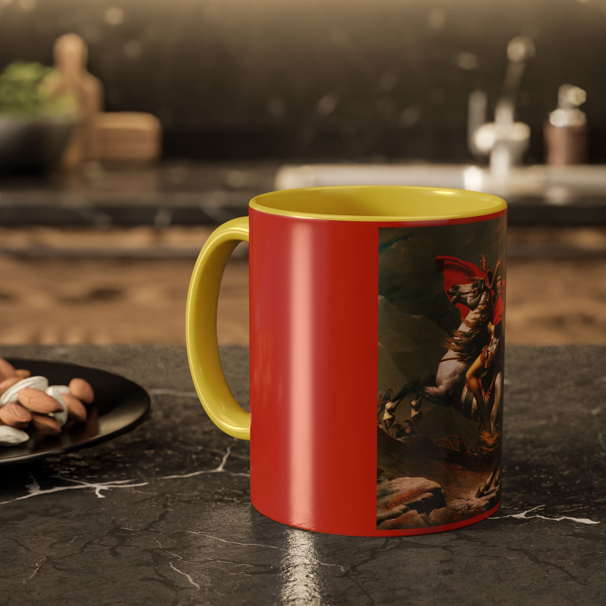 Mugs are a kitchen essential, and when infused with a personalized touch, they transform into cherished favorites. These mugs, offered in 12 vibrant color choices, can hold up to 11oz of your preferred rejuvenating beverage and feature a colored handle and interior. The glossy finish adds an elegant accent that beautifully complements the high-fidelity artwork print, making them not only a delightful addition to your kitchen but also a fantastic choice for thoughtful gifts.