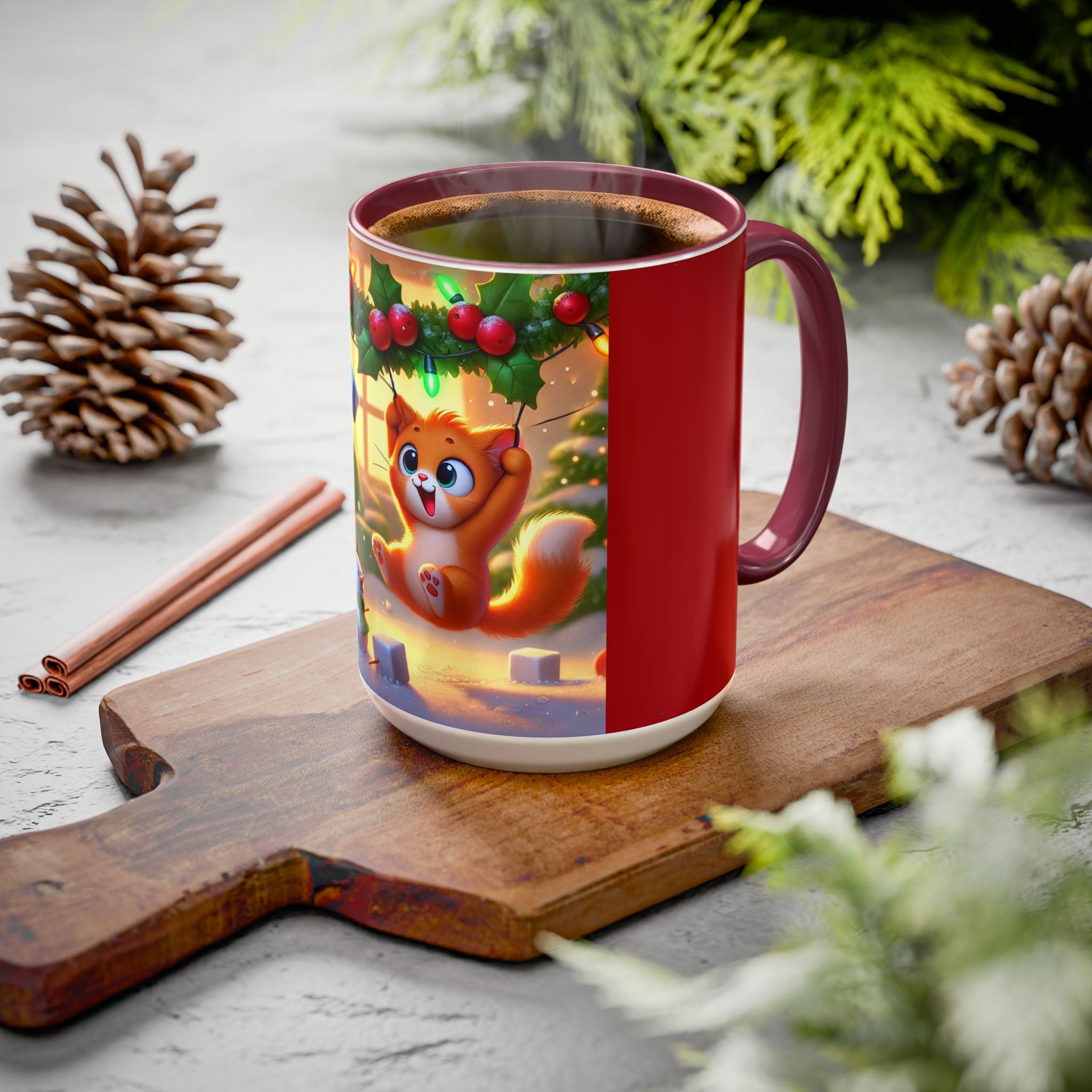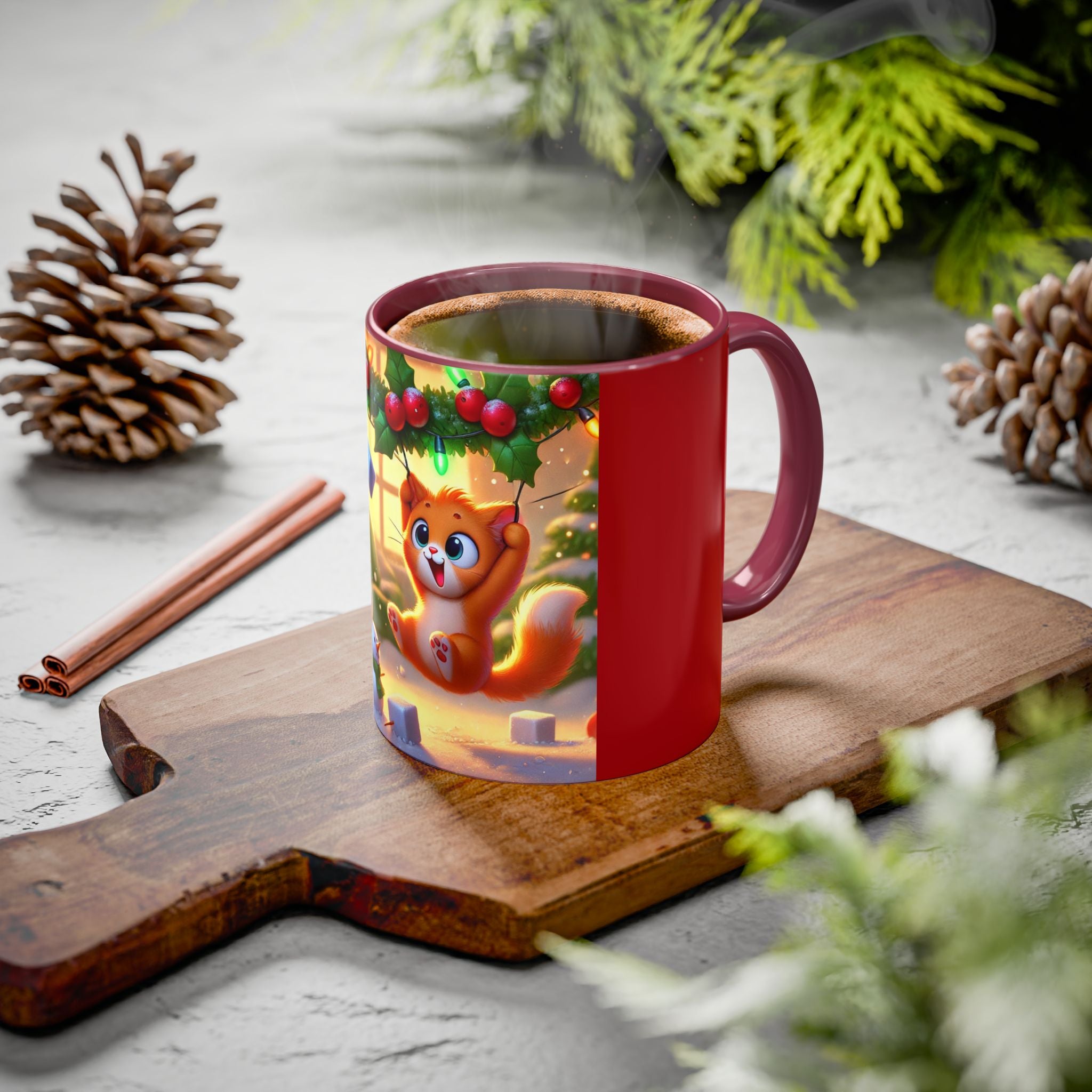The Naughty or Nice Kitten Christmas Mug adds festive charm to your daily coffee or cocoa. Available in 11oz and 15oz sizes with 12 color options, each mug features a glossy finish that enhances the high-fidelity artwork print, making it both practical and eye-catching.