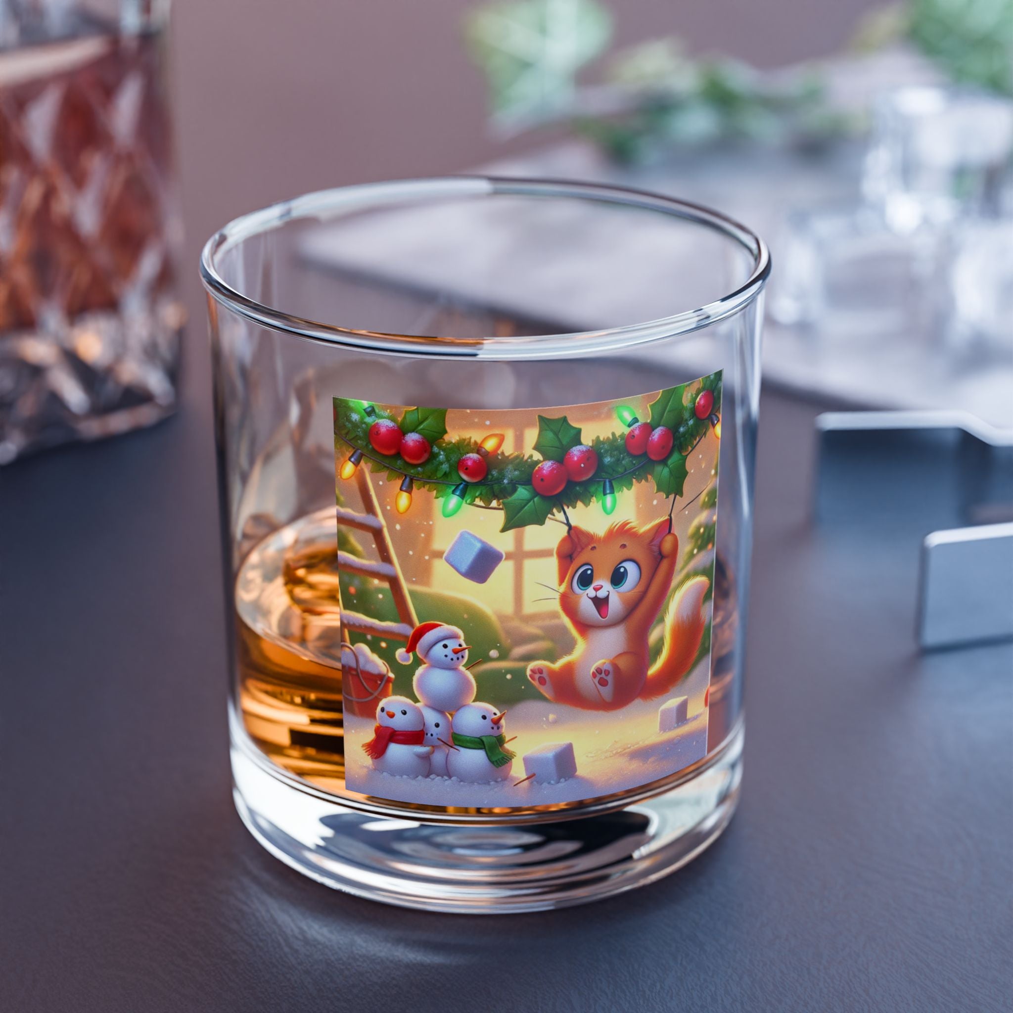 The Naughty or Nice Kitten Christmas Rocks Glass brings festive charm to every pour. Crafted from clear tempered glass, this 10oz glass is FDA Certified, BPA-free, and perfect for whiskey, bourbon, cocktails, or holiday mocktails.