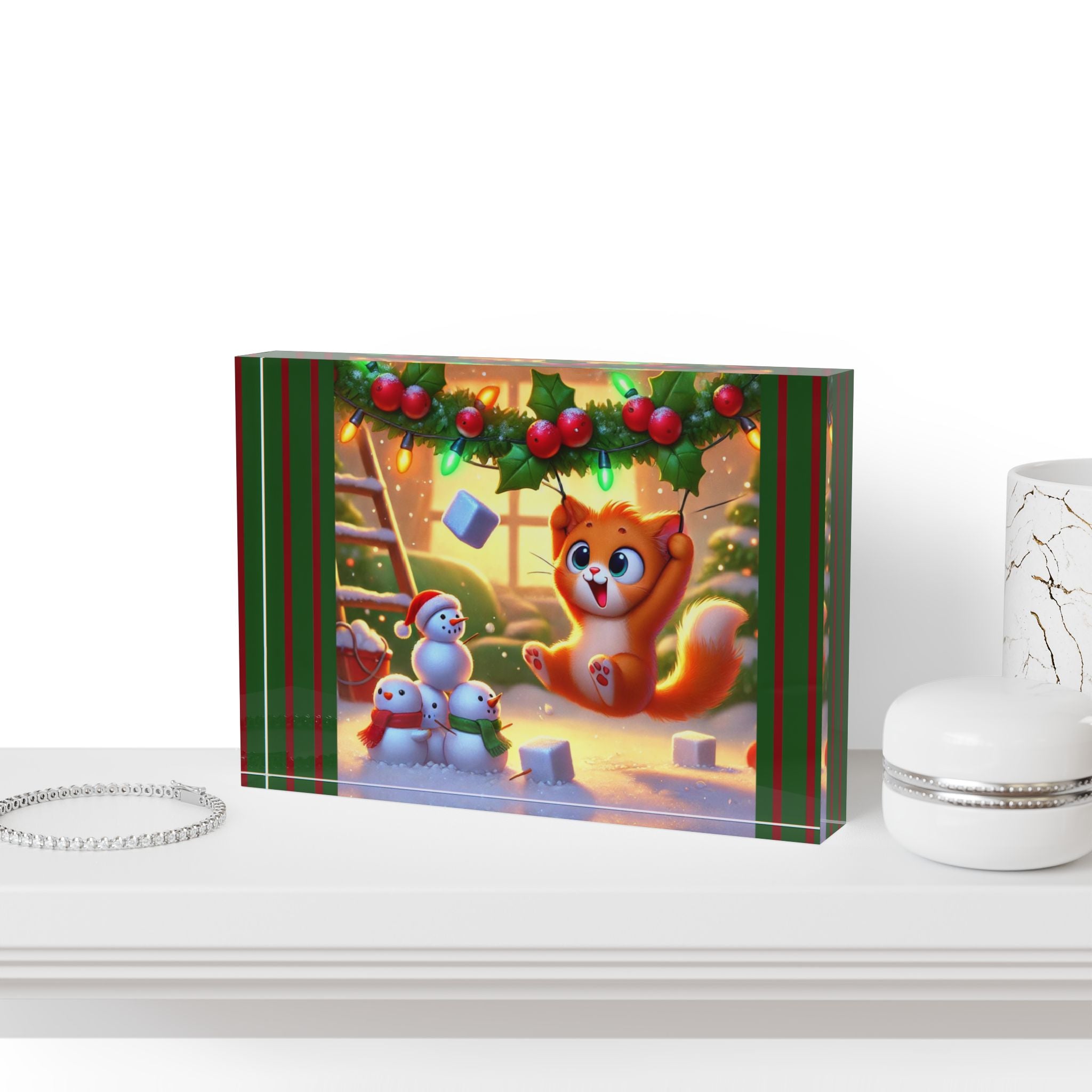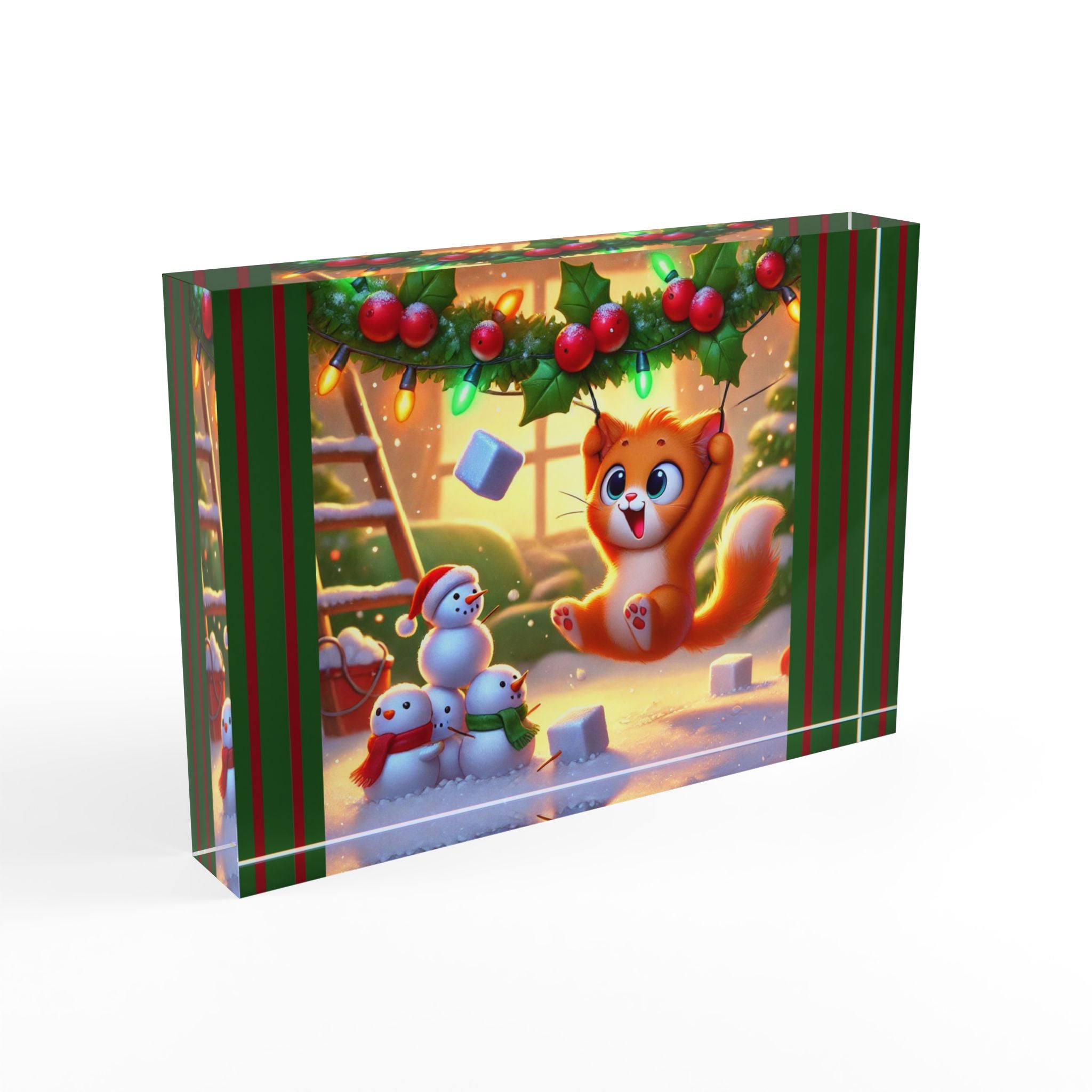 The Naughty or Nice Kitten Christmas Acrylic Art Block adds festive charm to any space. Made with the AcryliPrint®HD process for vivid color and crisp detail, this sturdy block fits perfectly on a desk, shelf, or mantel, making it a durable and decorative holiday accent.