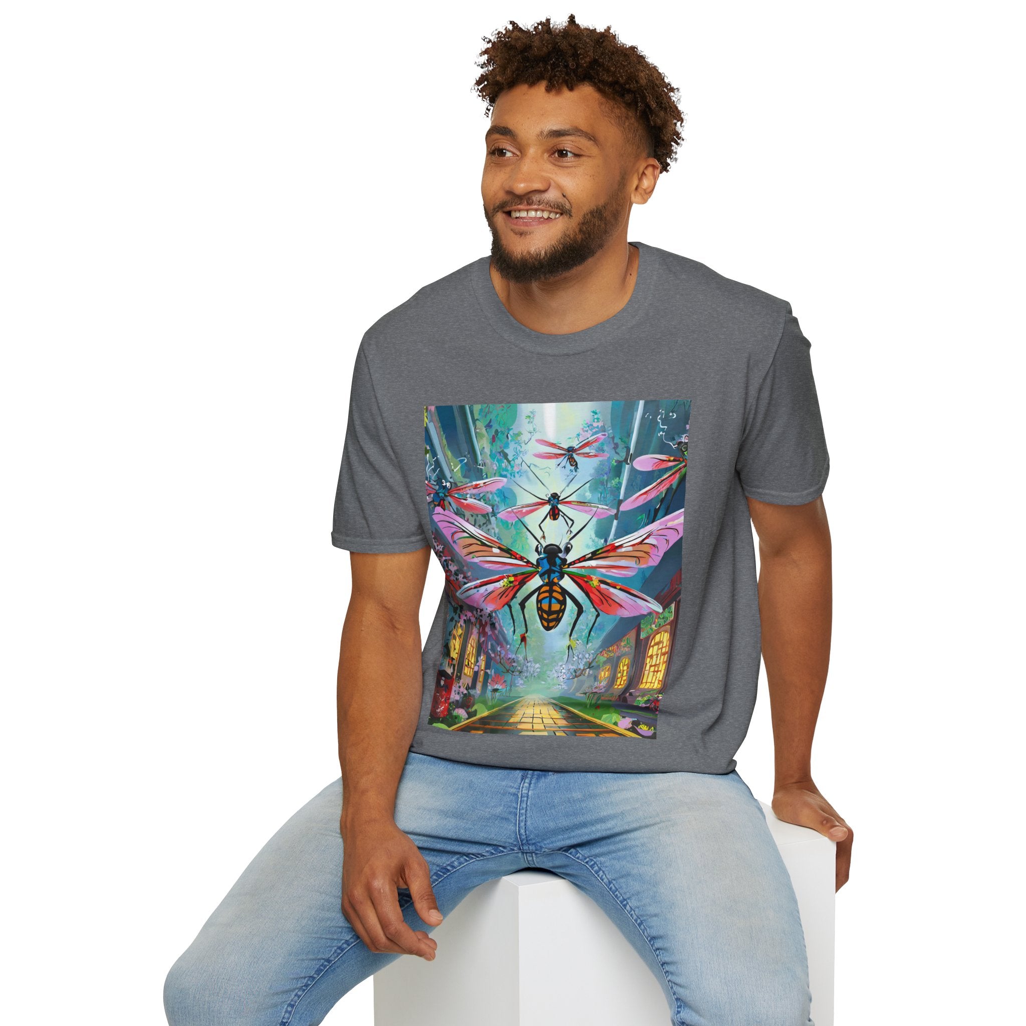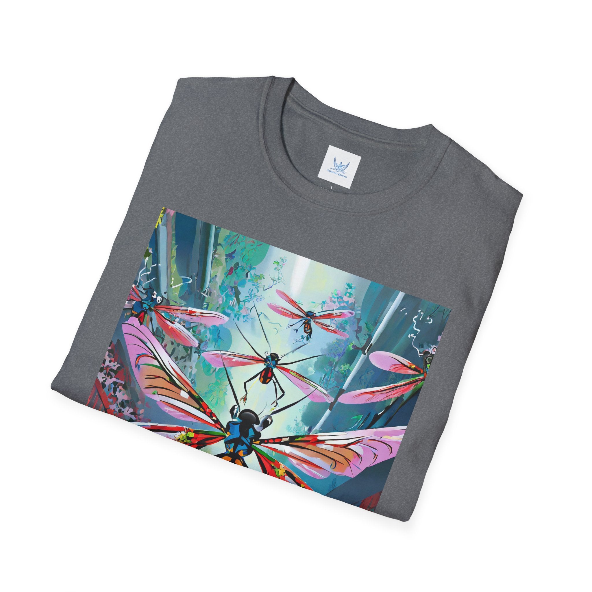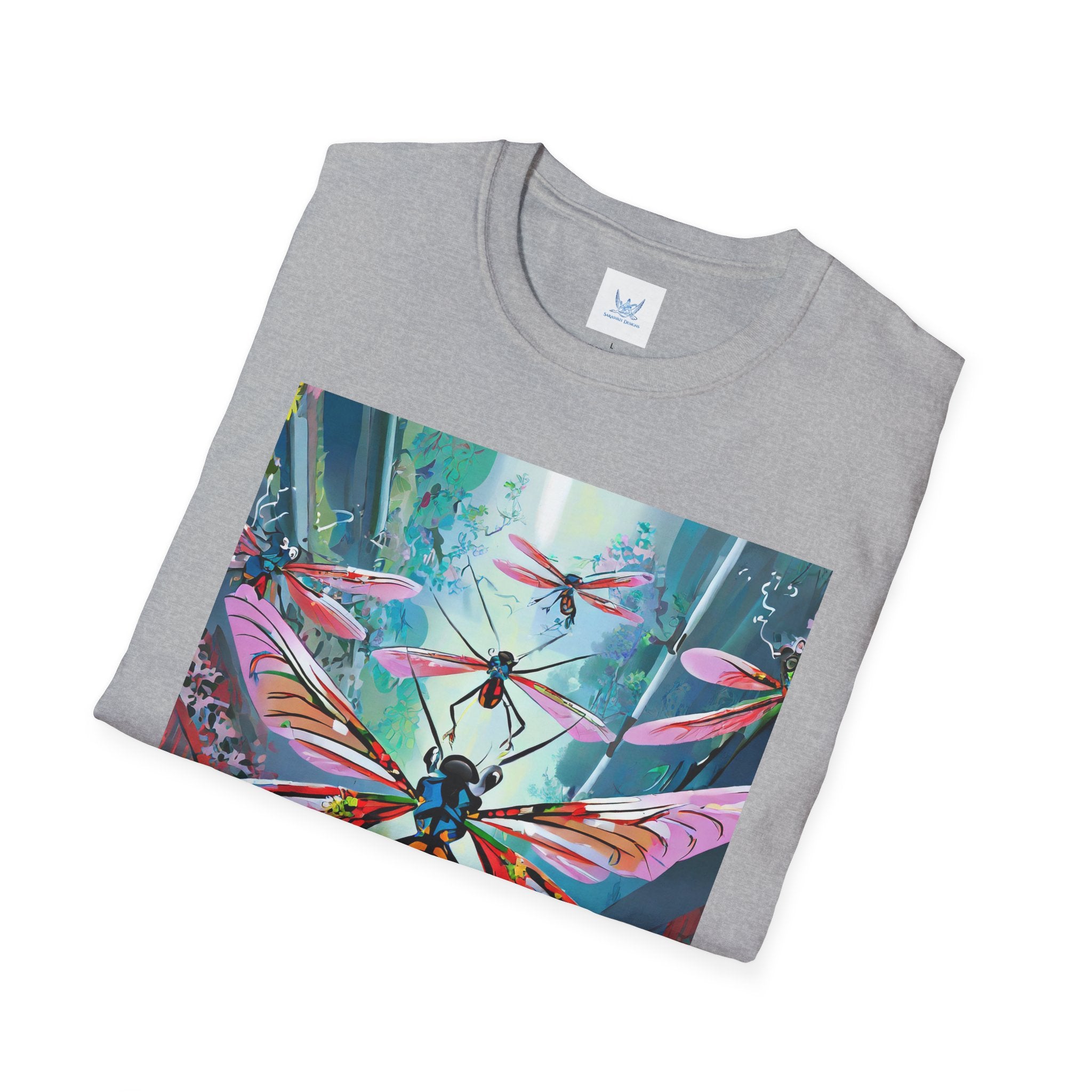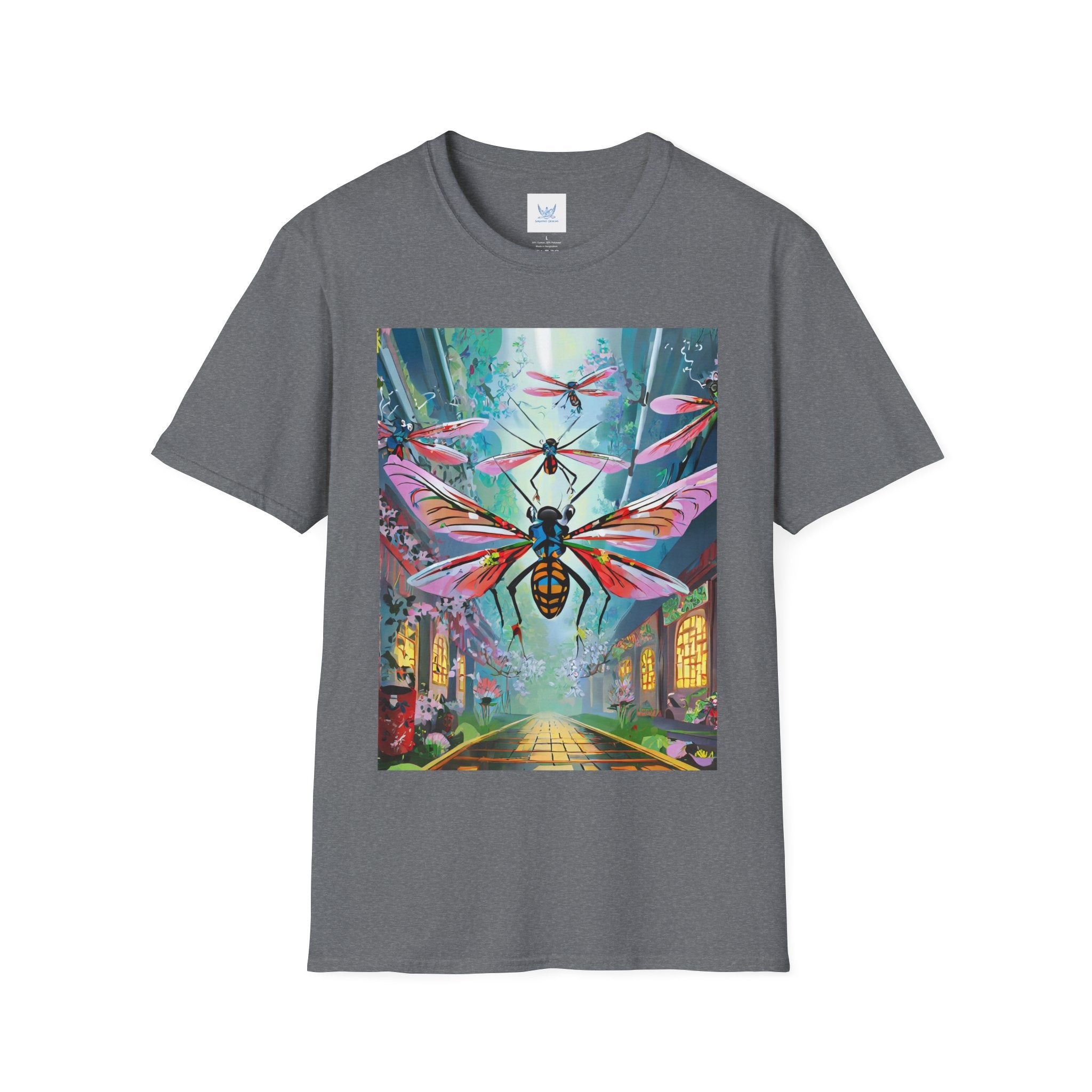 Neon Swarm Softstyle T-Shirt brings futuristic edge and artistic intensity together in a wearable statement piece. Crafted from the Gildan Softstyle® 64000, this tee redefines casual comfort with its modern cut, smooth fit, and ultra-soft fabric. Solid colors are made from 100% cotton, while heathers and sport grey incorporate polyester blends for added strength and flexibility. Reinforced shoulders, no side seams, and a ribbed-knit collar ensure durability and a sleek silhouette that holds its shape wash after wash.