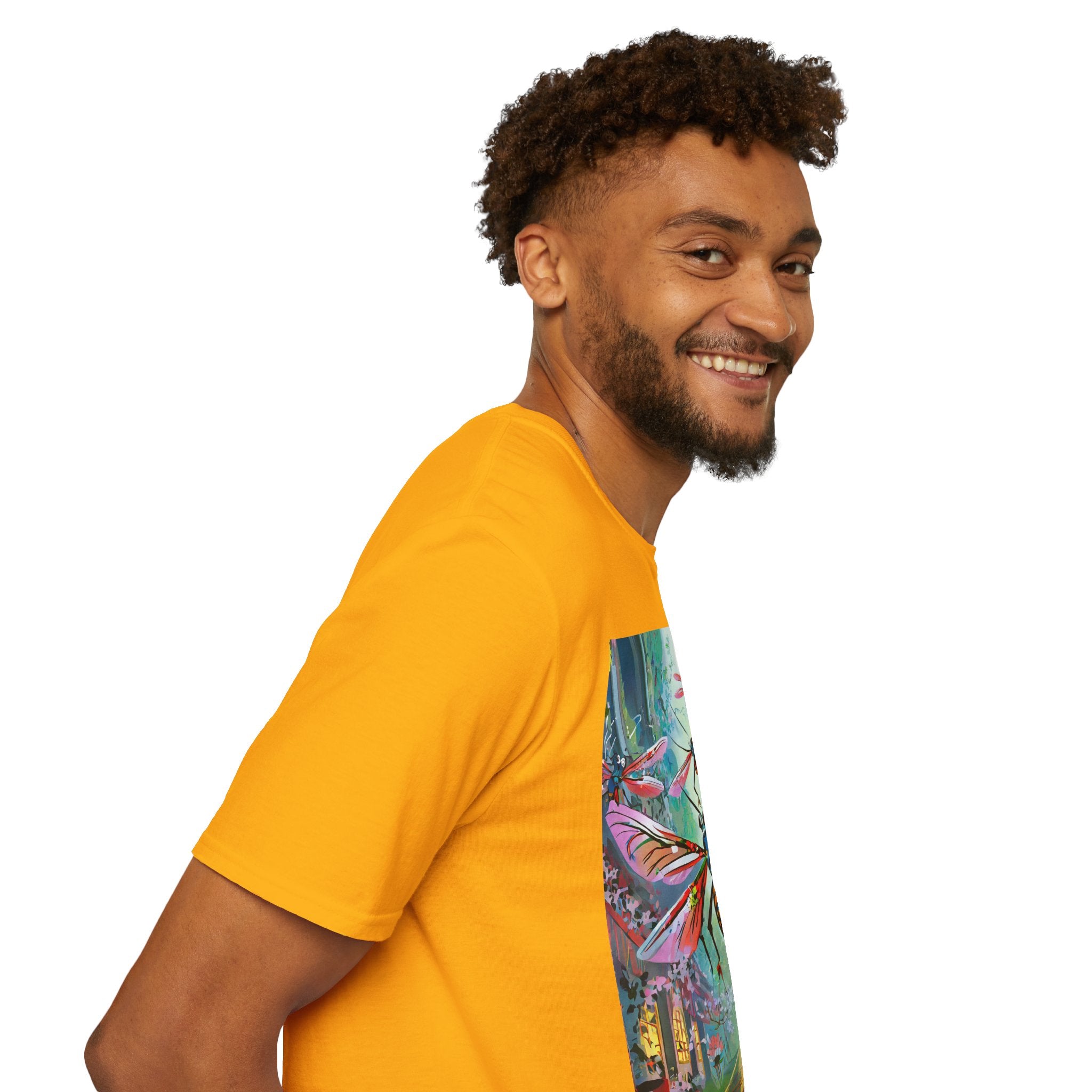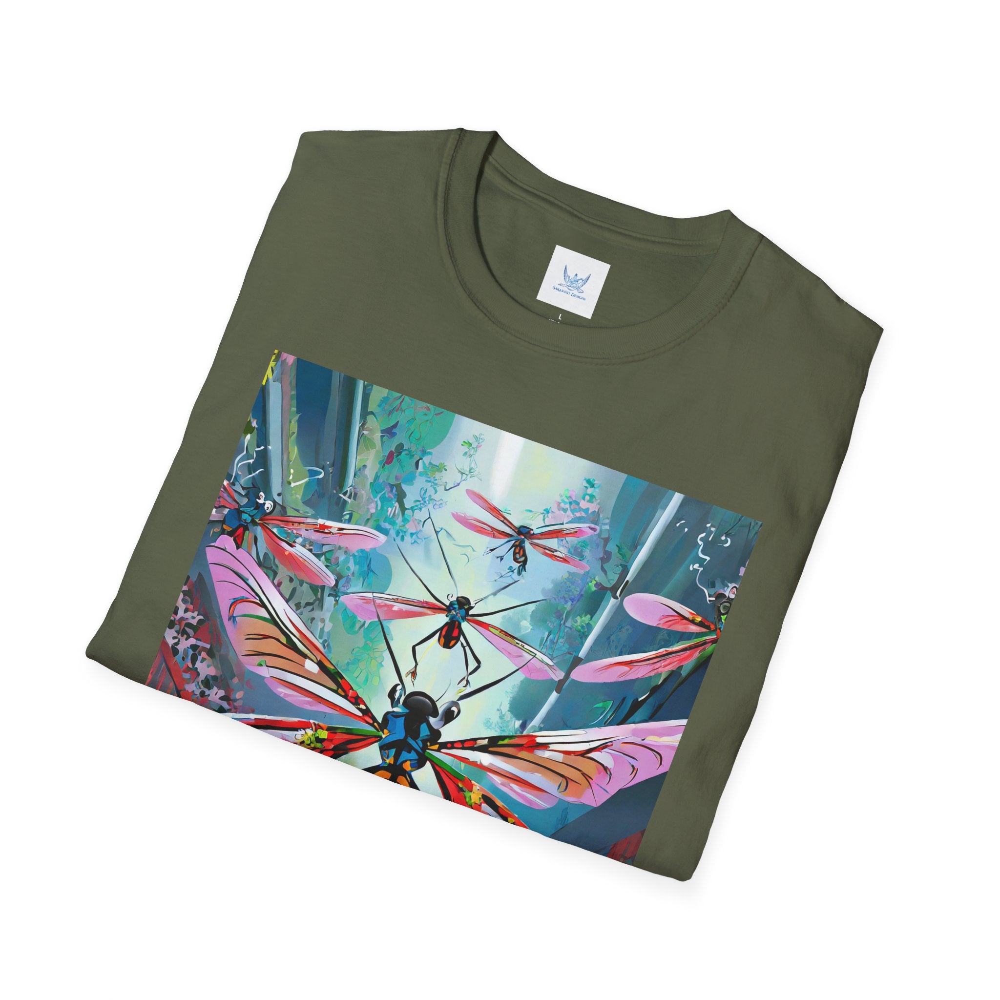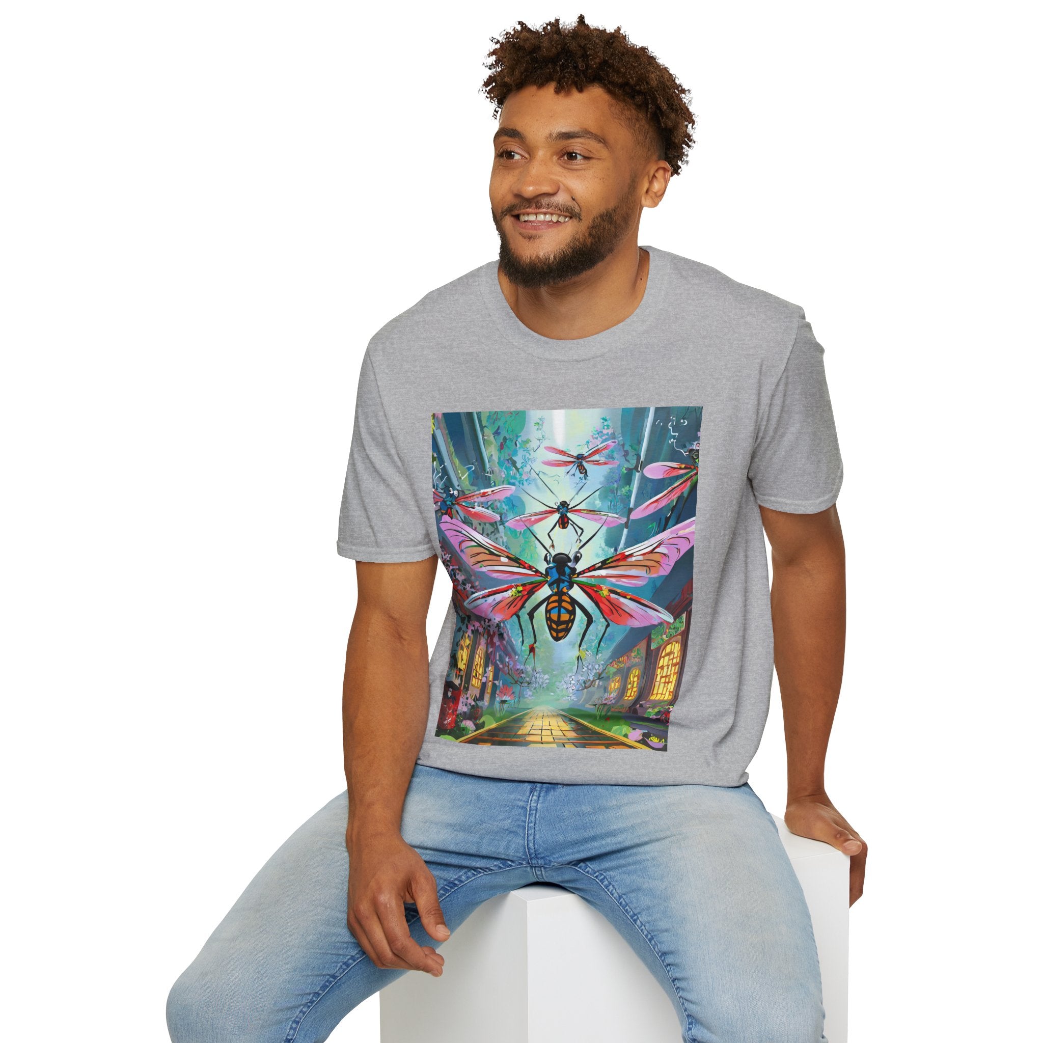 Neon Swarm Softstyle T-Shirt brings futuristic edge and artistic intensity together in a wearable statement piece. Crafted from the Gildan Softstyle® 64000, this tee redefines casual comfort with its modern cut, smooth fit, and ultra-soft fabric. Solid colors are made from 100% cotton, while heathers and sport grey incorporate polyester blends for added strength and flexibility. Reinforced shoulders, no side seams, and a ribbed-knit collar ensure durability and a sleek silhouette that holds its shape wash after wash.
