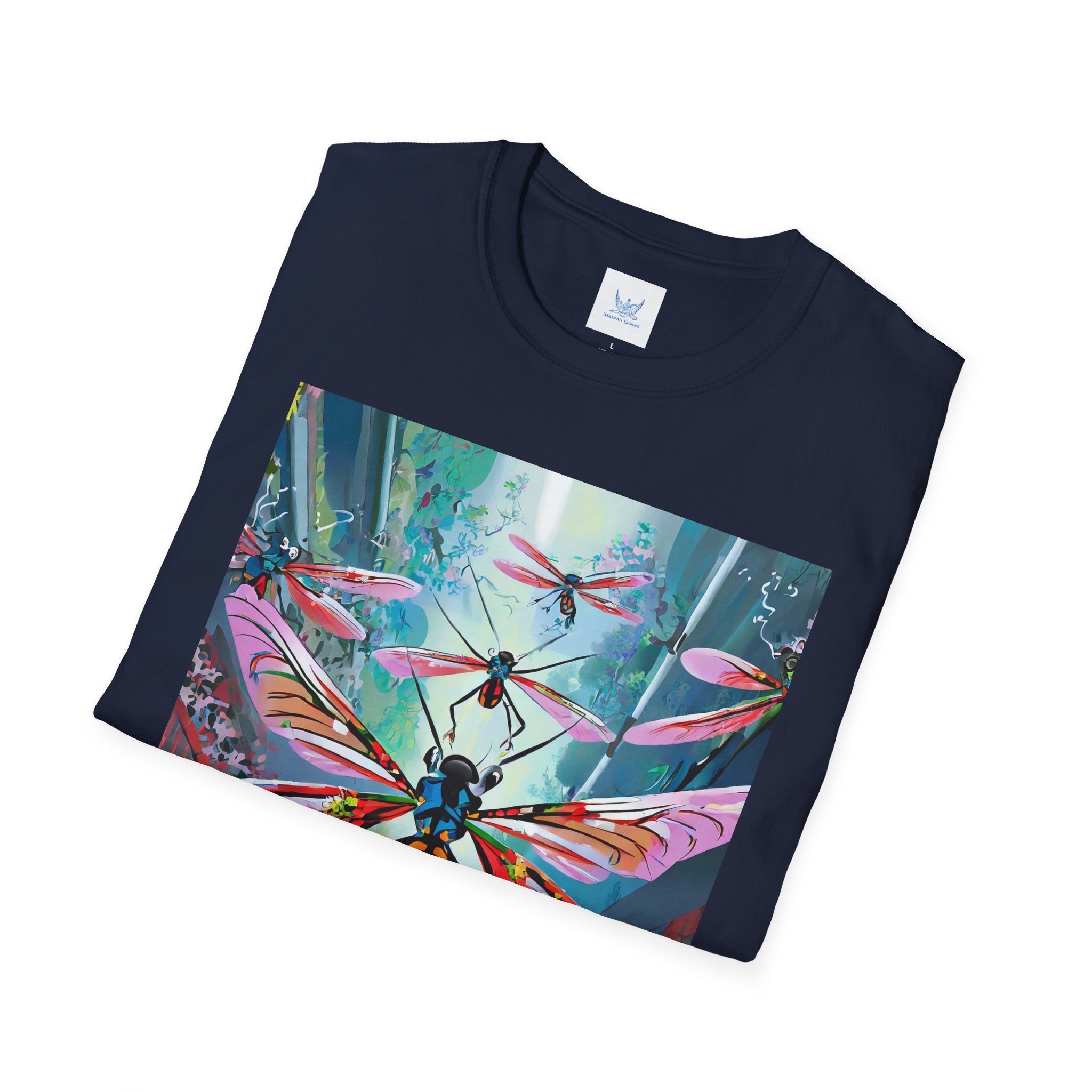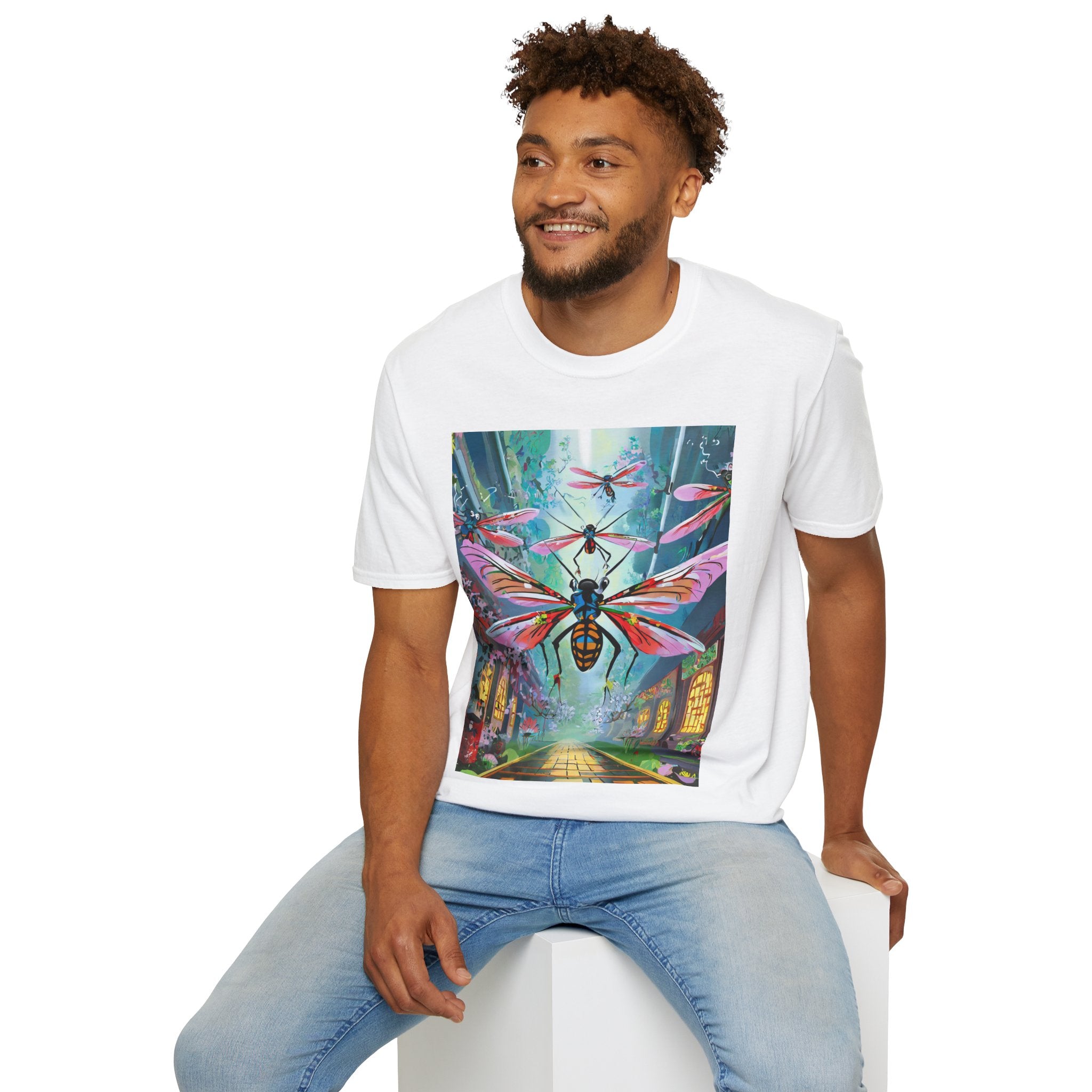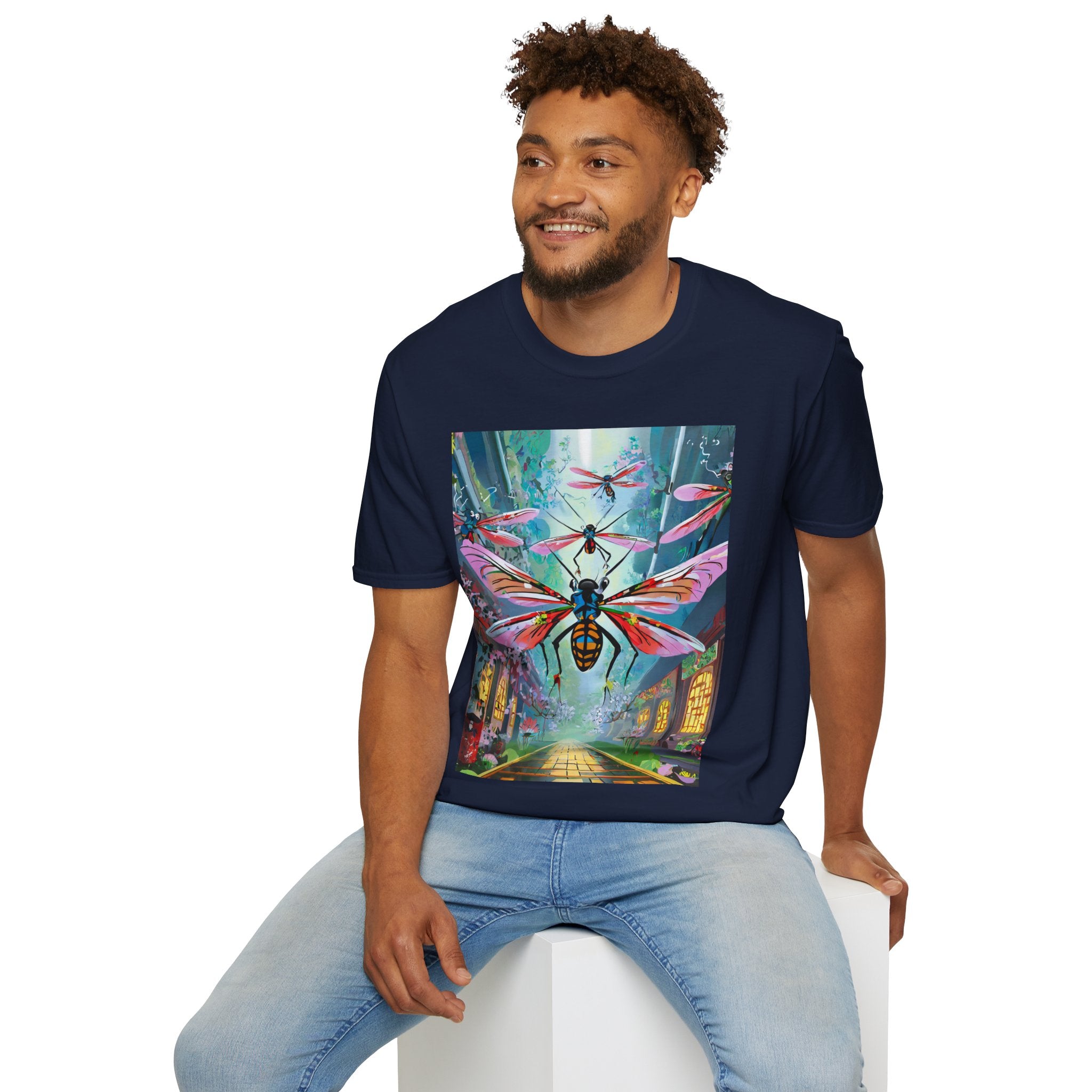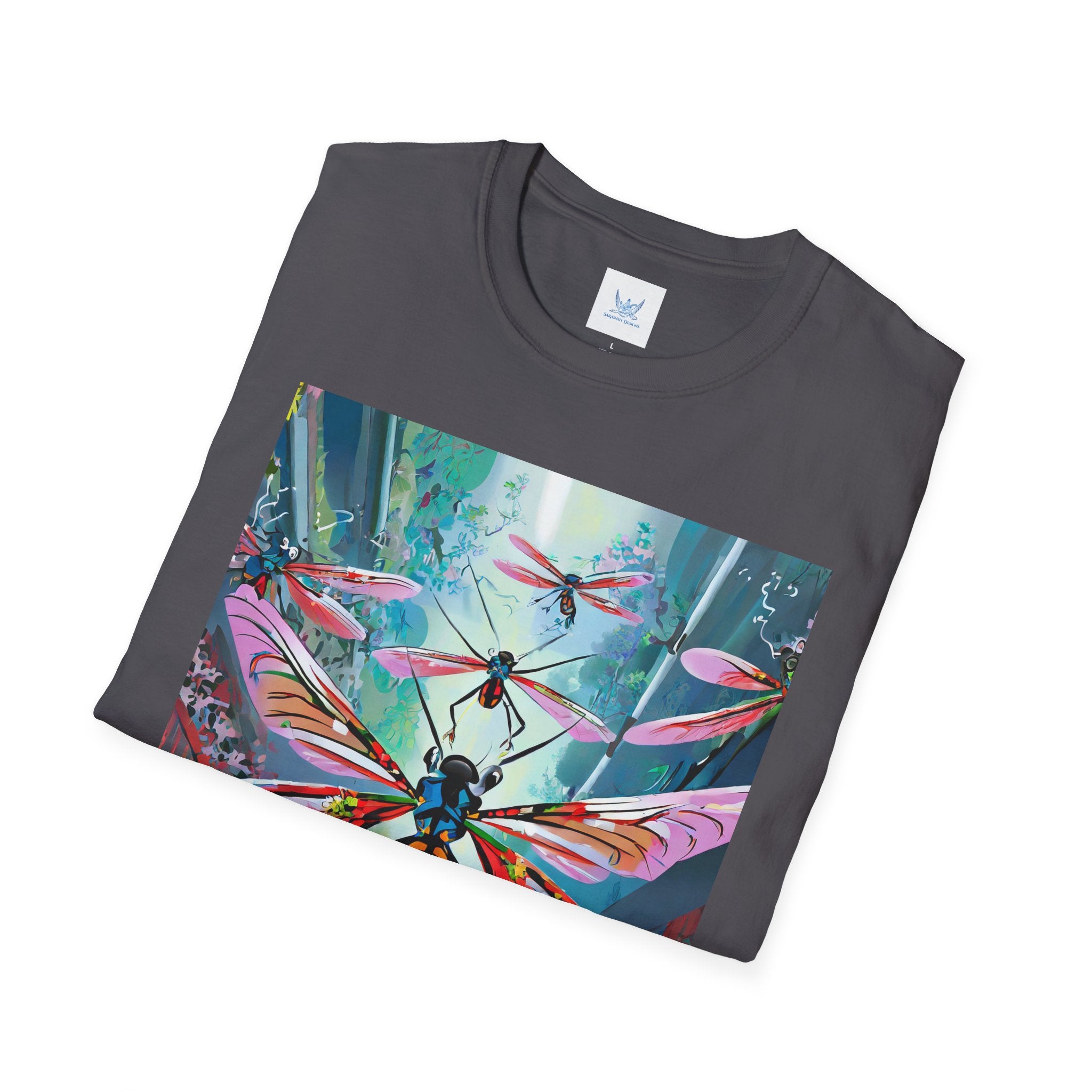 Neon Swarm Softstyle T-Shirt brings futuristic edge and artistic intensity together in a wearable statement piece. Crafted from the Gildan Softstyle® 64000, this tee redefines casual comfort with its modern cut, smooth fit, and ultra-soft fabric. Solid colors are made from 100% cotton, while heathers and sport grey incorporate polyester blends for added strength and flexibility. Reinforced shoulders, no side seams, and a ribbed-knit collar ensure durability and a sleek silhouette that holds its shape wash after wash.